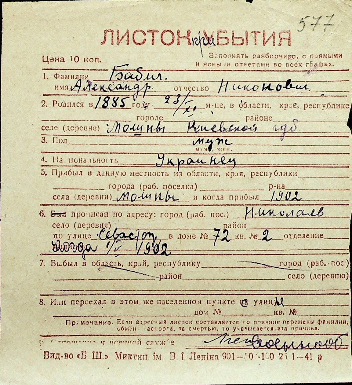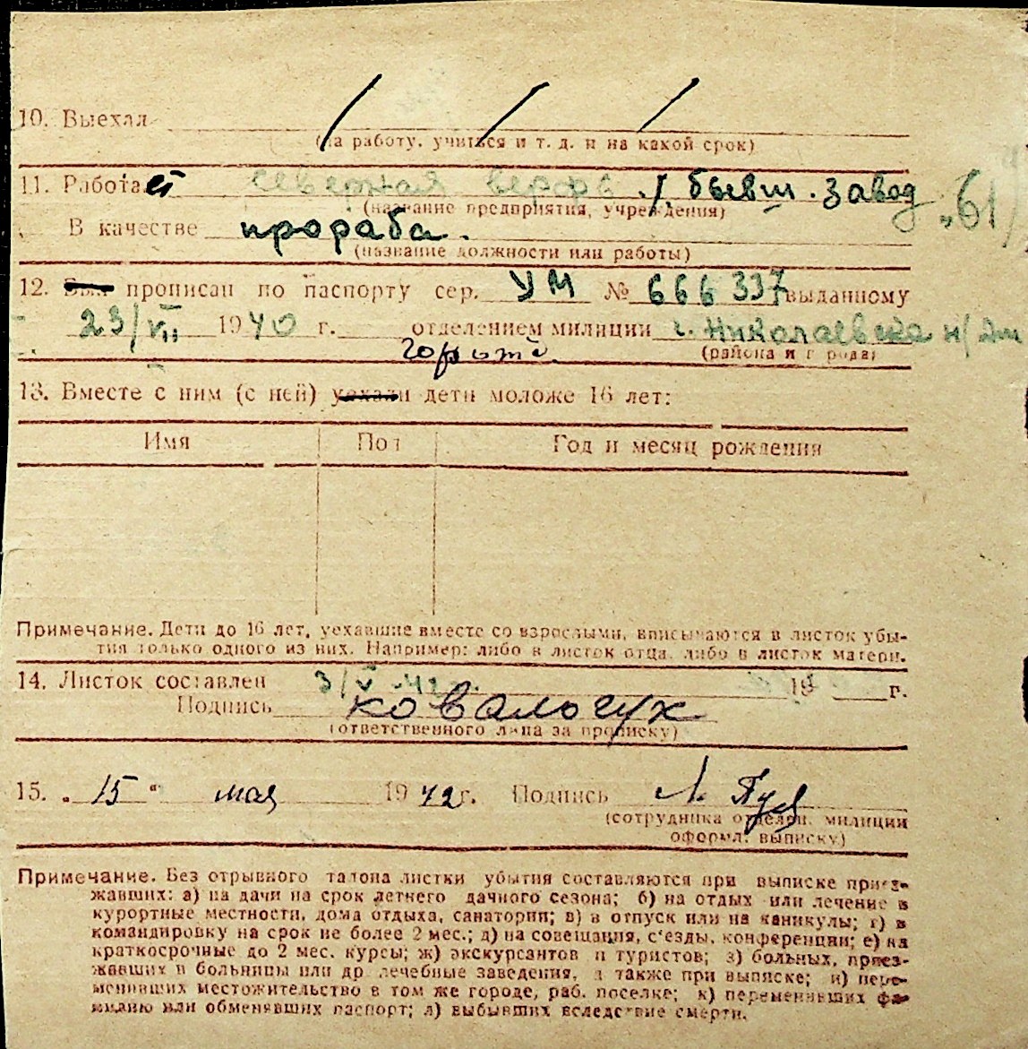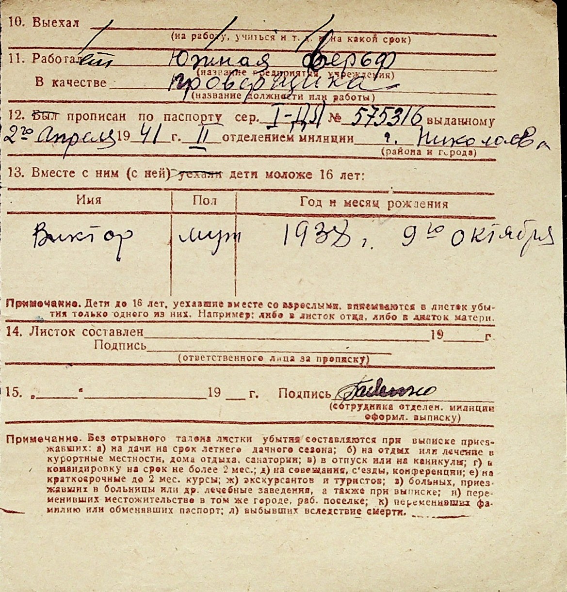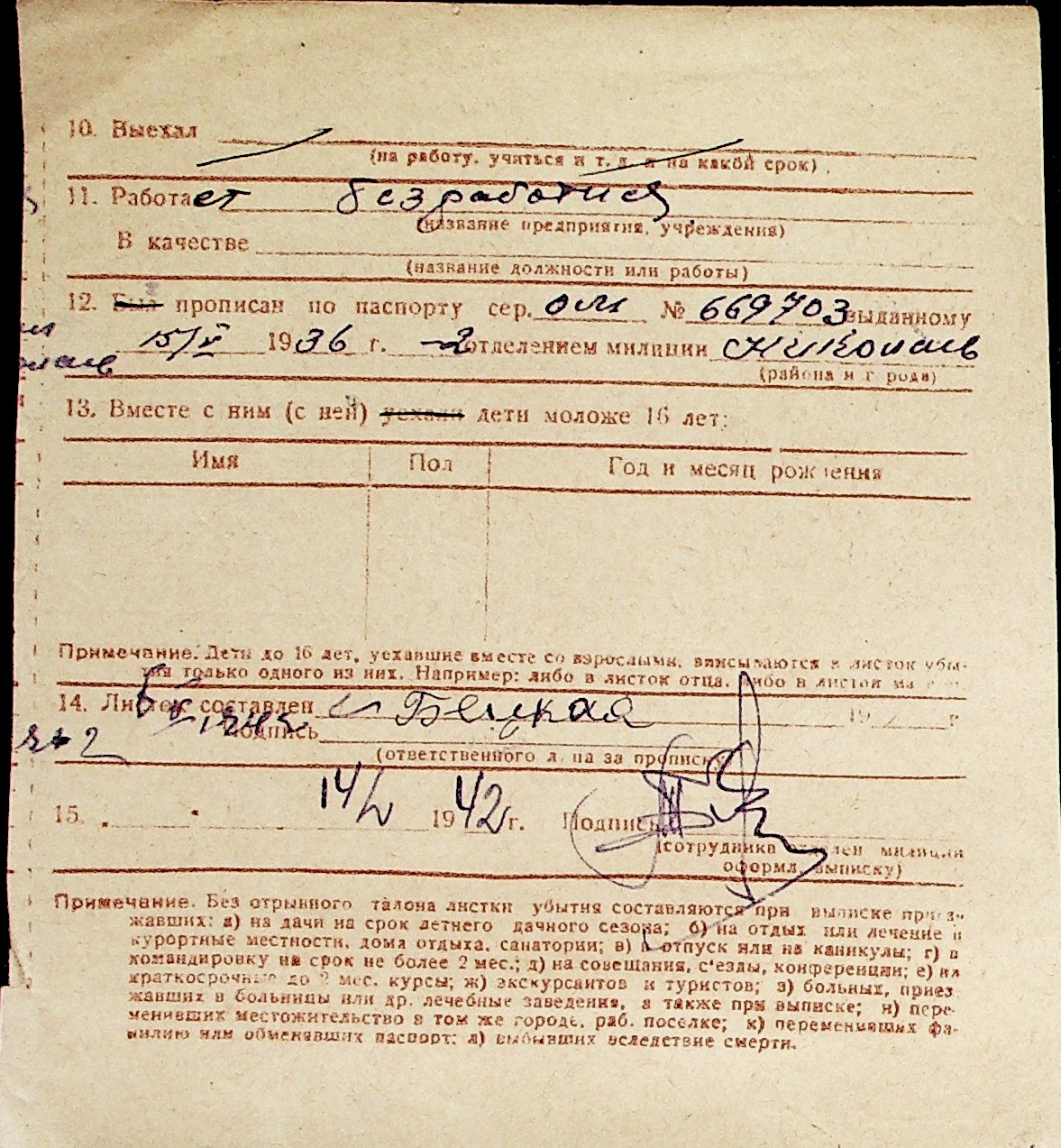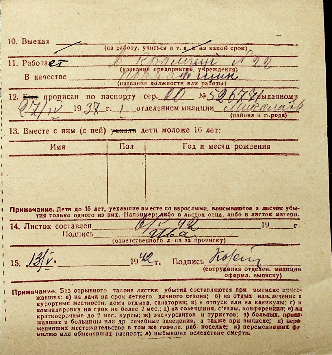 ◦ ◦ Перелік карток на осіб, які мешкали у м. Миколаїв у період окупації 1941–1944 років