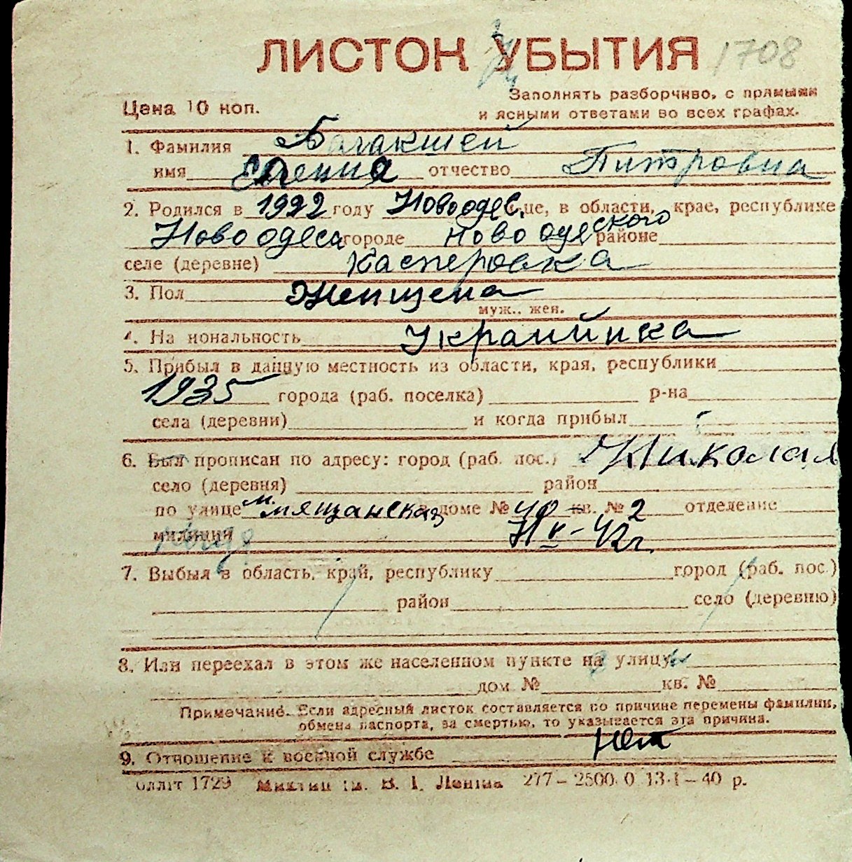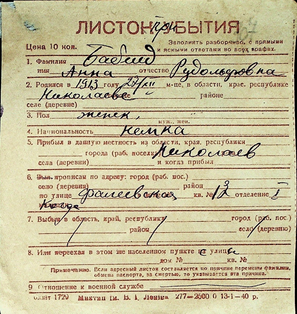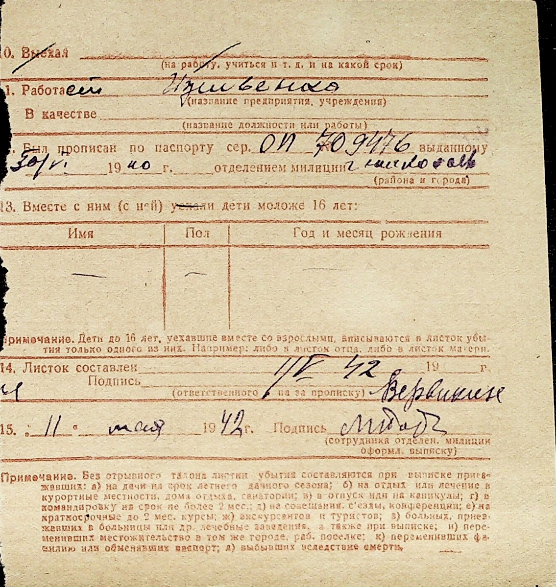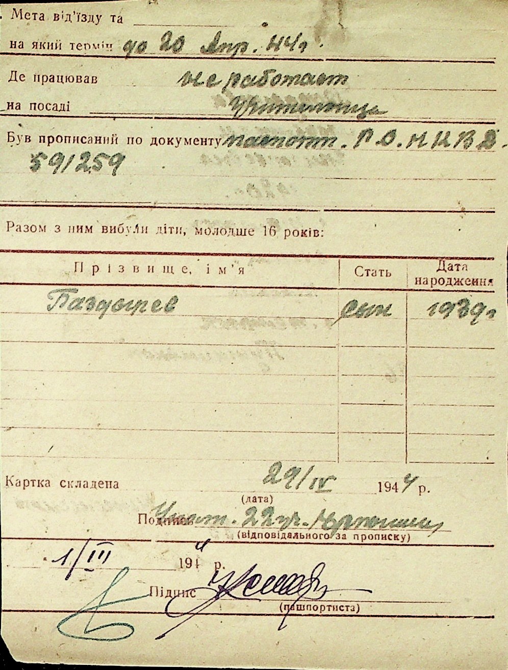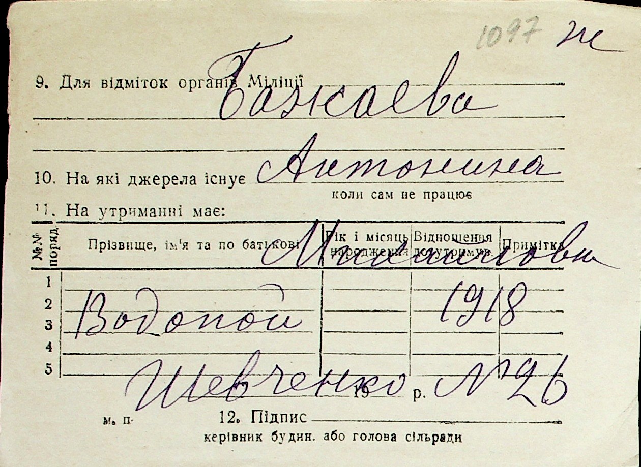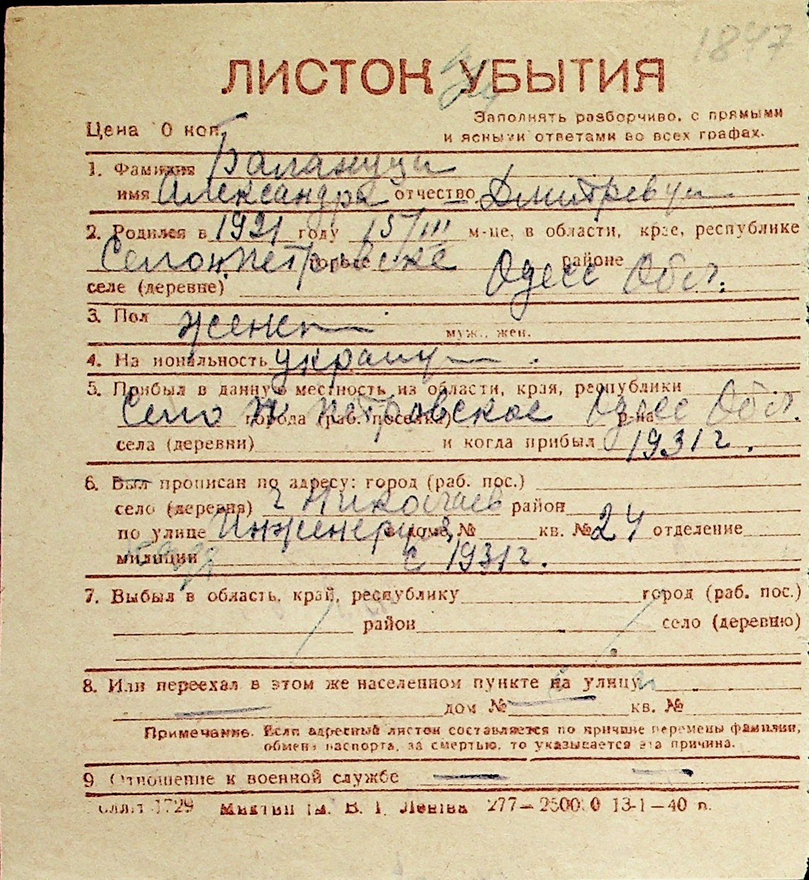 ◦ ◦ Перелік карток на осіб, які мешкали у м. Миколаїв у період окупації 1941–1944 років