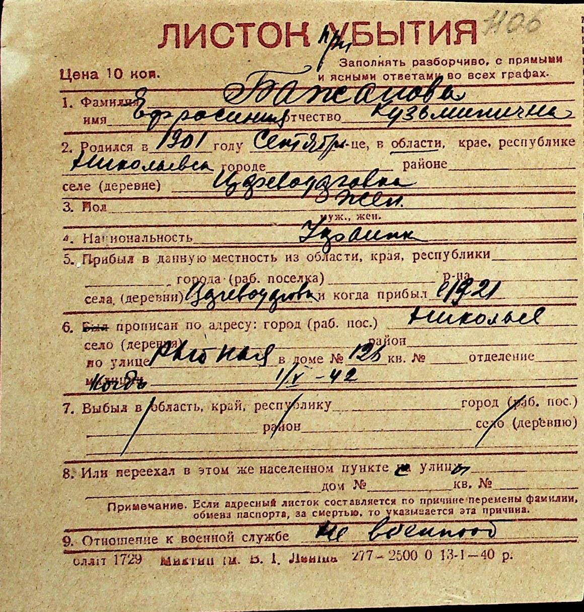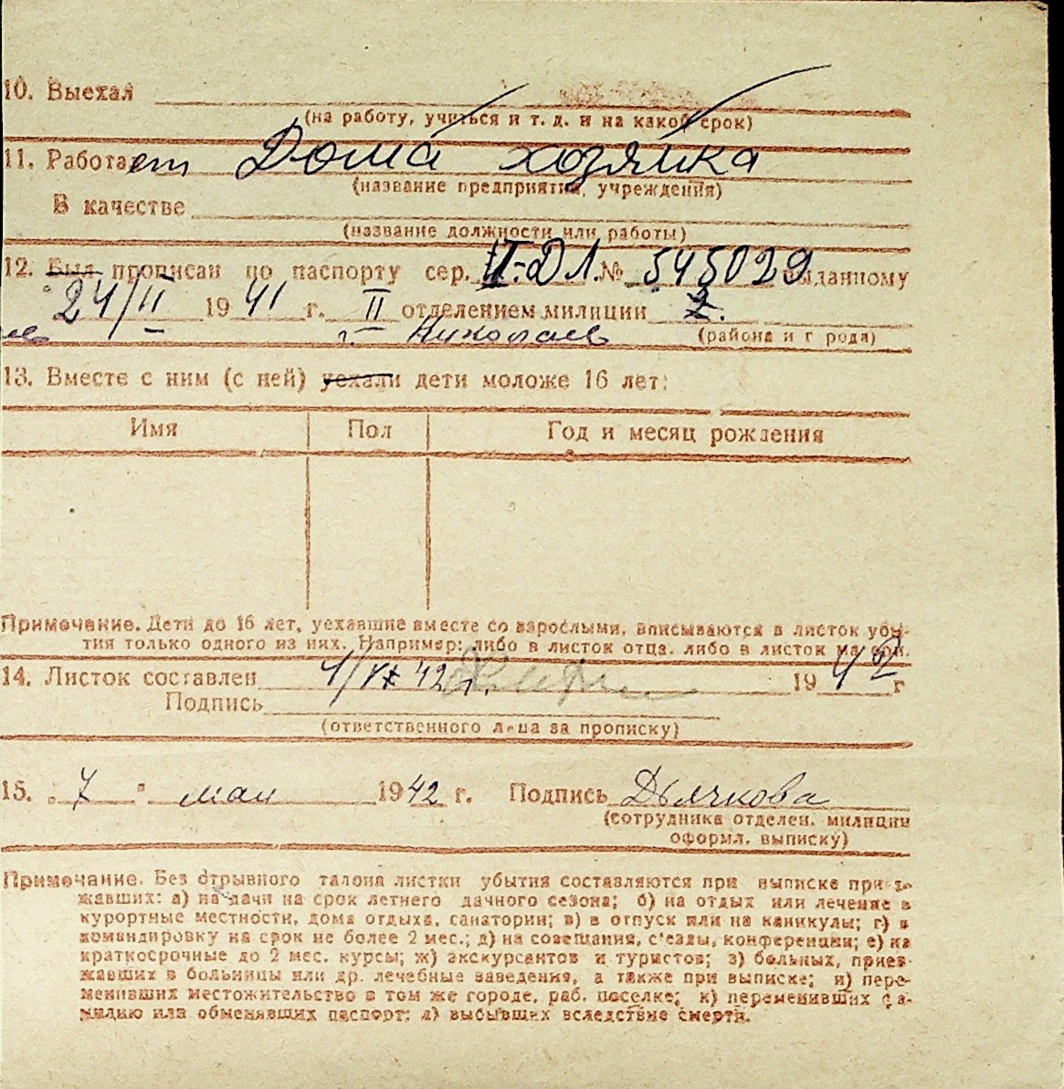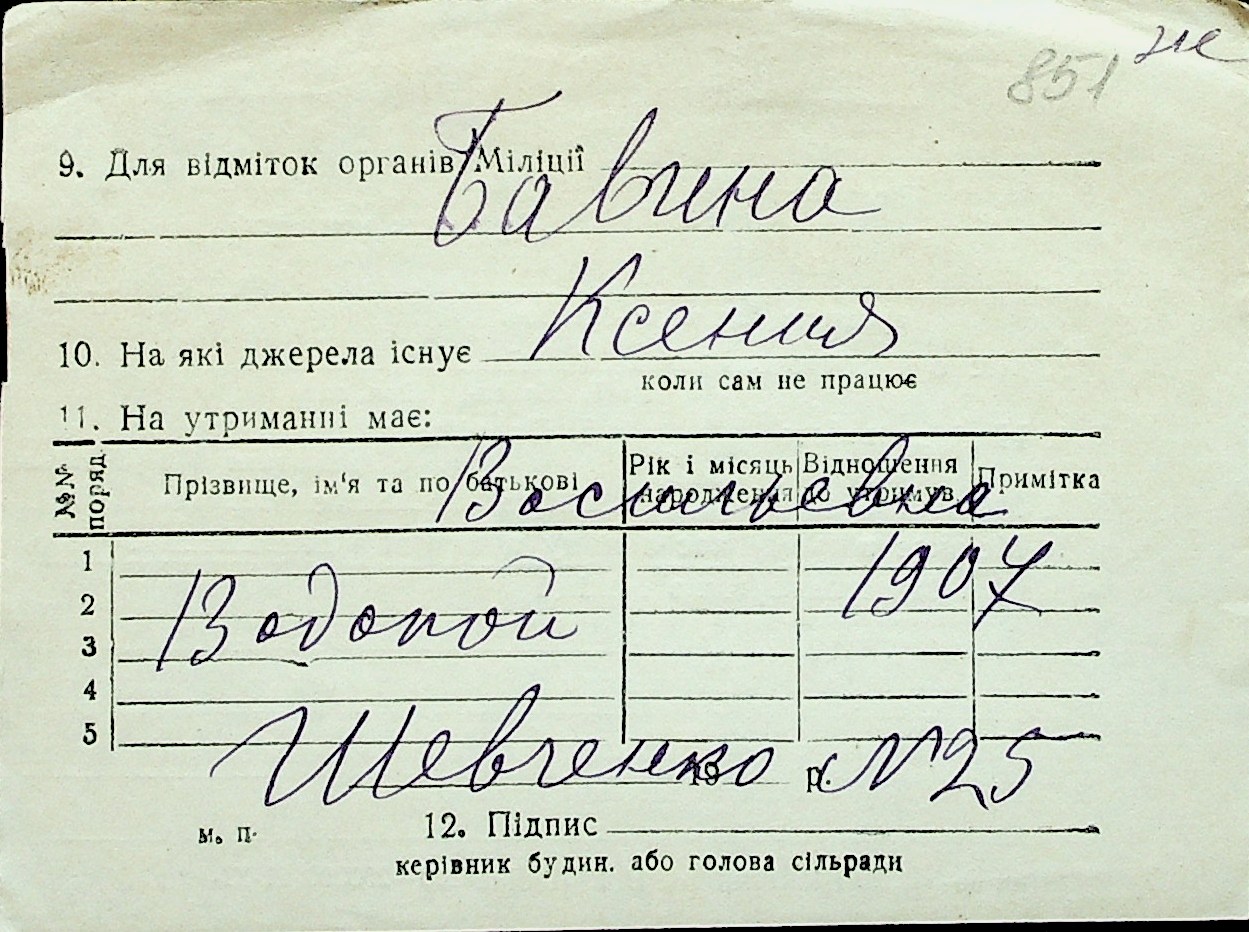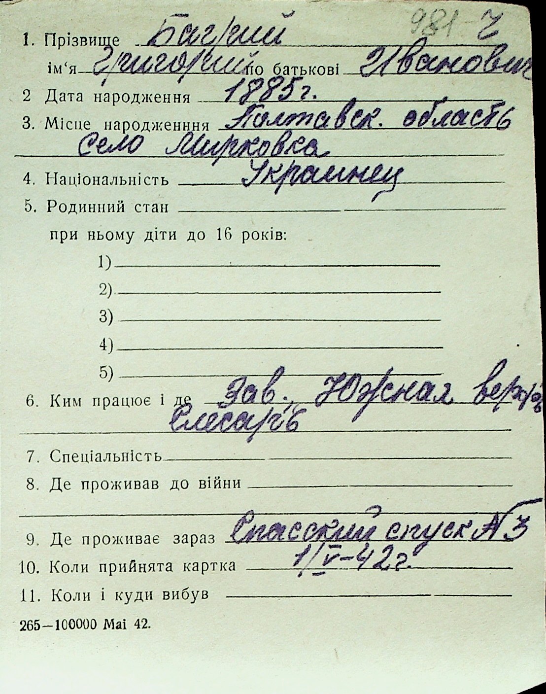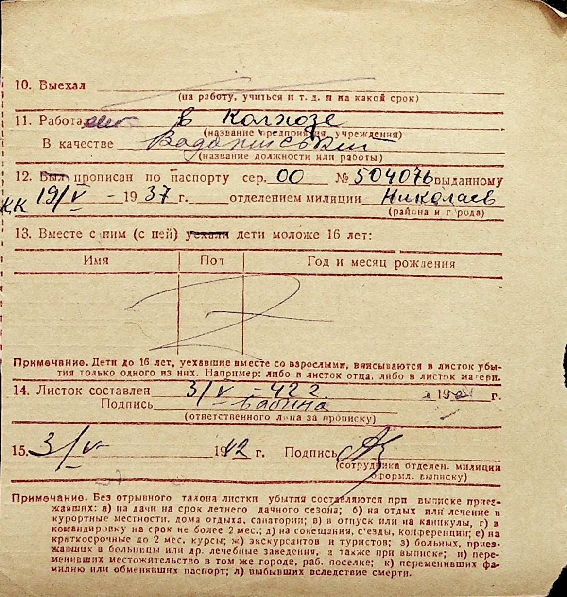 ◦ ◦ Перелік карток на осіб, які мешкали у м. Миколаїв у період окупації 1941–1944 років