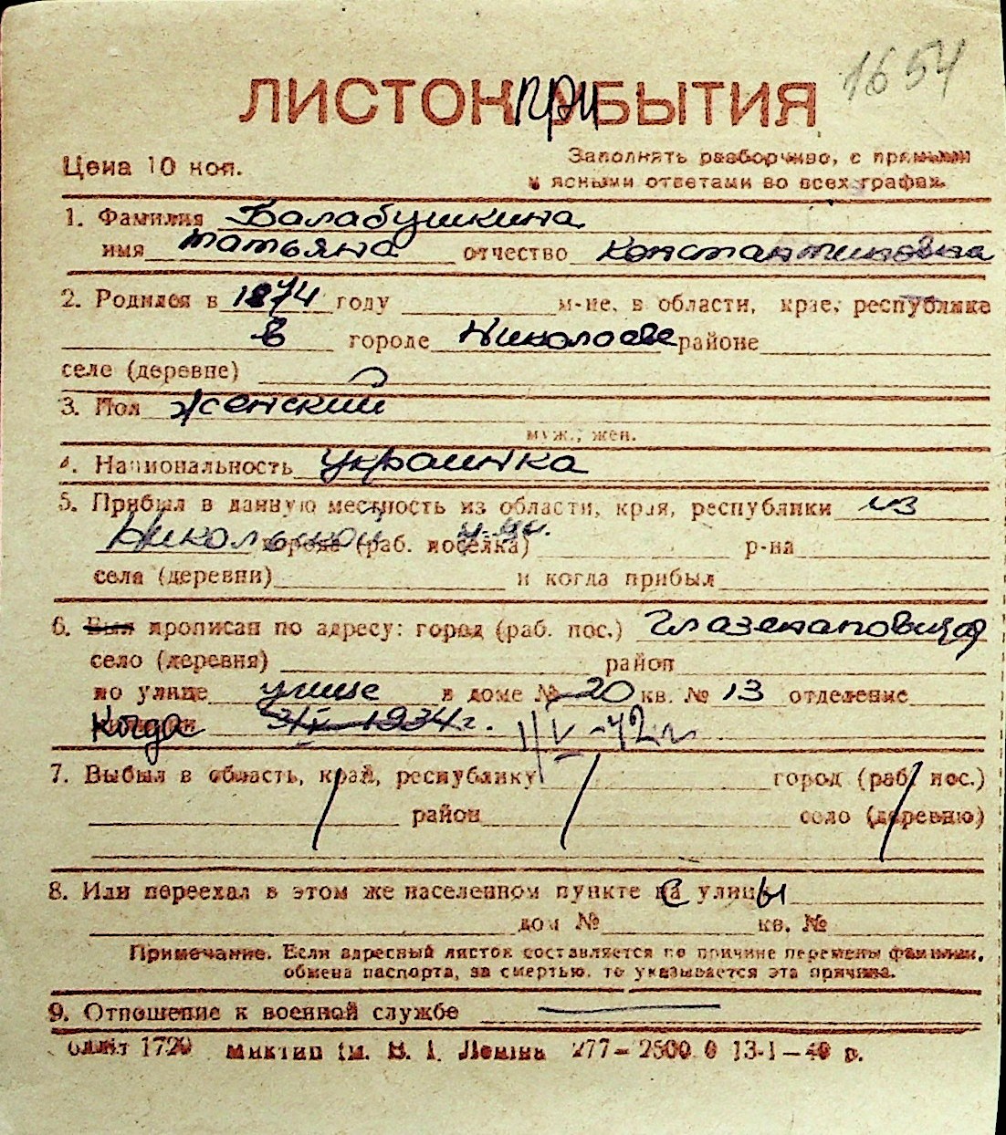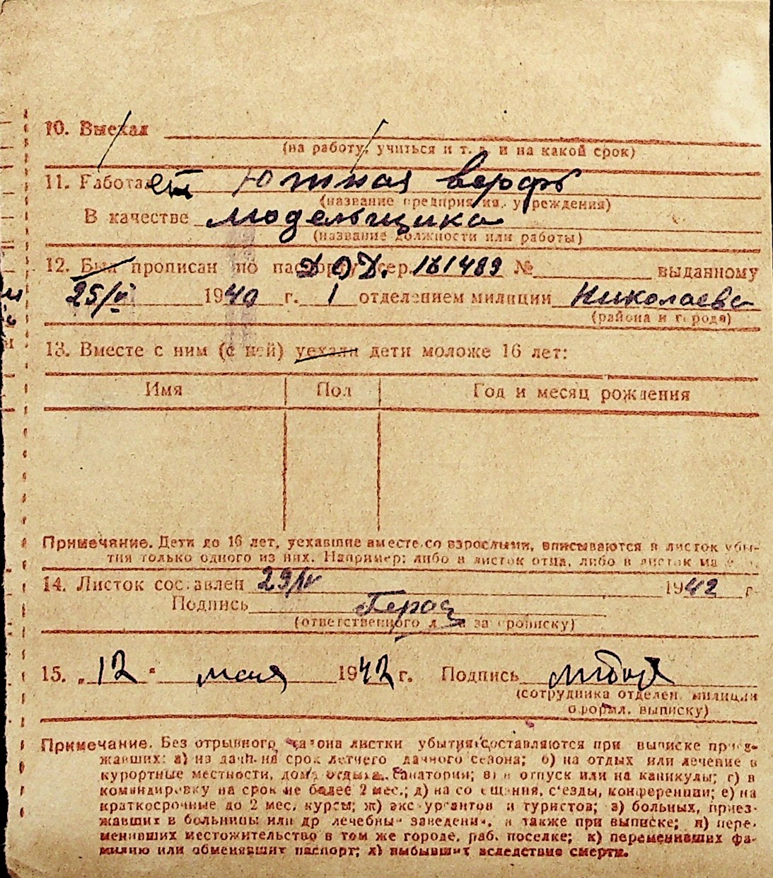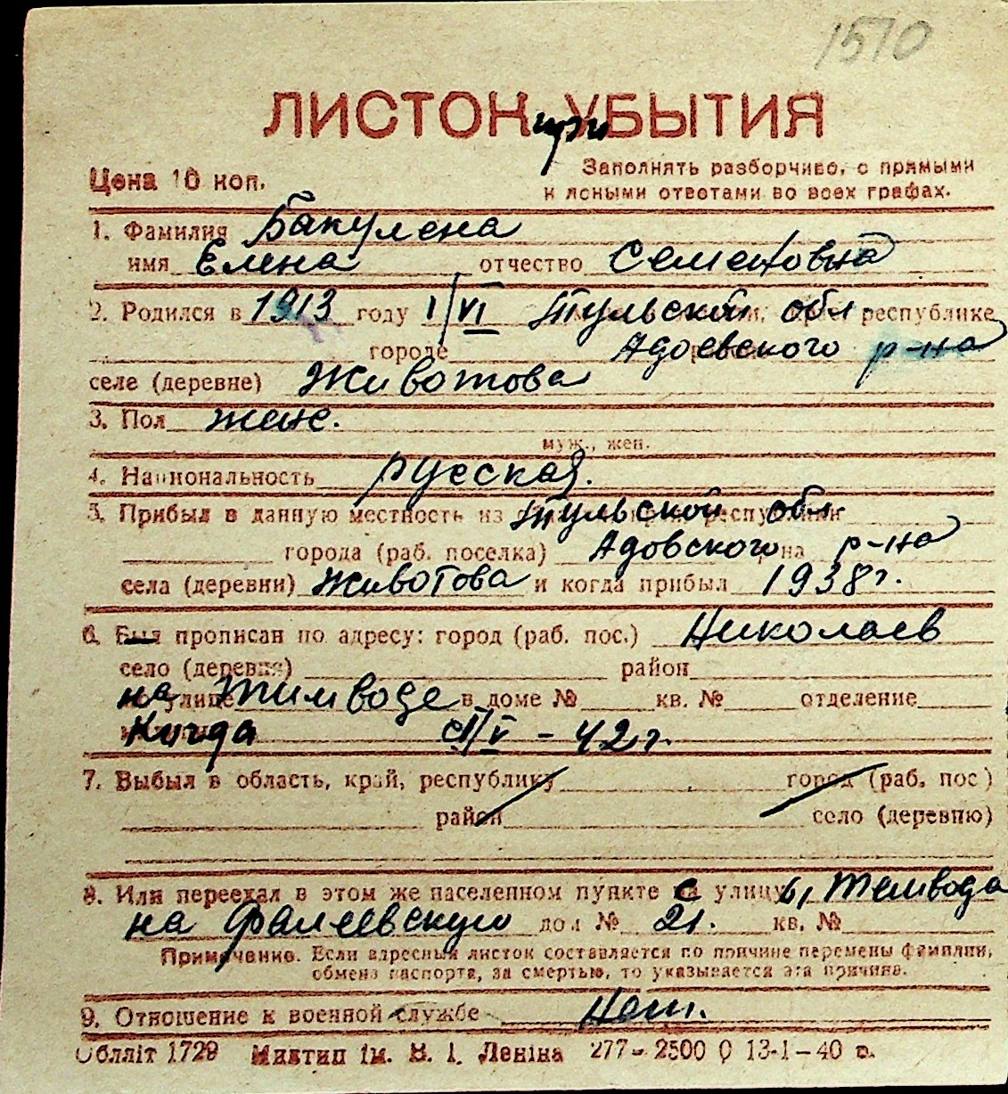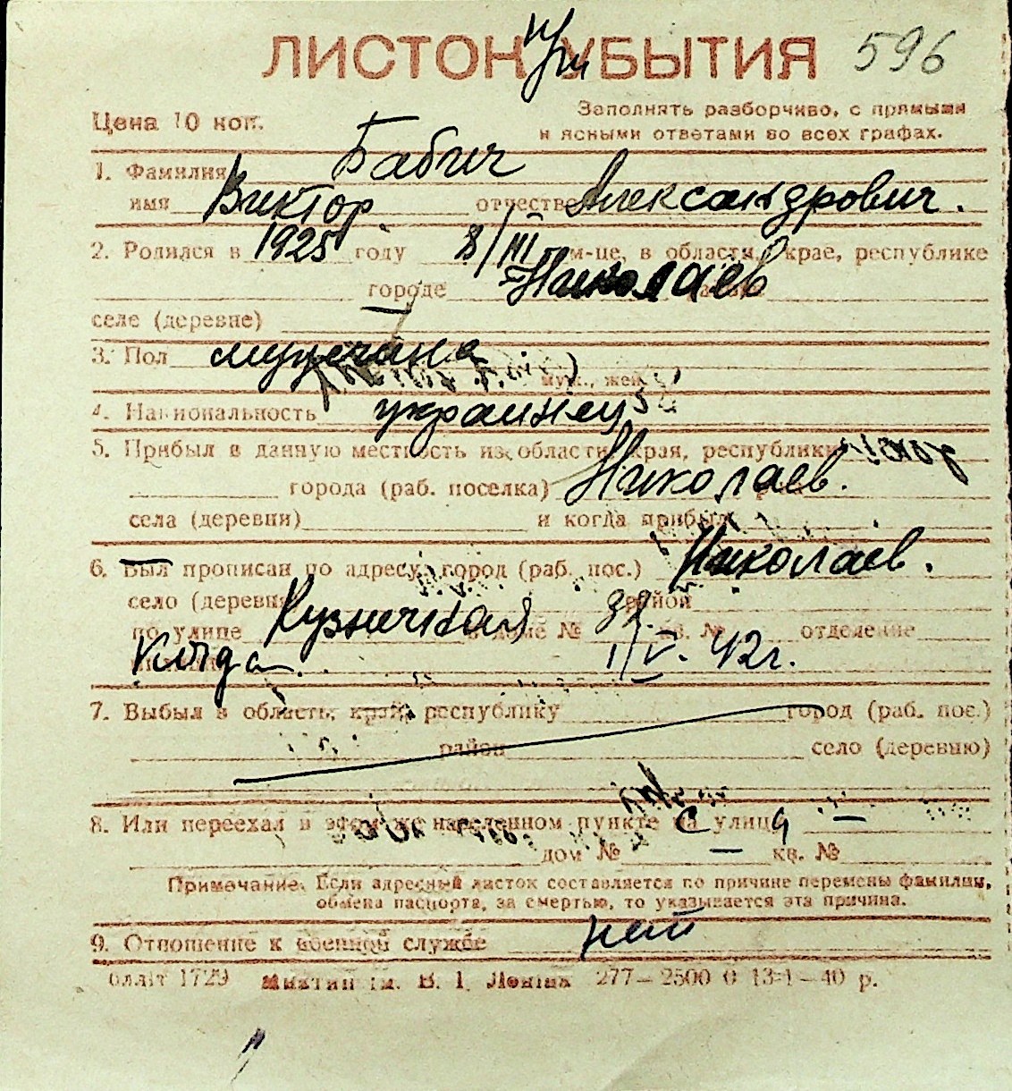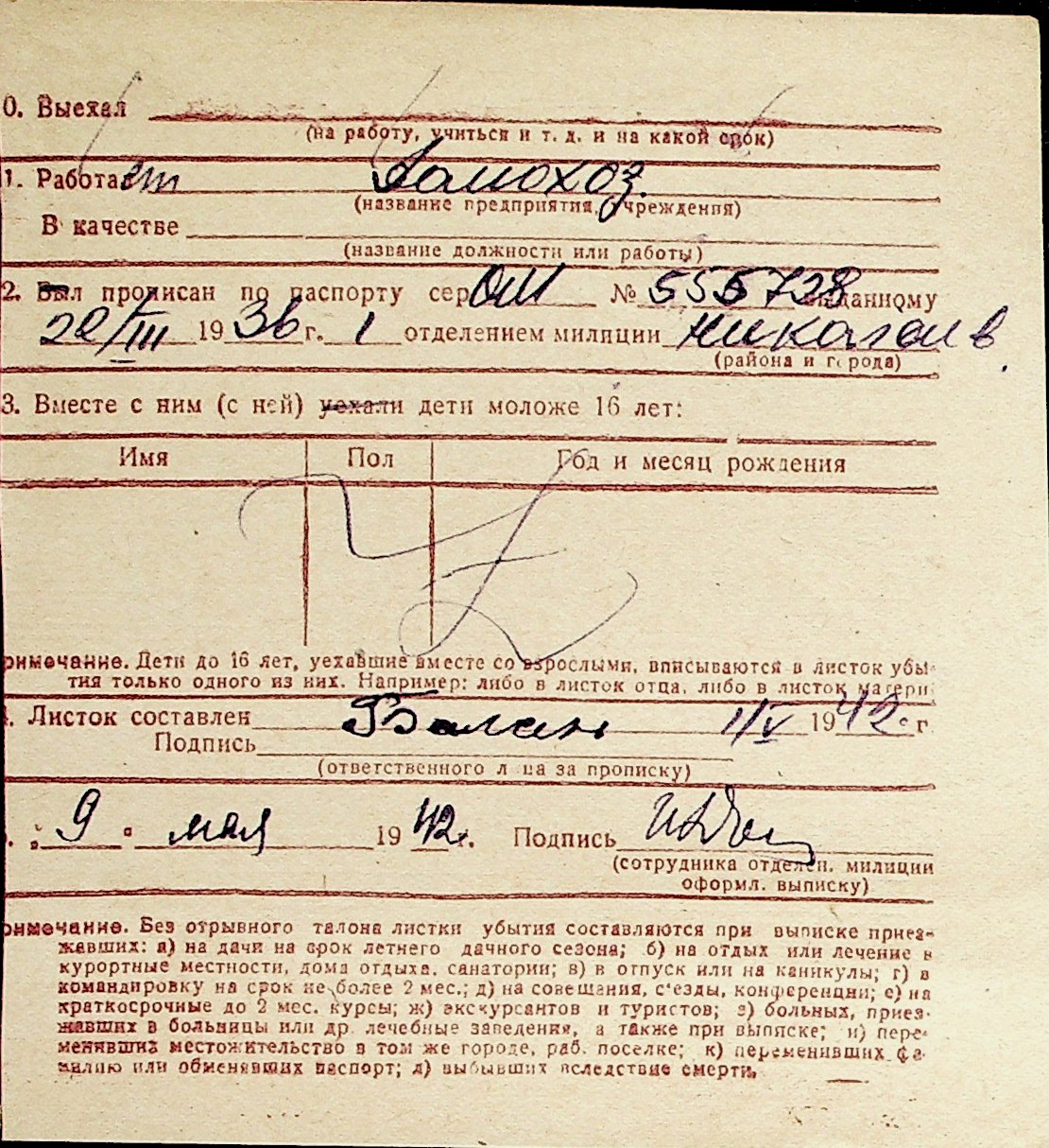 ◦ ◦ Перелік карток на осіб, які мешкали у м. Миколаїв у період окупації 1941–1944 років