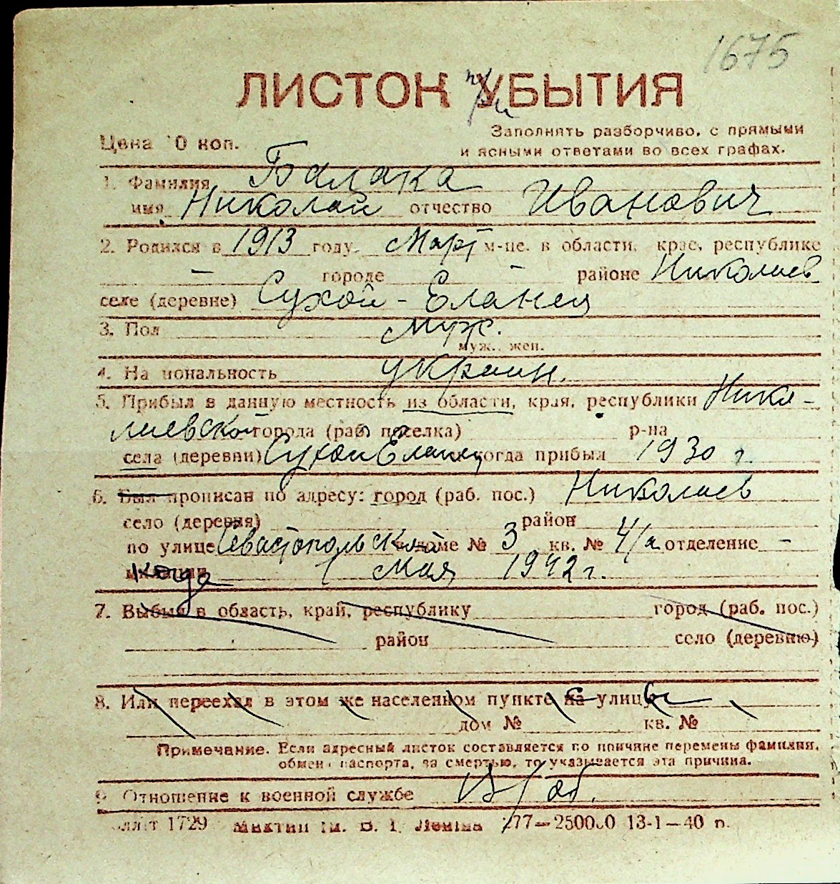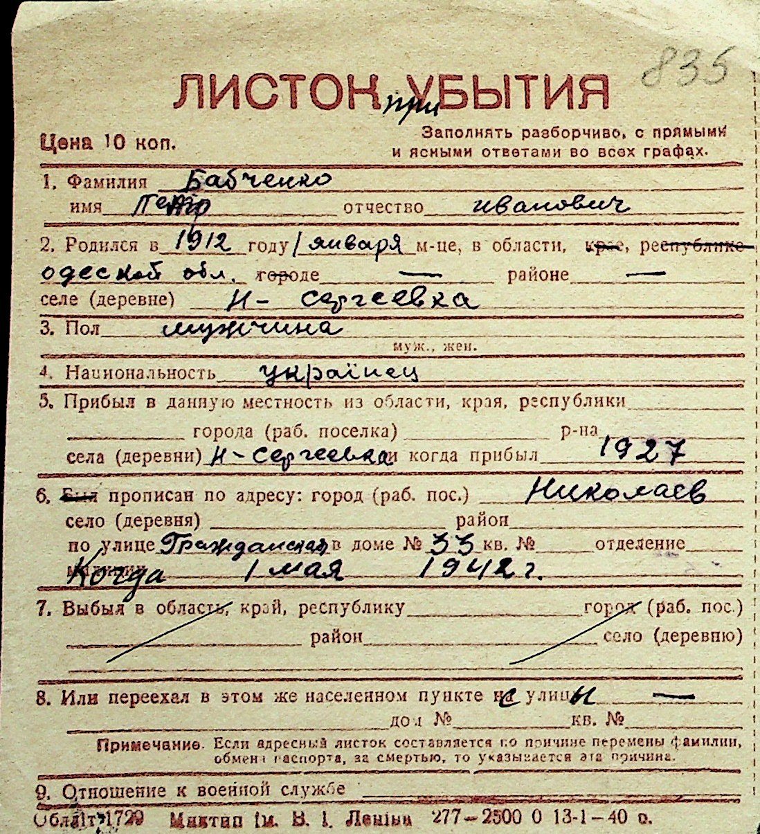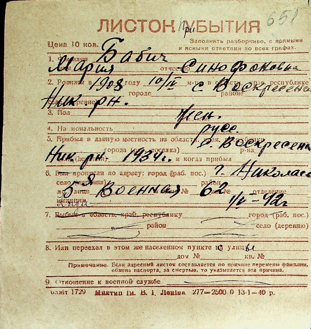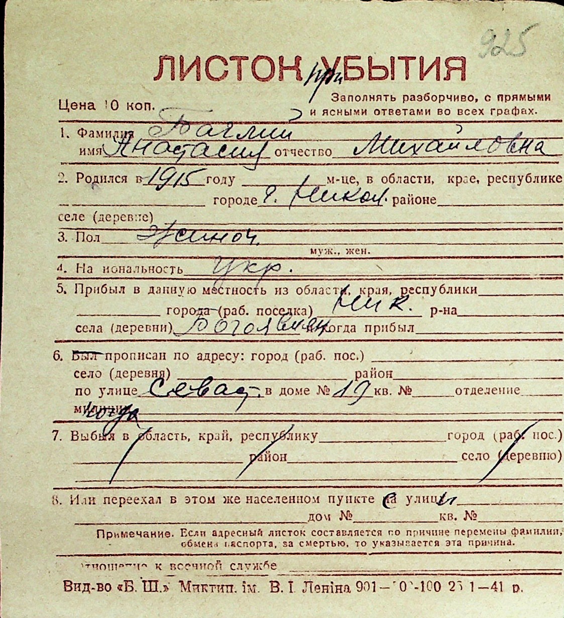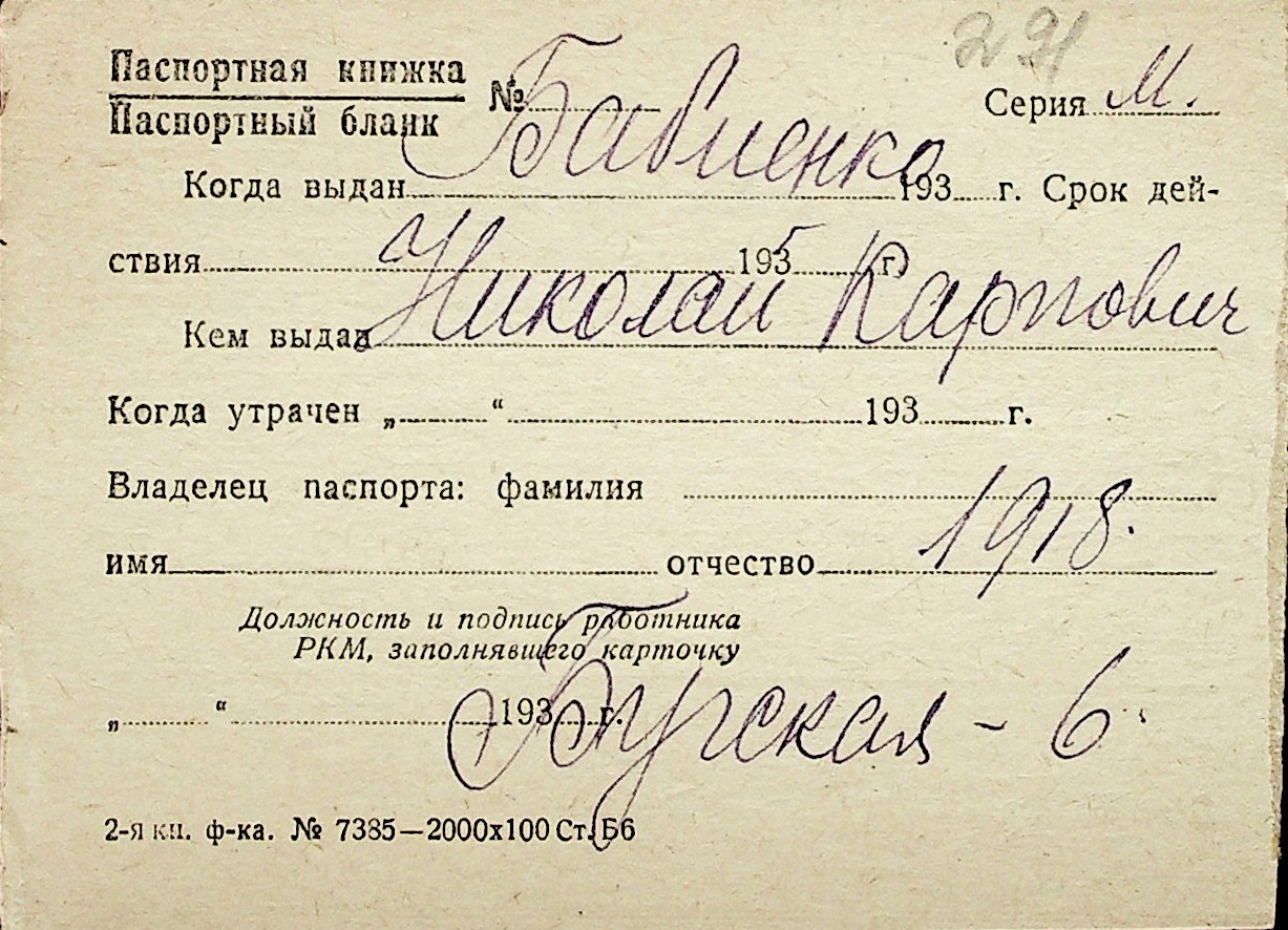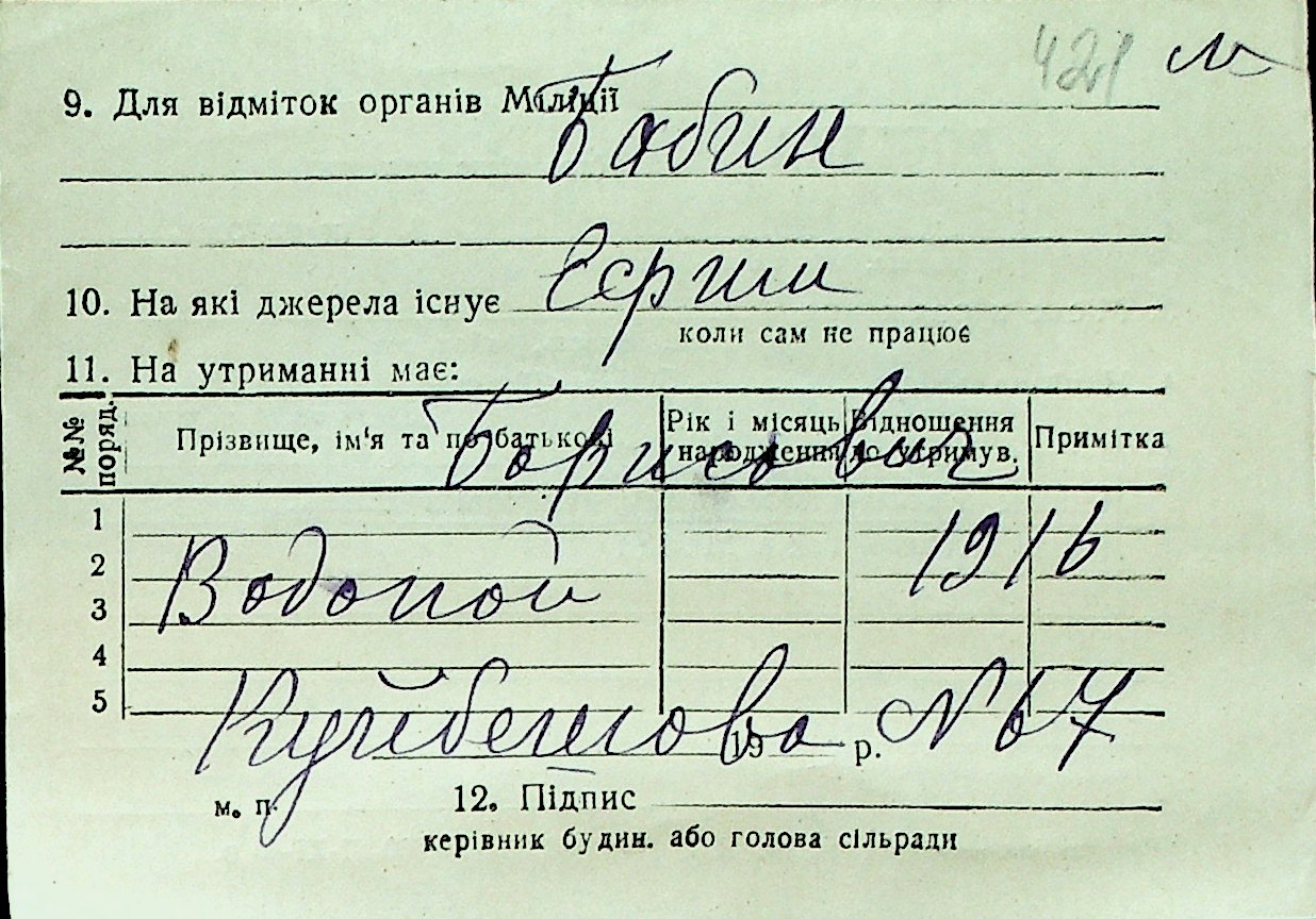 ◦ ◦ Перелік карток на осіб, які мешкали у м. Миколаїв у період окупації 1941–1944 років