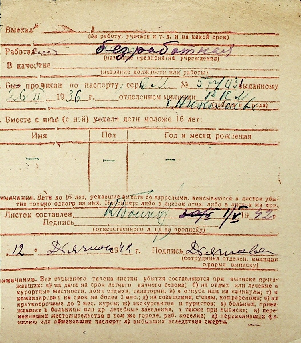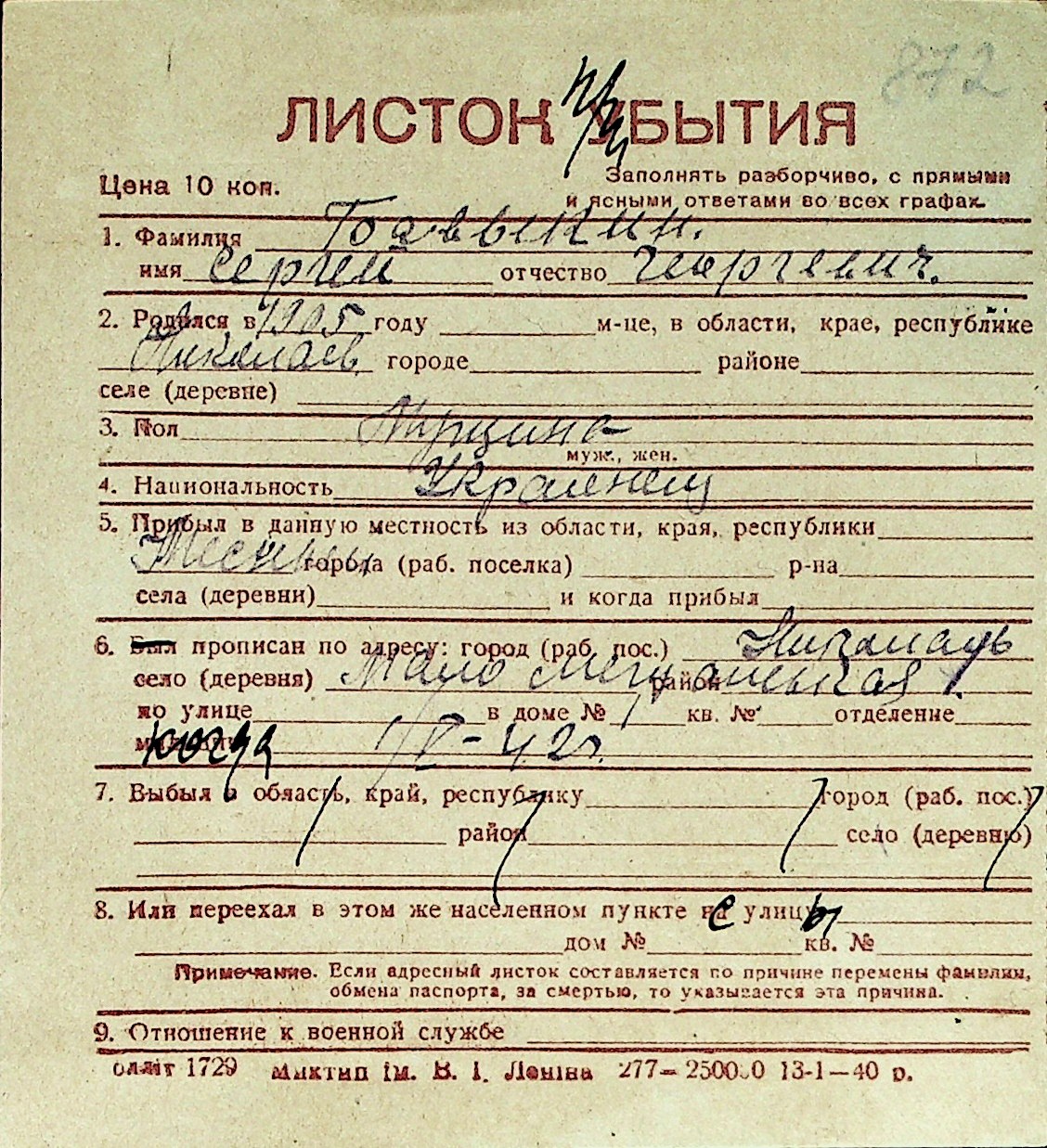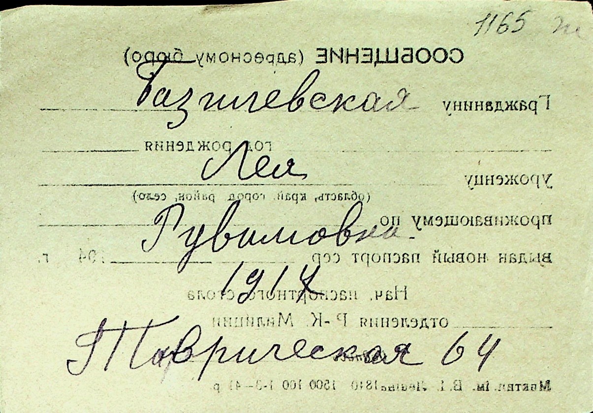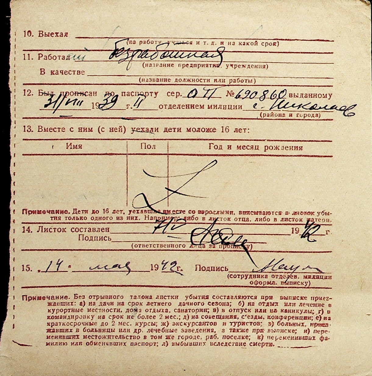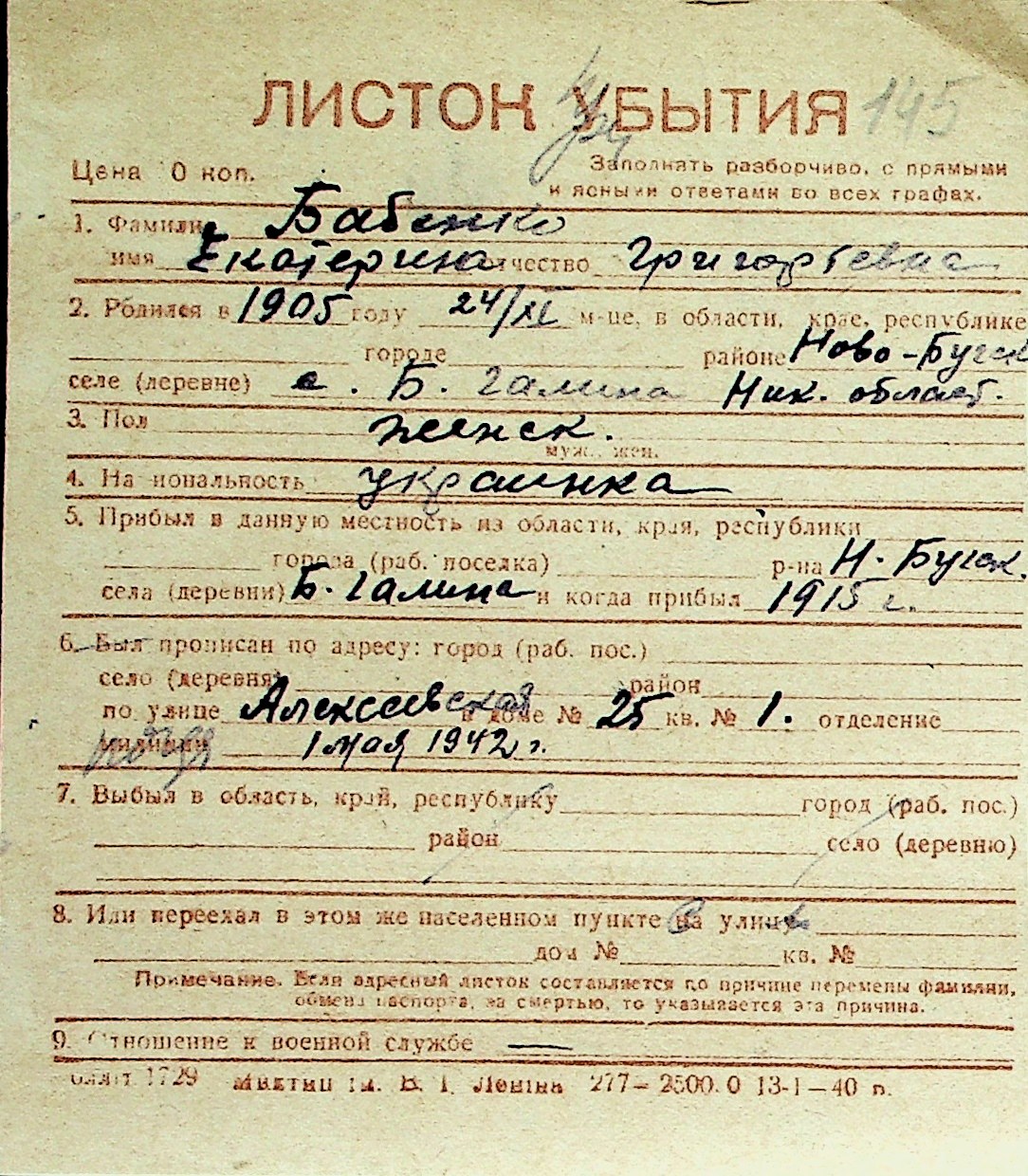 ◦ ◦ Перелік карток на осіб, які мешкали у м. Миколаїв у період окупації 1941–1944 років