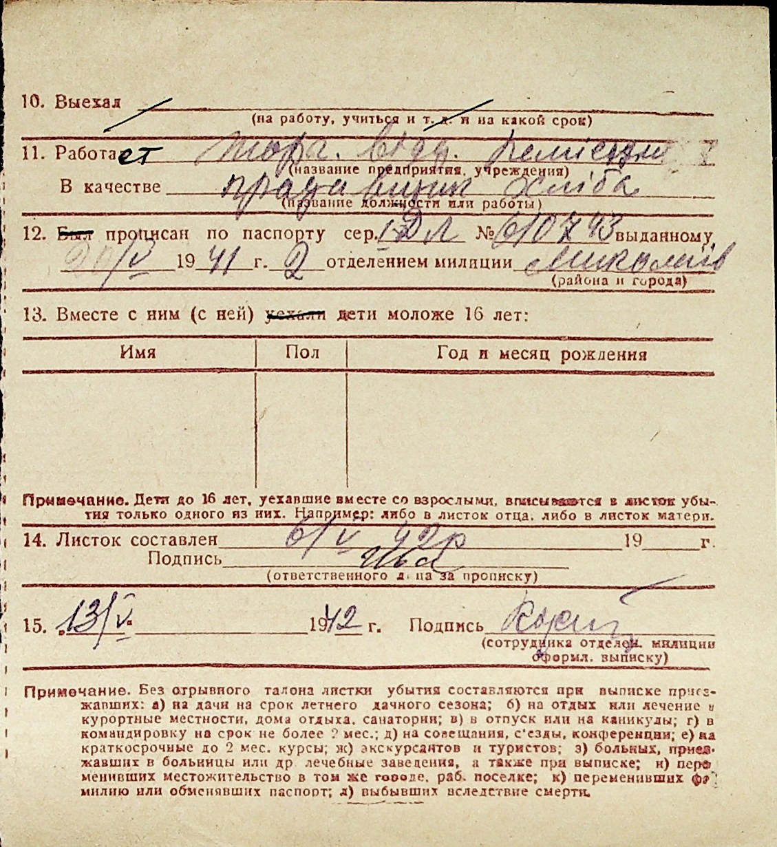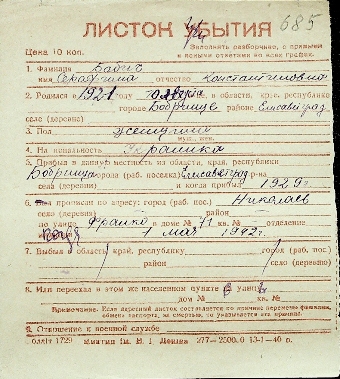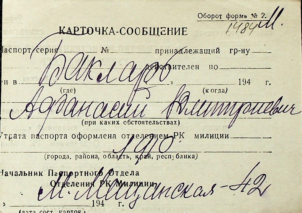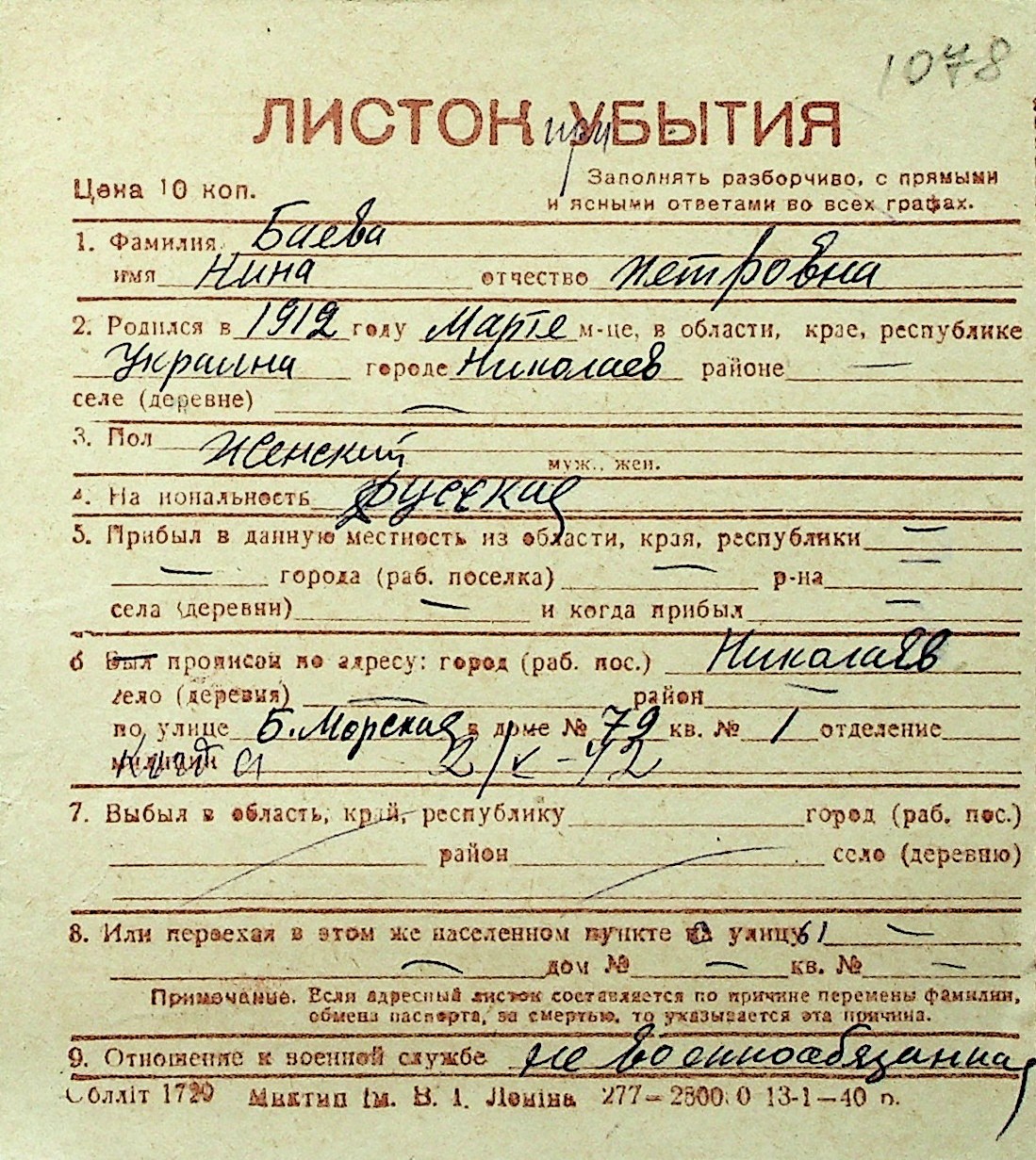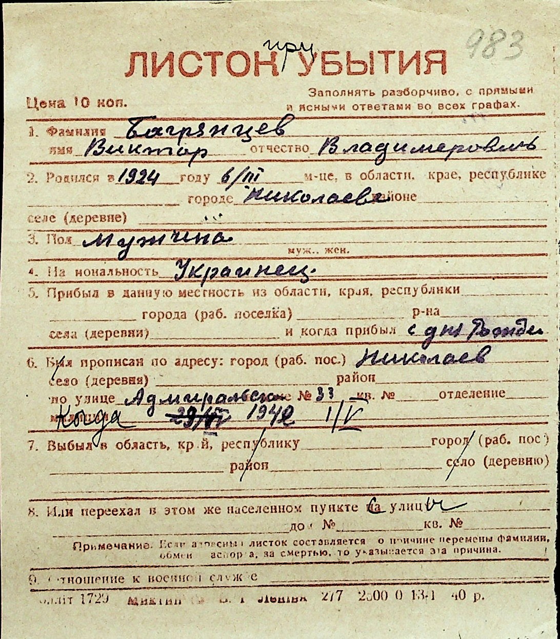 ◦ ◦ Перелік карток на осіб, які мешкали у м. Миколаїв у період окупації 1941–1944 років