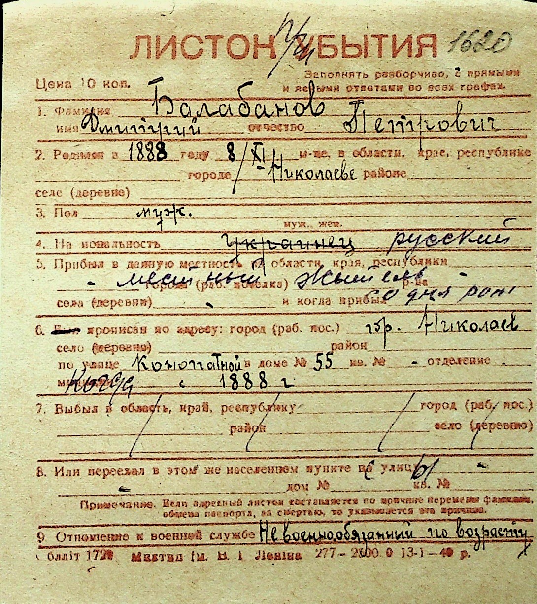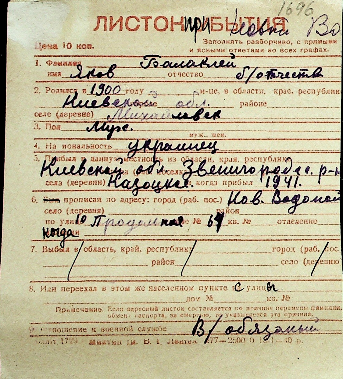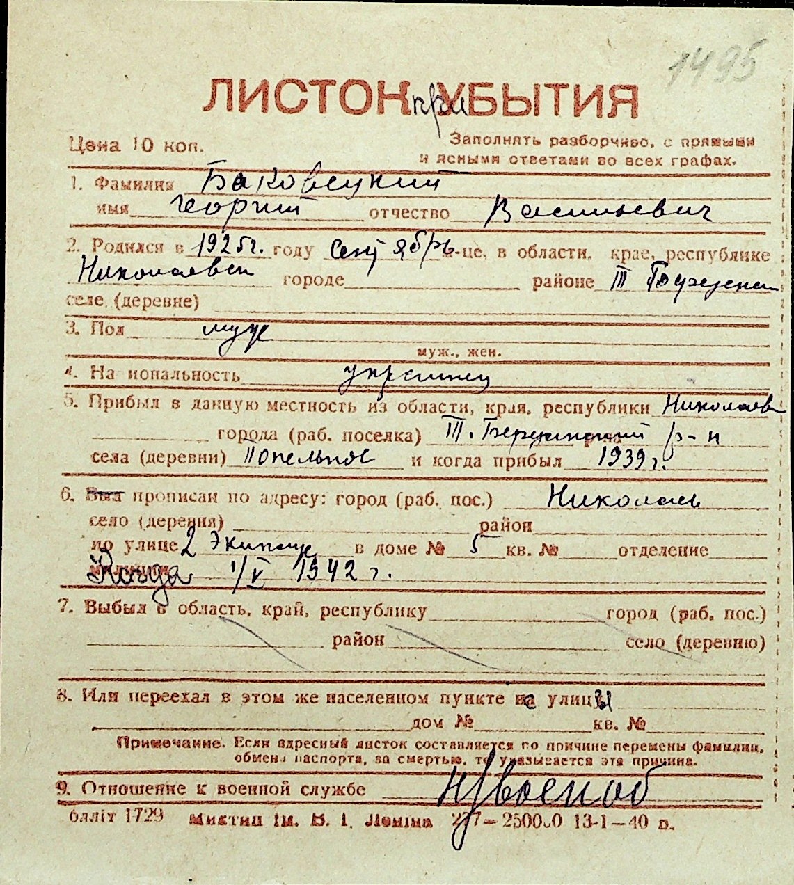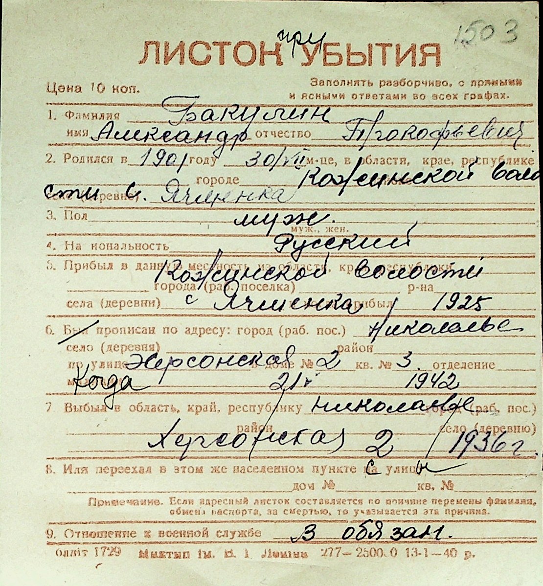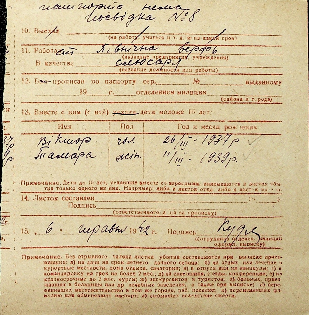 ◦ ◦ Перелік карток на осіб, які мешкали у м. Миколаїв у період окупації 1941–1944 років