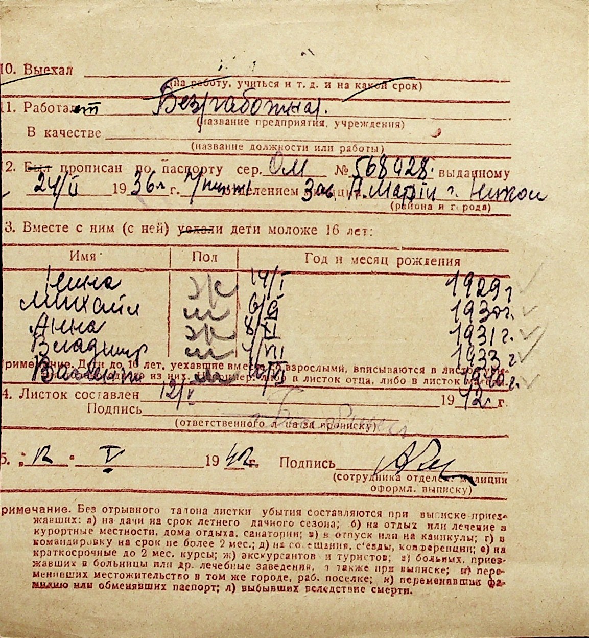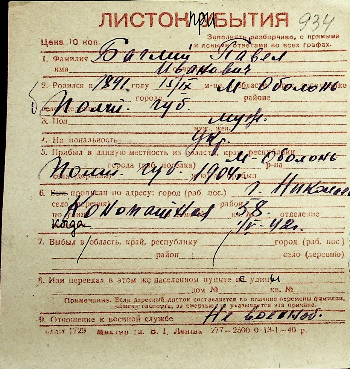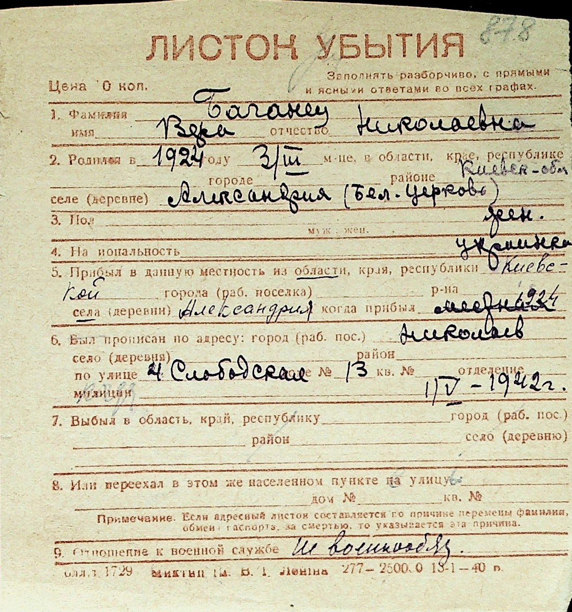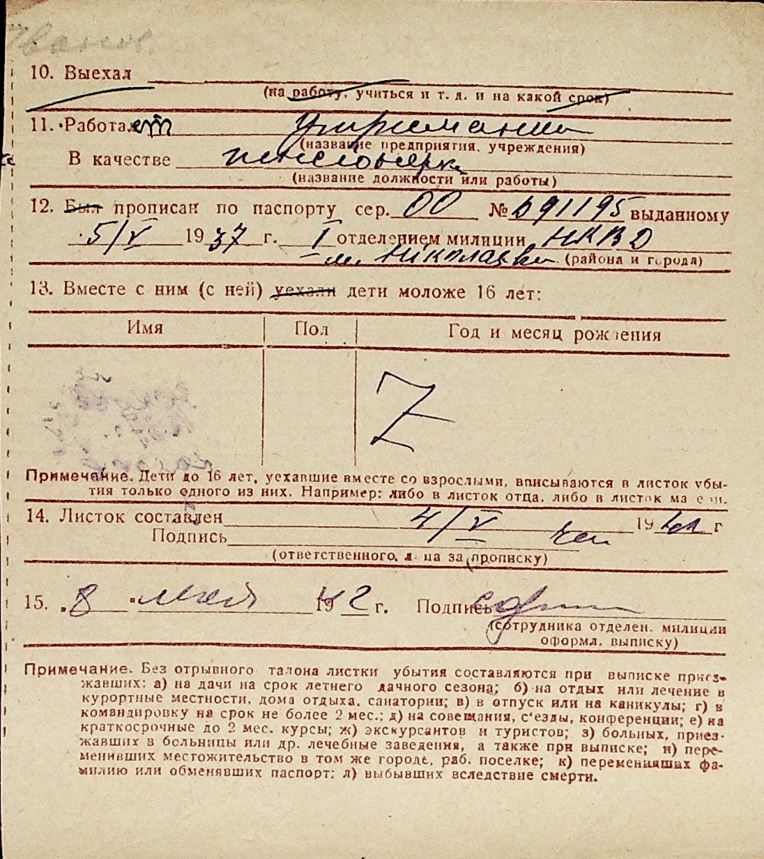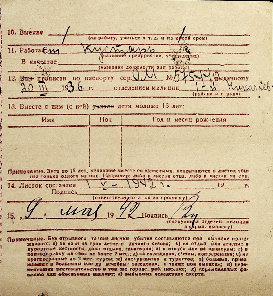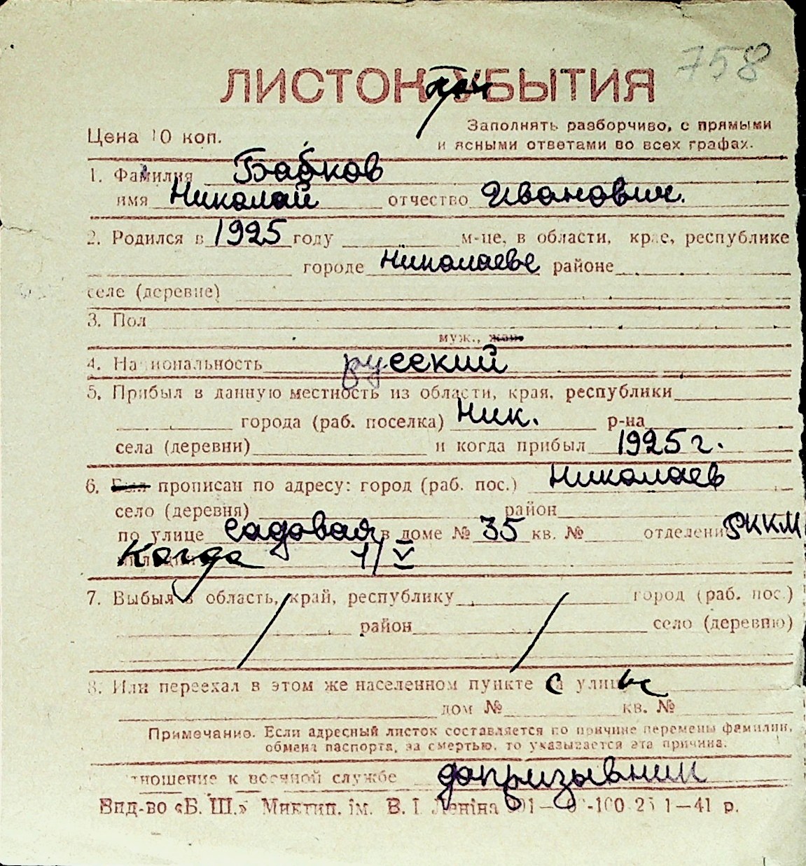 ◦ ◦ Перелік карток на осіб, які мешкали у м. Миколаїв у період окупації 1941–1944 років