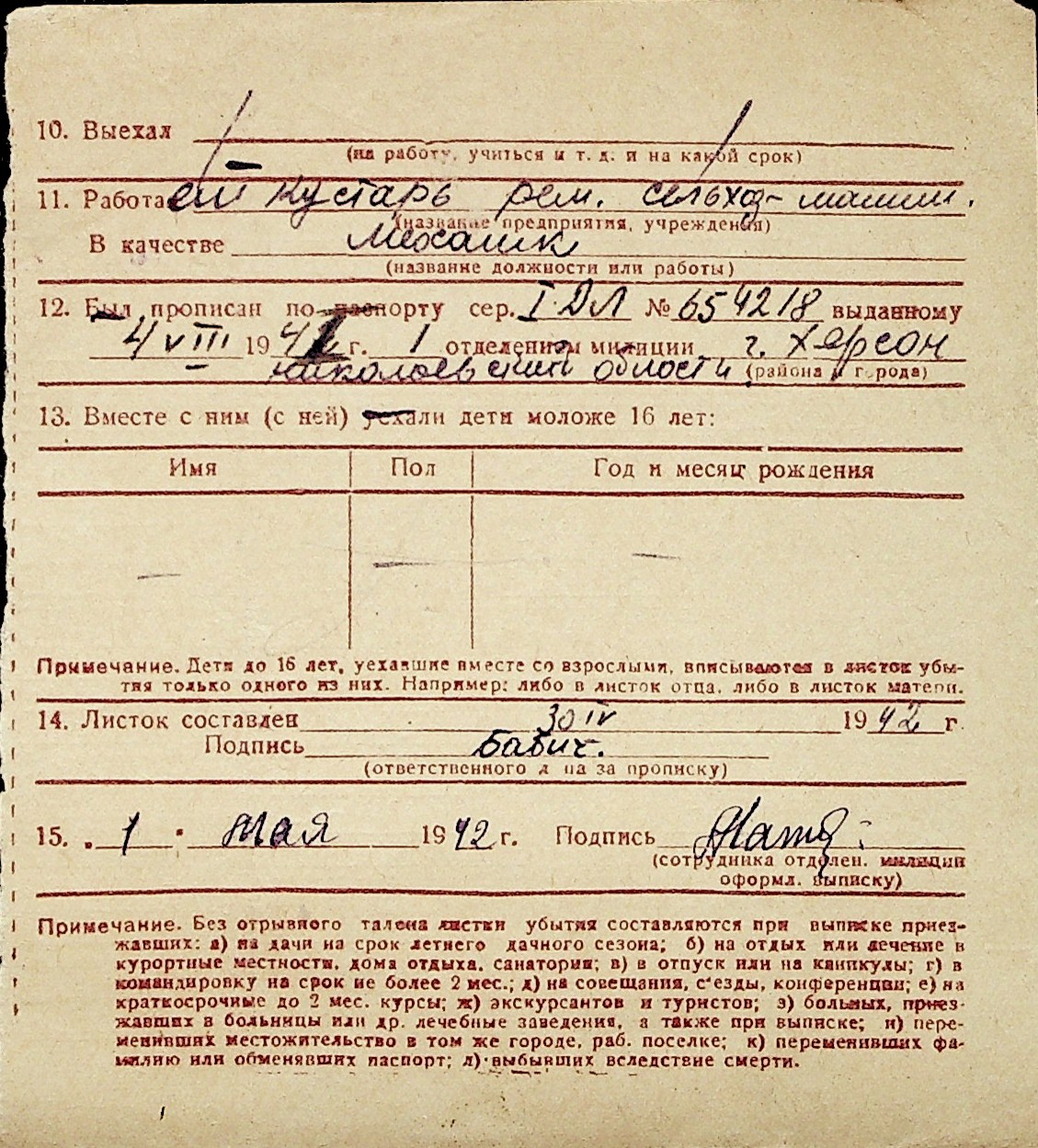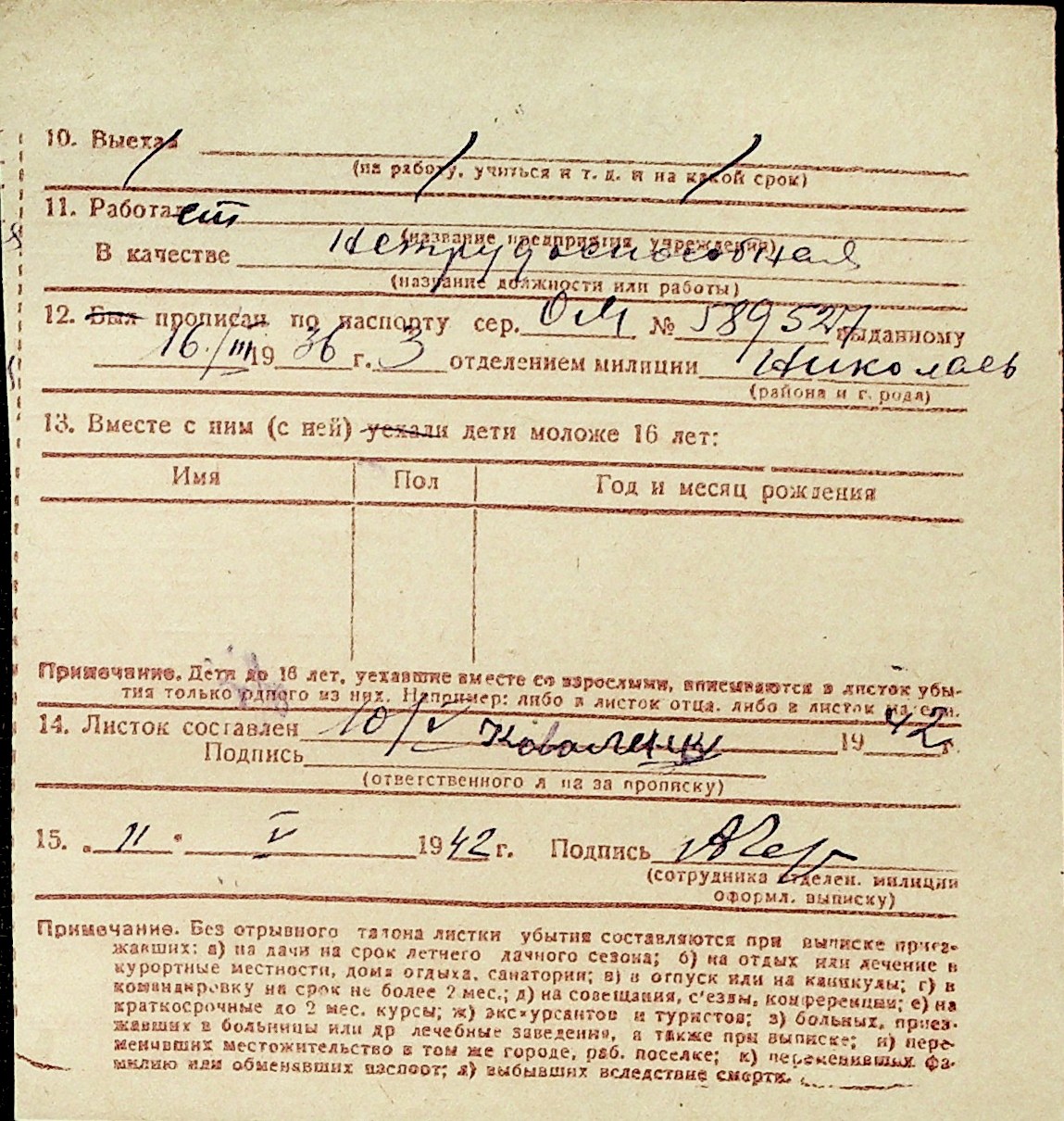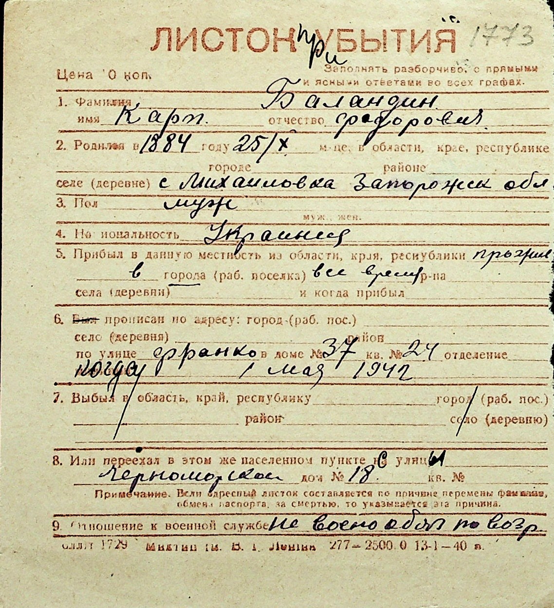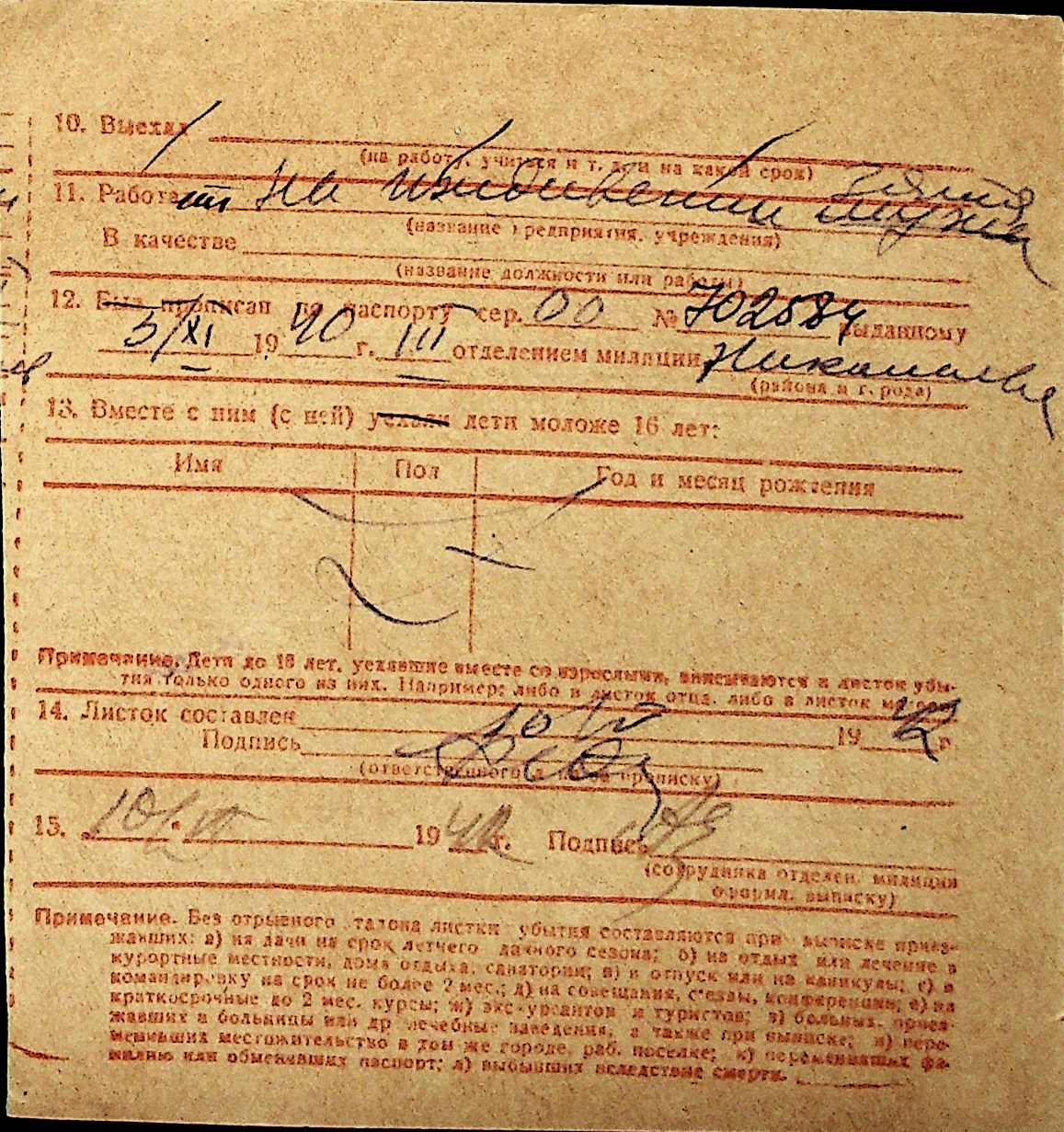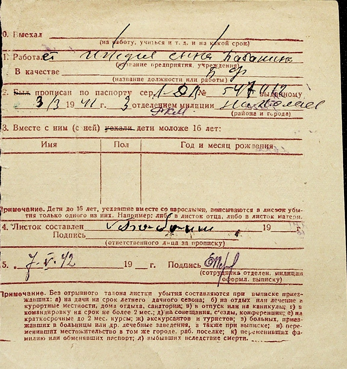 ◦ ◦ Перелік карток на осіб, які мешкали у м. Миколаїв у період окупації 1941–1944 років