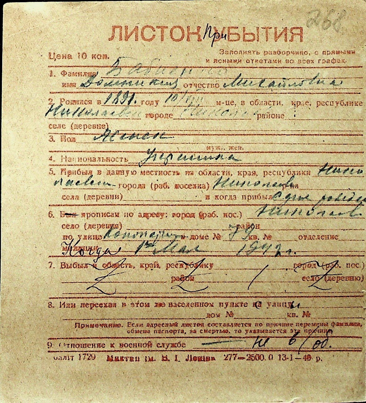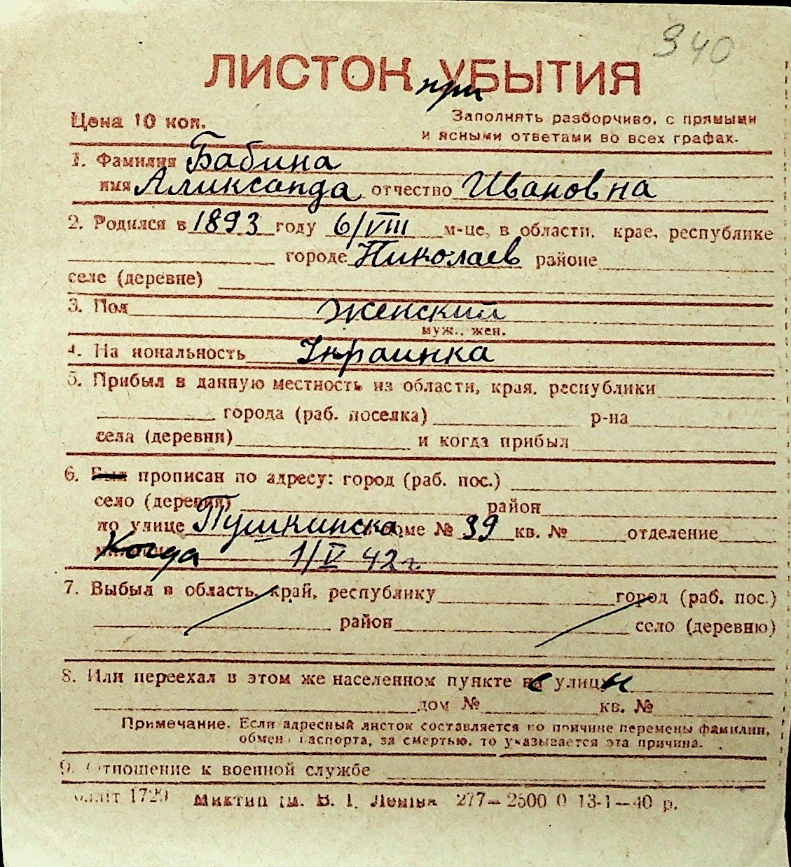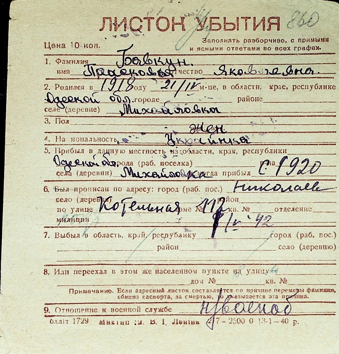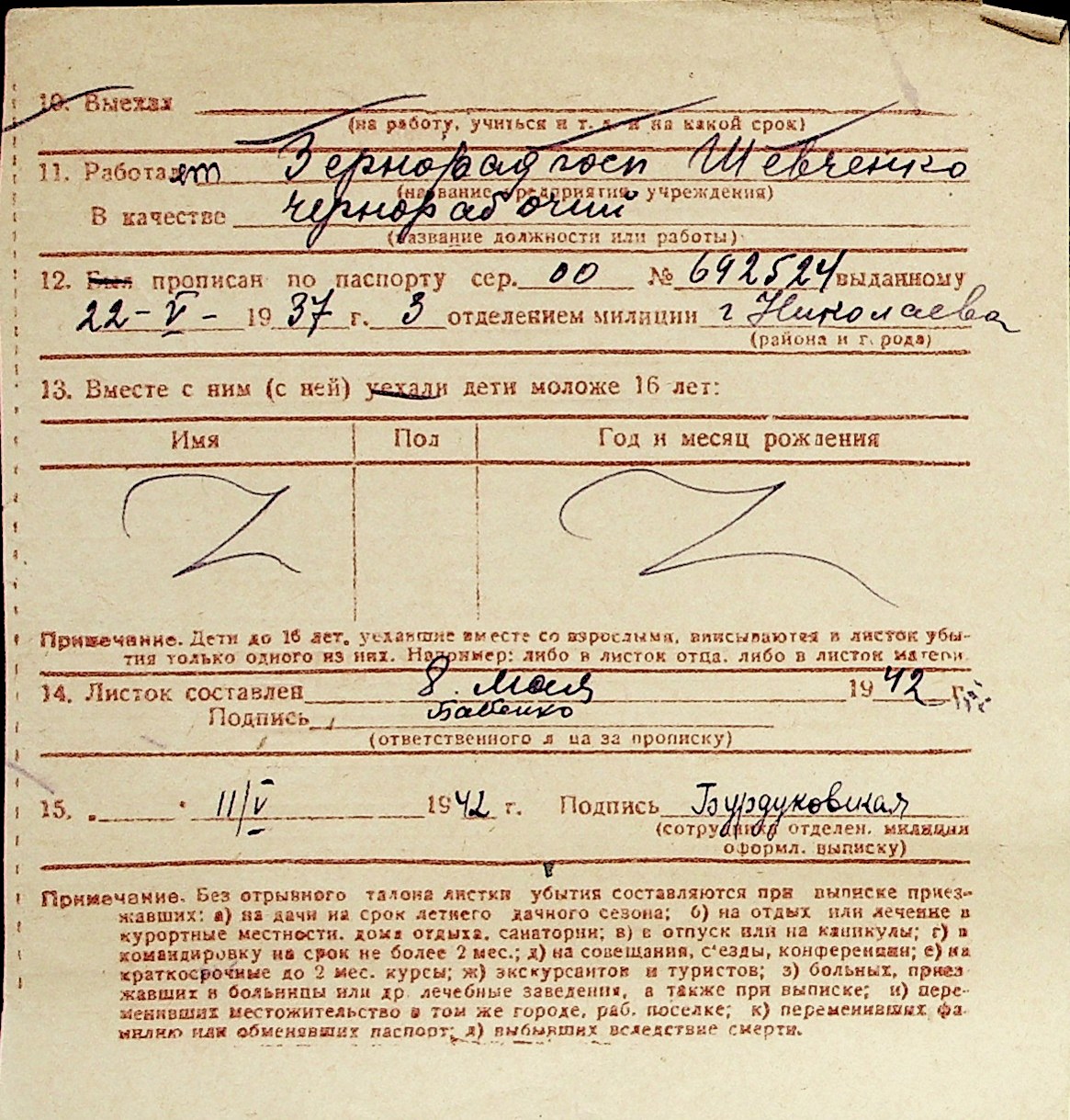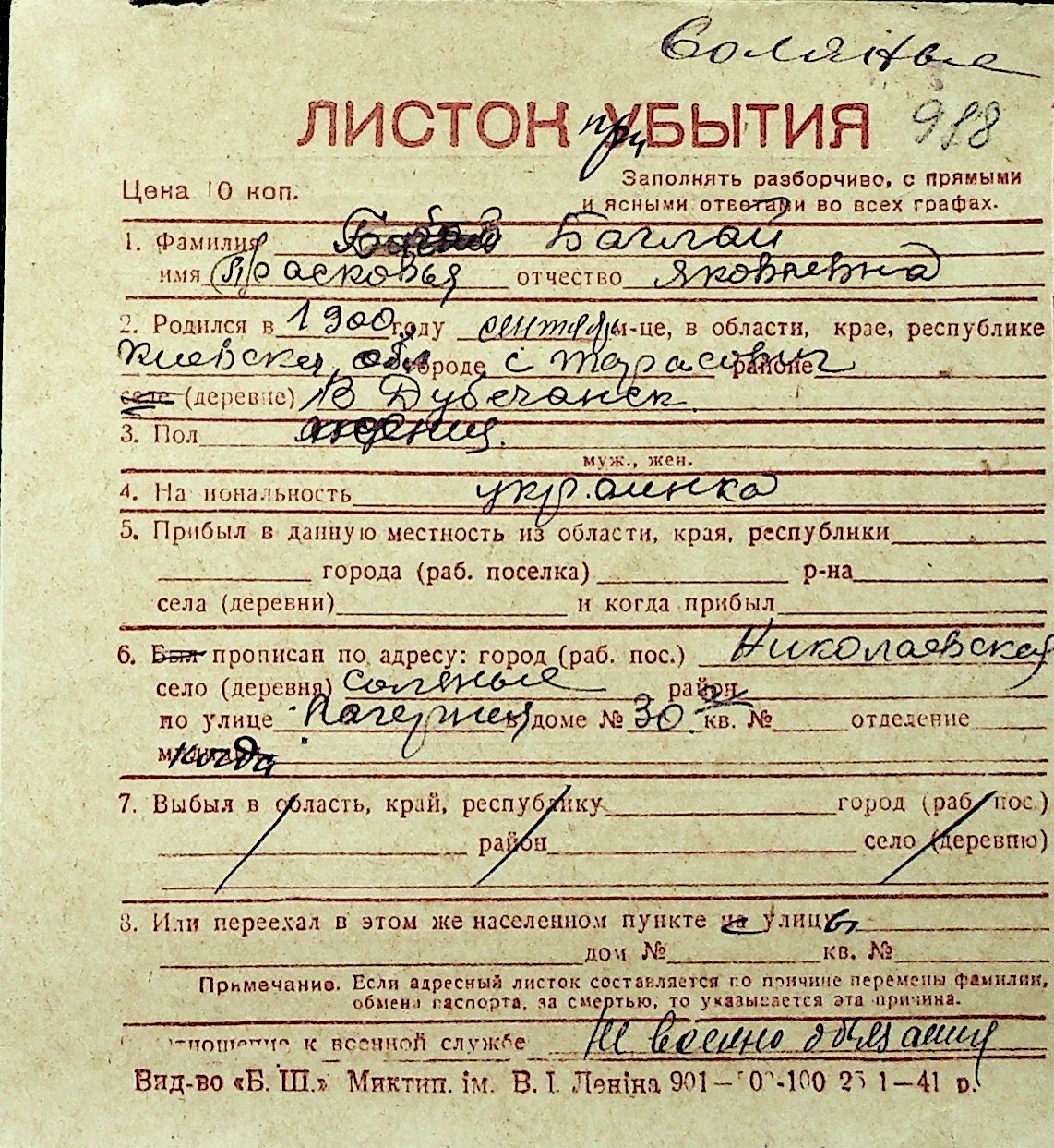 ◦ ◦ Перелік карток на осіб, які мешкали у м. Миколаїв у період окупації 1941–1944 років