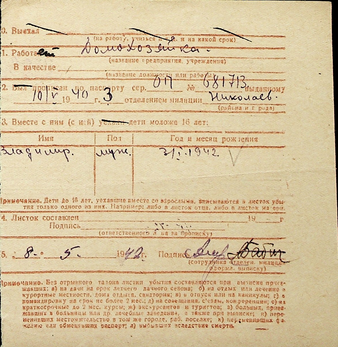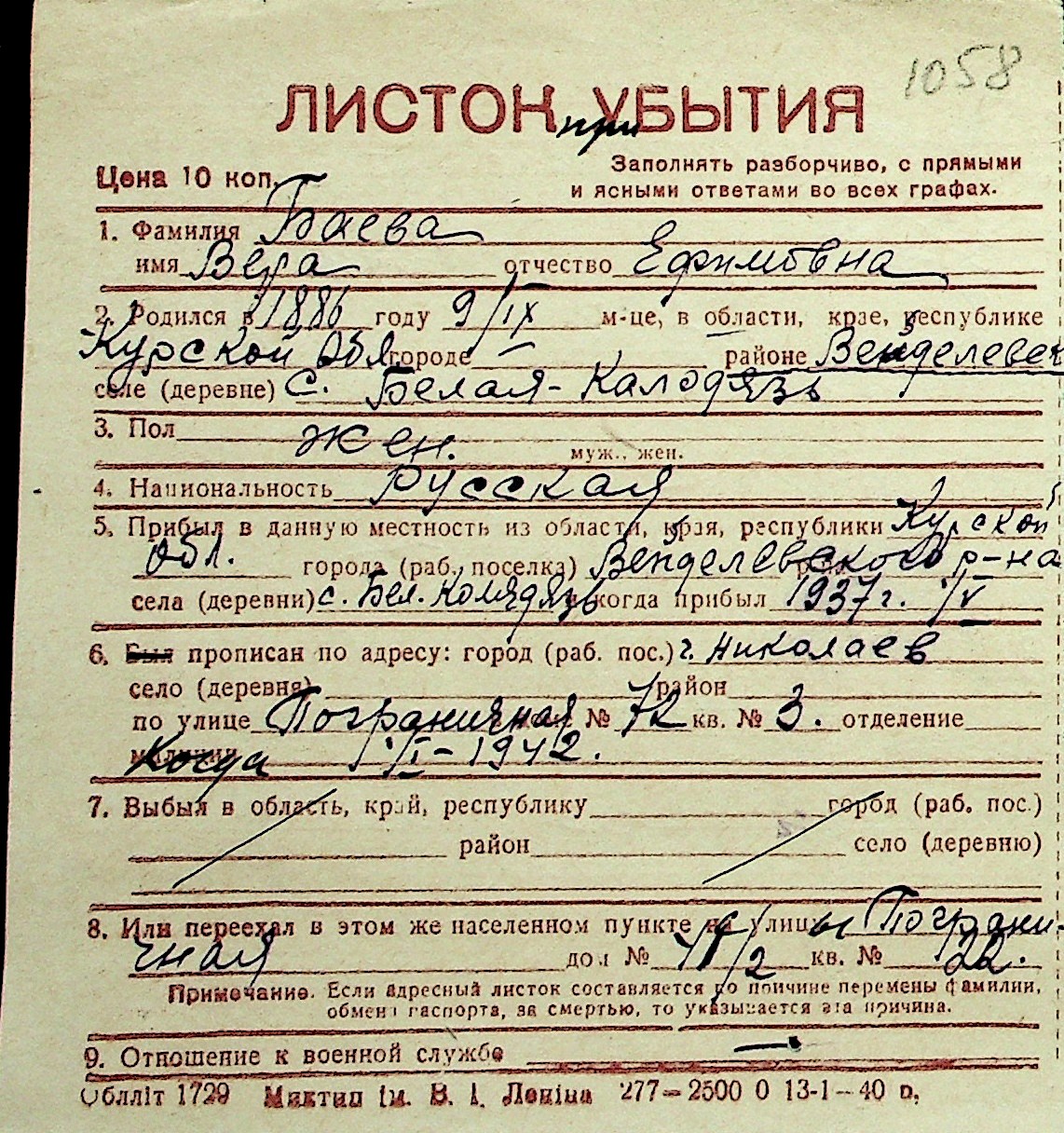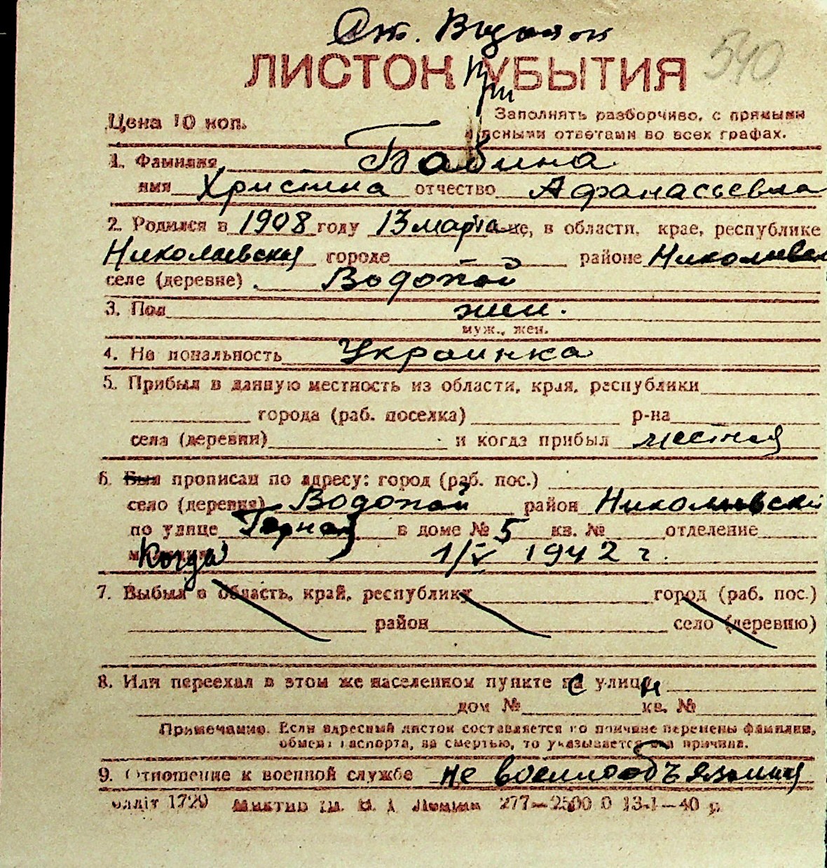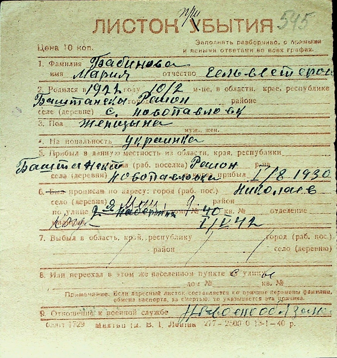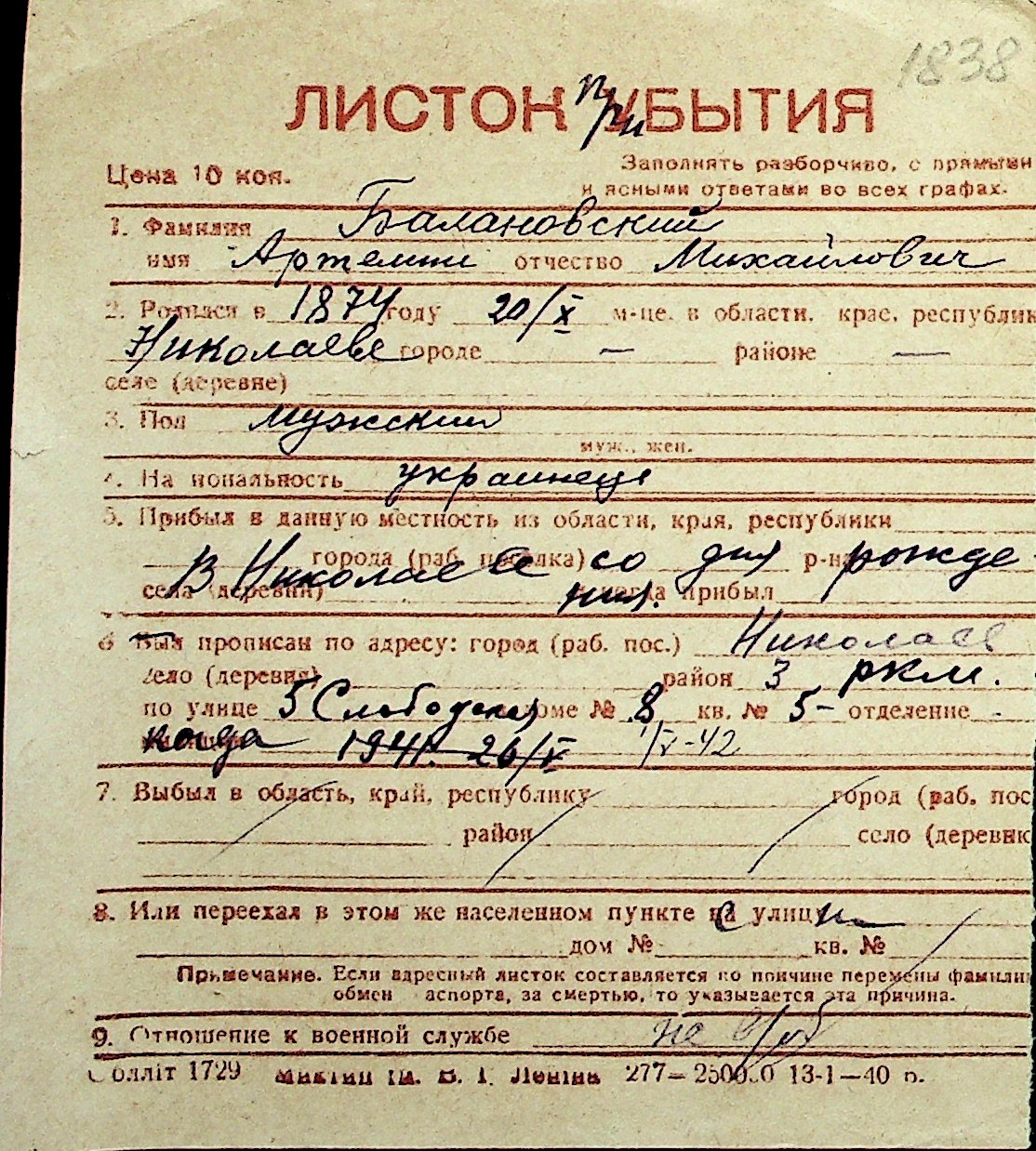 ◦ ◦ Перелік карток на осіб, які мешкали у м. Миколаїв у період окупації 1941–1944 років