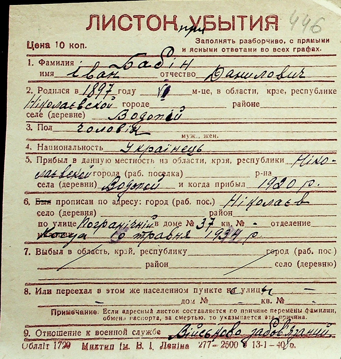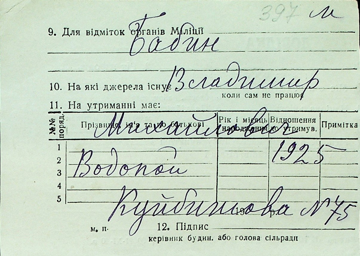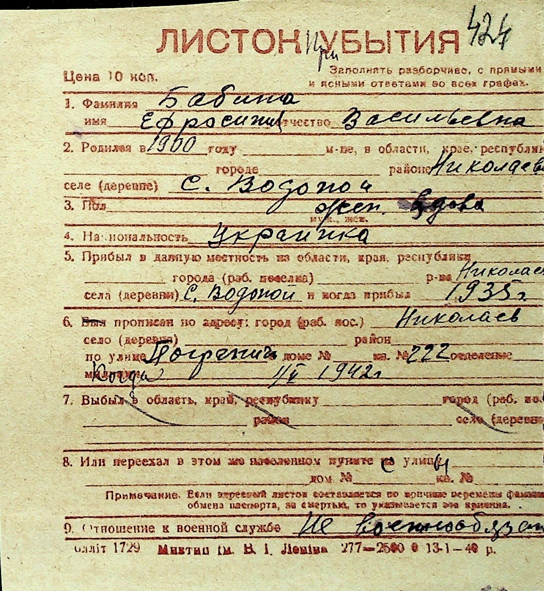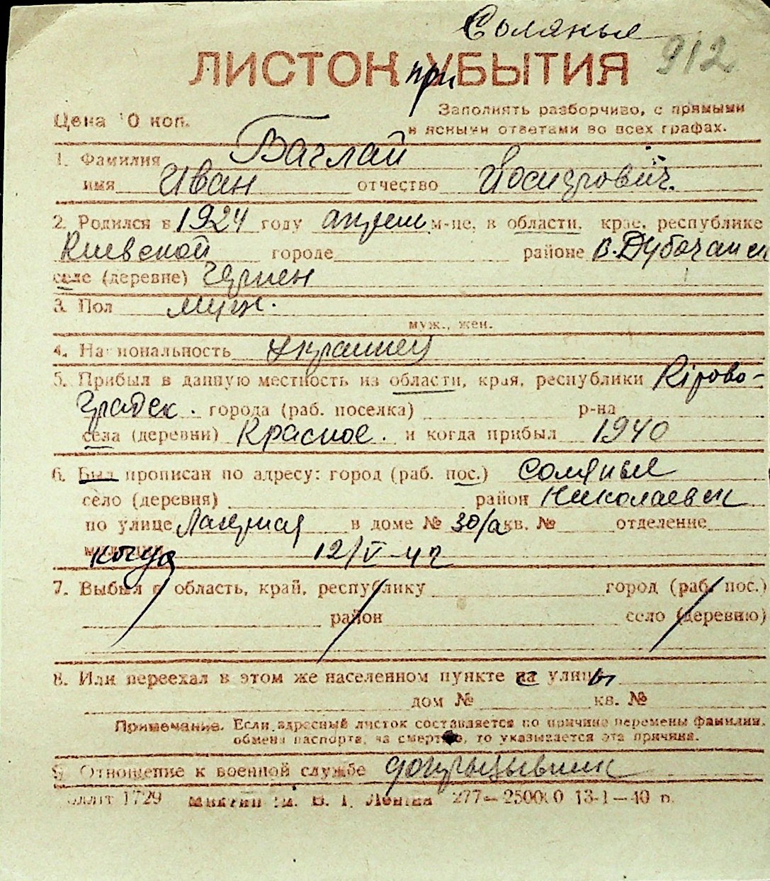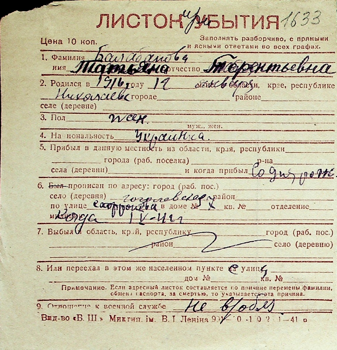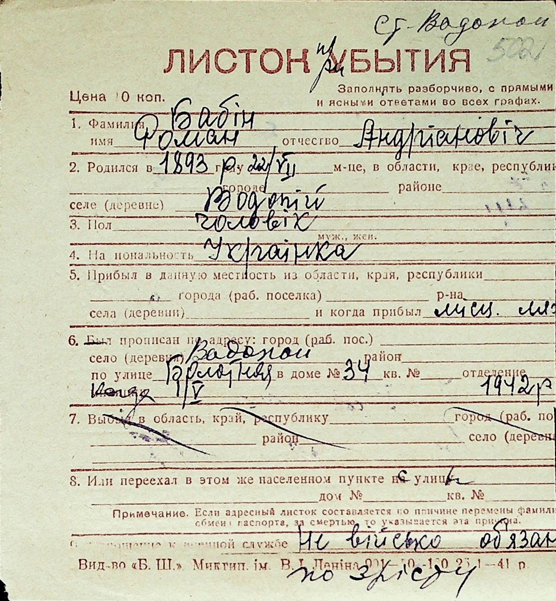 ◦ ◦ Перелік карток на осіб, які мешкали у м. Миколаїв у період окупації 1941–1944 років