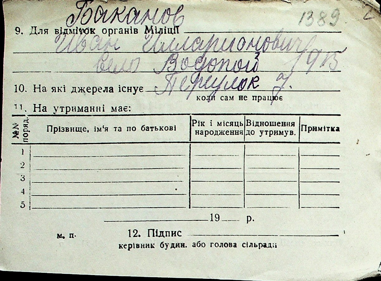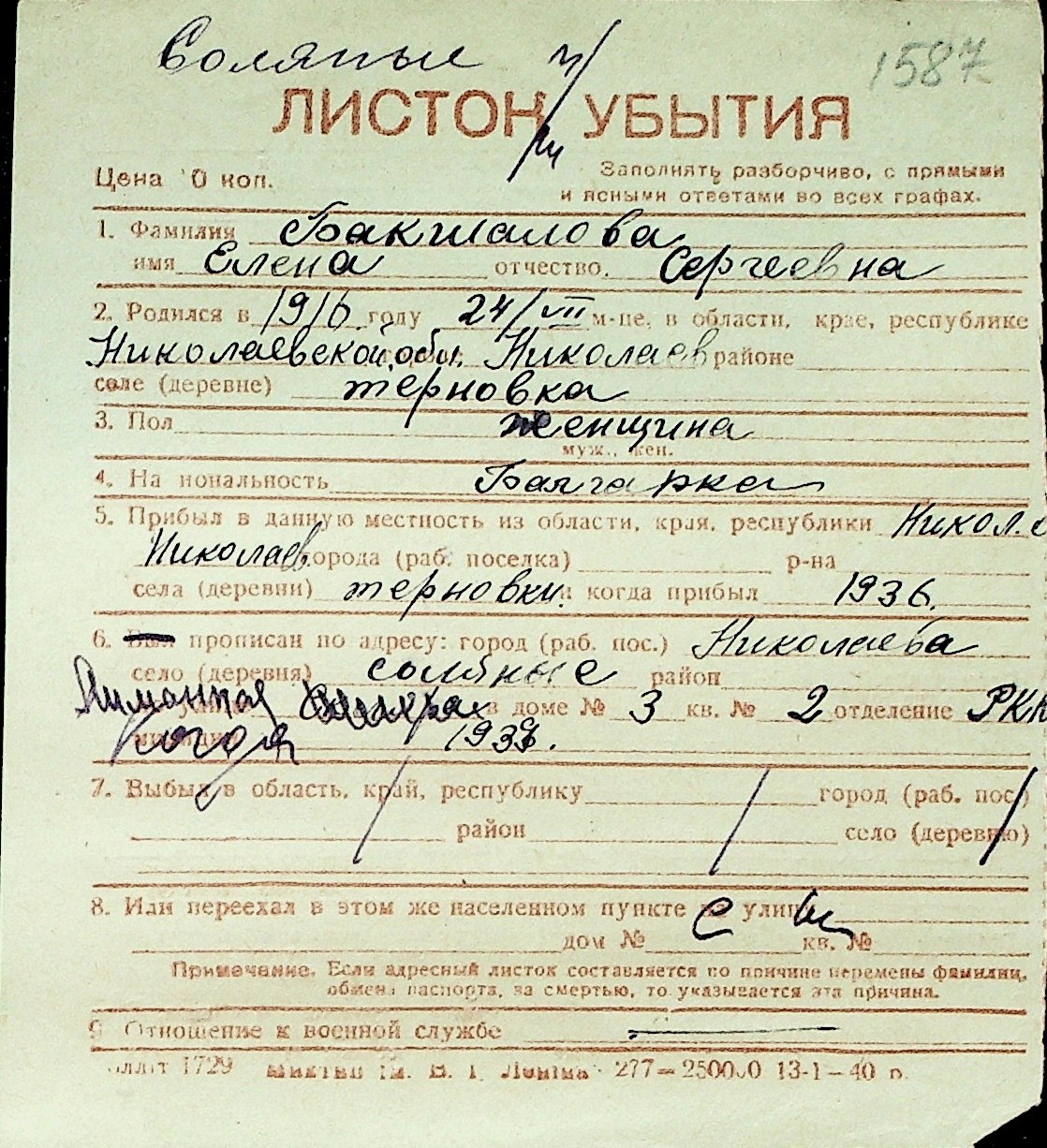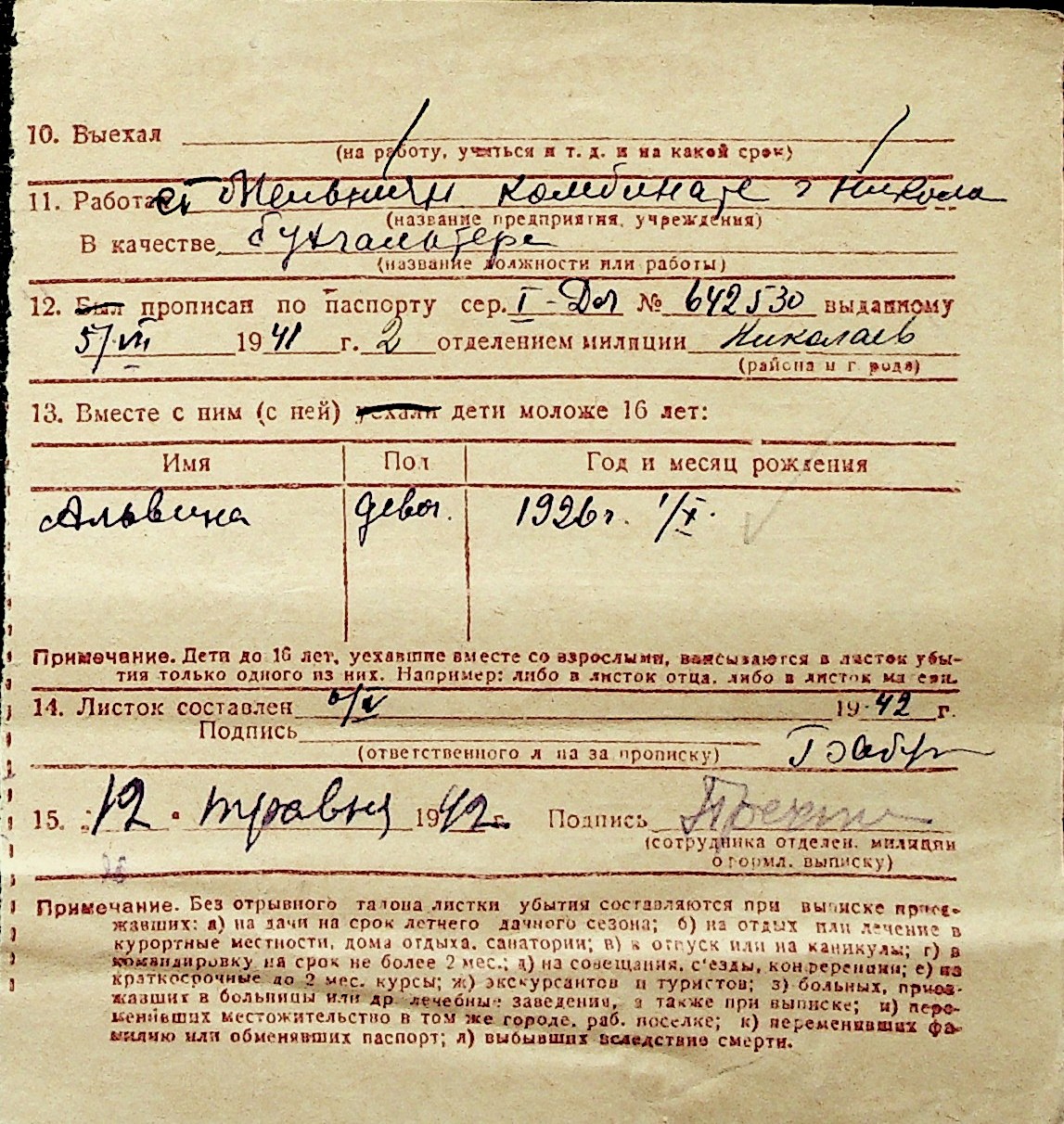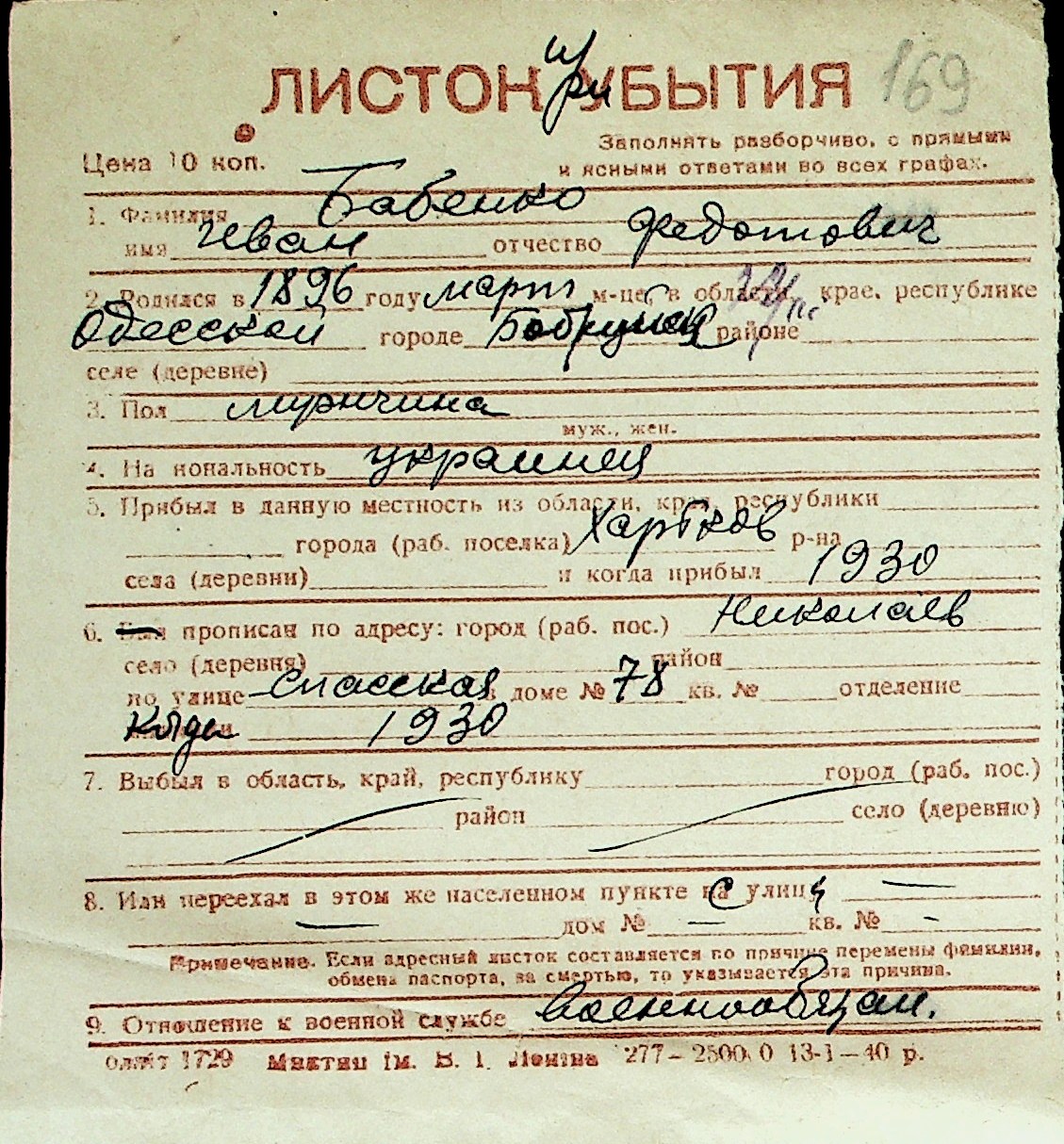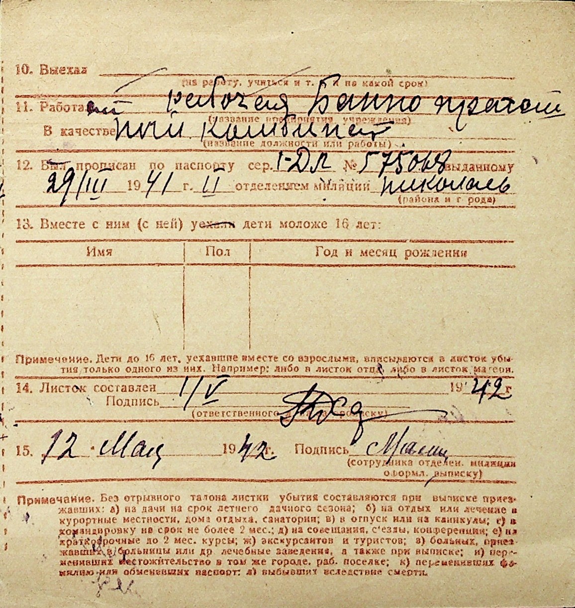◦ ◦ Перелік карток на осіб, які мешкали у м. Миколаїв у період окупації 1941–1944 років