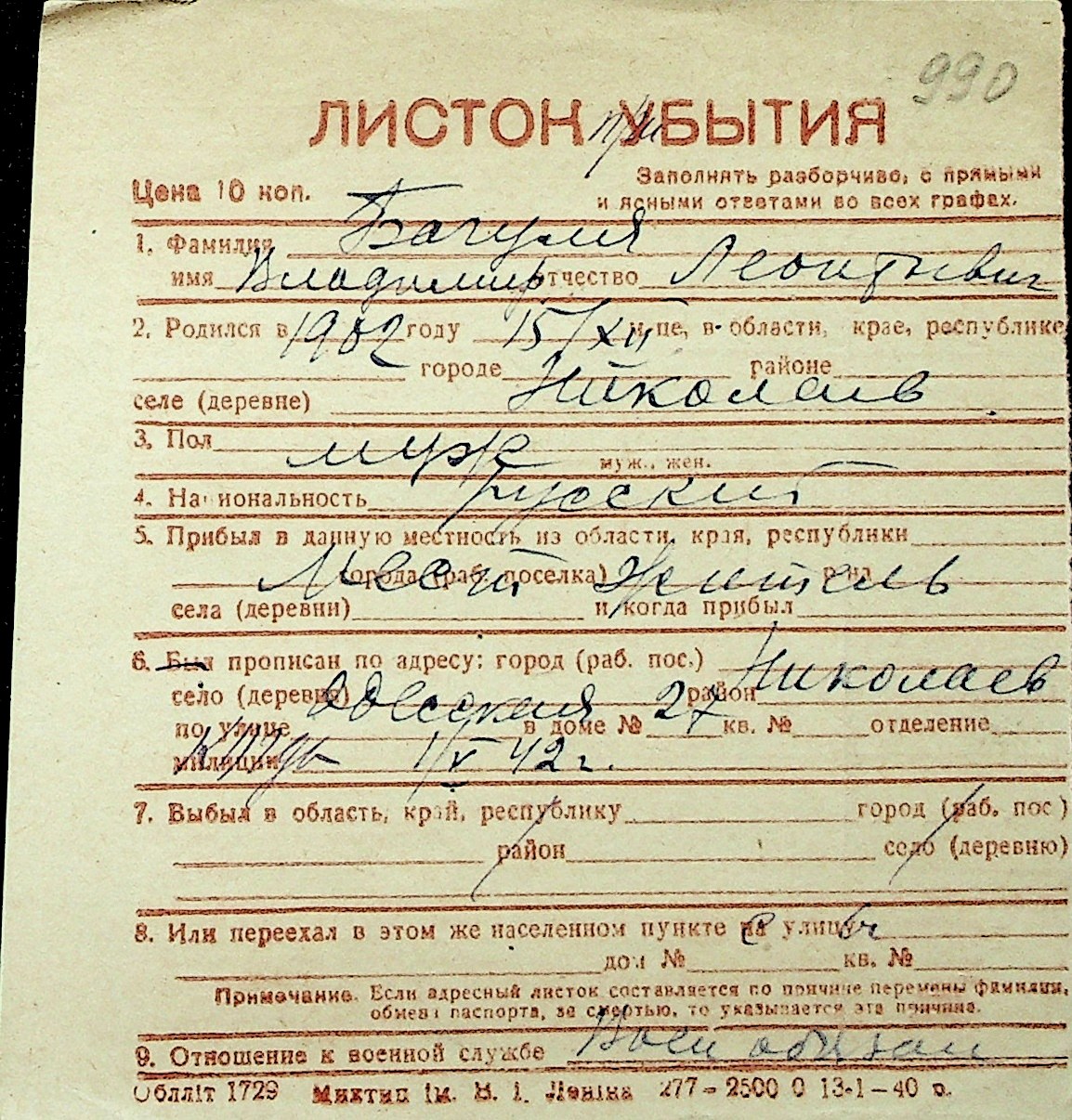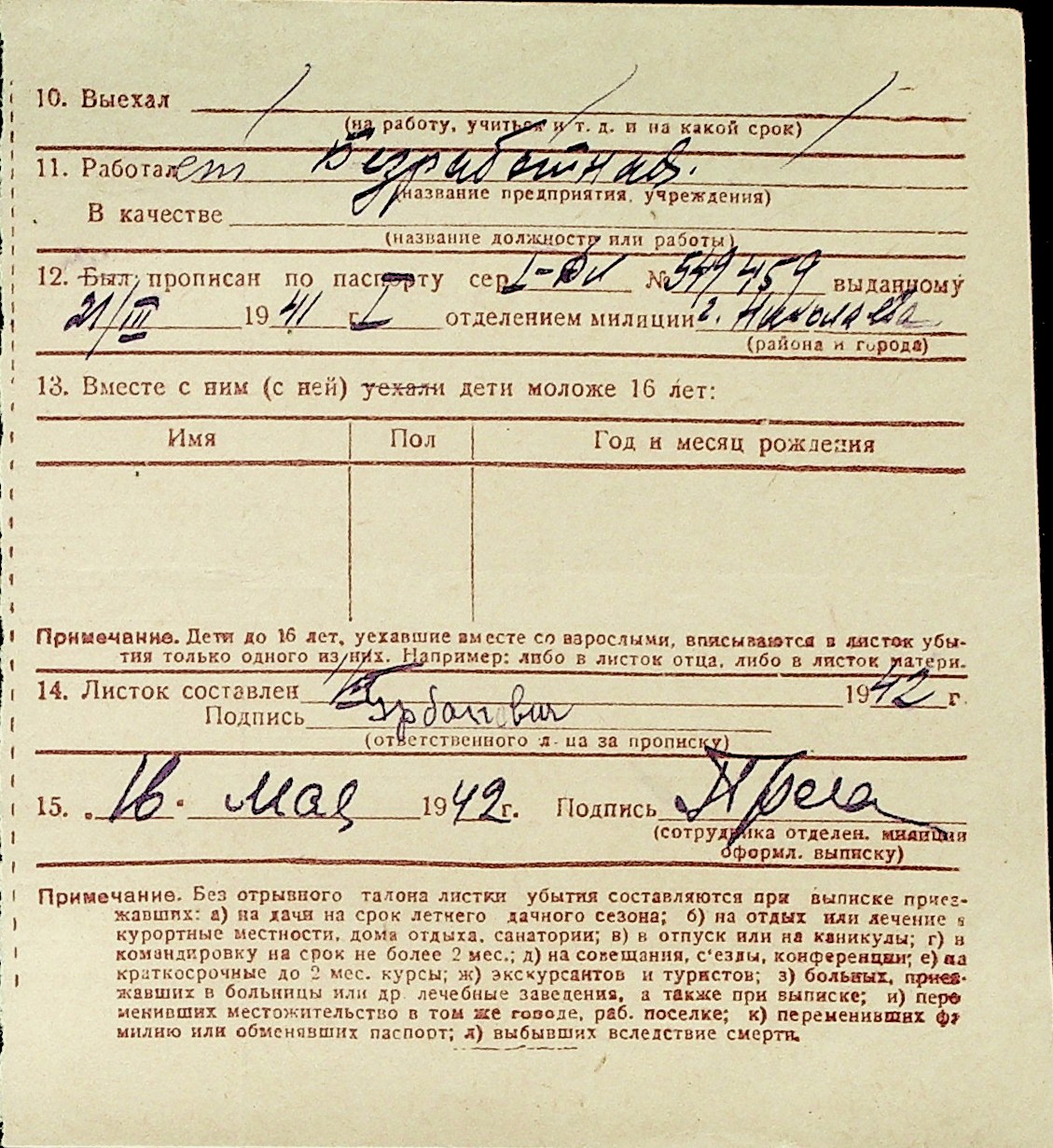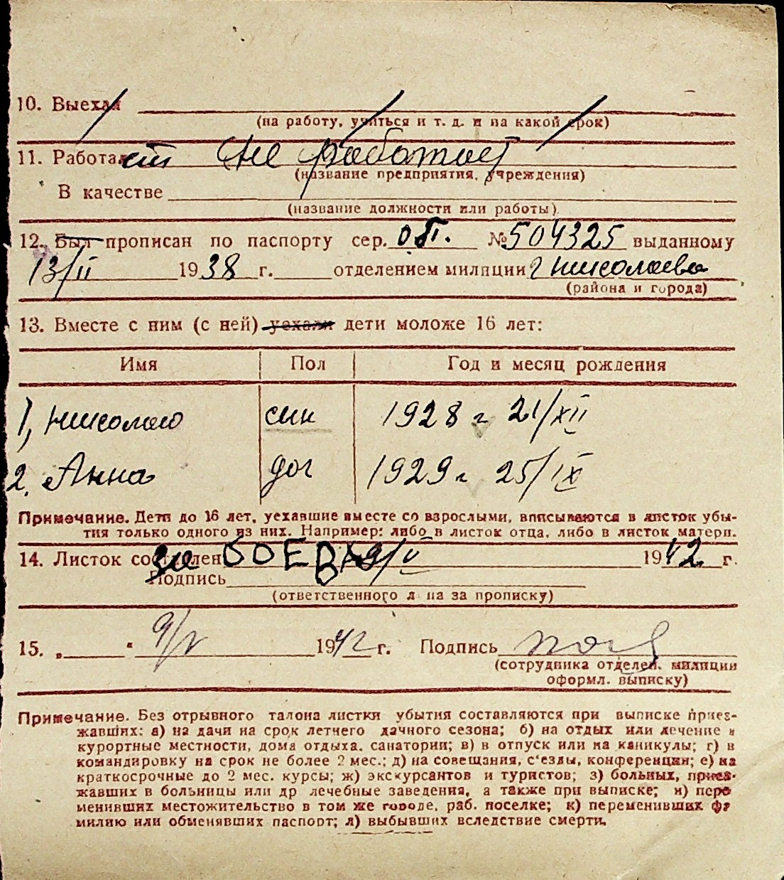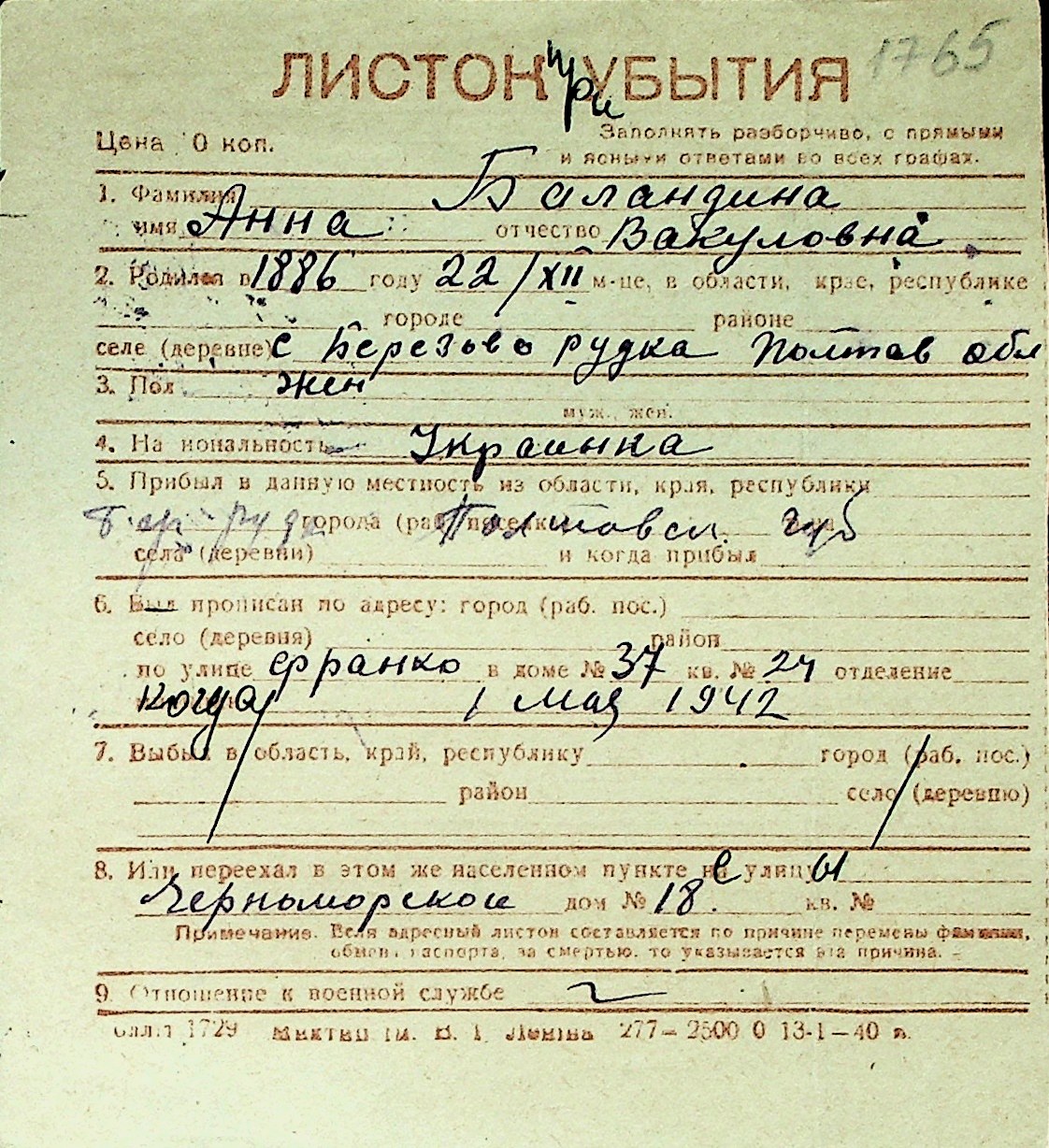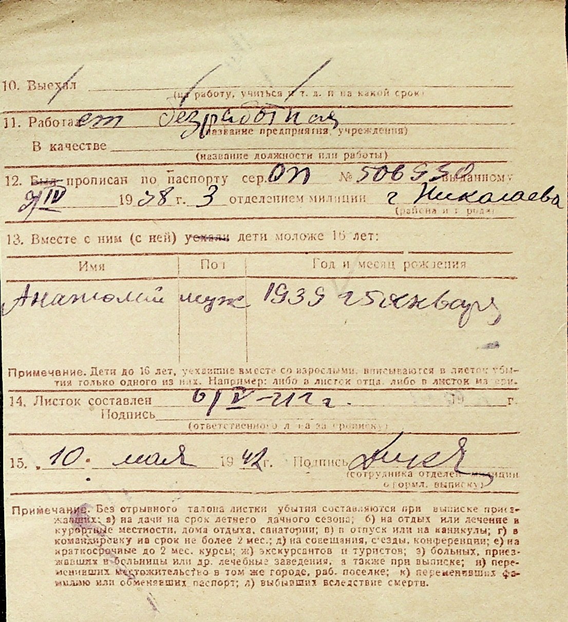 ◦ ◦ Перелік карток на осіб, які мешкали у м. Миколаїв у період окупації 1941–1944 років