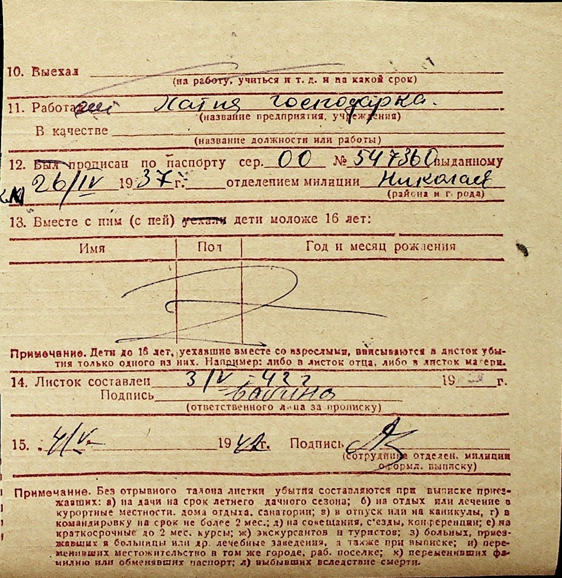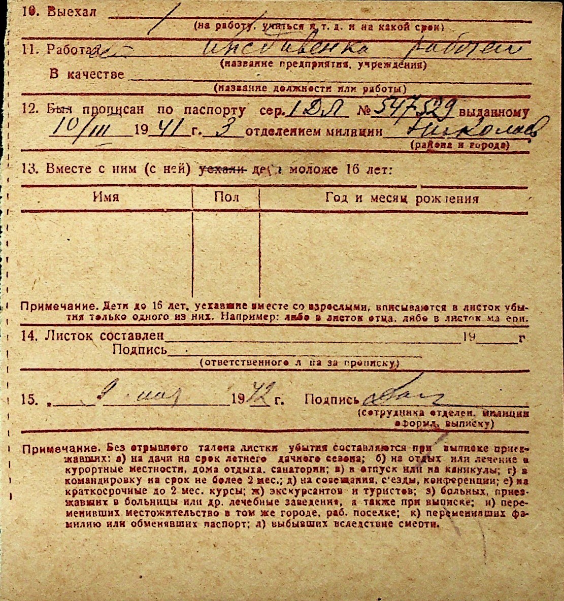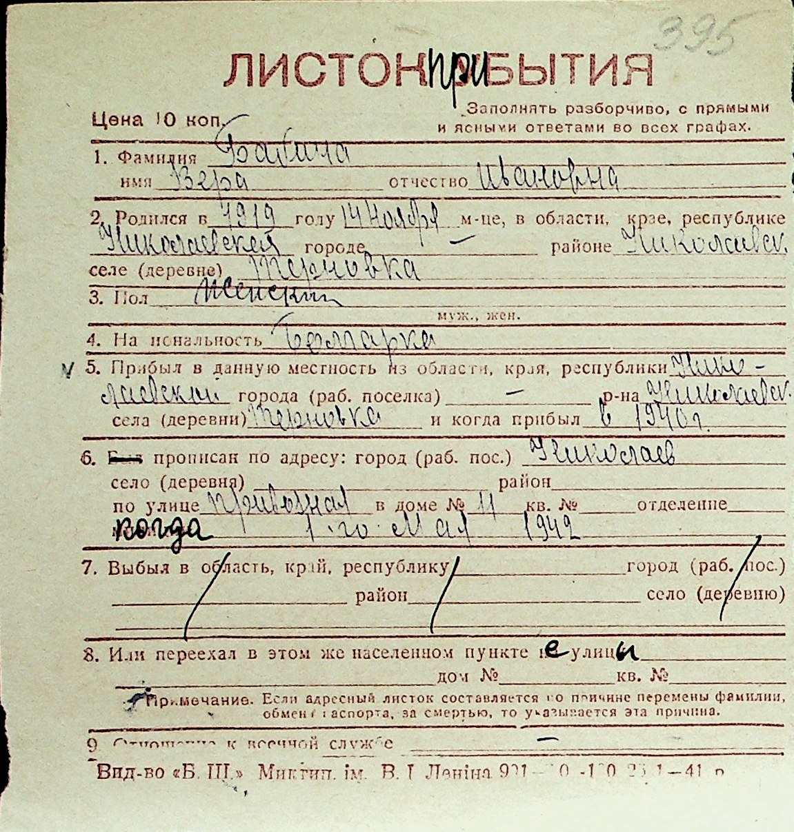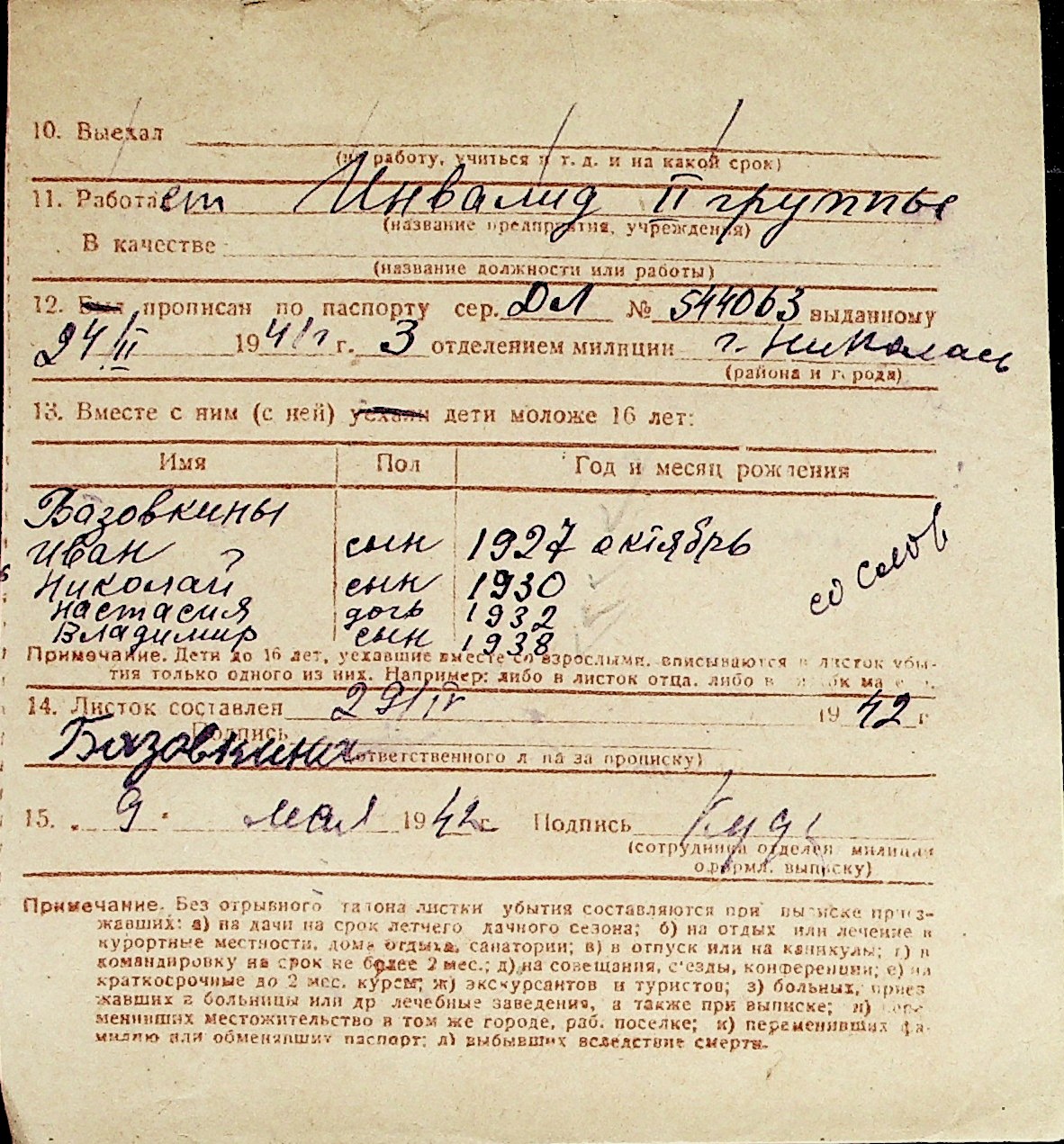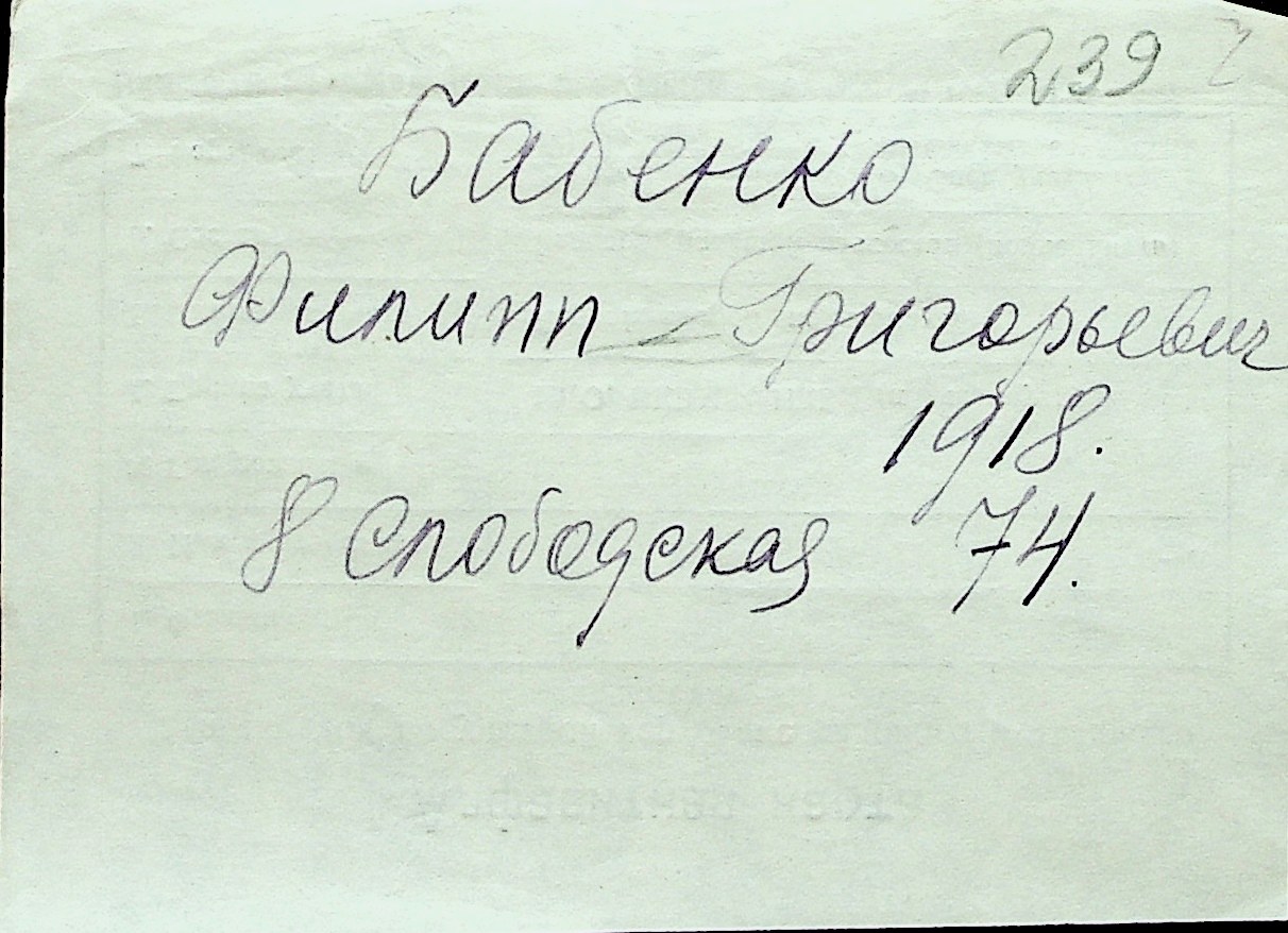 ◦ ◦ Перелік карток на осіб, які мешкали у м. Миколаїв у період окупації 1941–1944 років