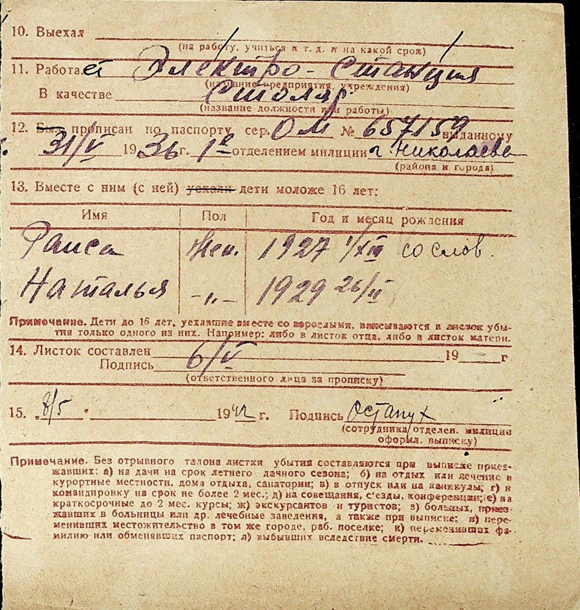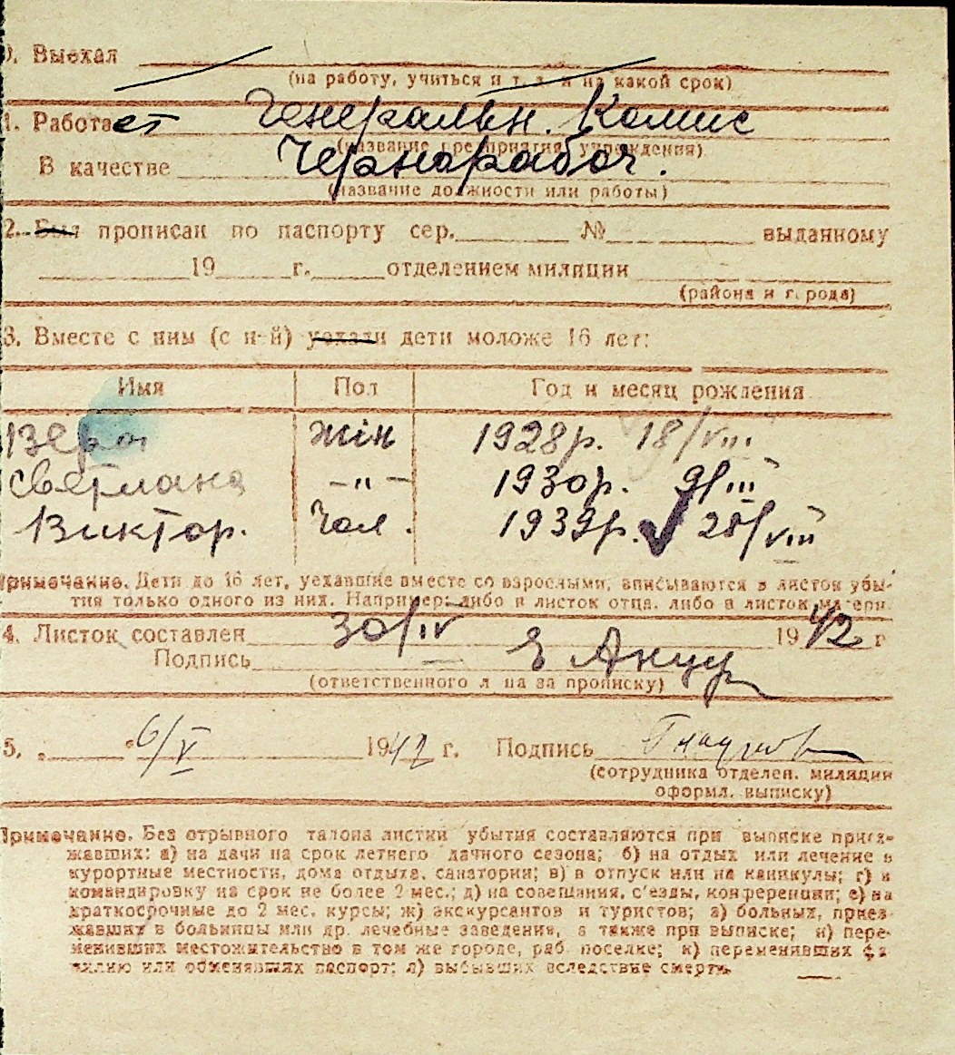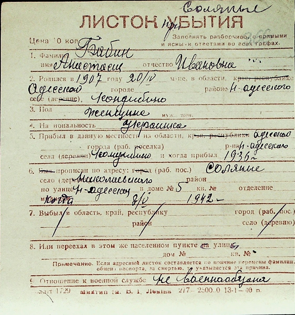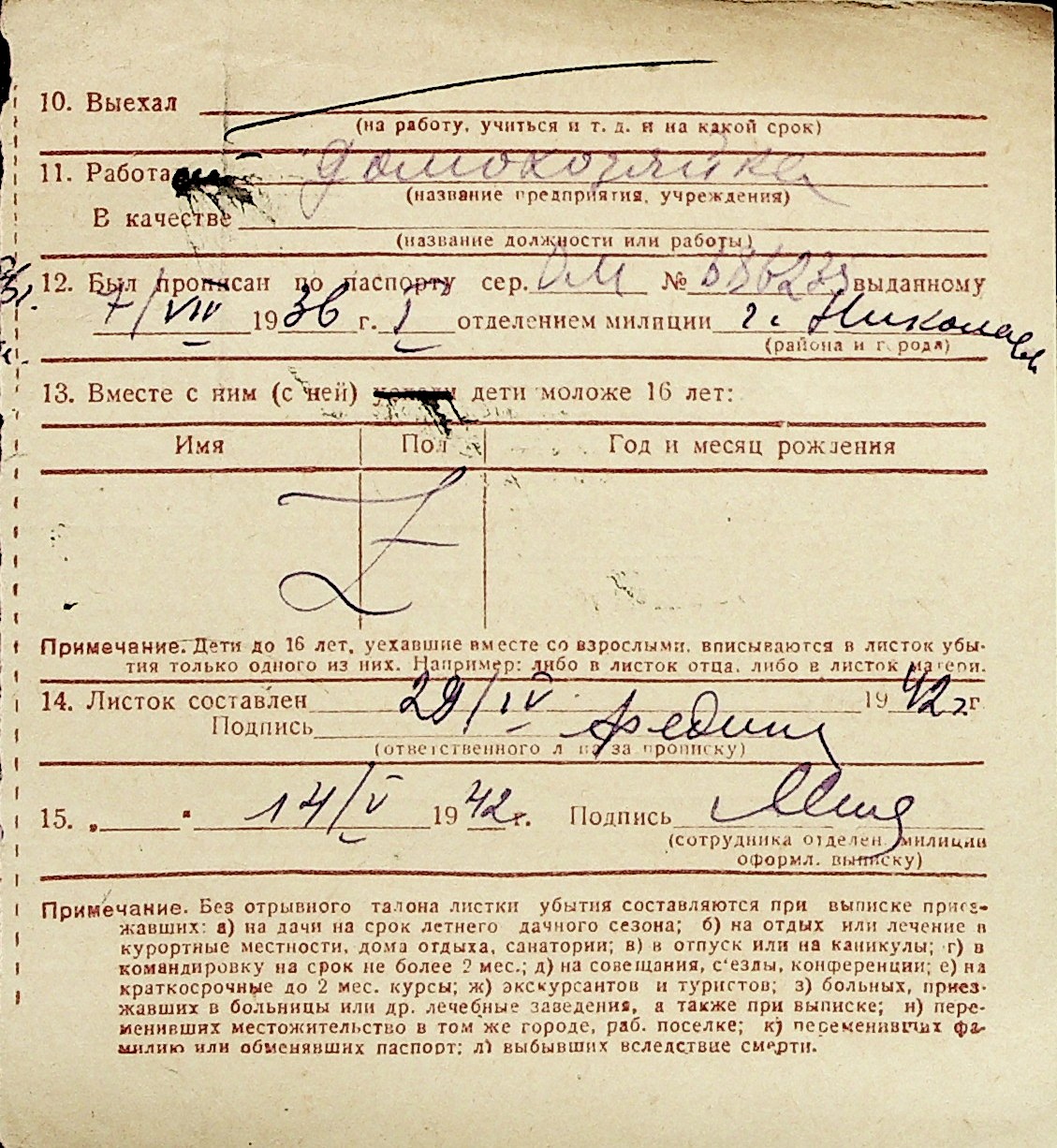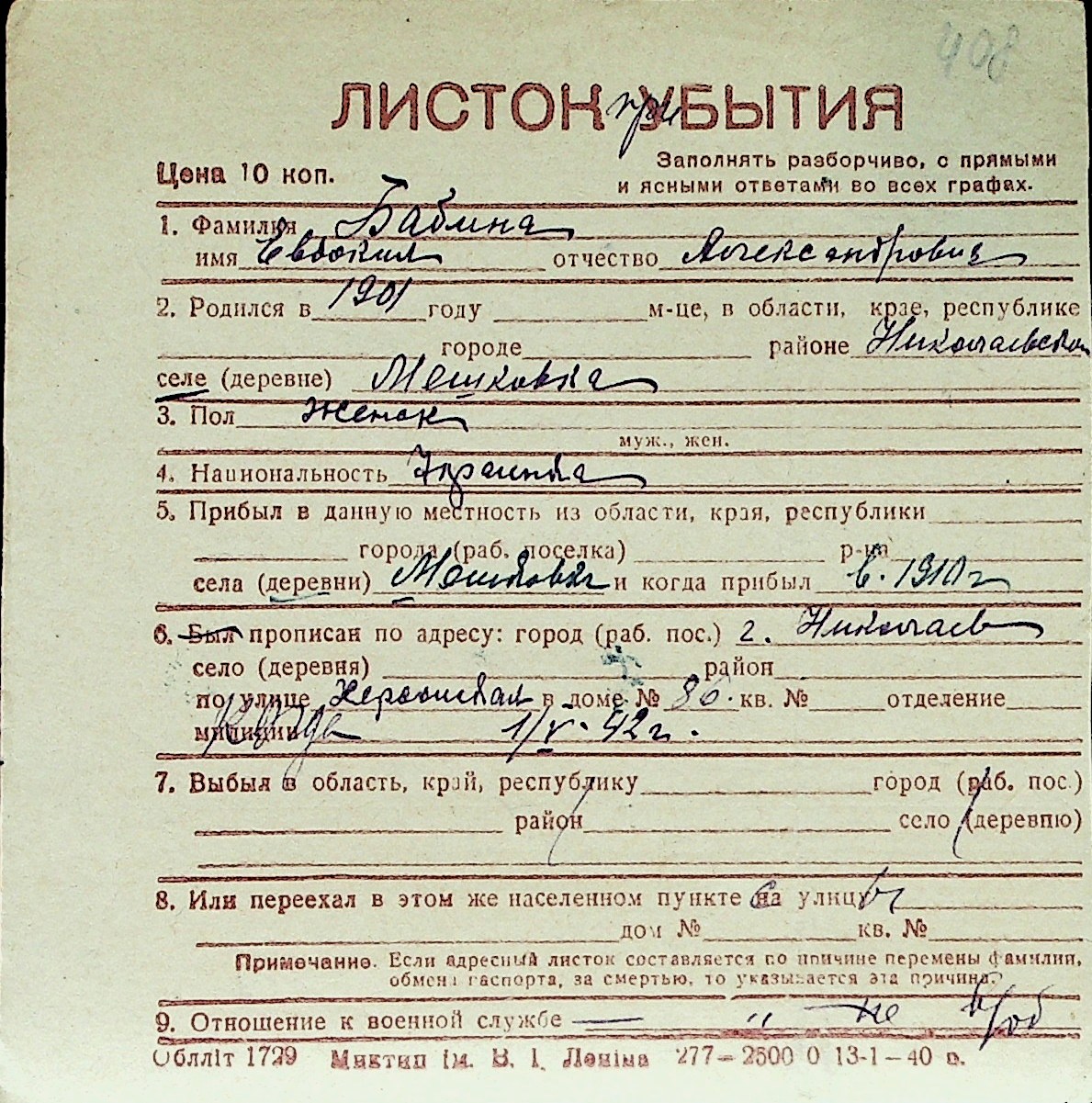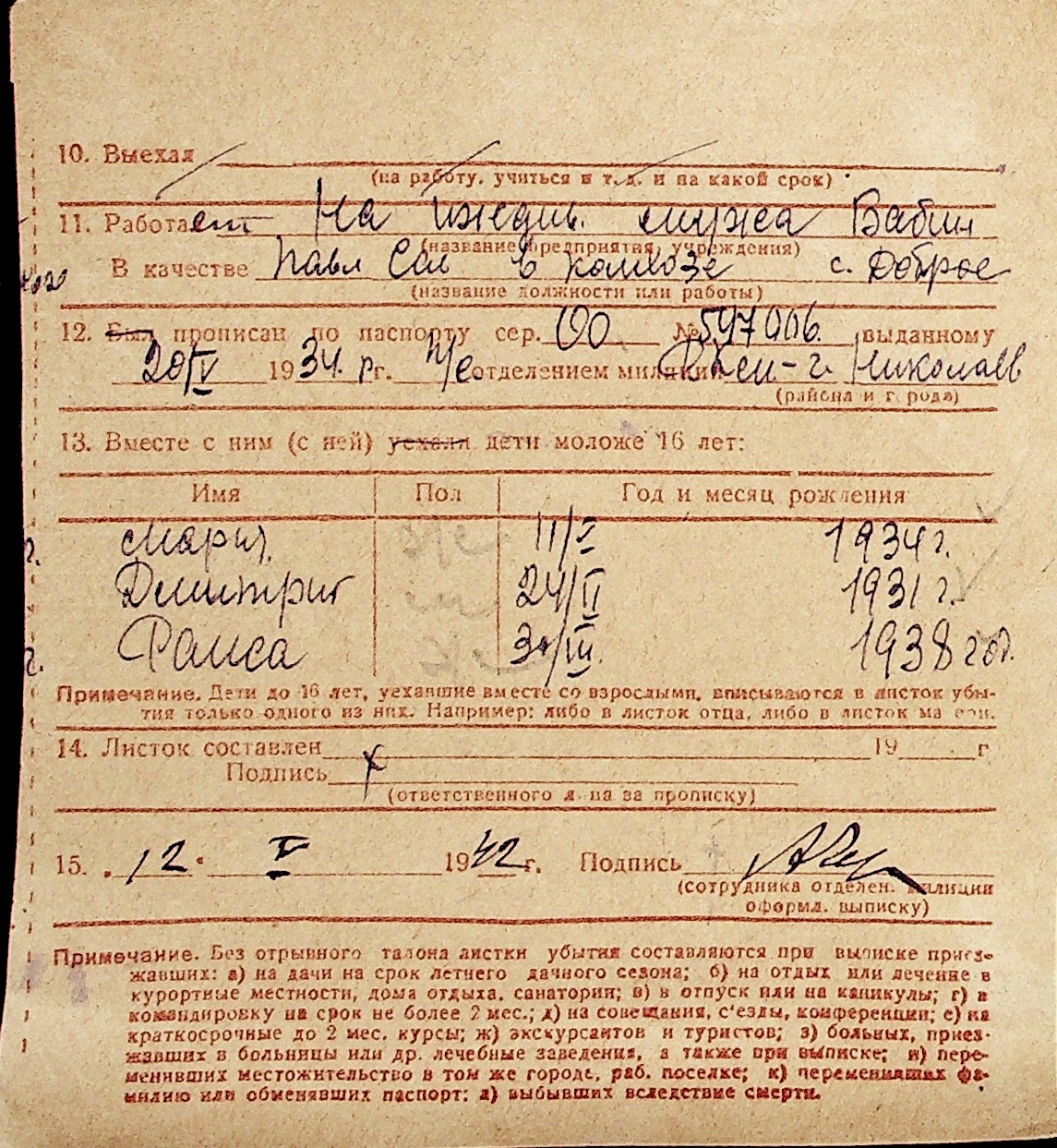 ◦ ◦ Перелік карток на осіб, які мешкали у м. Миколаїв у період окупації 1941–1944 років