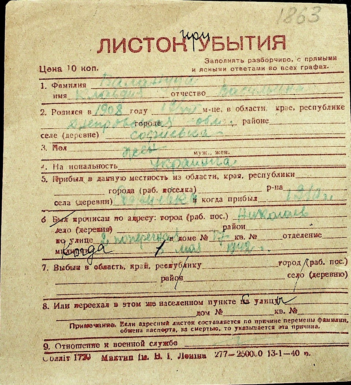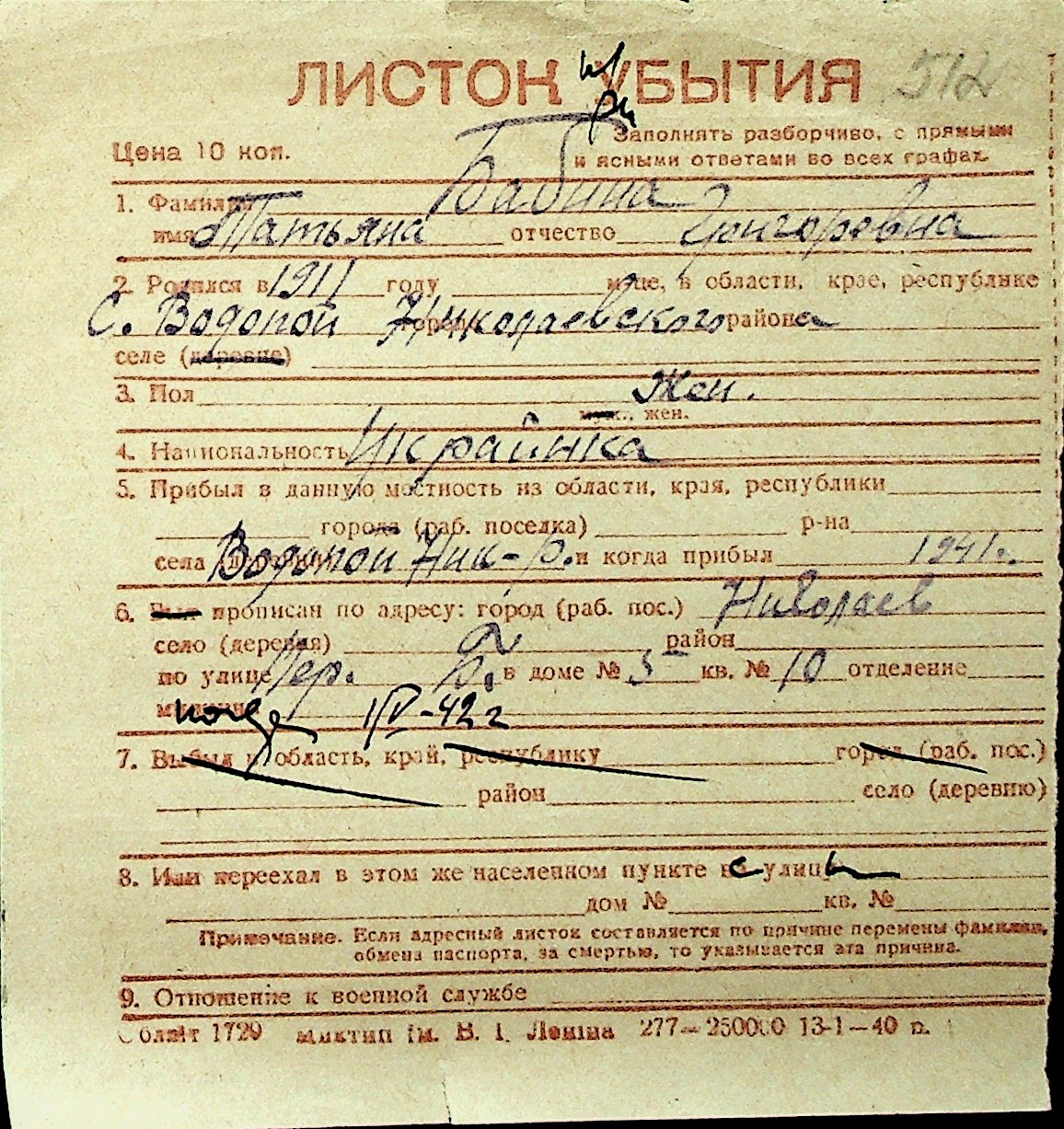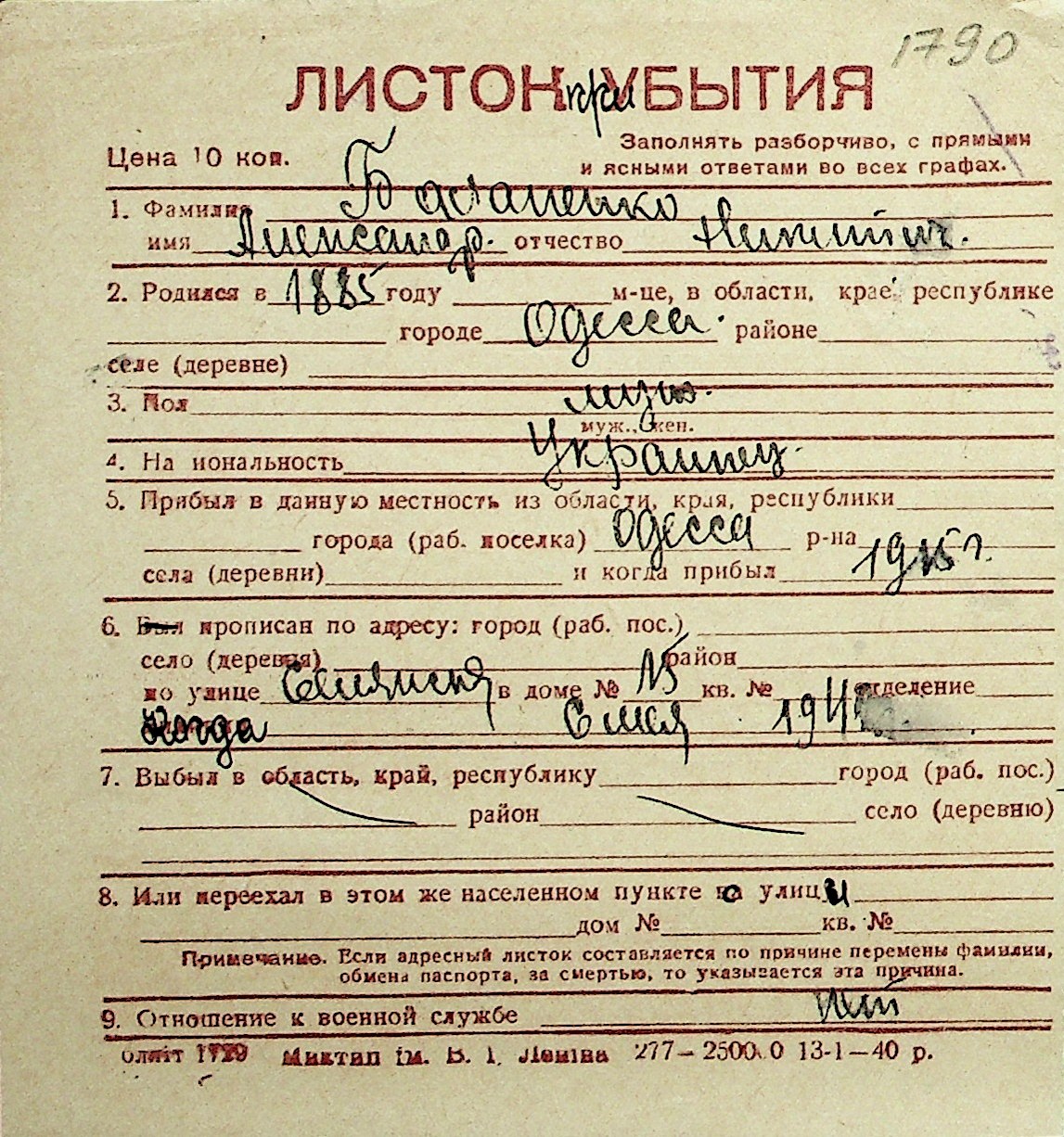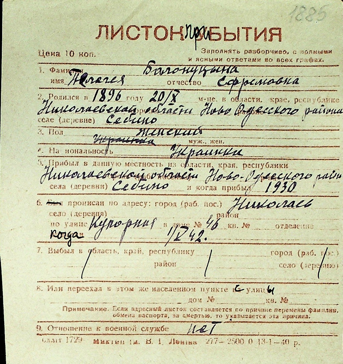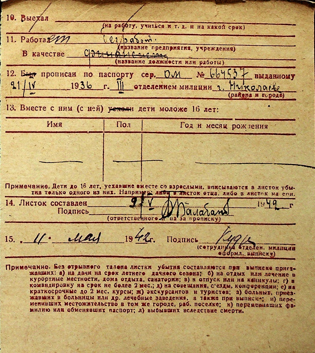 ◦ ◦ Перелік карток на осіб, які мешкали у м. Миколаїв у період окупації 1941–1944 років