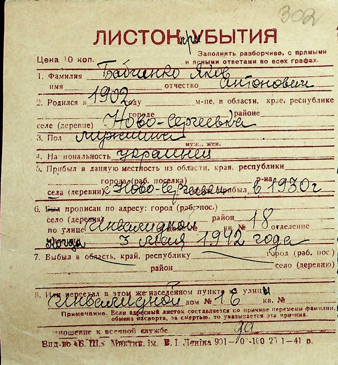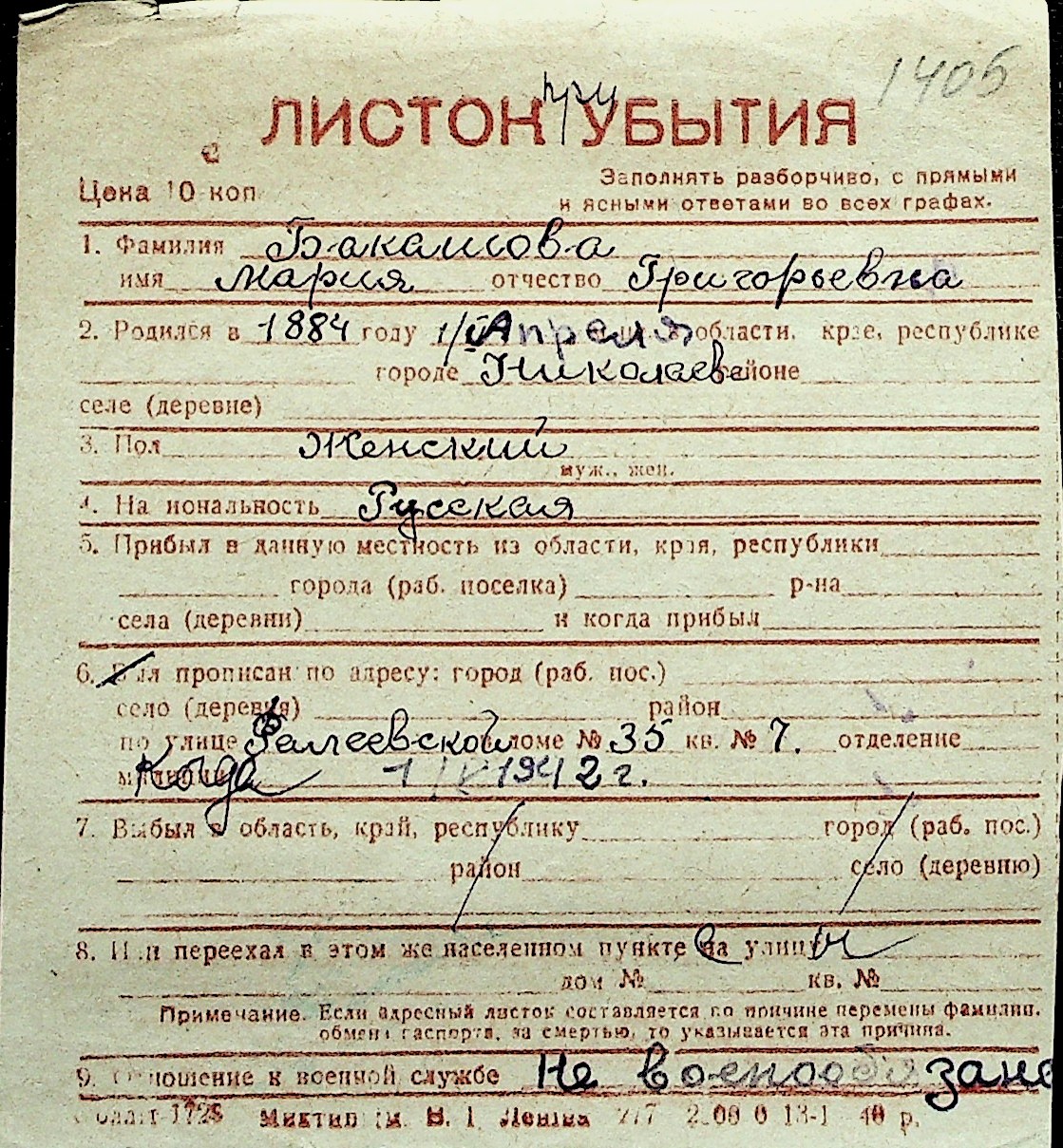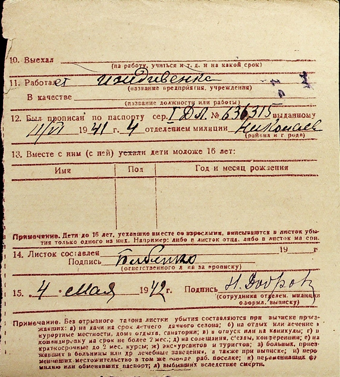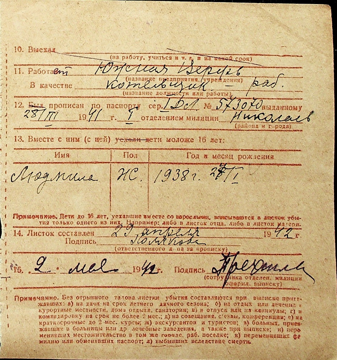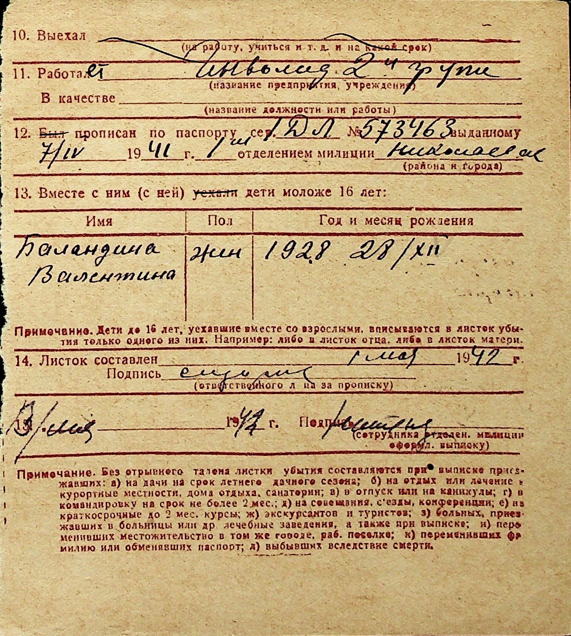 ◦ ◦ Перелік карток на осіб, які мешкали у м. Миколаїв у період окупації 1941–1944 років