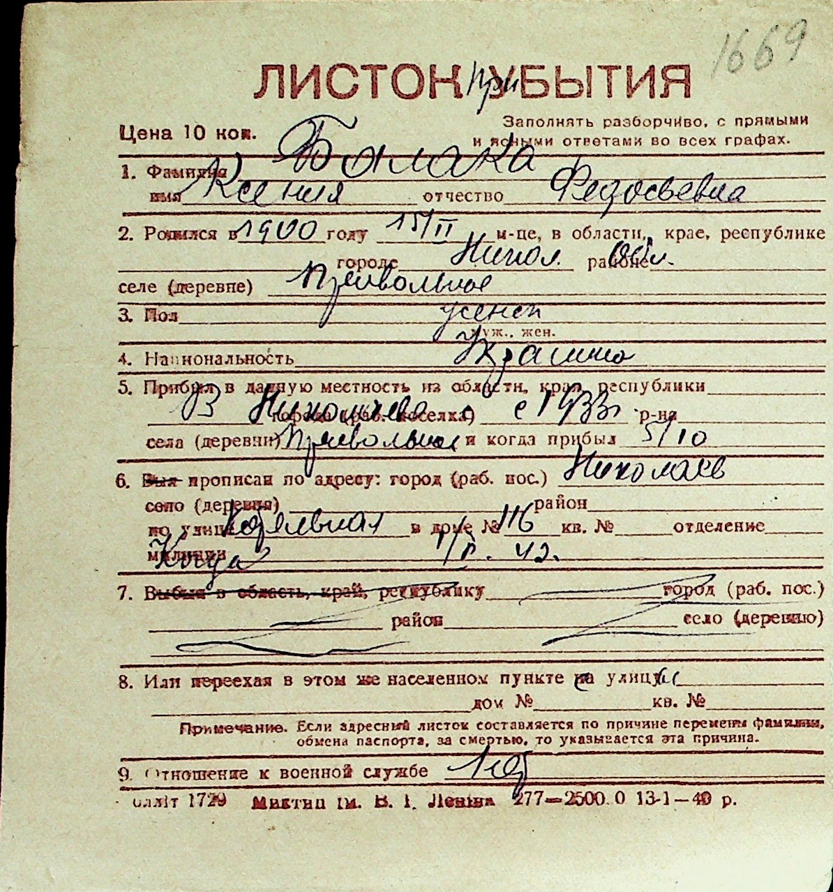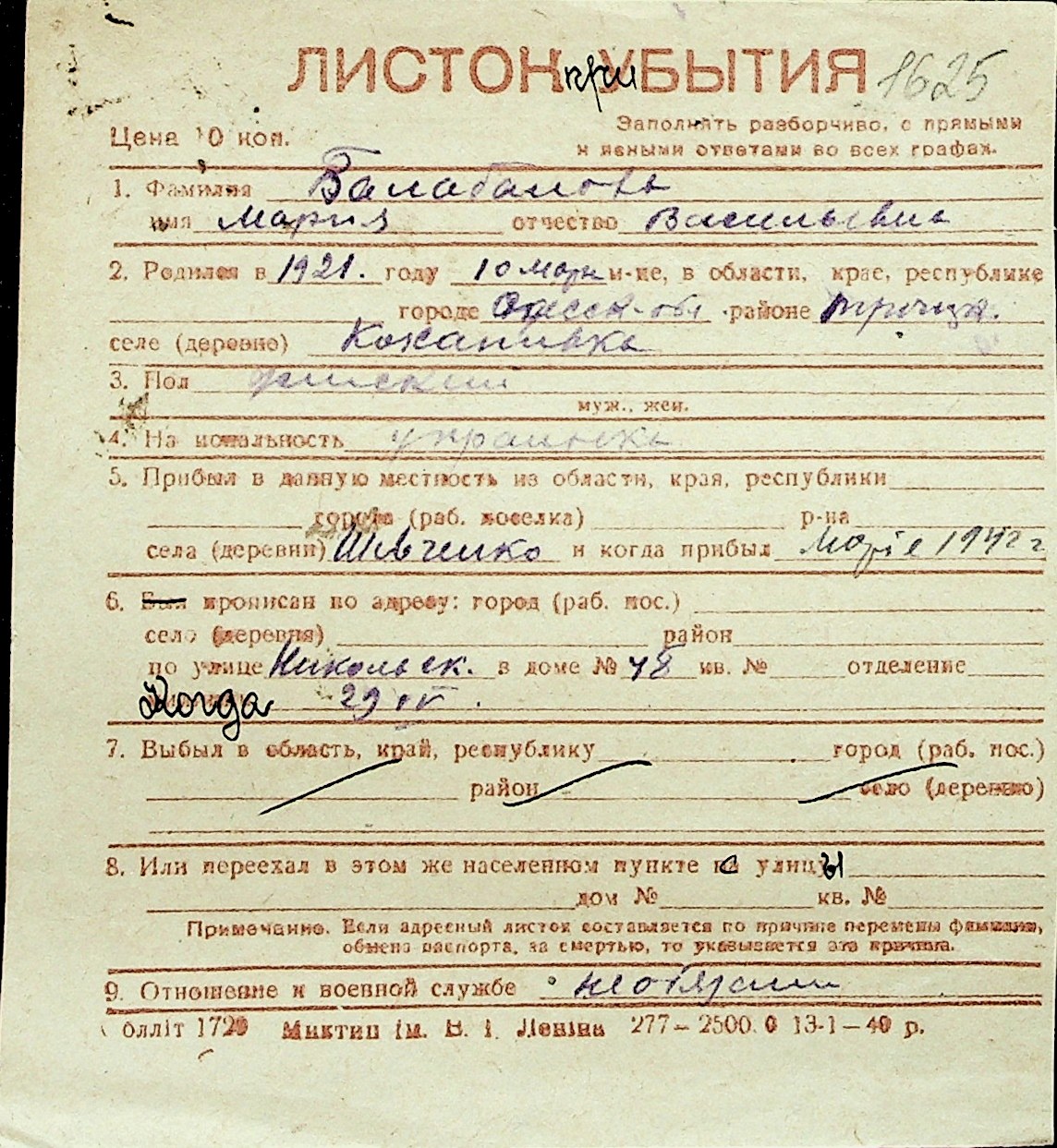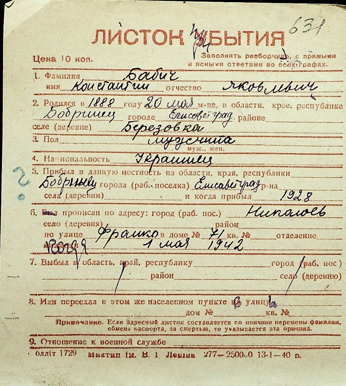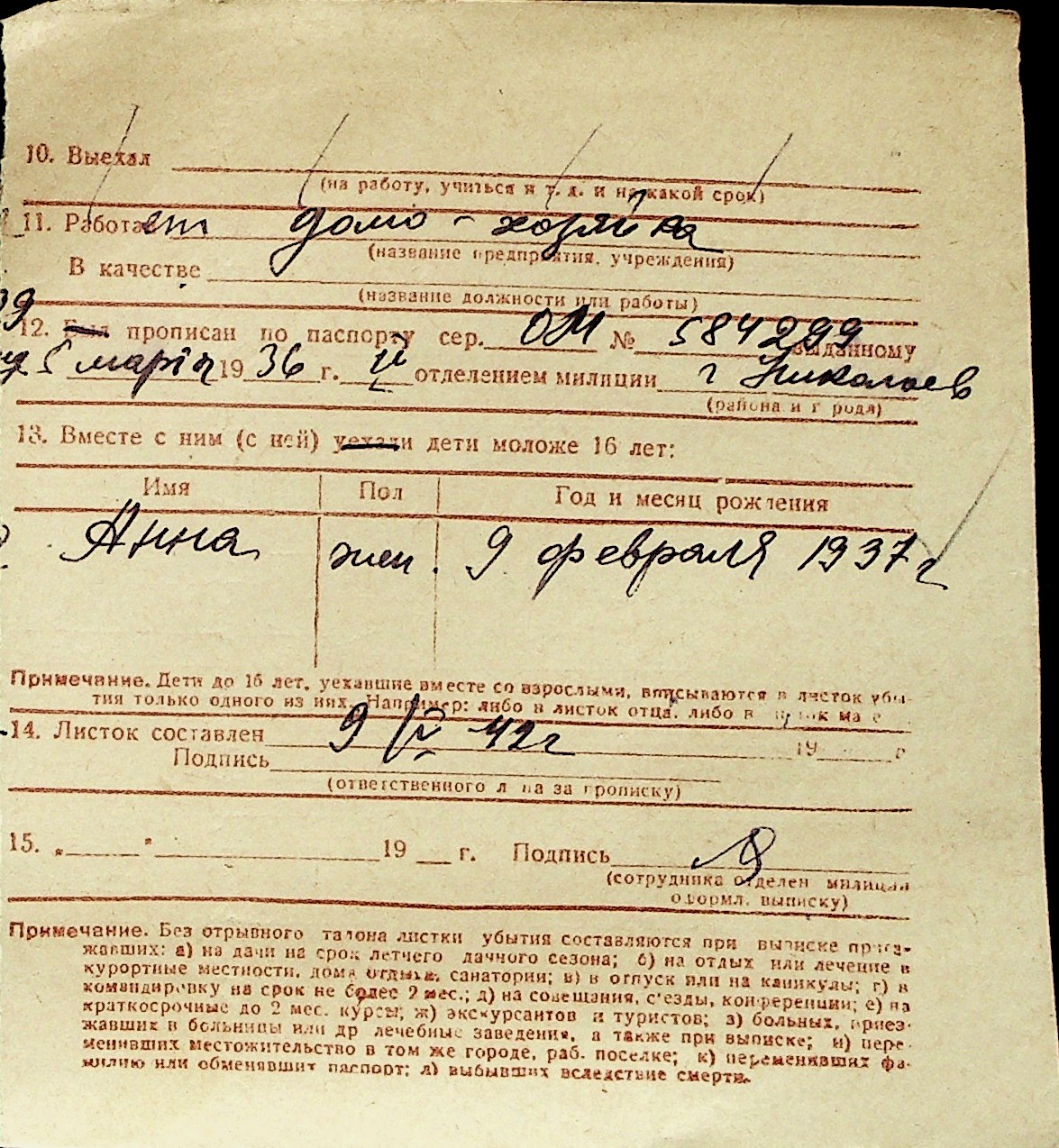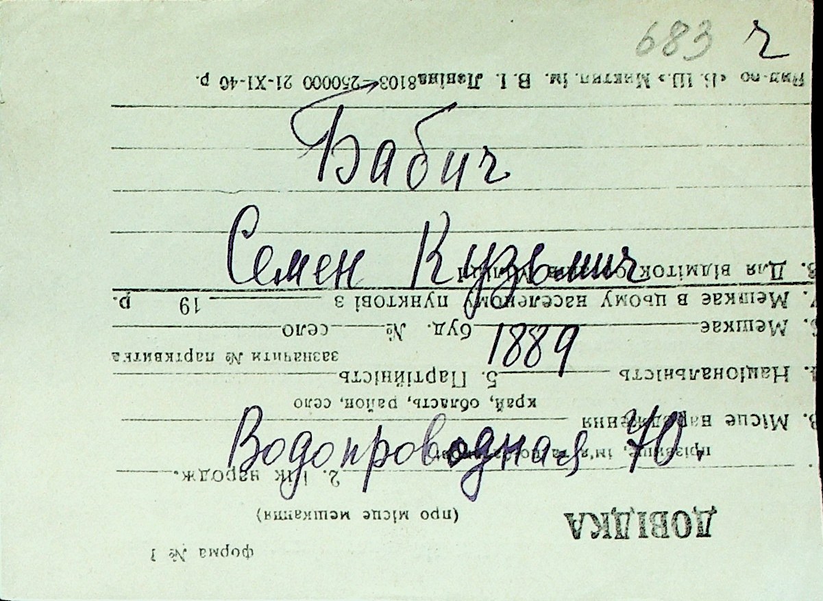 ◦ ◦ Перелік карток на осіб, які мешкали у м. Миколаїв у період окупації 1941–1944 років