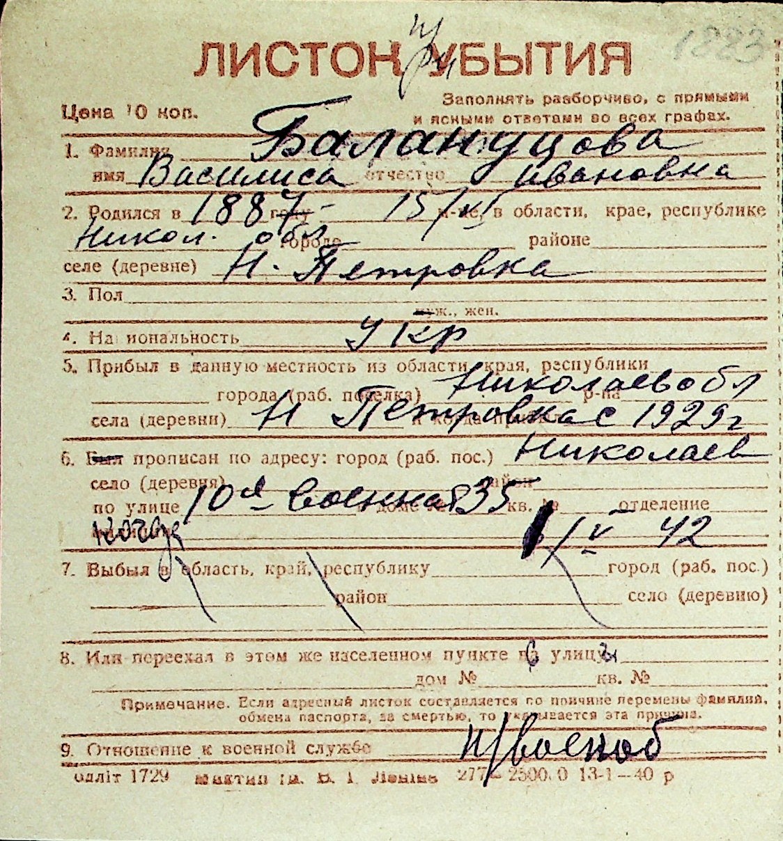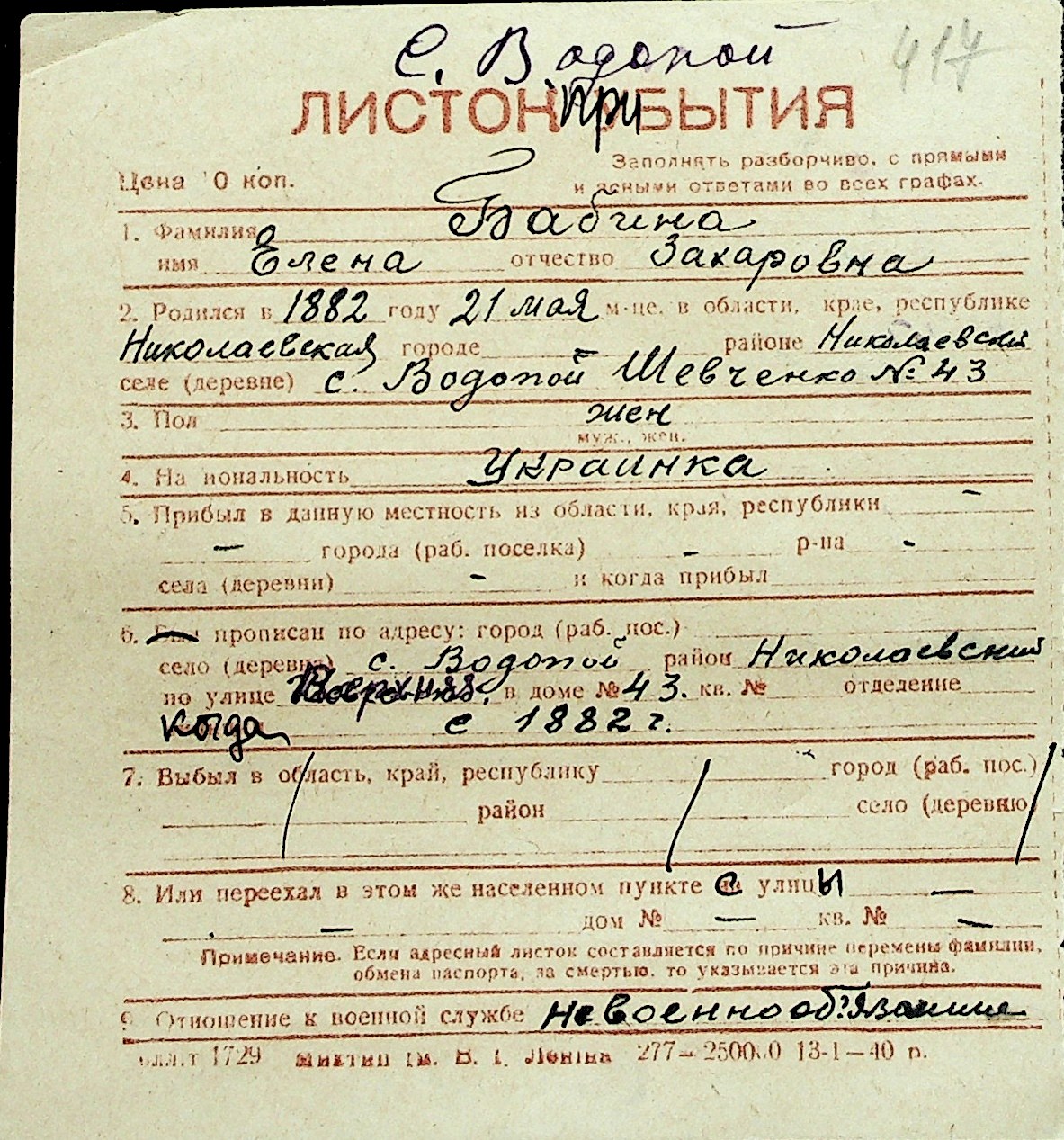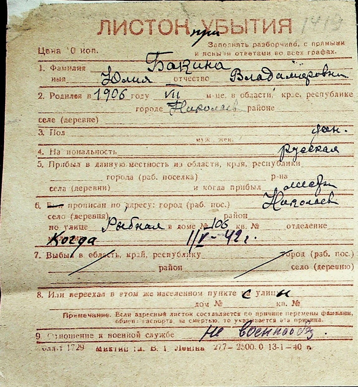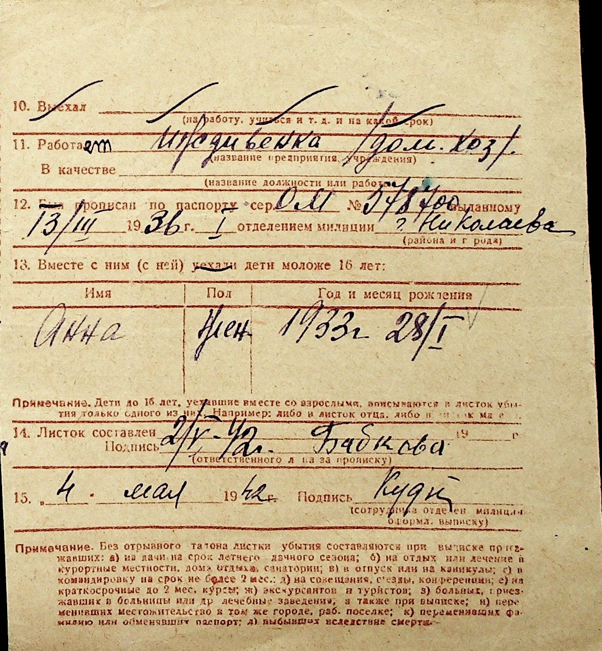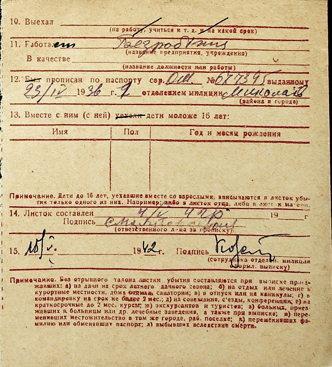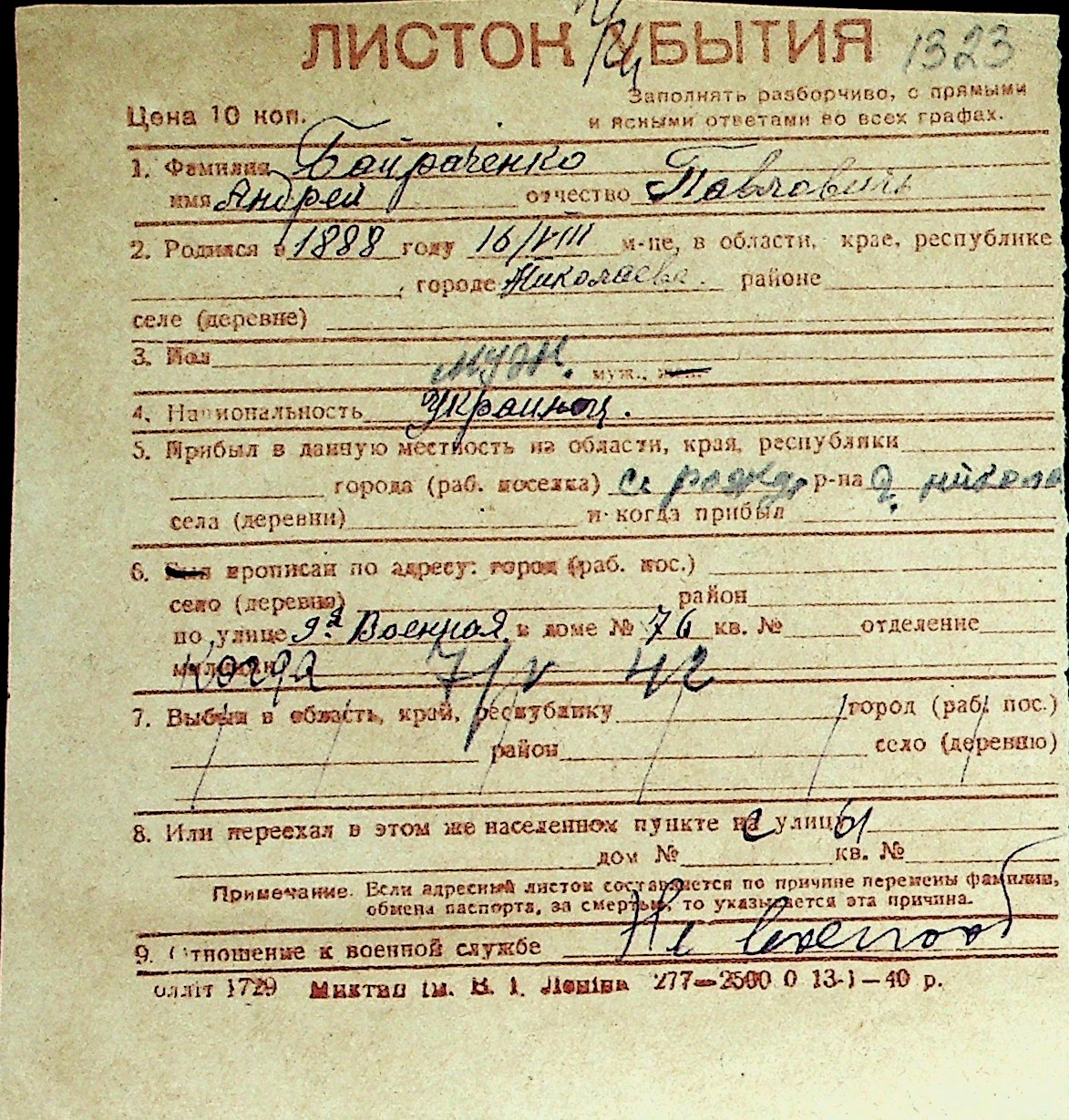 ◦ ◦ Перелік карток на осіб, які мешкали у м. Миколаїв у період окупації 1941–1944 років