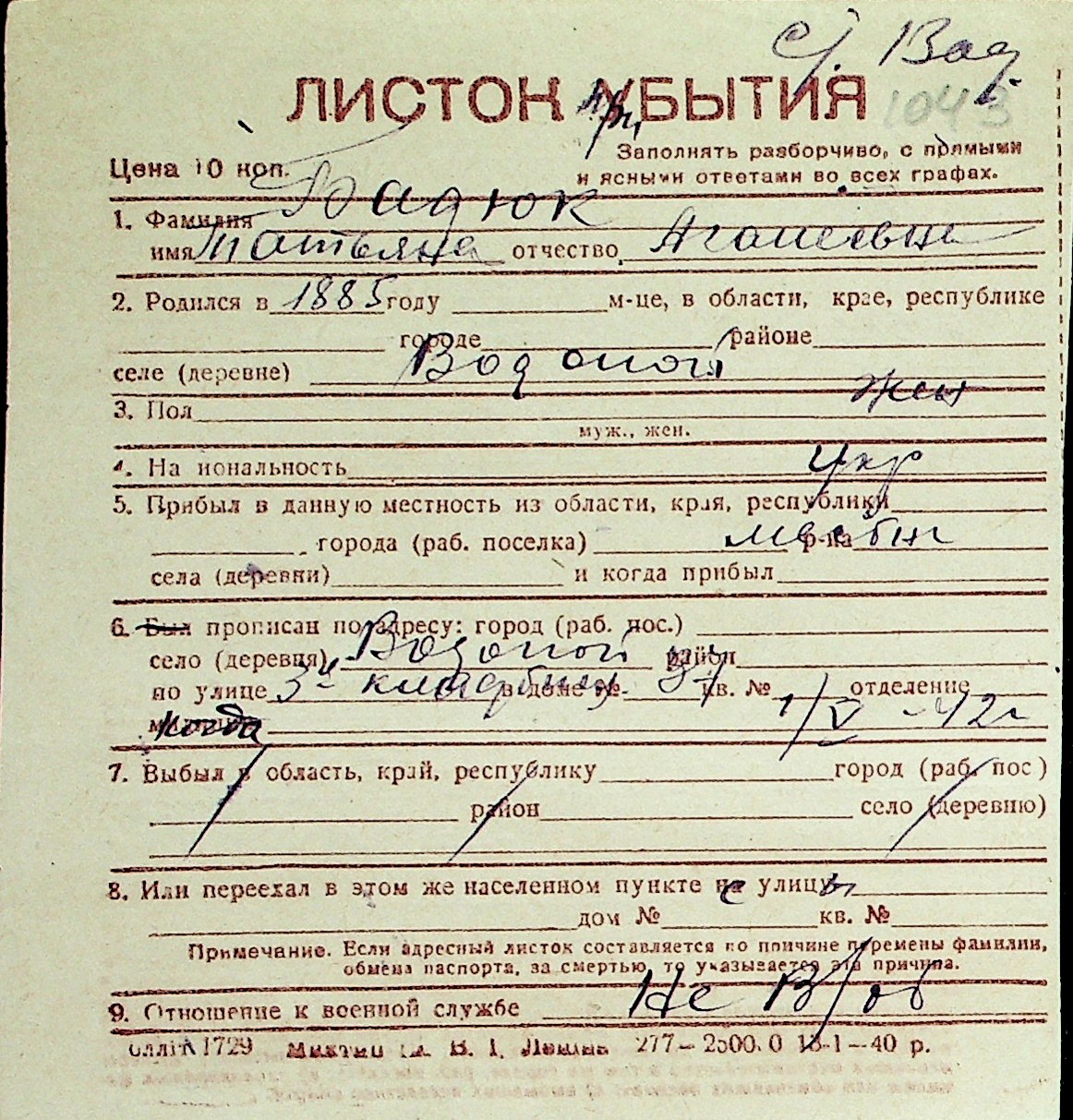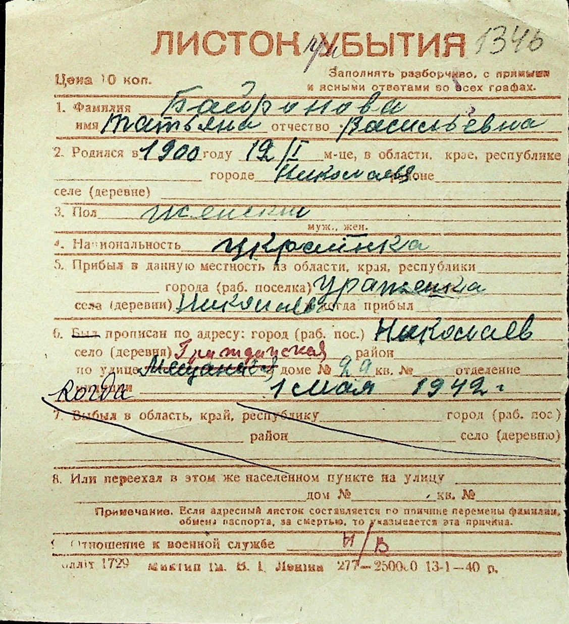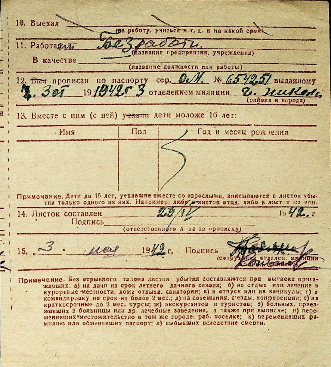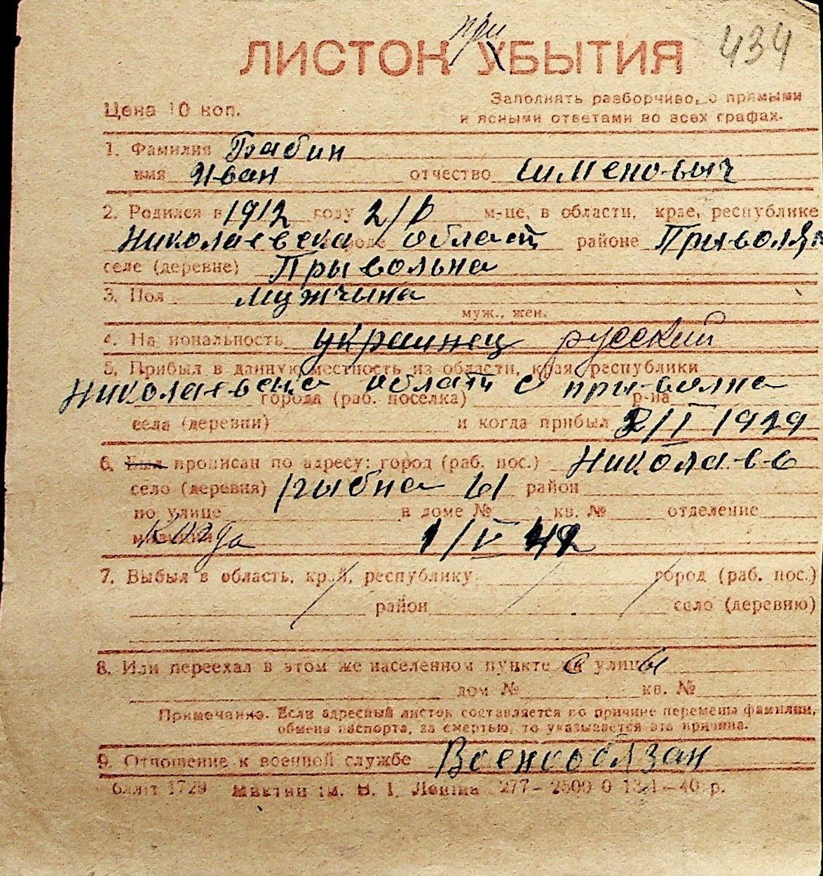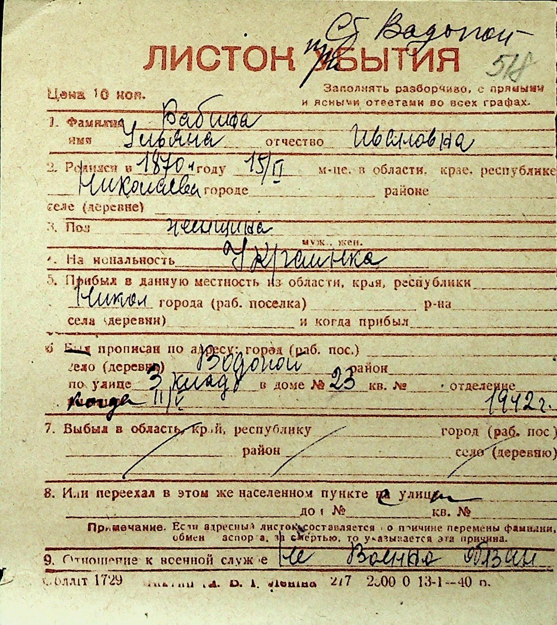 ◦ ◦ Перелік карток на осіб, які мешкали у м. Миколаїв у період окупації 1941–1944 років