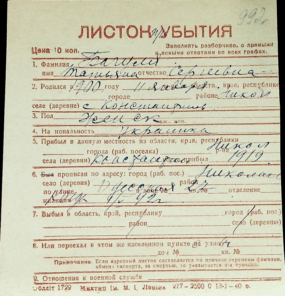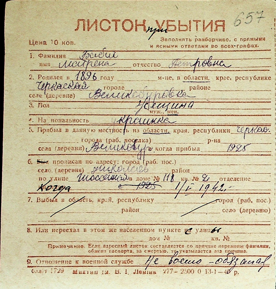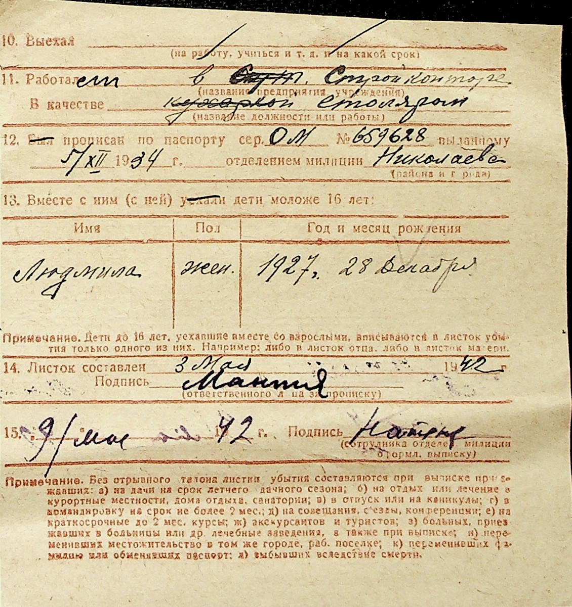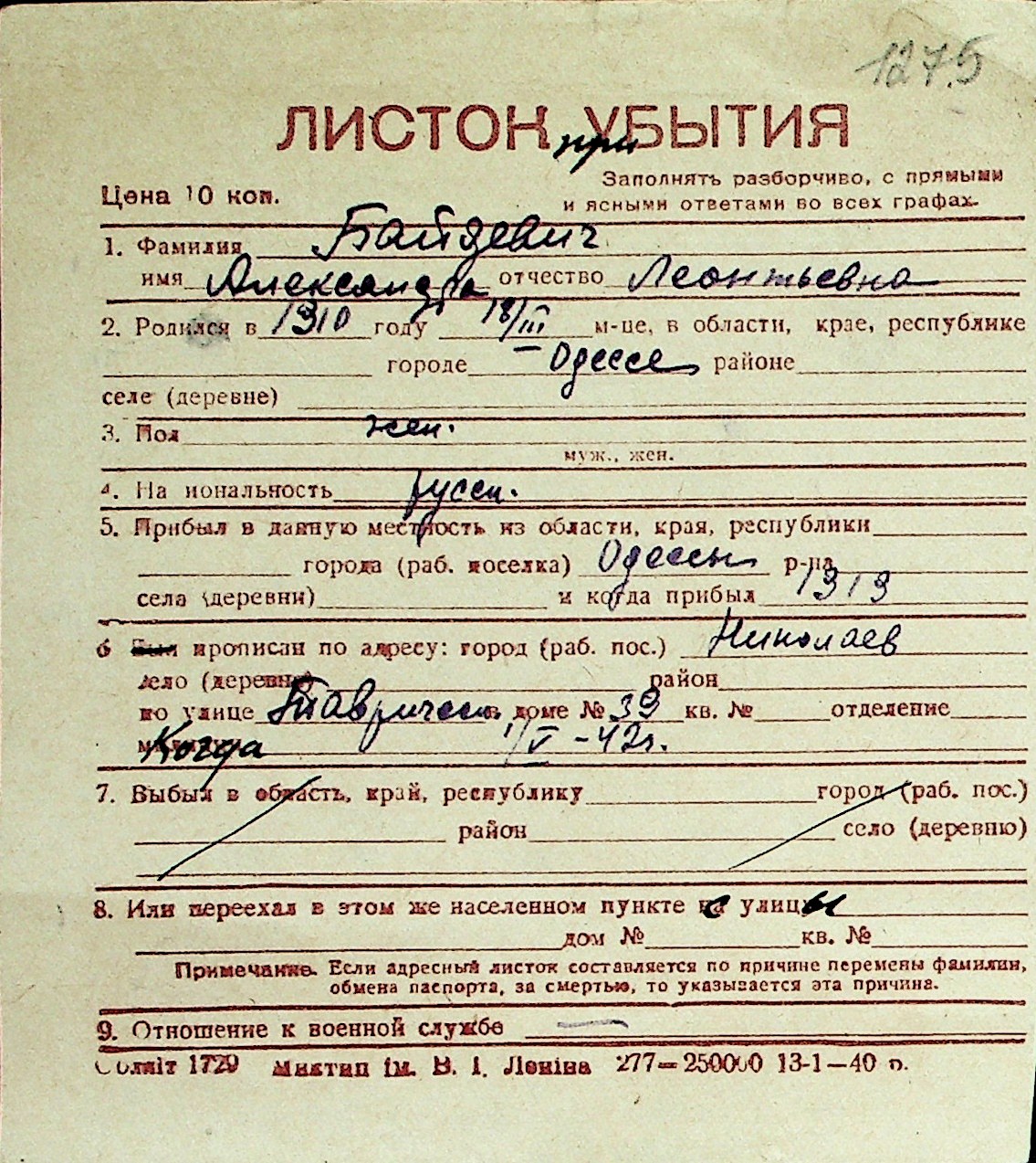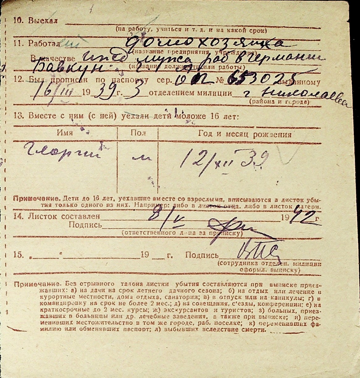 ◦ ◦ Перелік карток на осіб, які мешкали у м. Миколаїв у період окупації 1941–1944 років