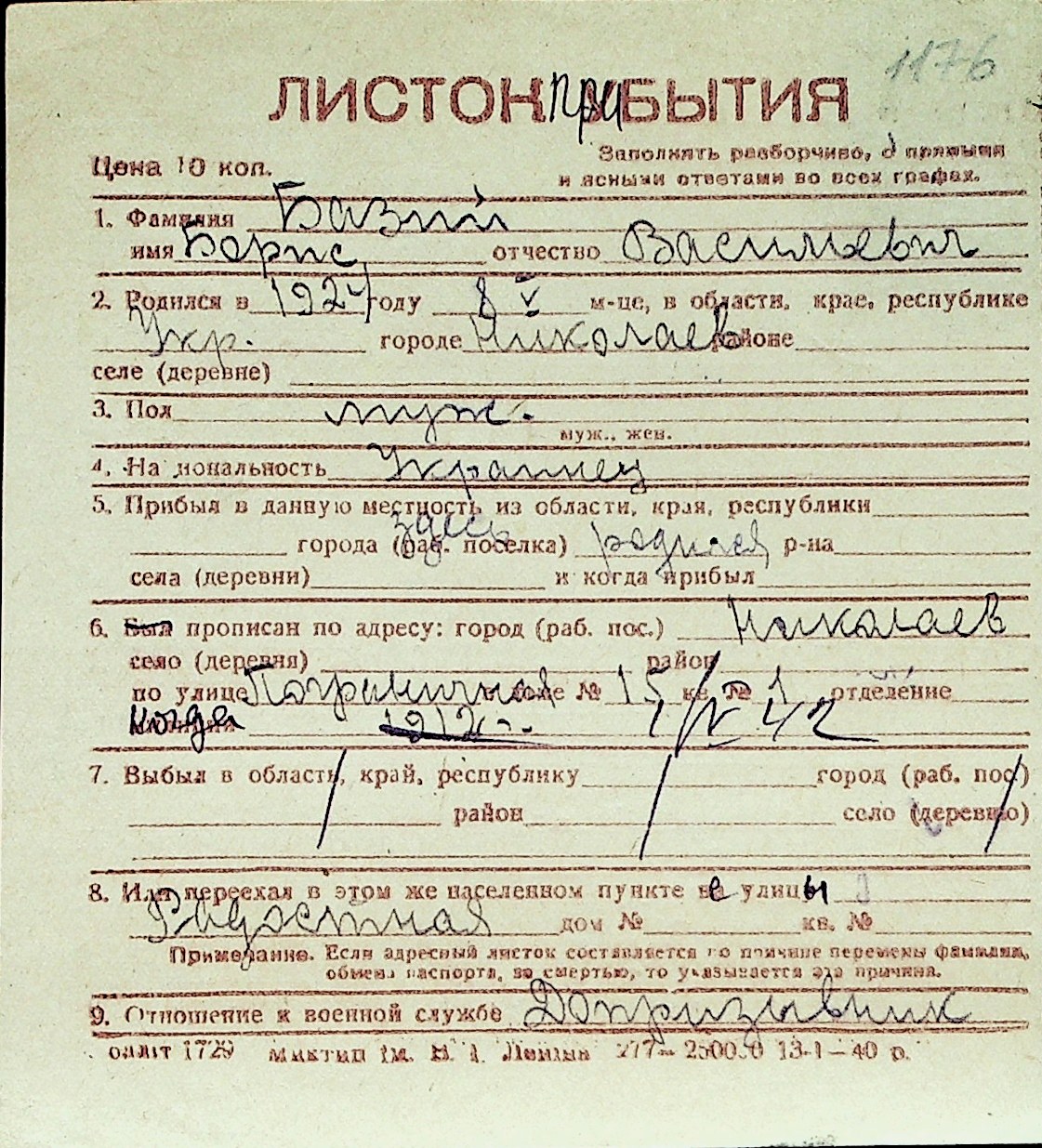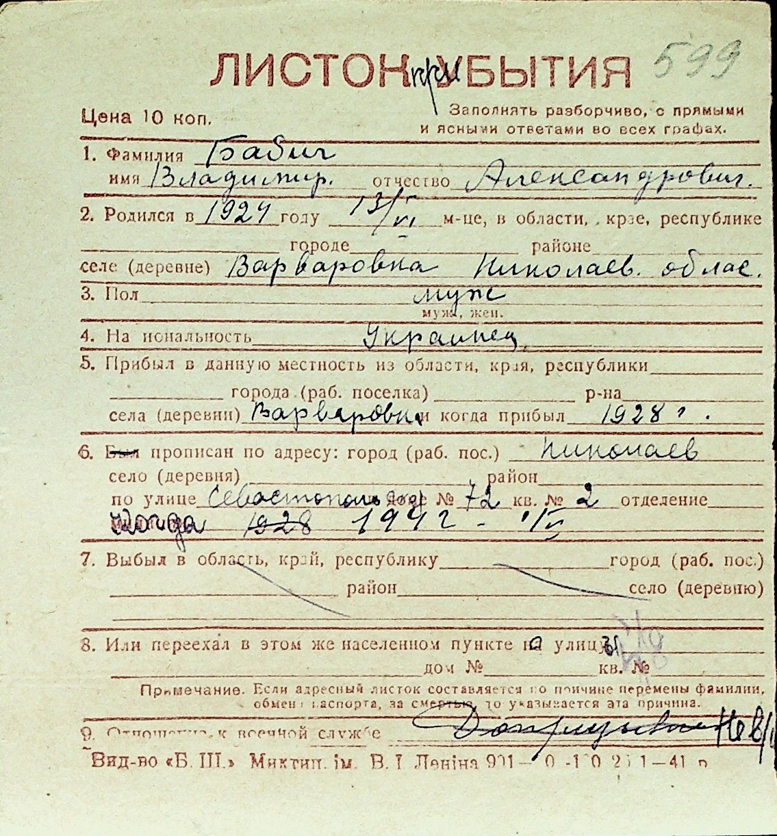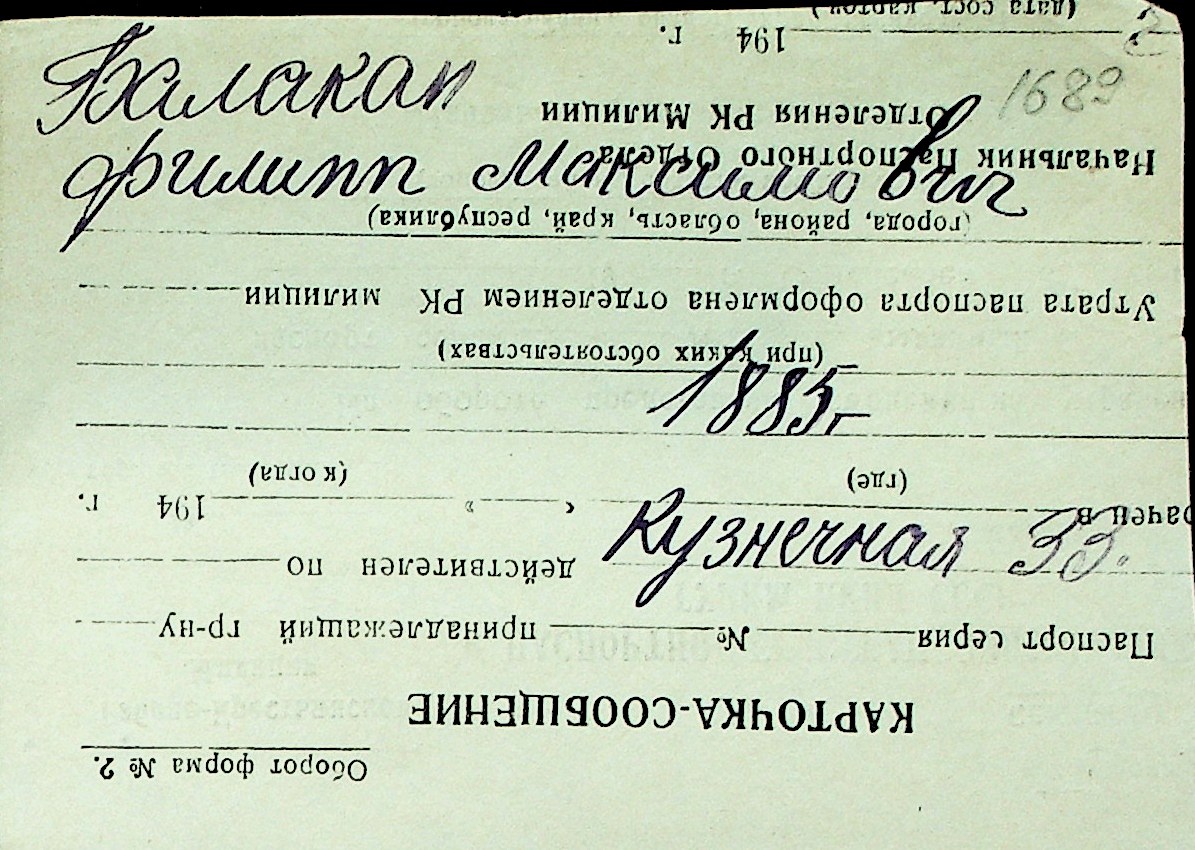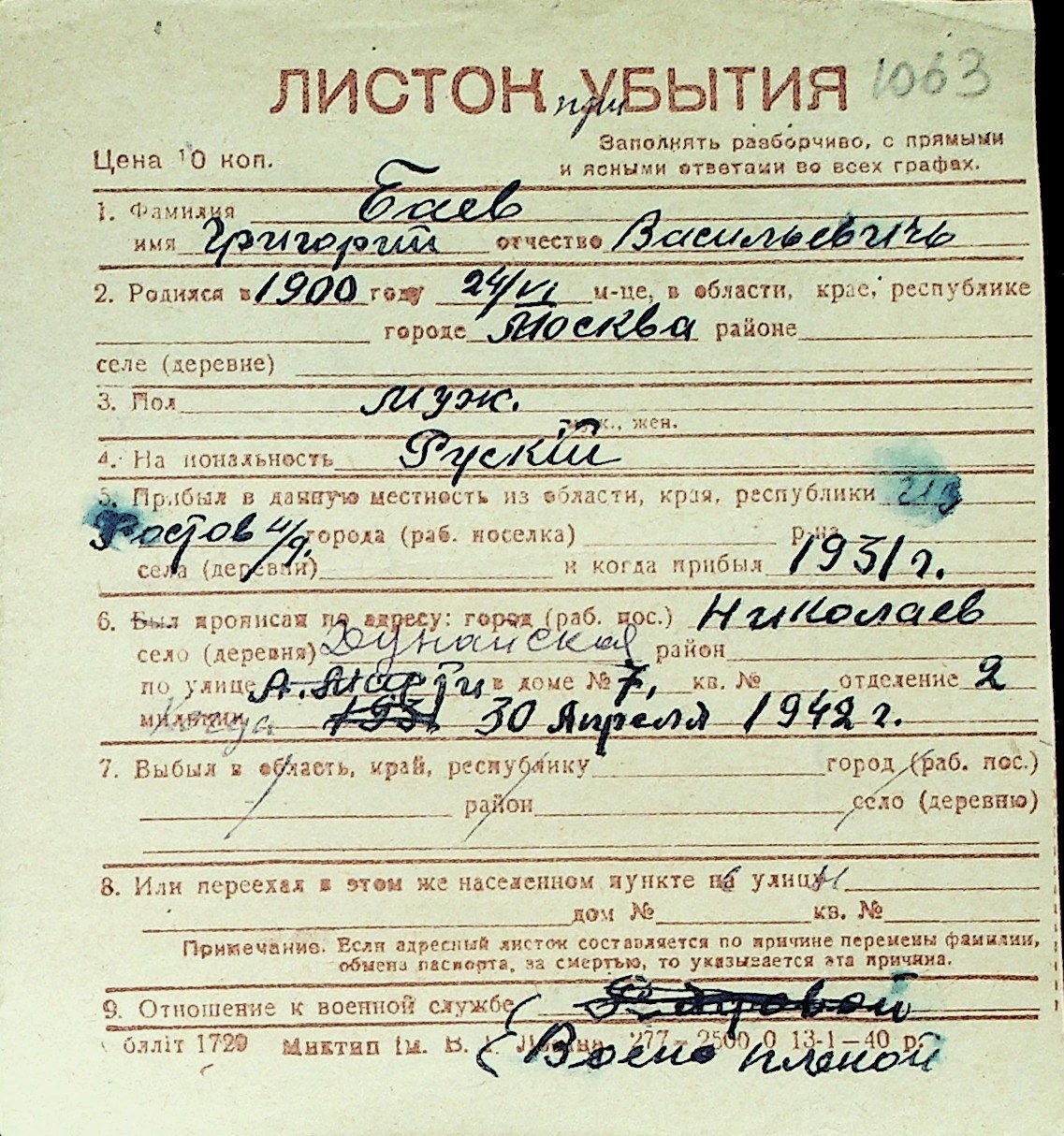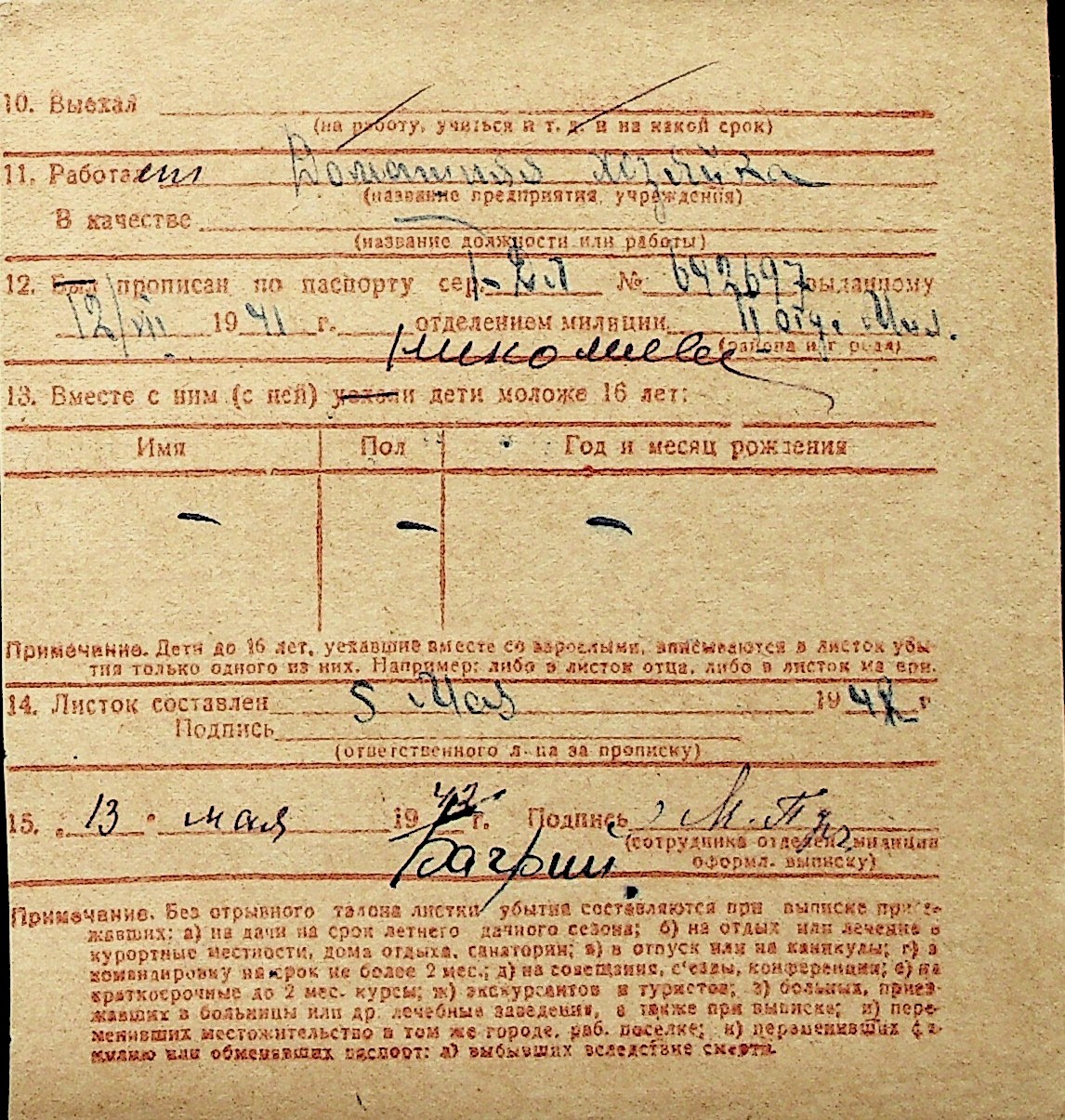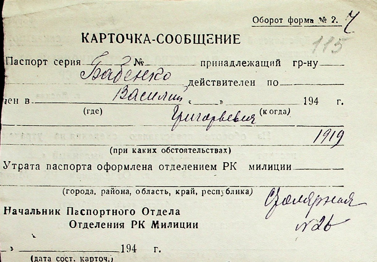 ◦ ◦ Перелік карток на осіб, які мешкали у м. Миколаїв у період окупації 1941–1944 років