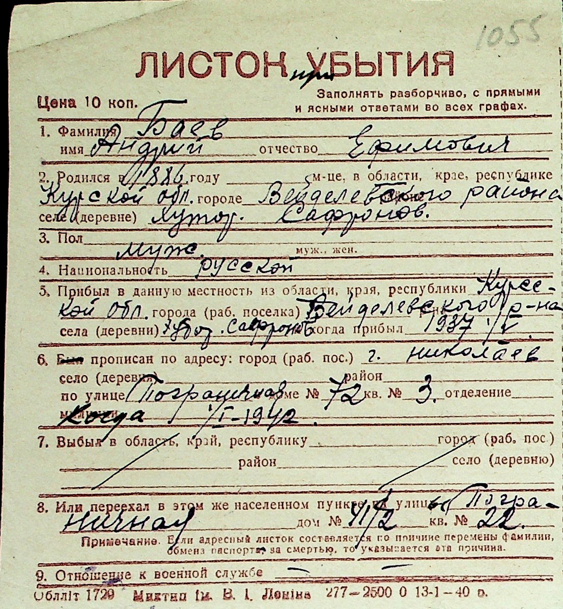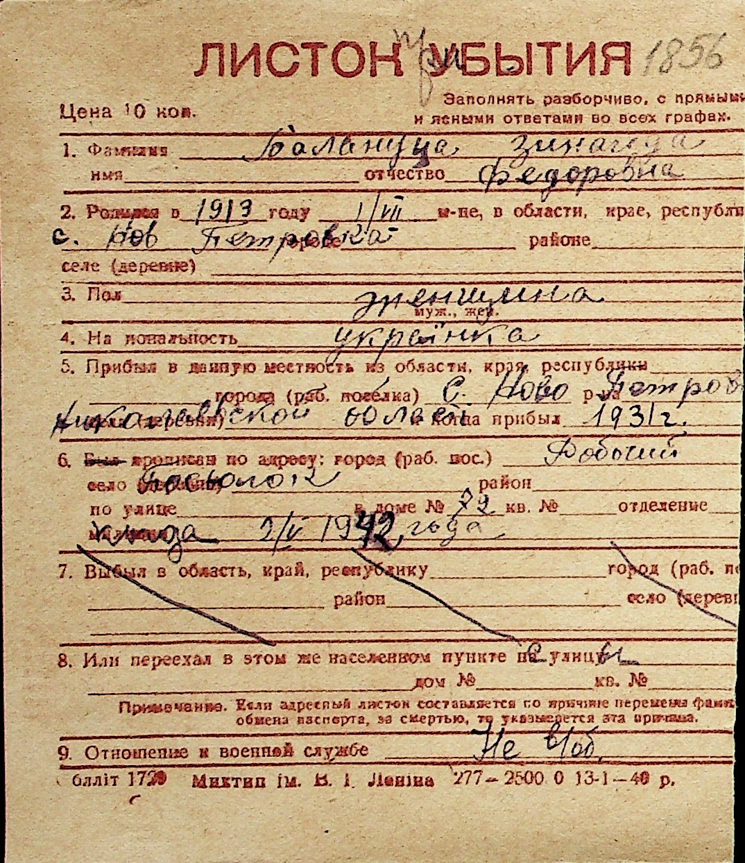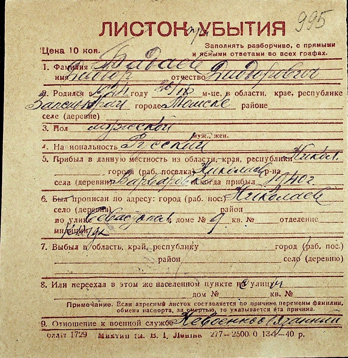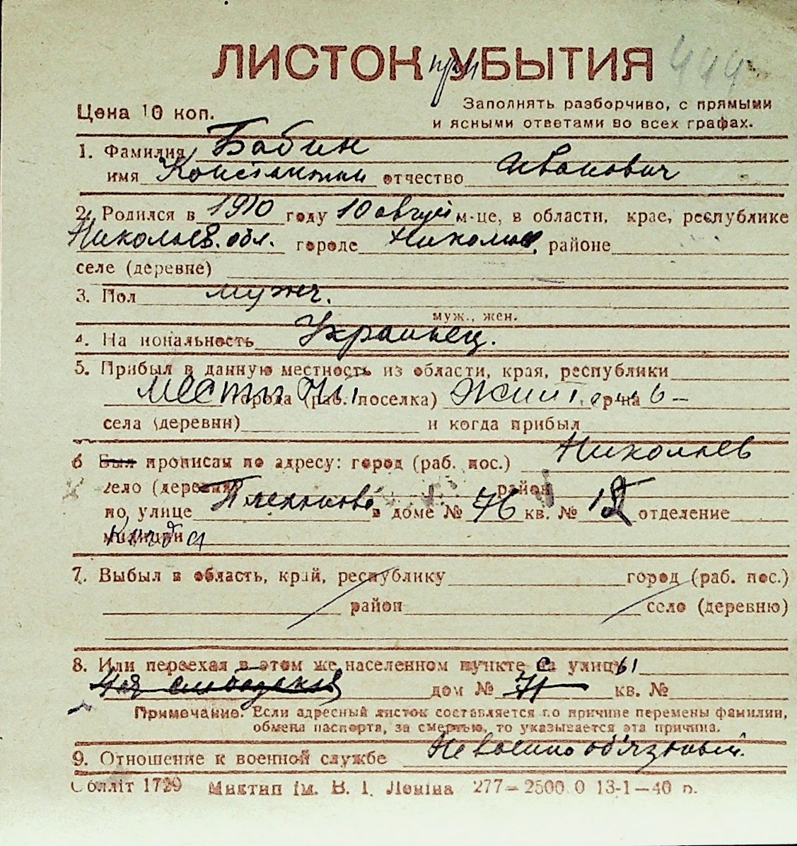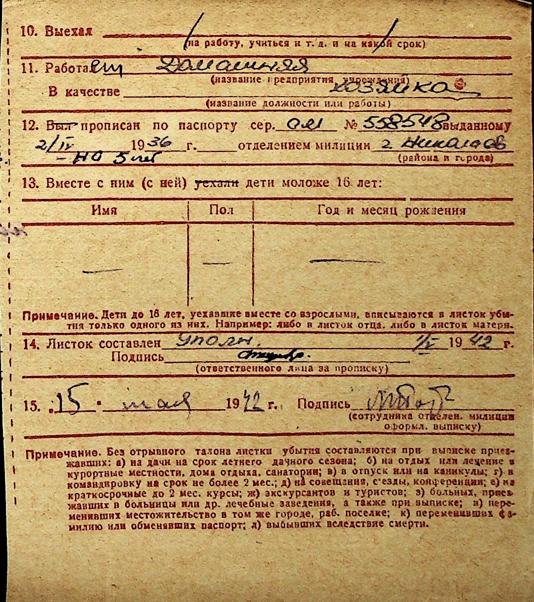 ◦ ◦ Перелік карток на осіб, які мешкали у м. Миколаїв у період окупації 1941–1944 років