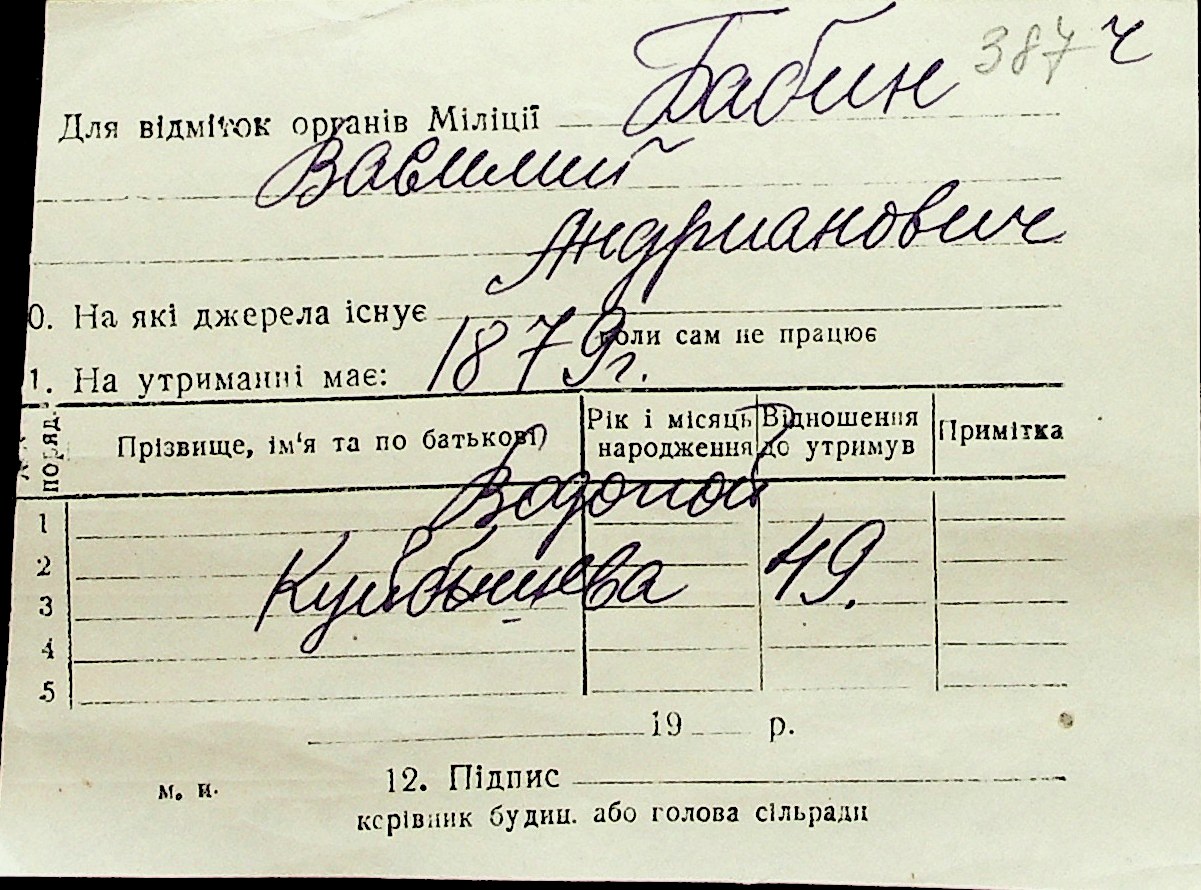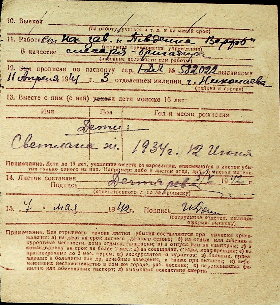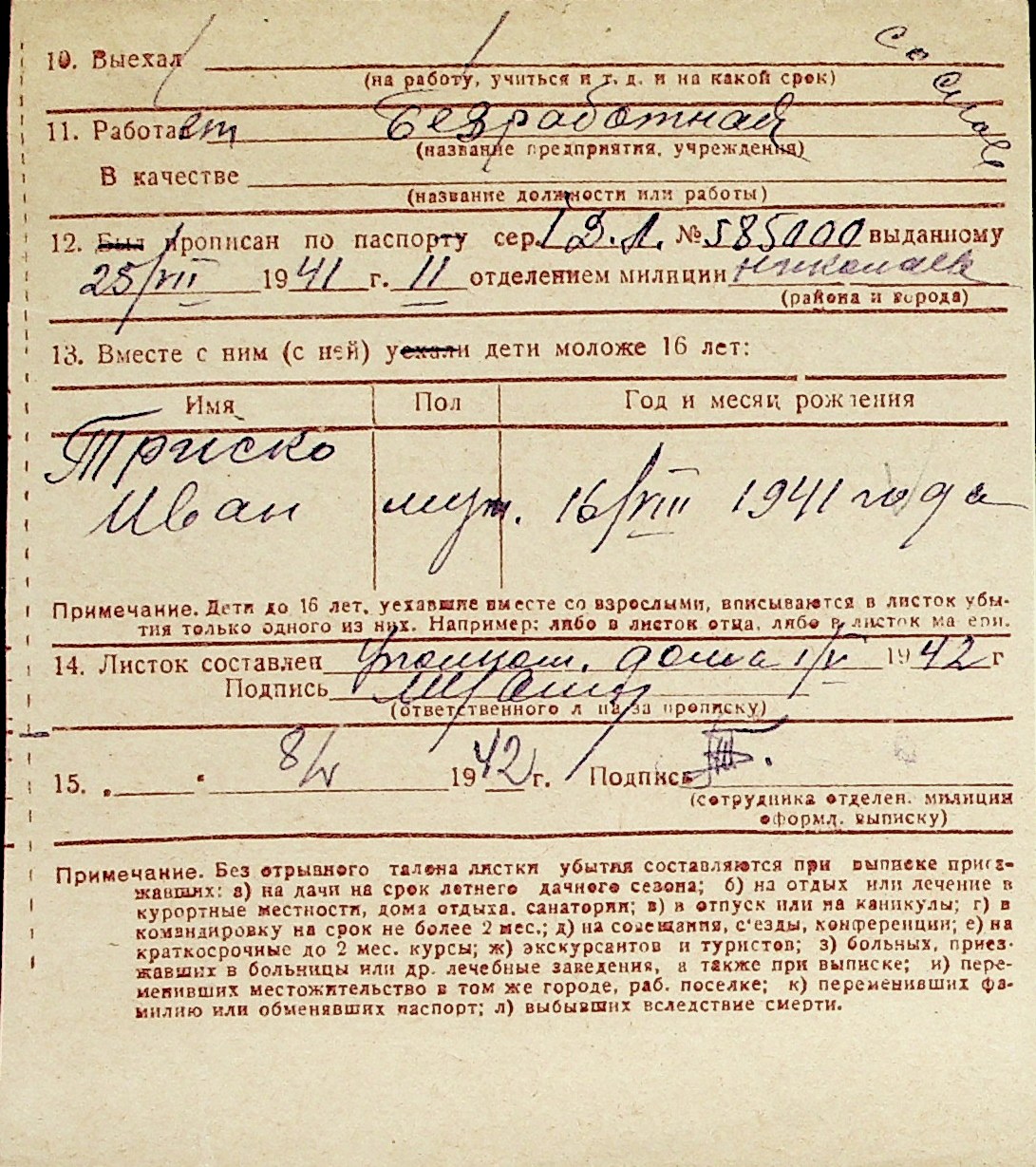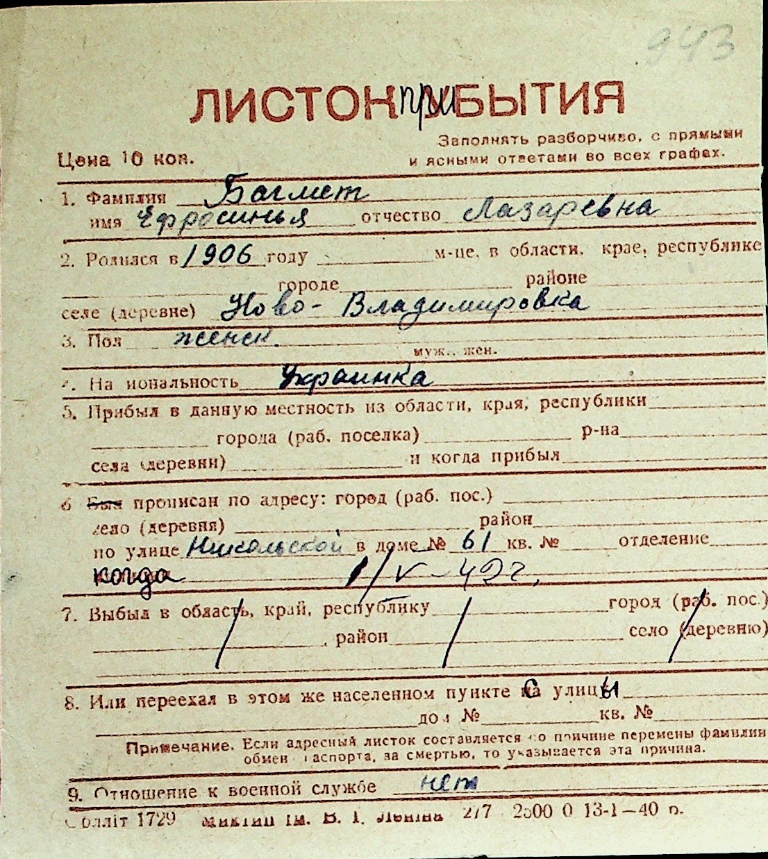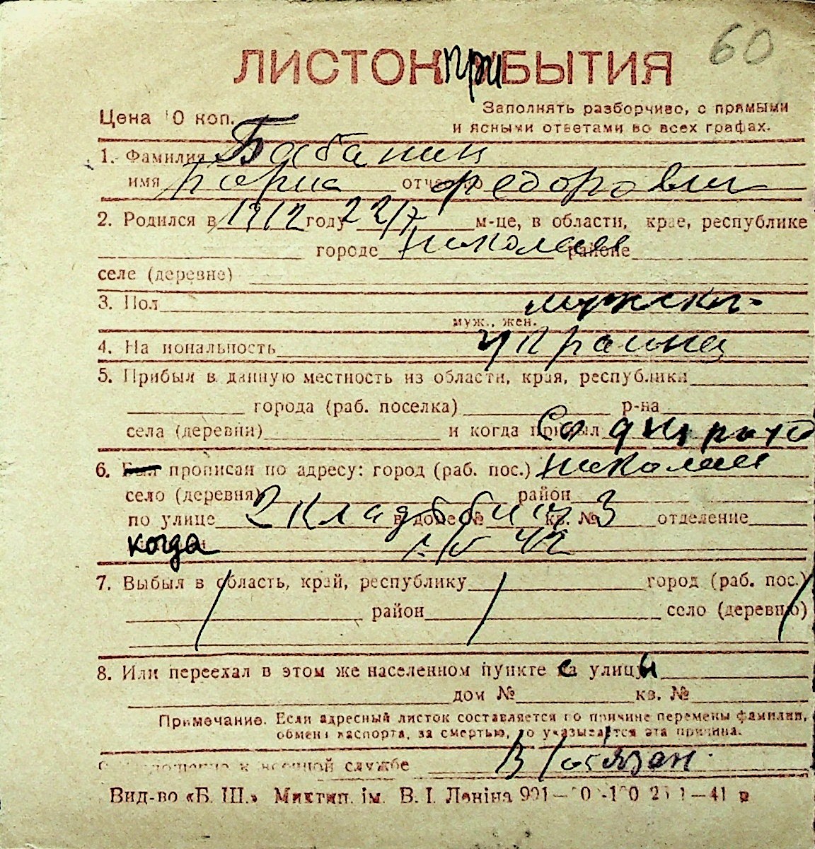 ◦ ◦ Перелік карток на осіб, які мешкали у м. Миколаїв у період окупації 1941–1944 років