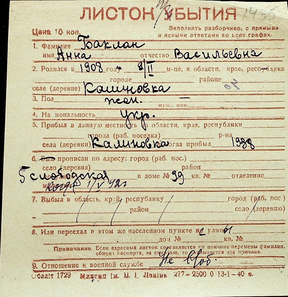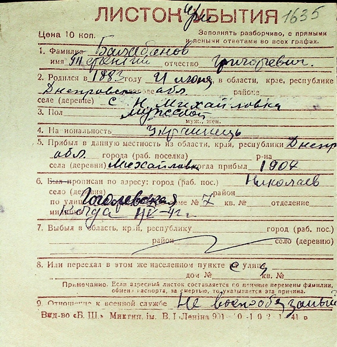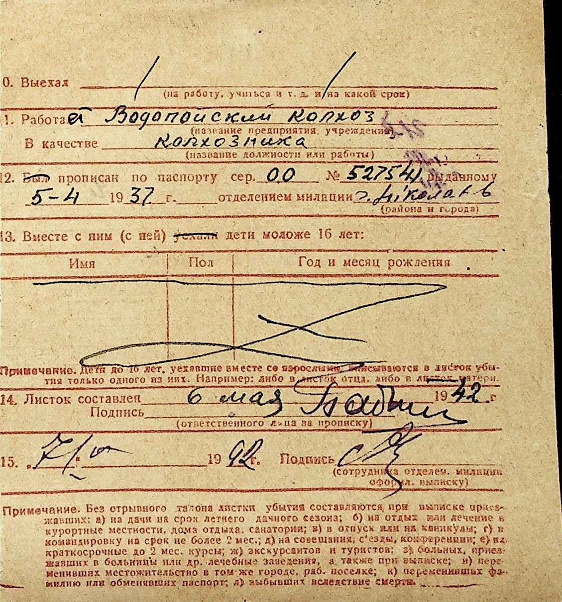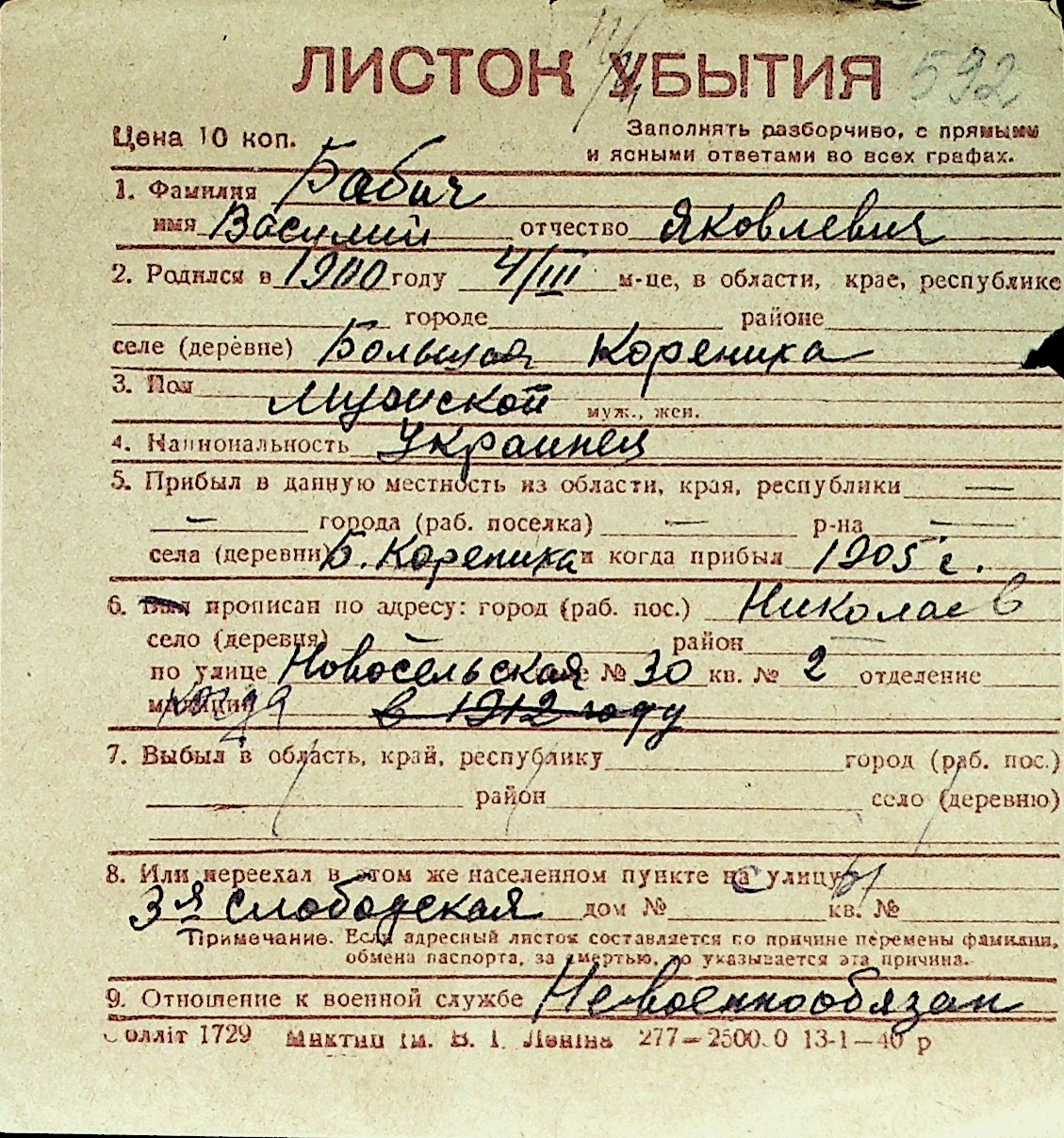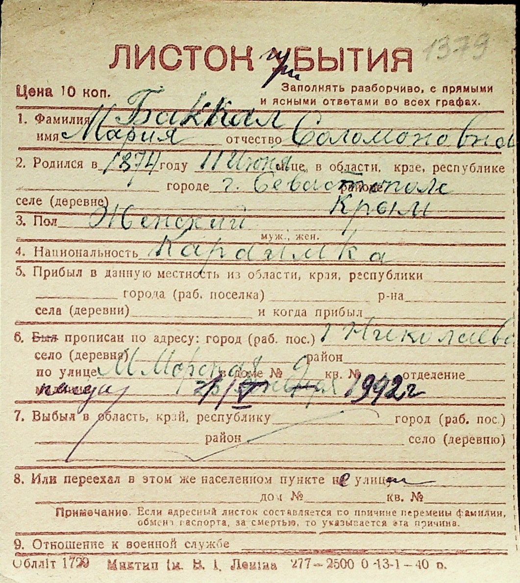 ◦ ◦ Перелік карток на осіб, які мешкали у м. Миколаїв у період окупації 1941–1944 років