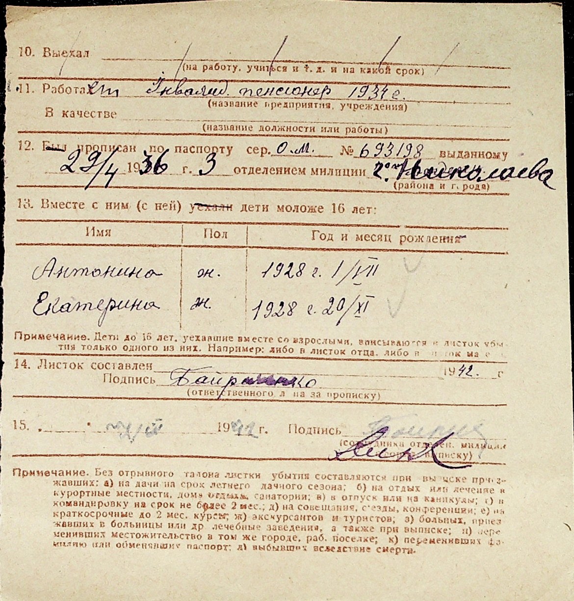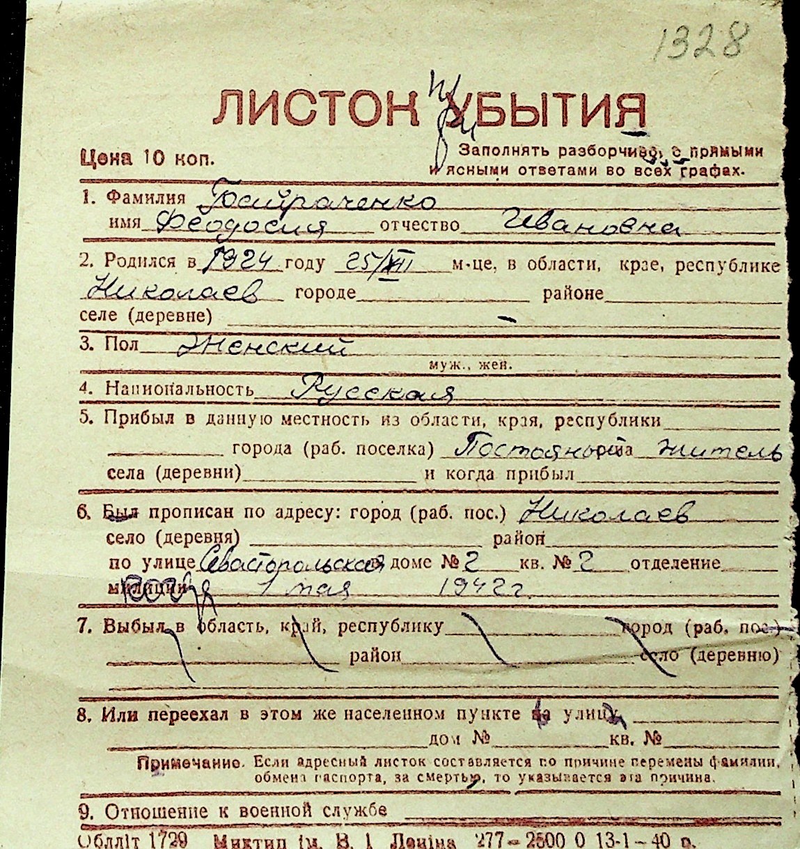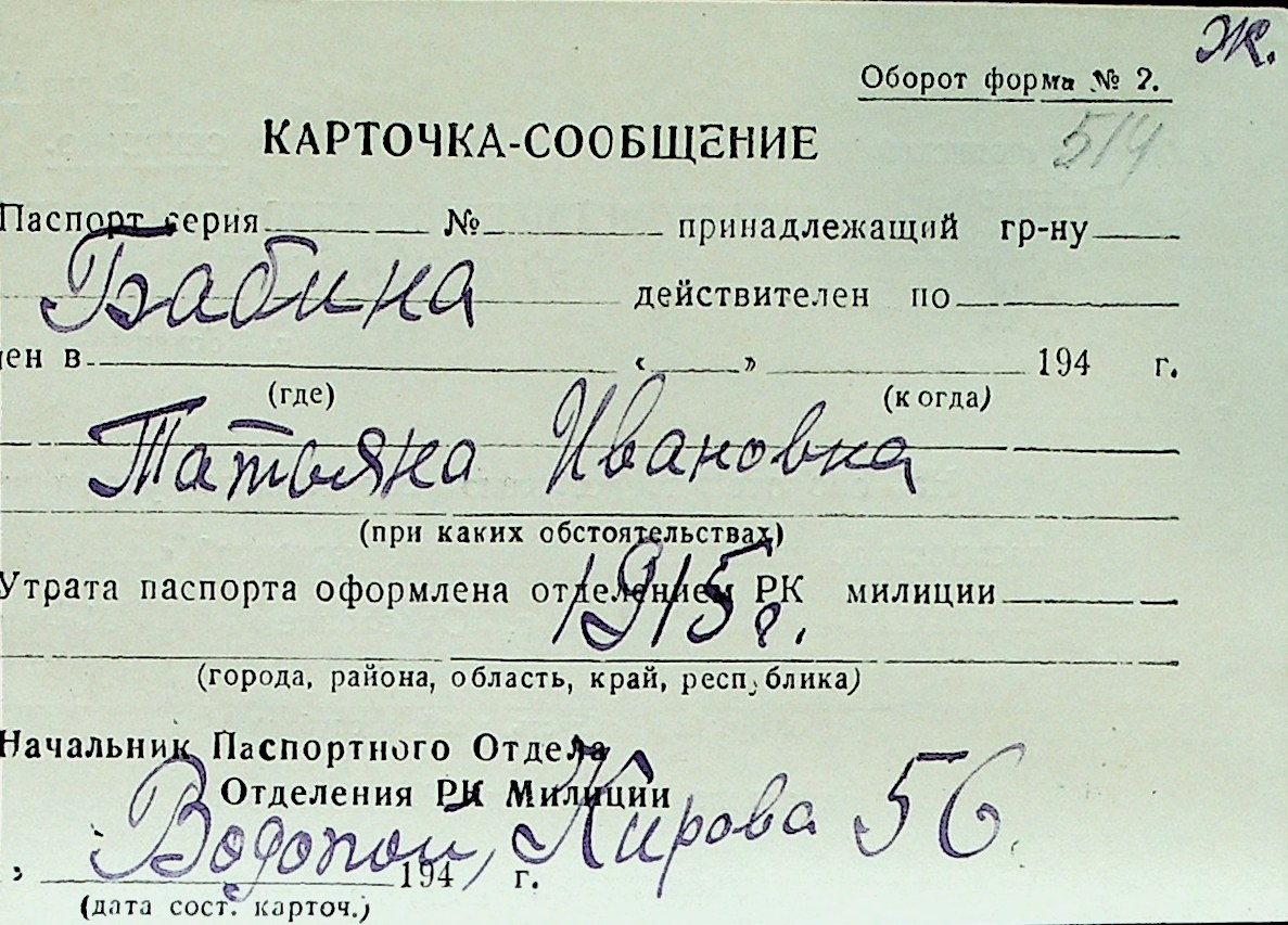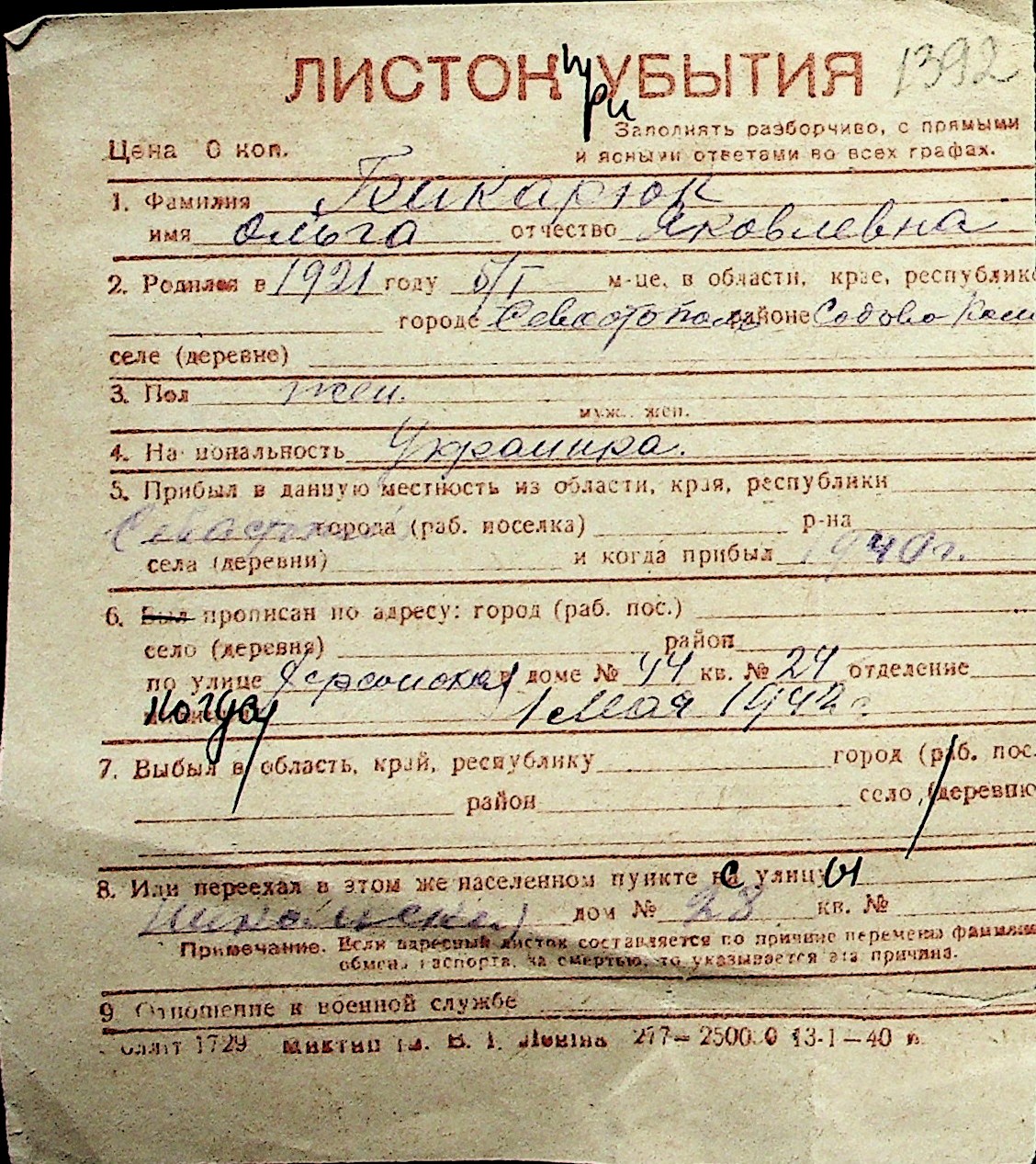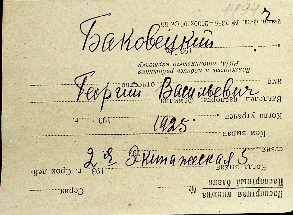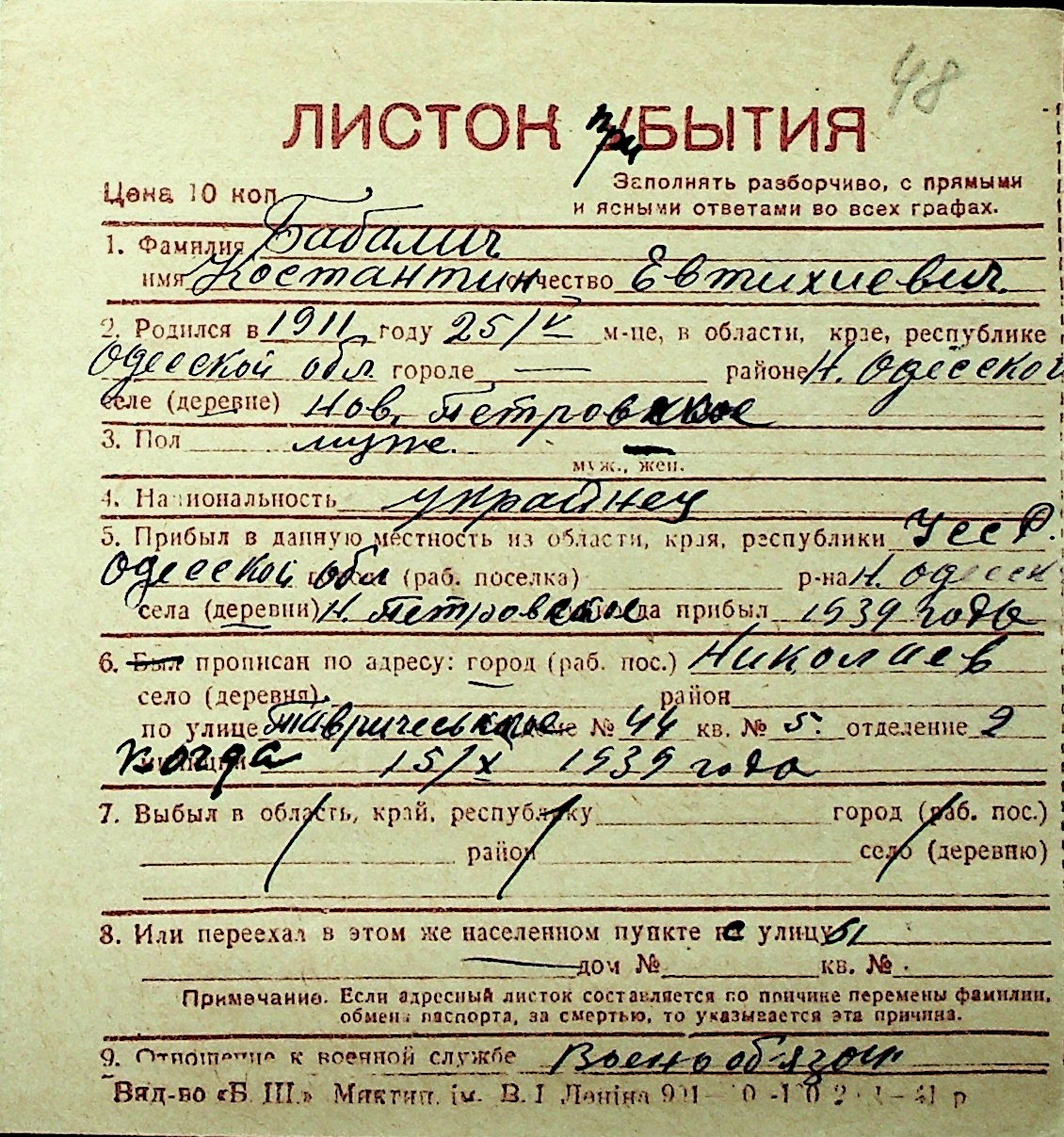 ◦ ◦ Перелік карток на осіб, які мешкали у м. Миколаїв у період окупації 1941–1944 років