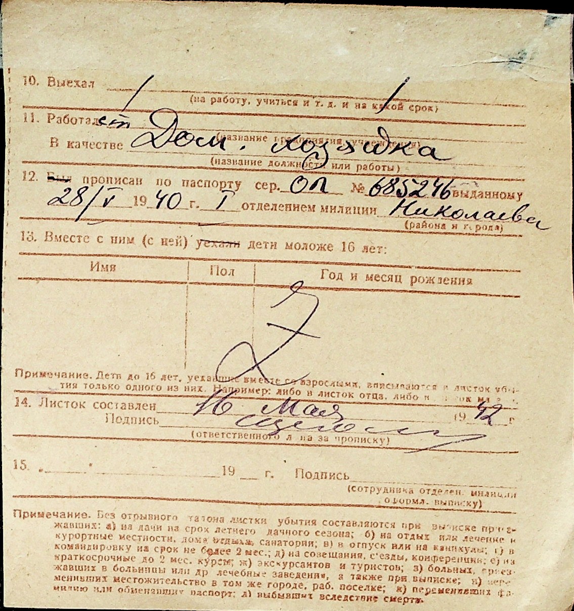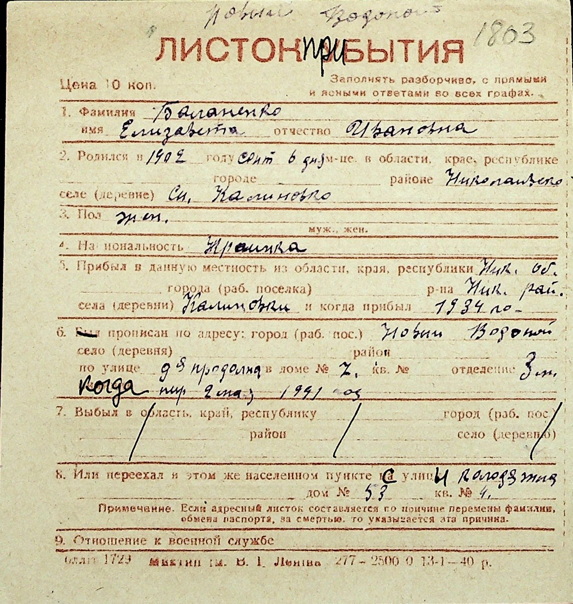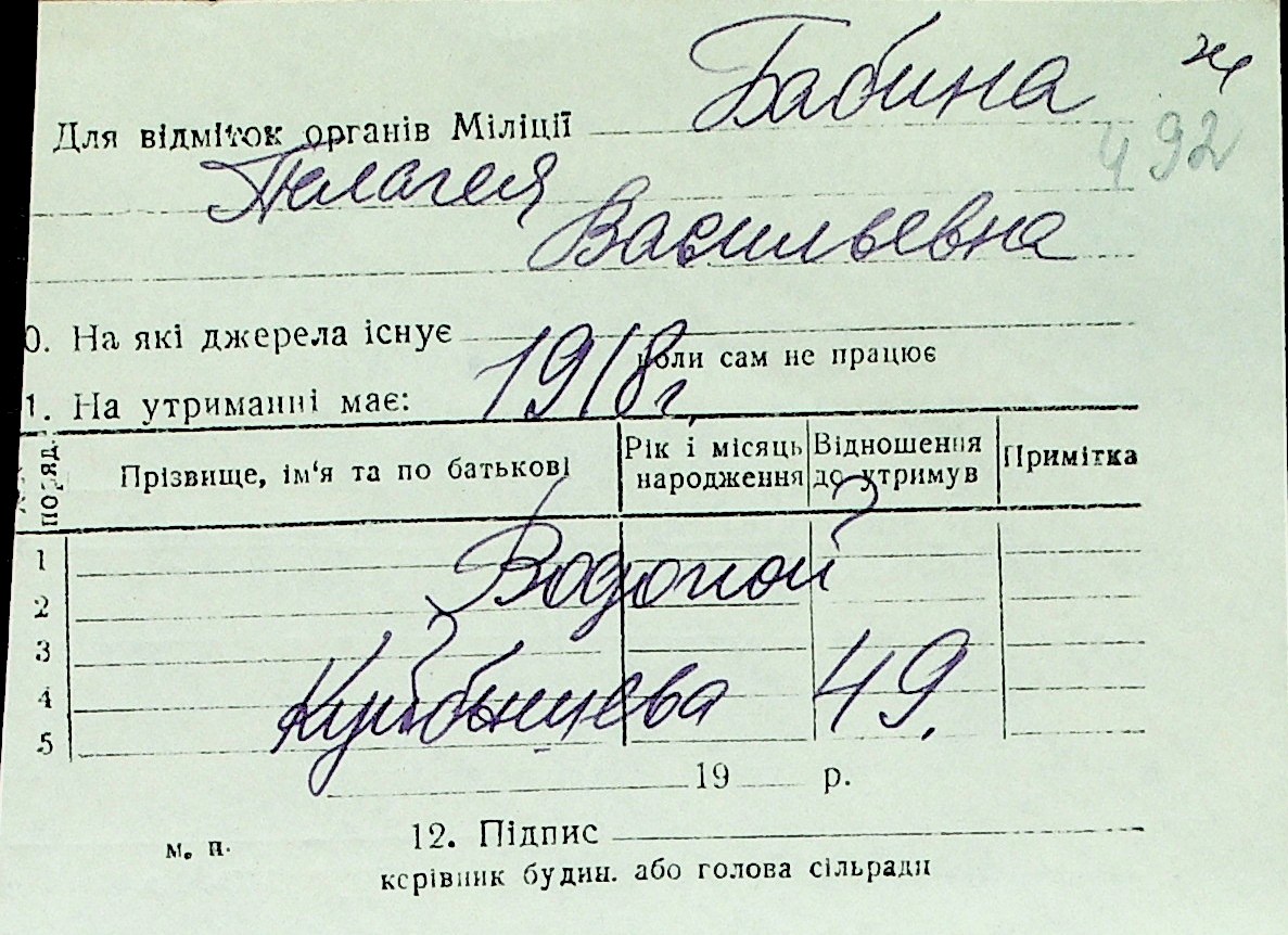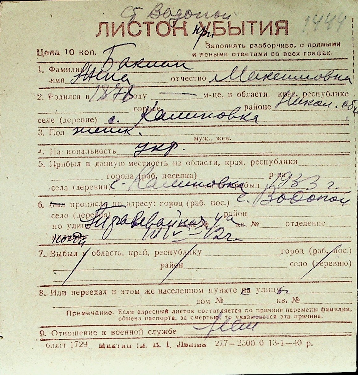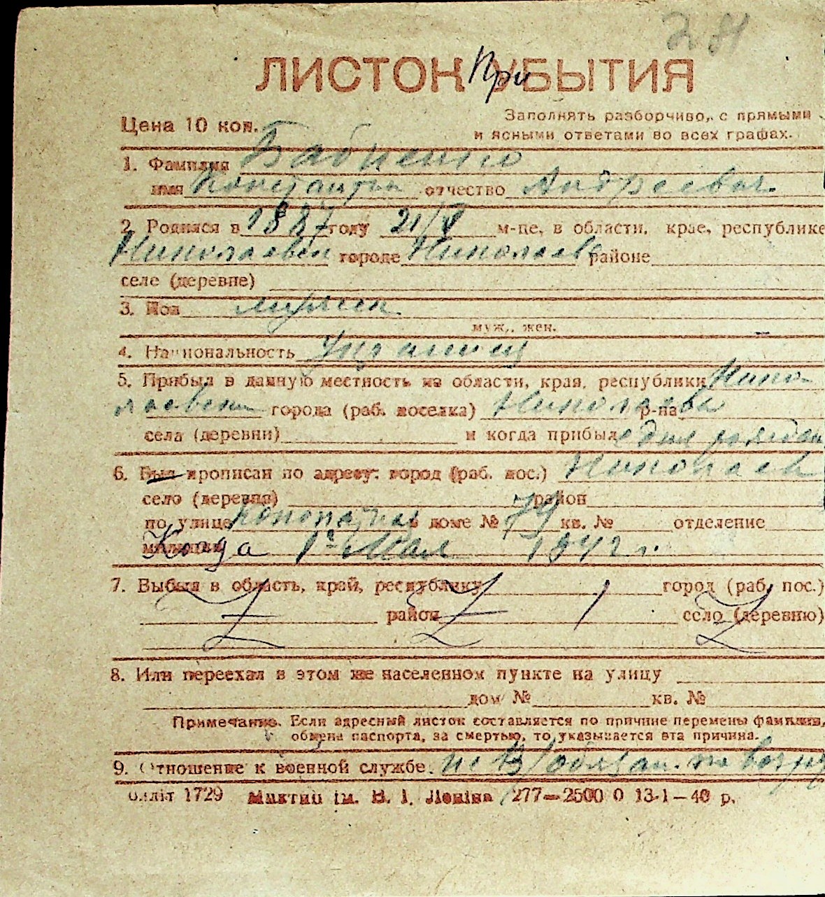 ◦ ◦ Перелік карток на осіб, які мешкали у м. Миколаїв у період окупації 1941–1944 років