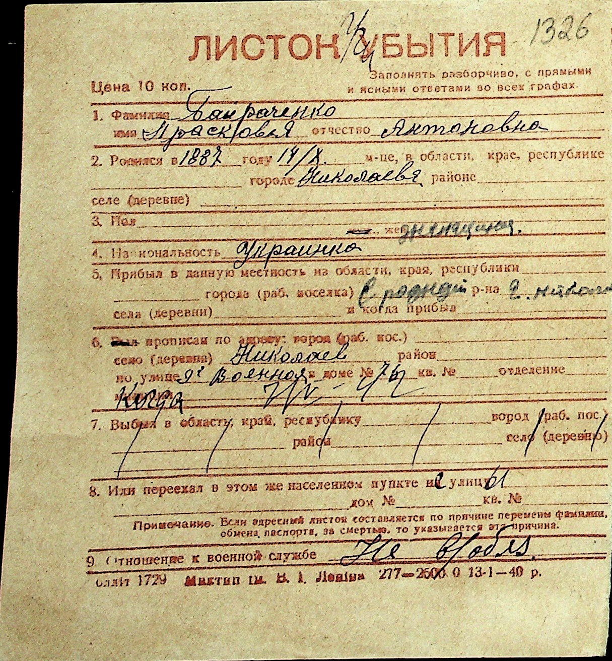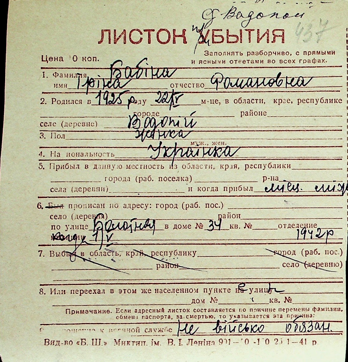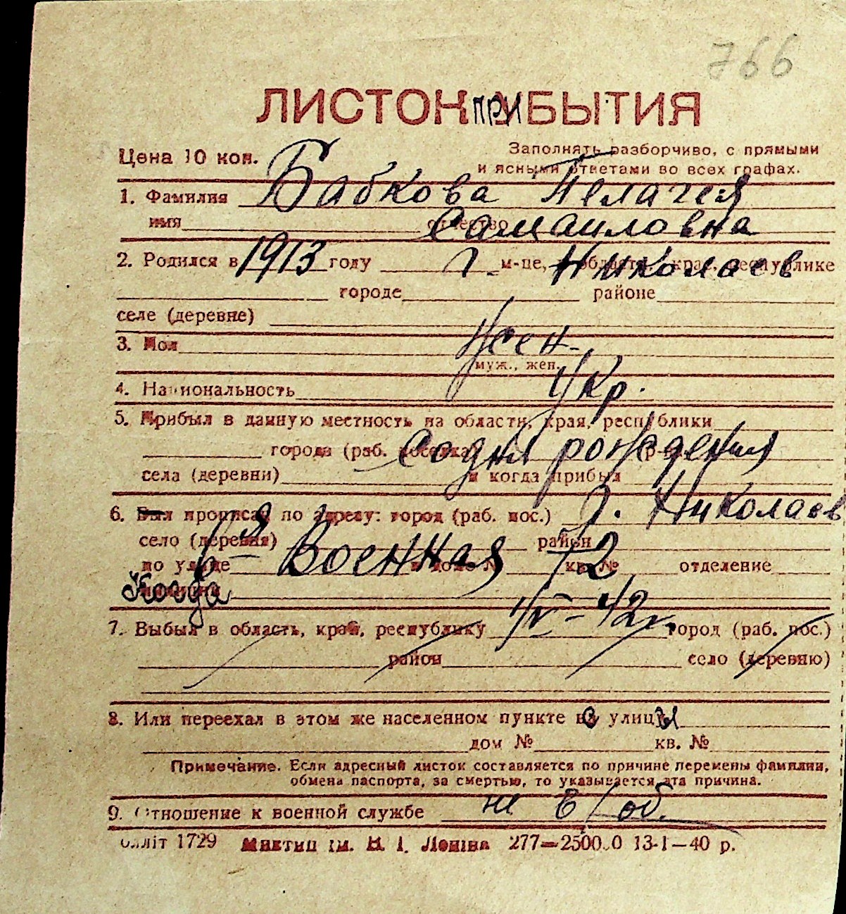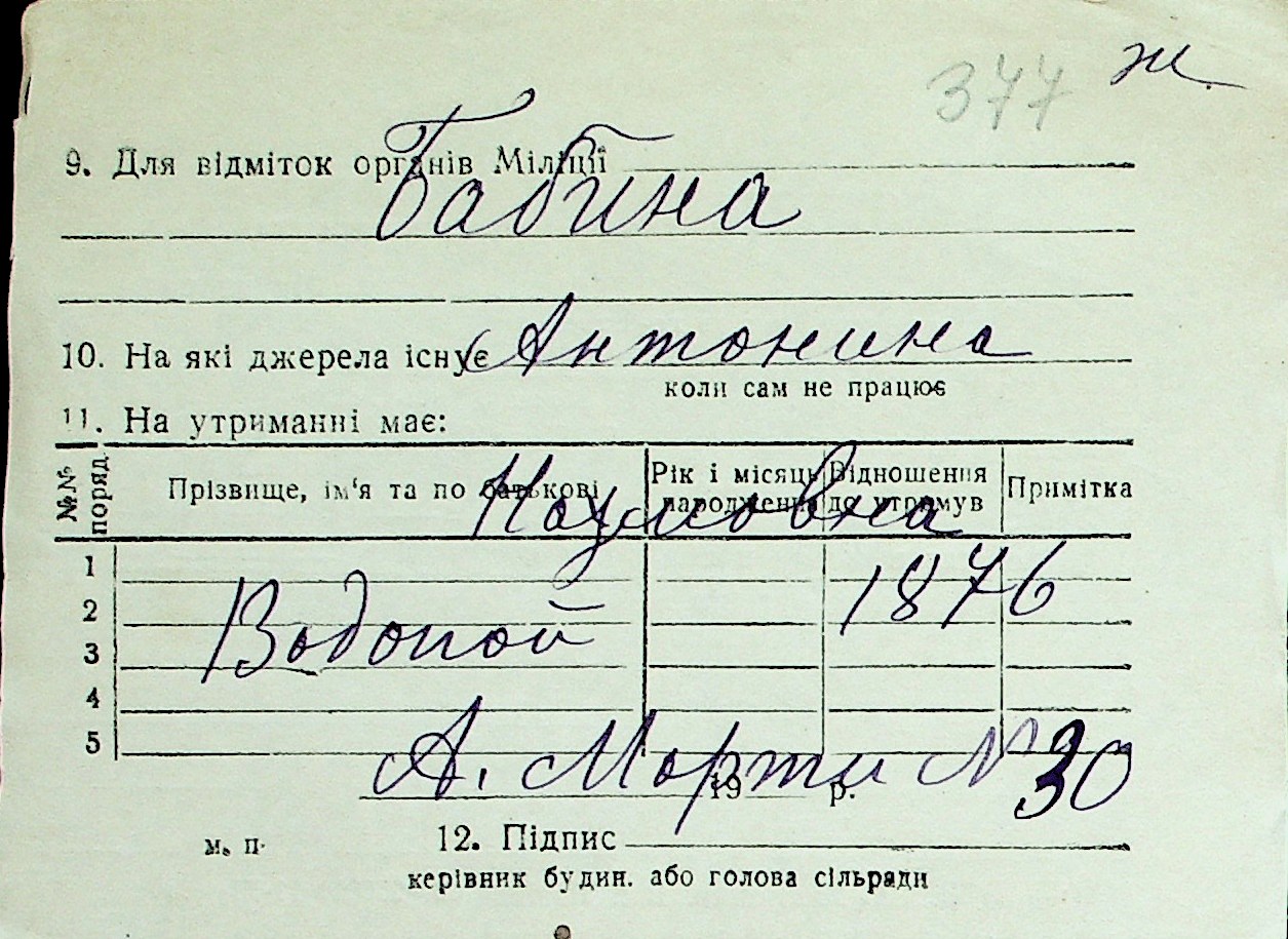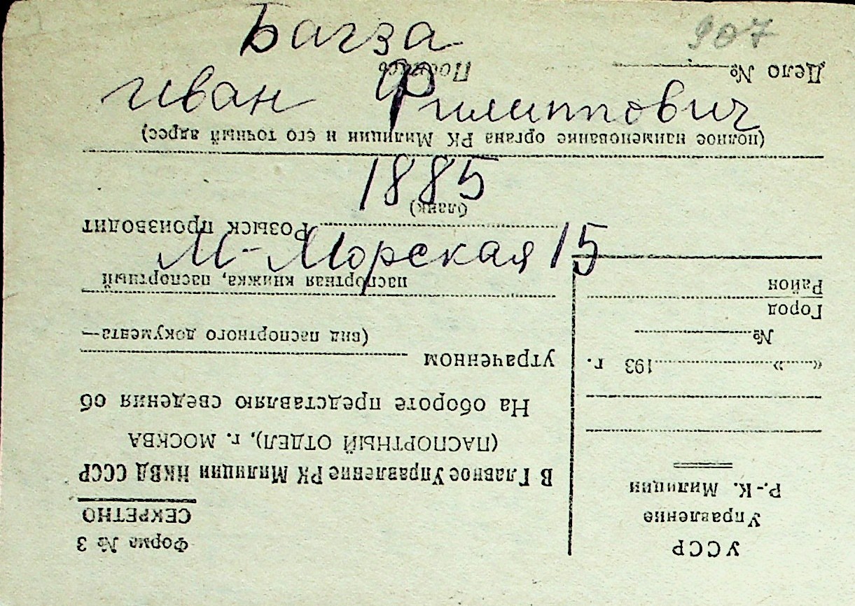 ◦ ◦ Перелік карток на осіб, які мешкали у м. Миколаїв у період окупації 1941–1944 років
