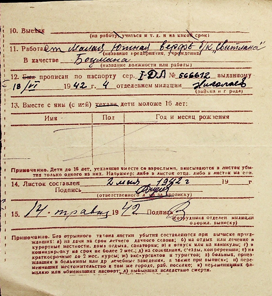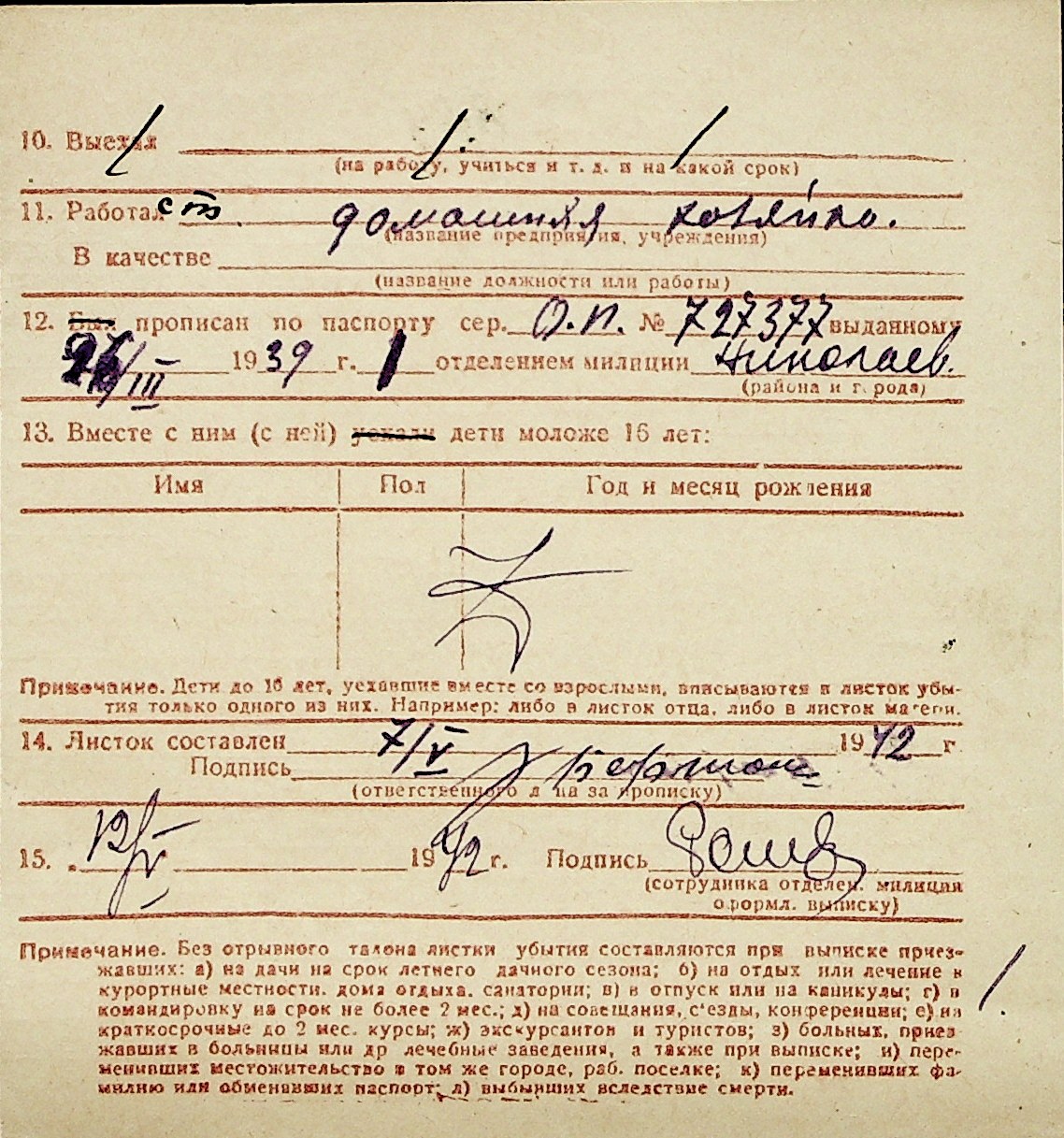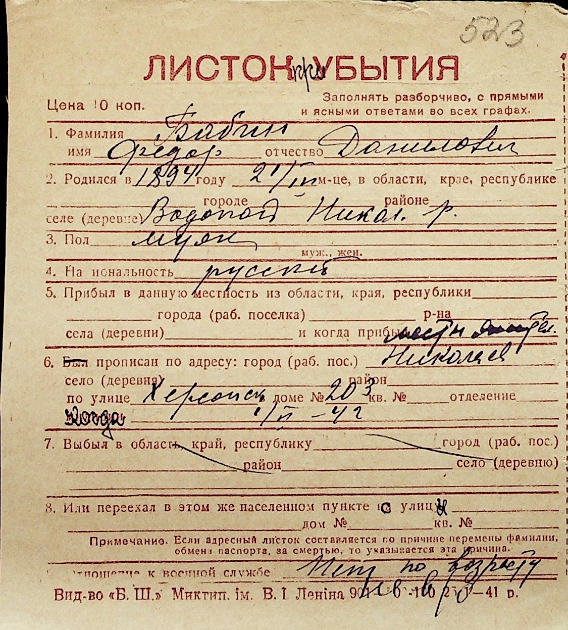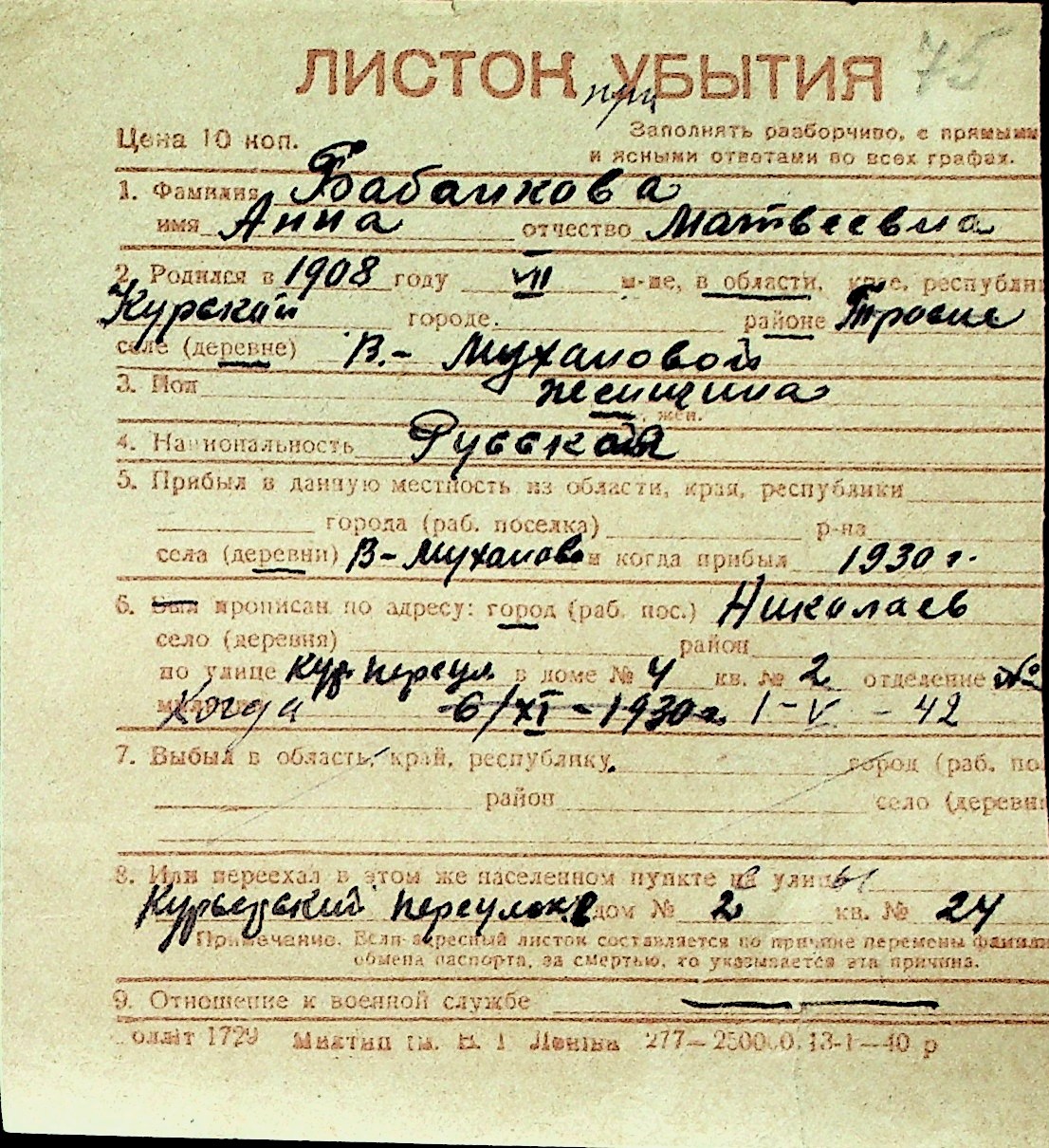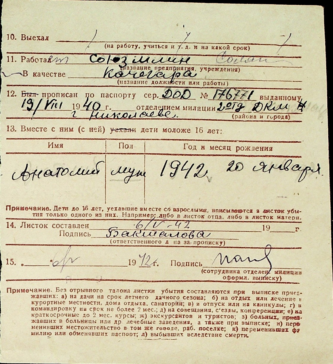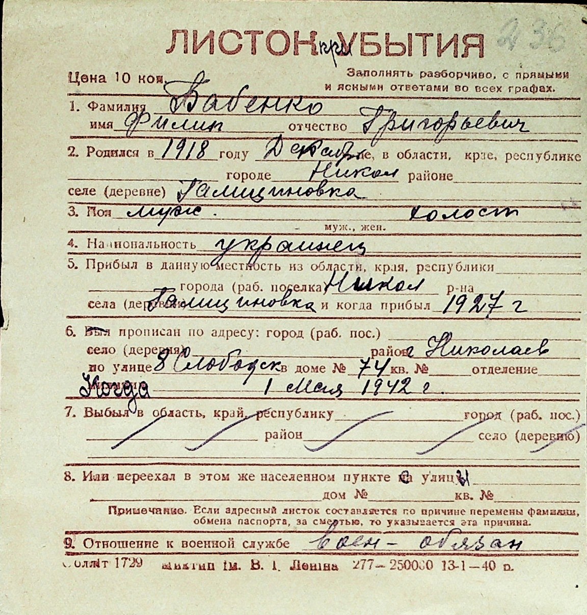◦ ◦ Перелік карток на осіб, які мешкали у м. Миколаїв у період окупації 1941–1944 років