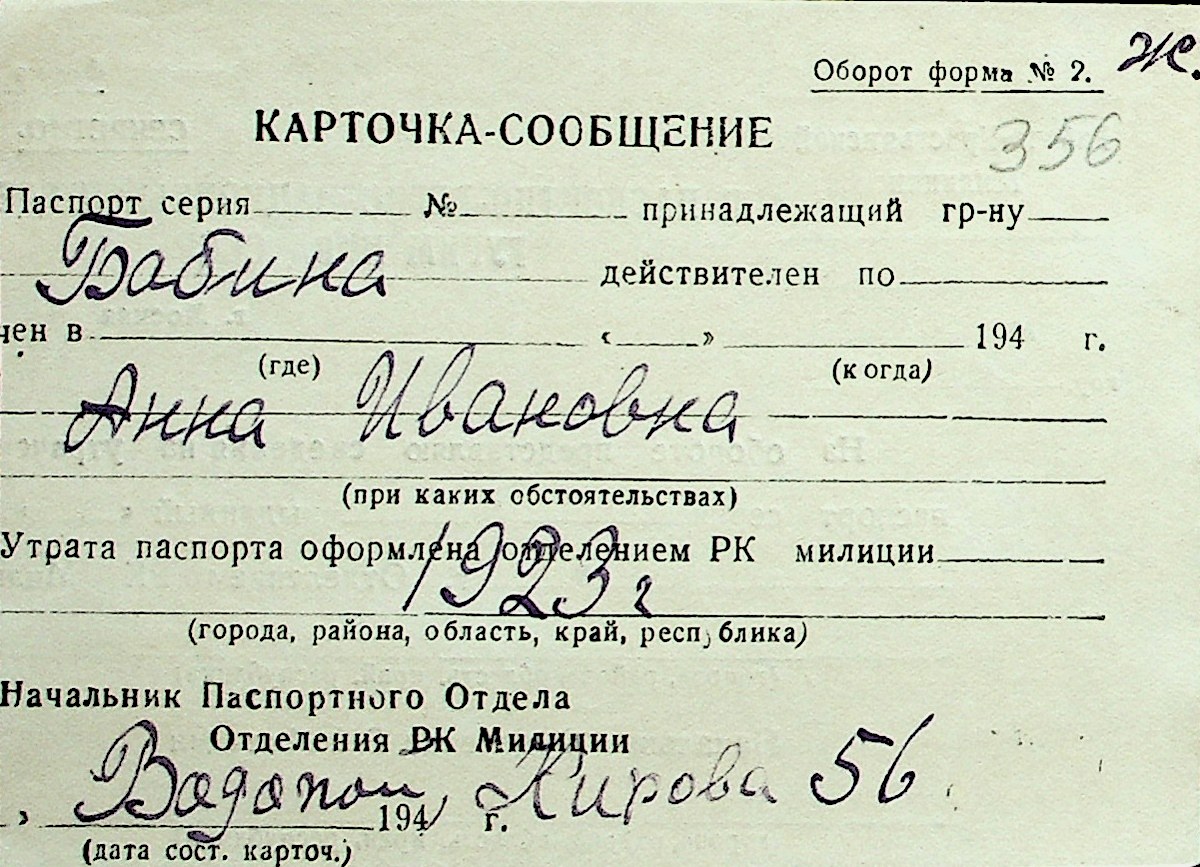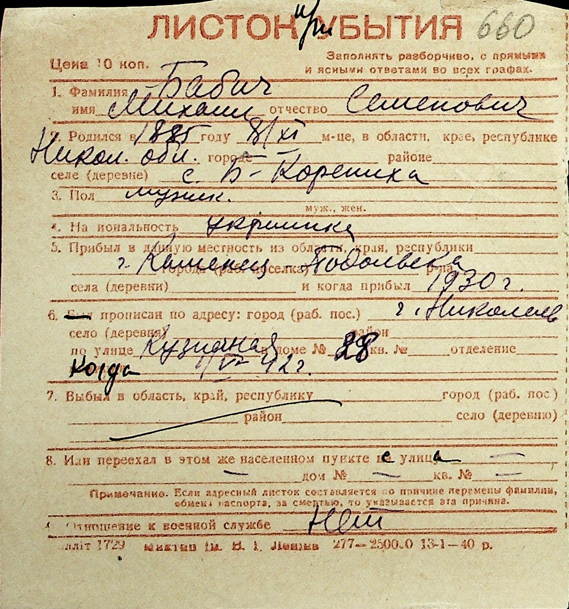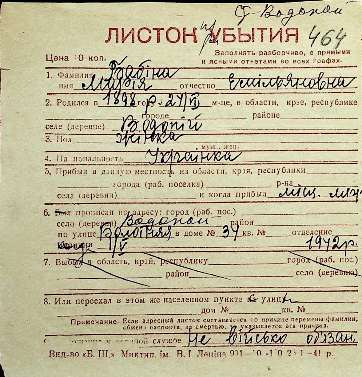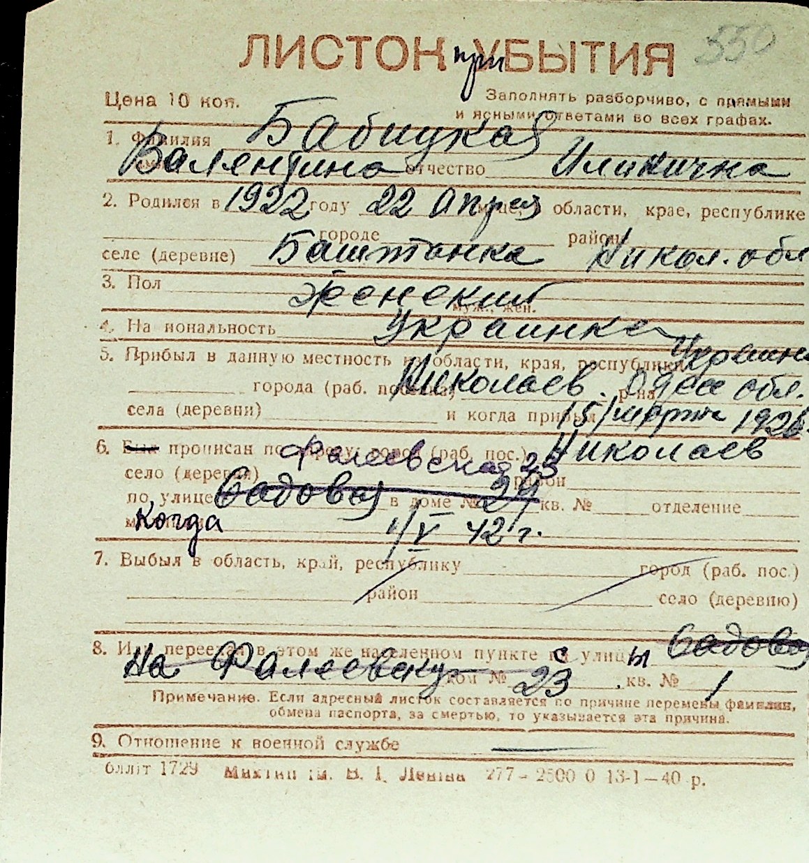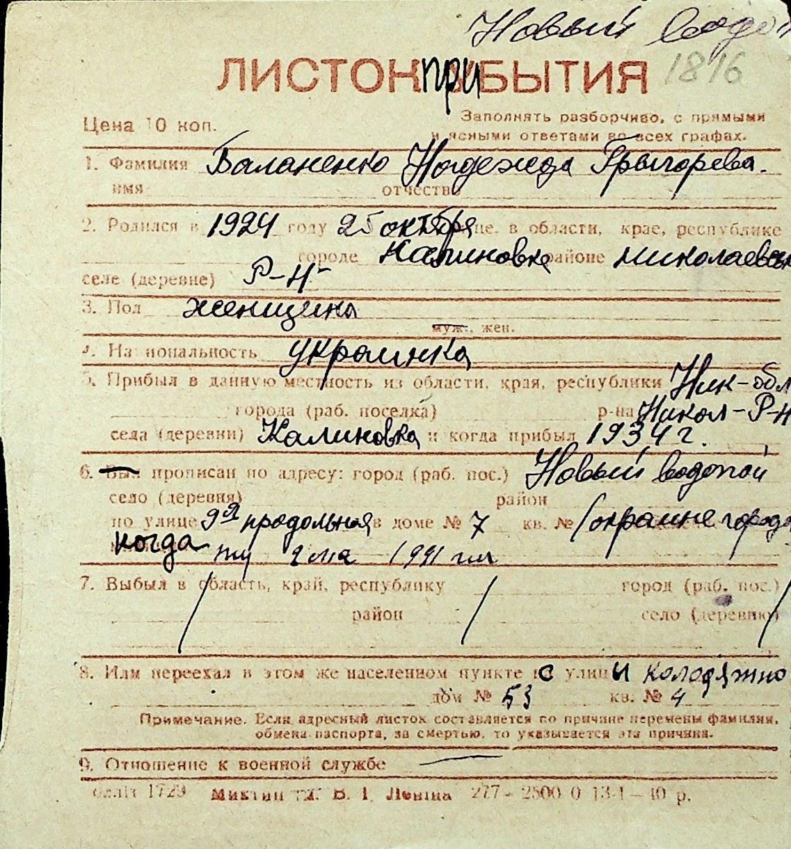 ◦ ◦ Перелік карток на осіб, які мешкали у м. Миколаїв у період окупації 1941–1944 років