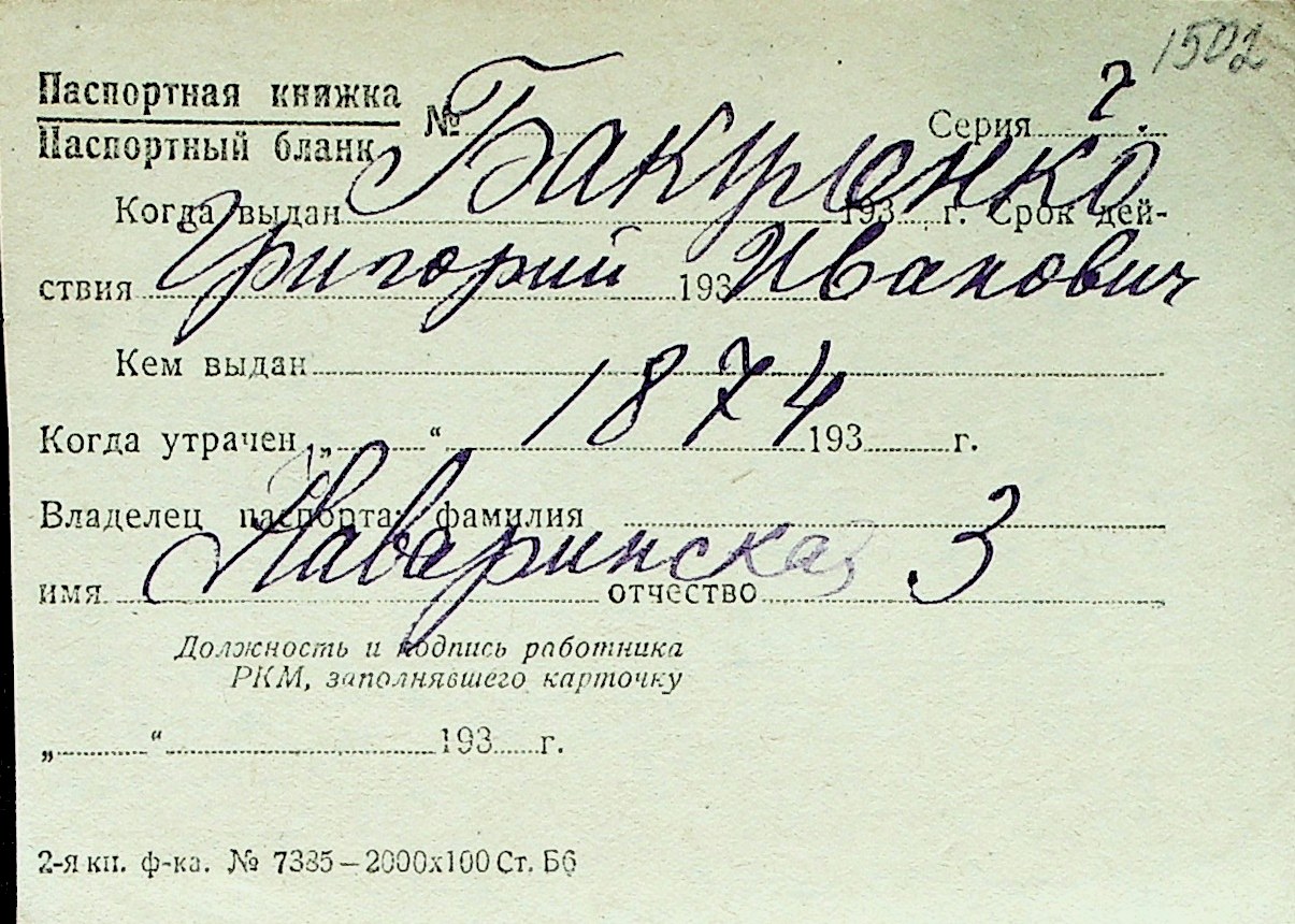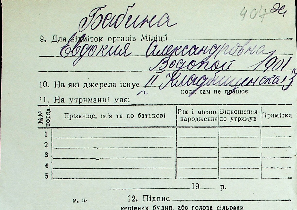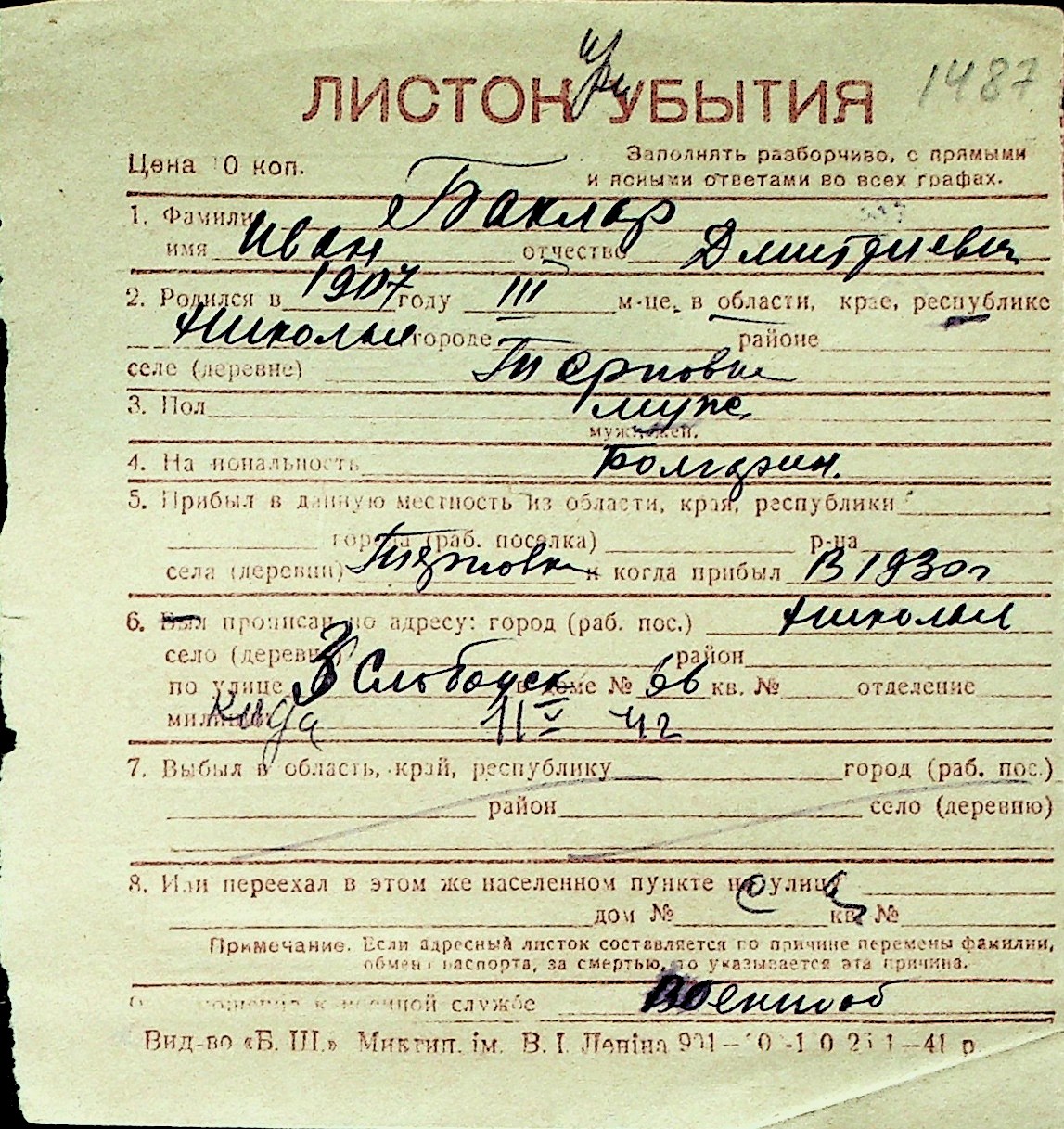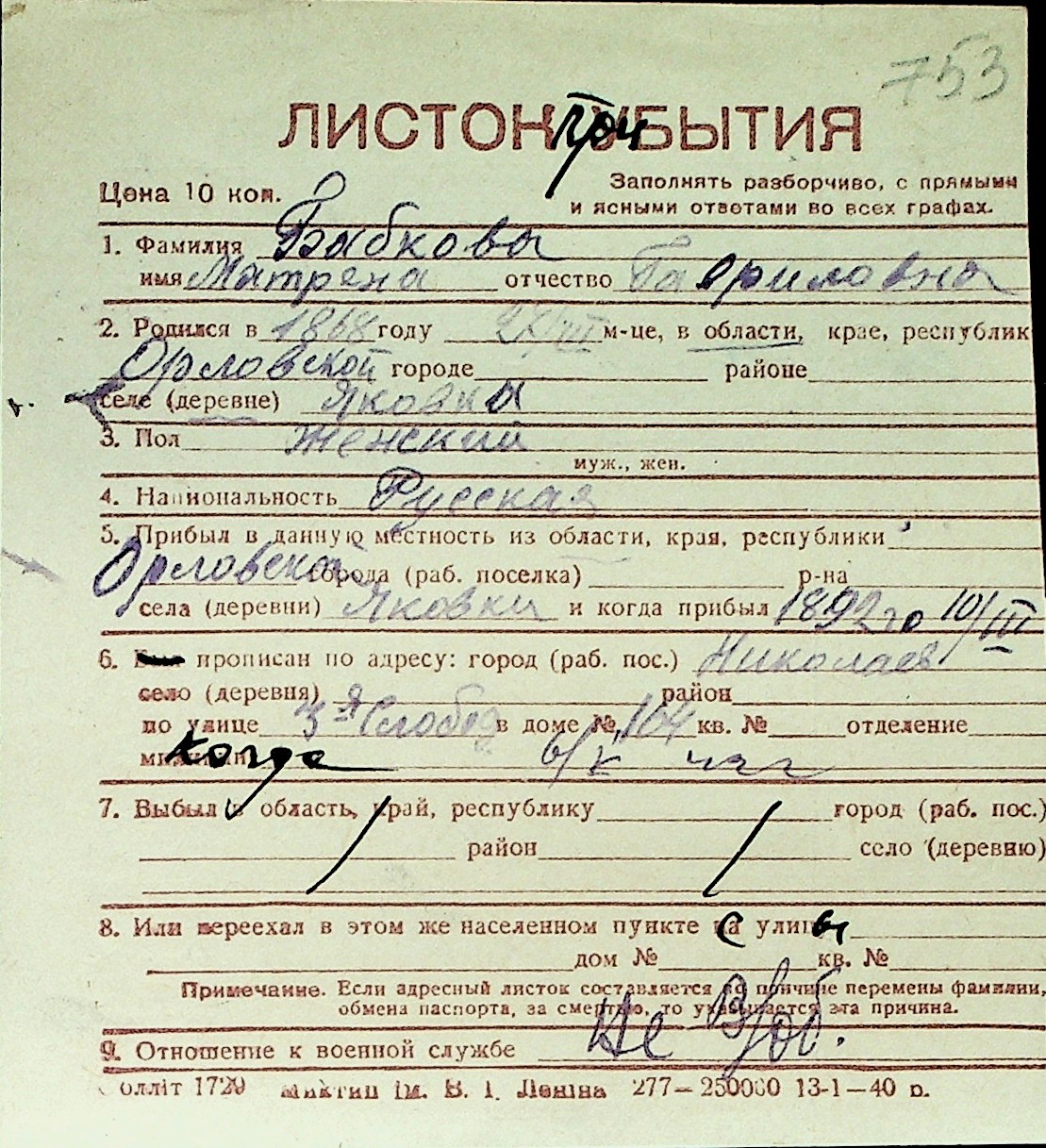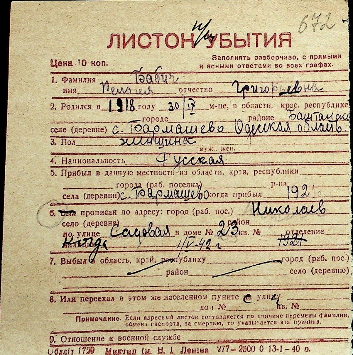 ◦ ◦ Перелік карток на осіб, які мешкали у м. Миколаїв у період окупації 1941–1944 років