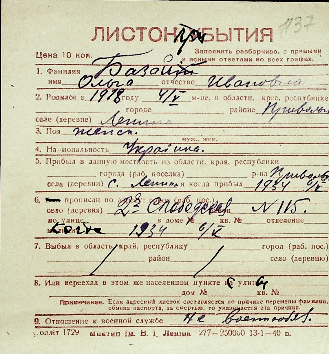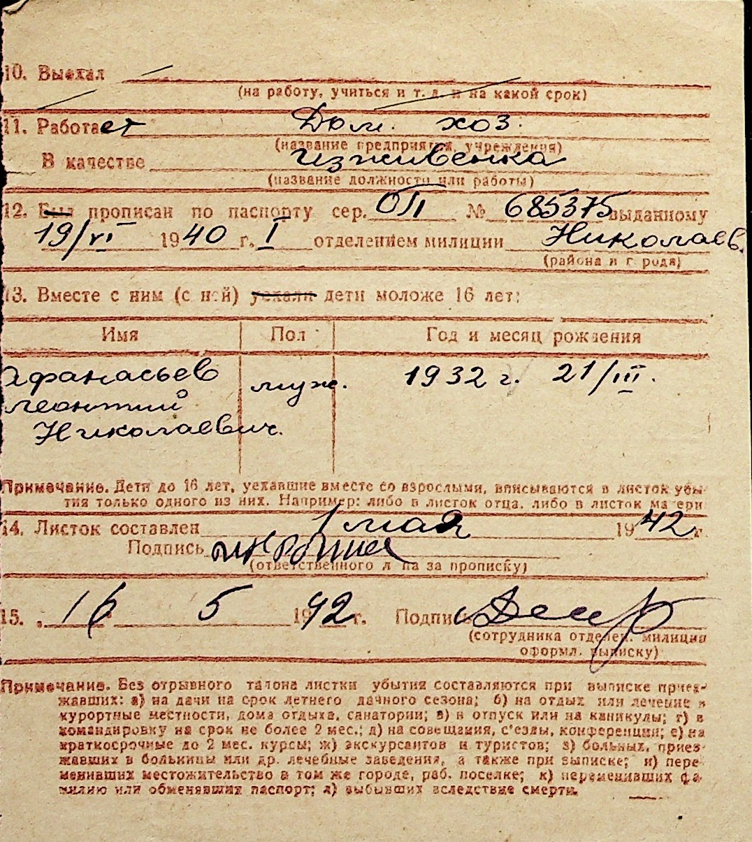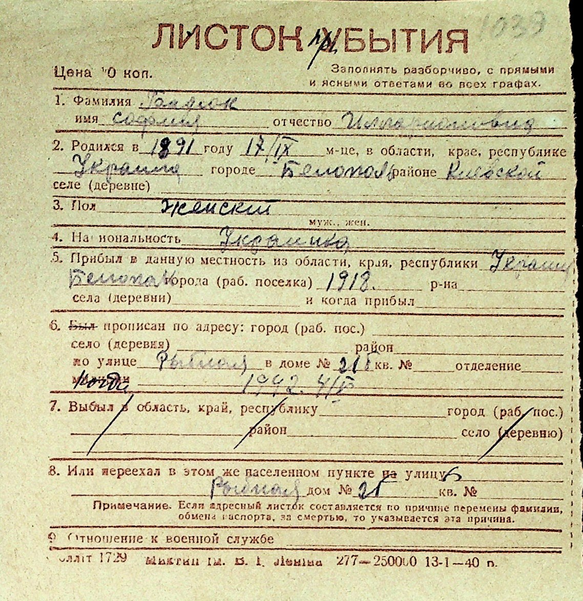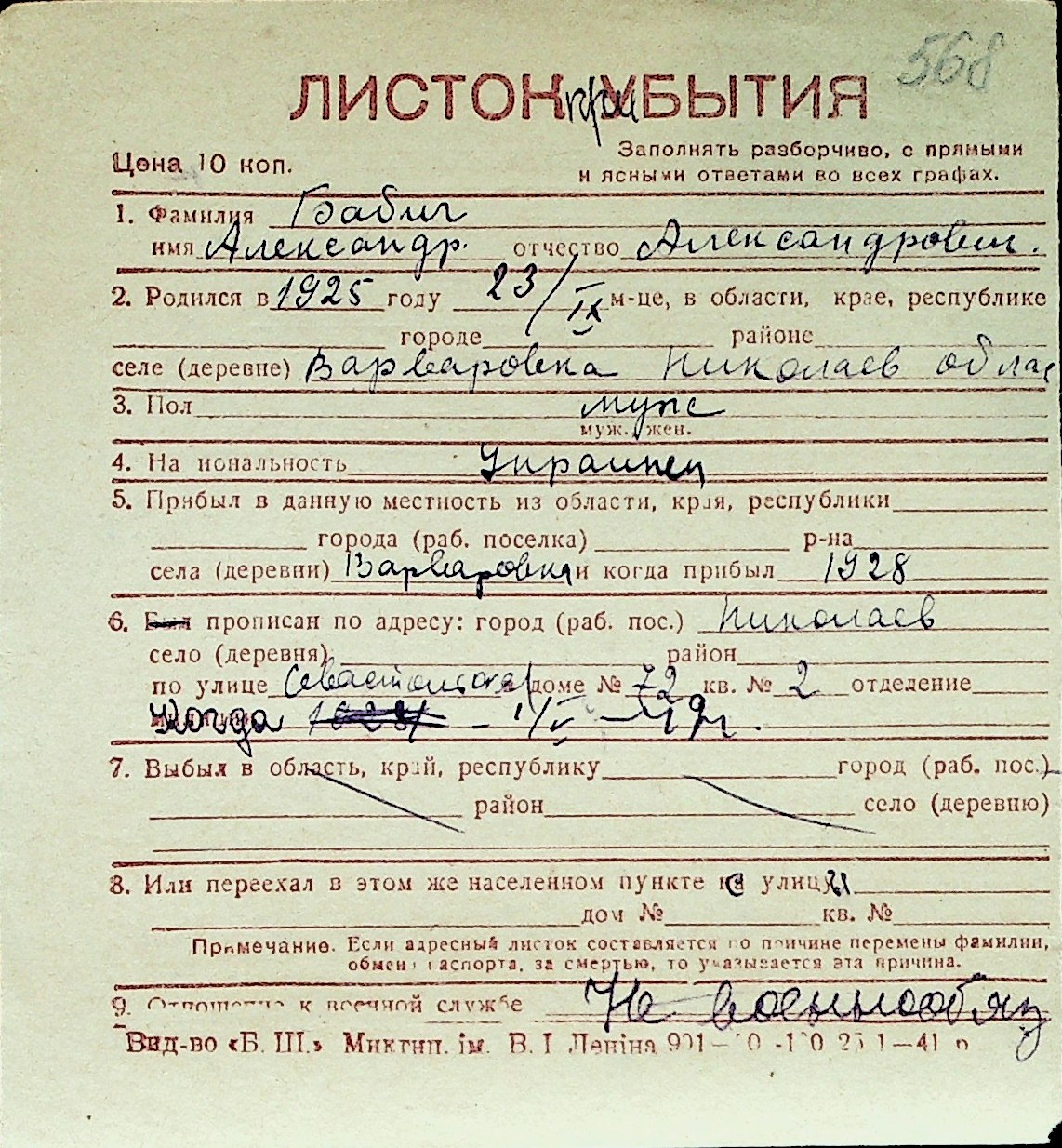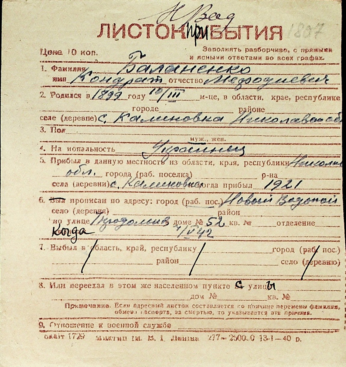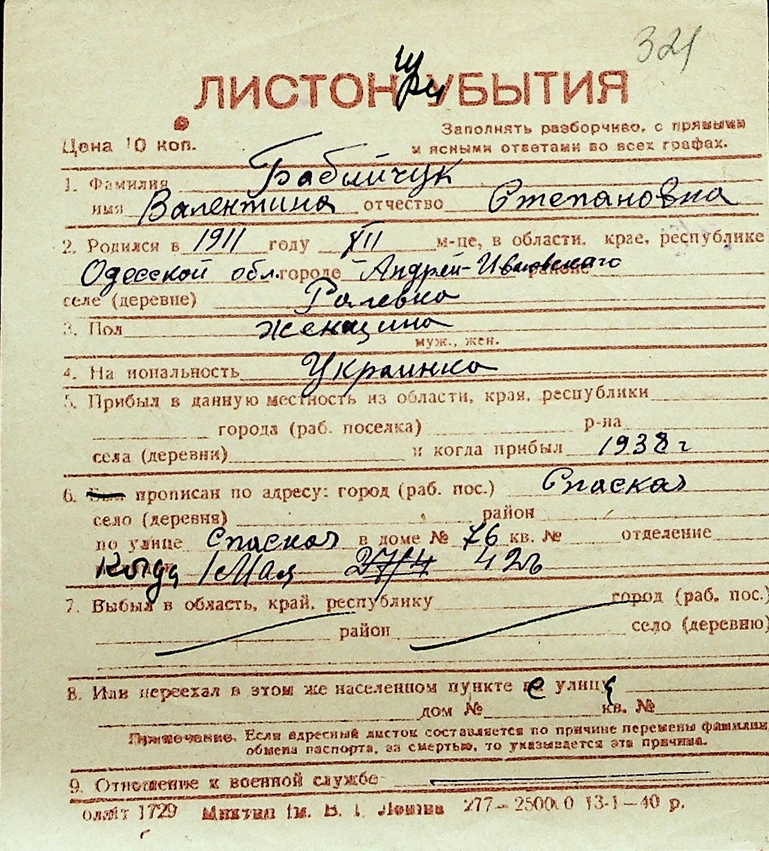 ◦ ◦ Перелік карток на осіб, які мешкали у м. Миколаїв у період окупації 1941–1944 років