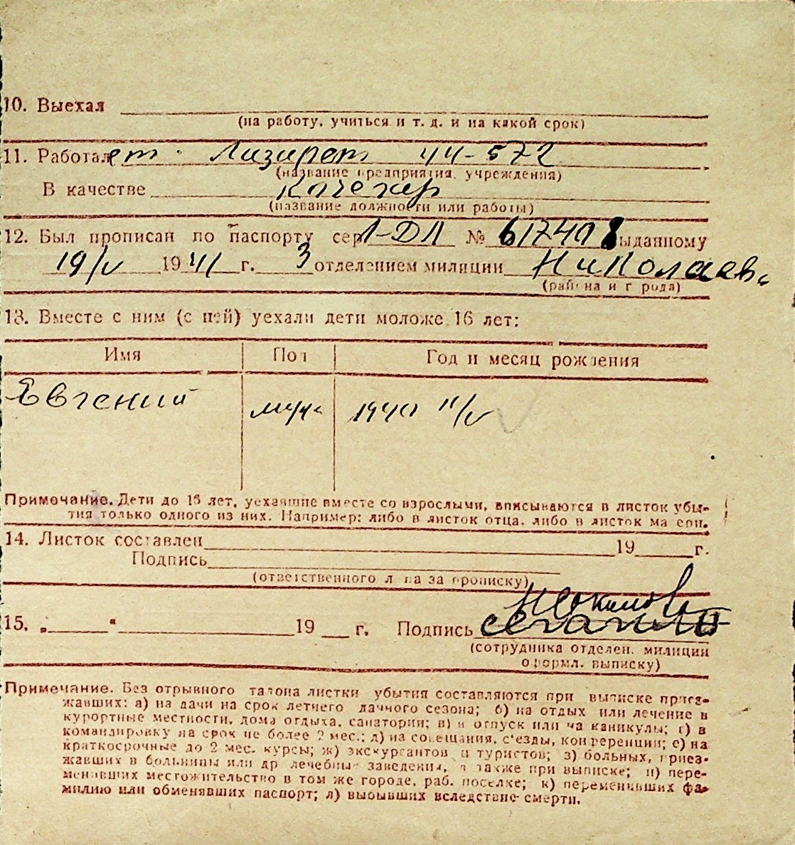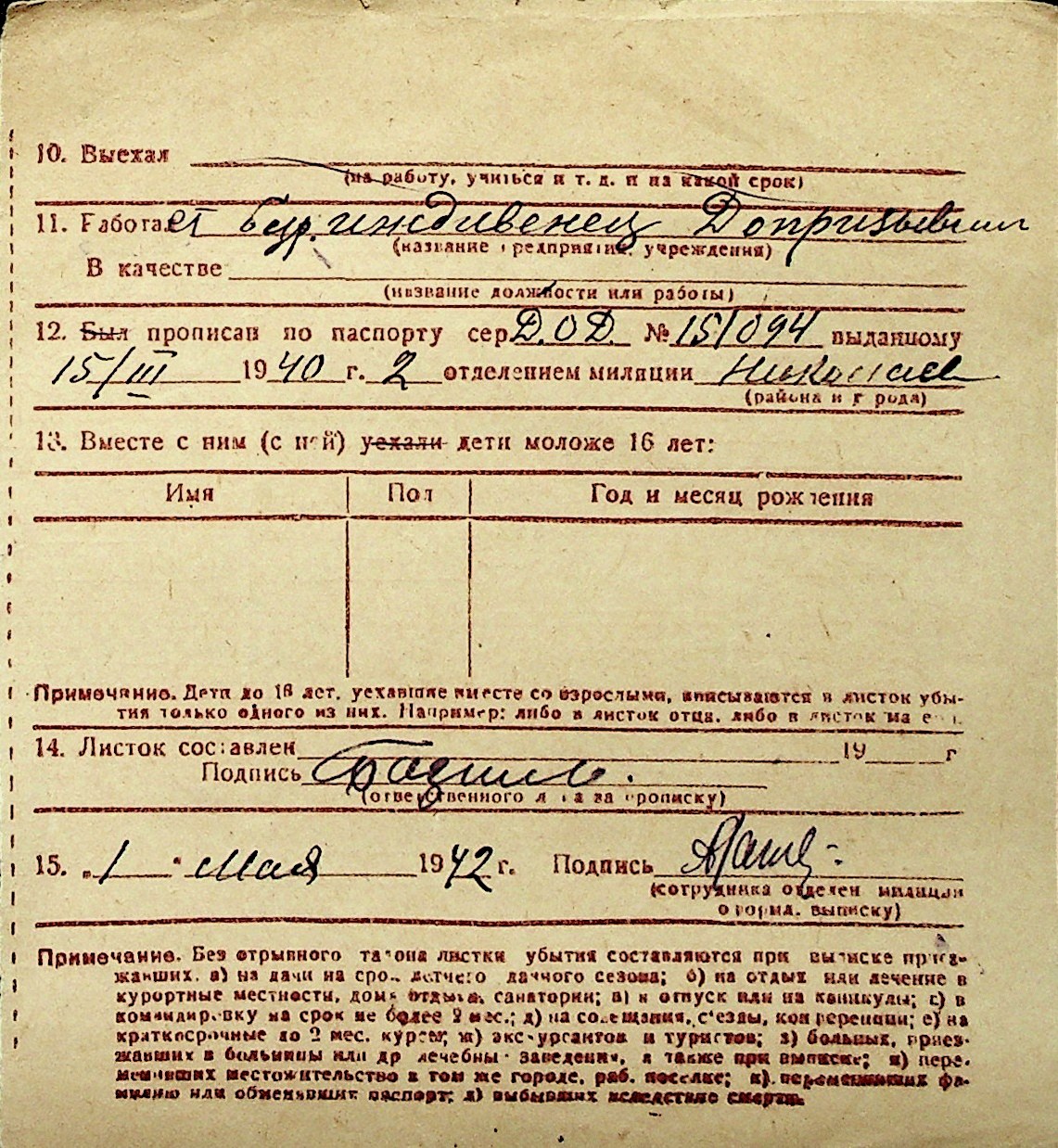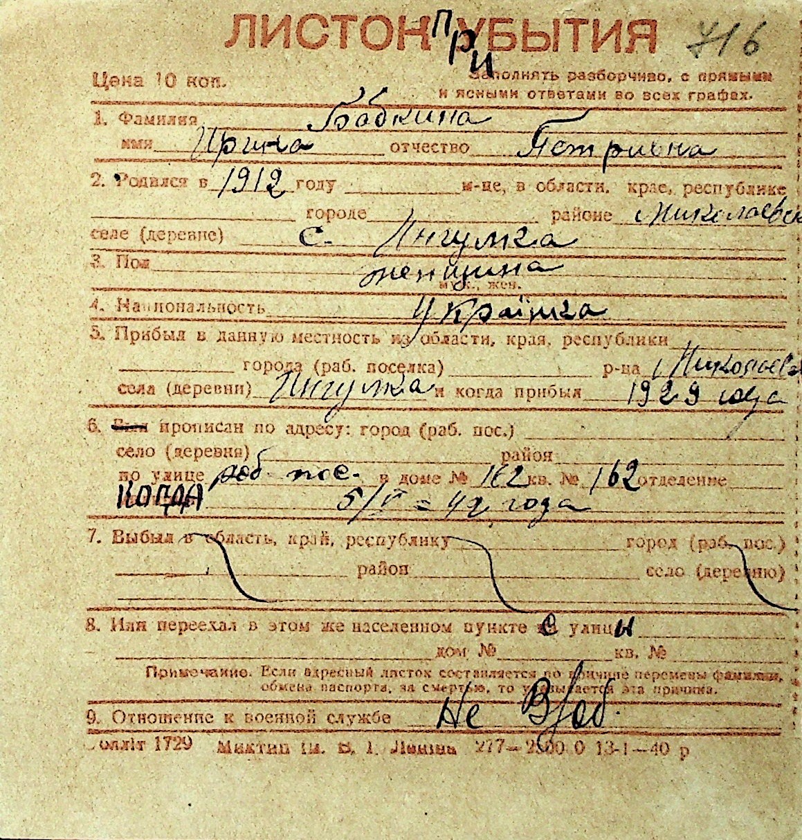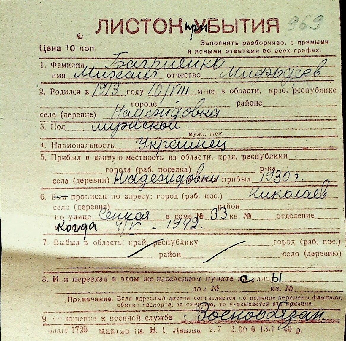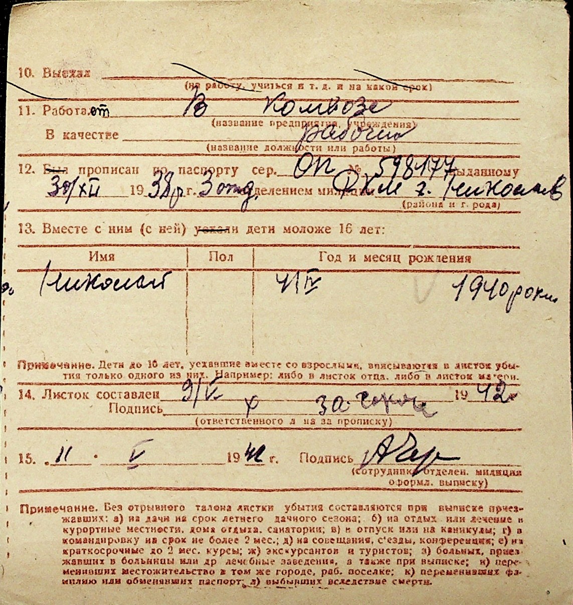 ◦ ◦ Перелік карток на осіб, які мешкали у м. Миколаїв у період окупації 1941–1944 років