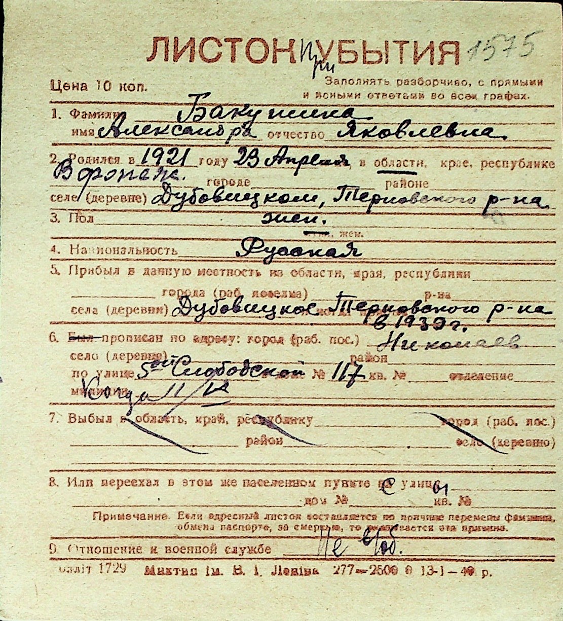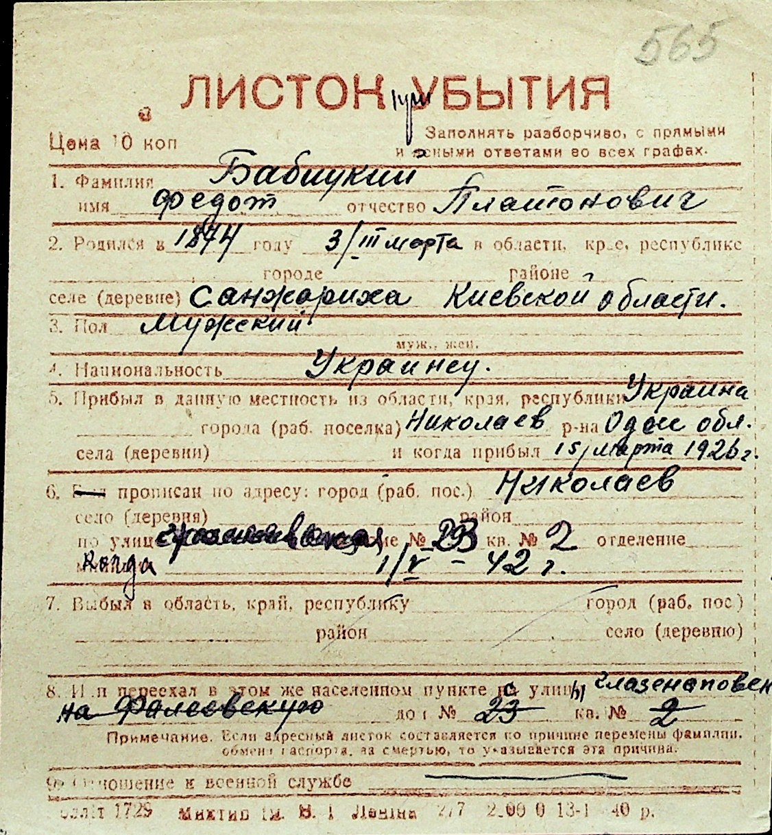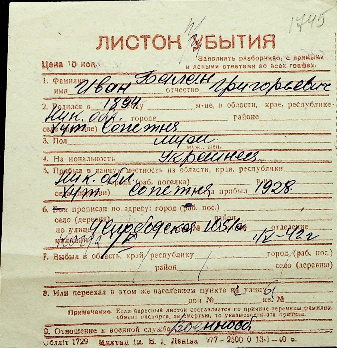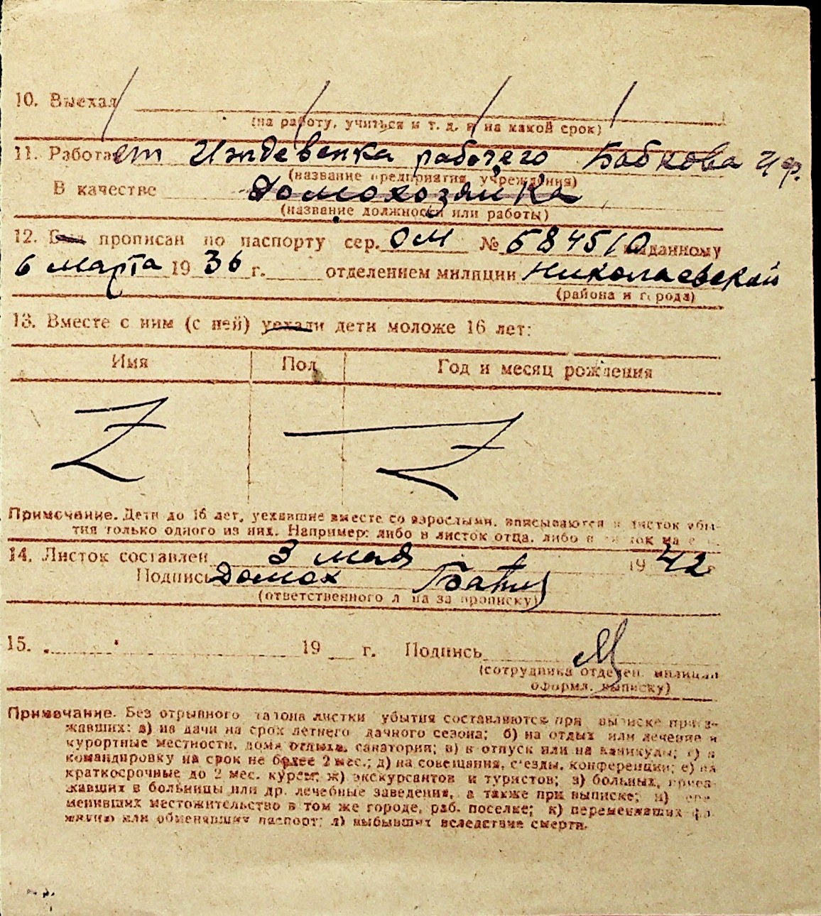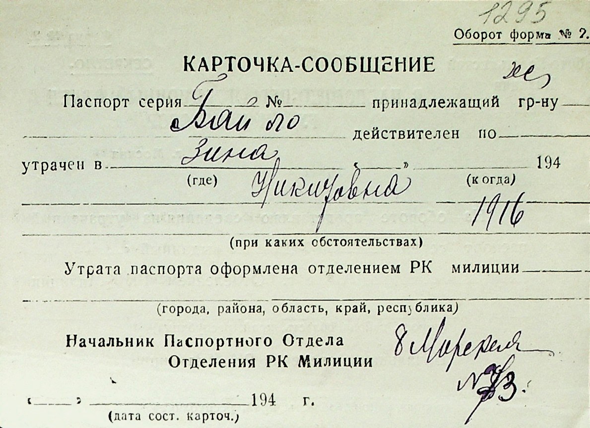 ◦ ◦ Перелік карток на осіб, які мешкали у м. Миколаїв у період окупації 1941–1944 років