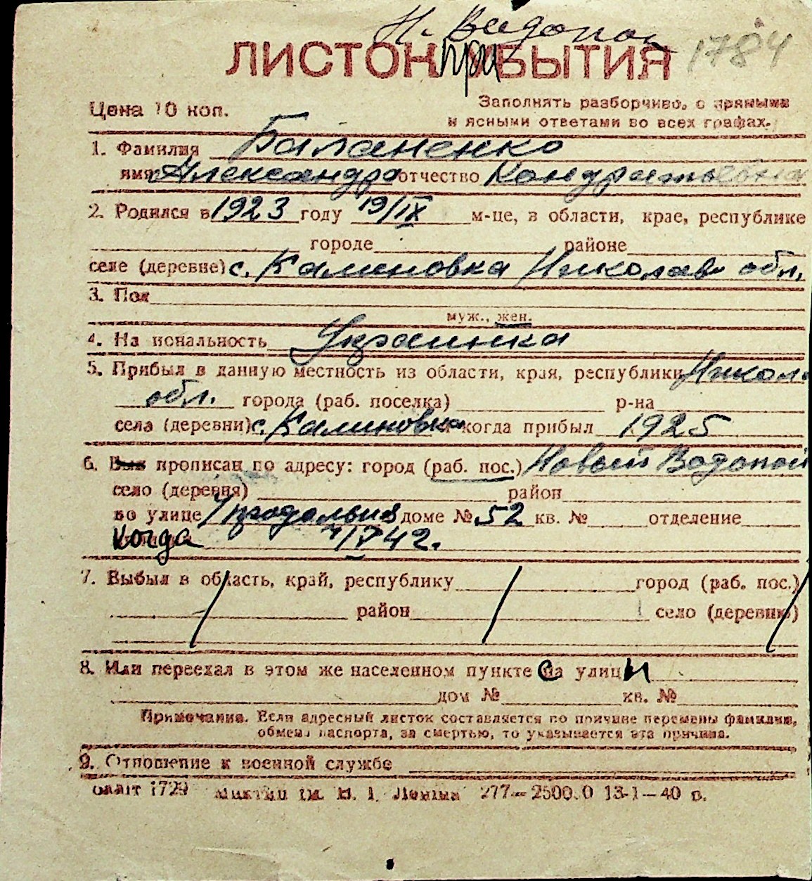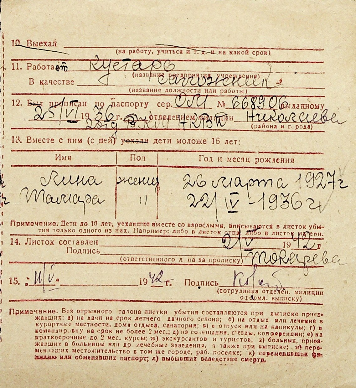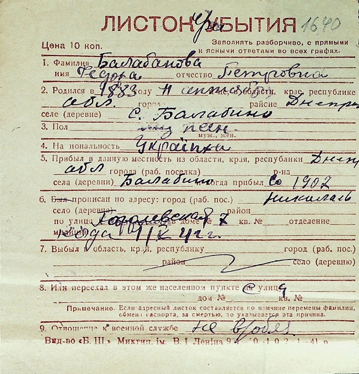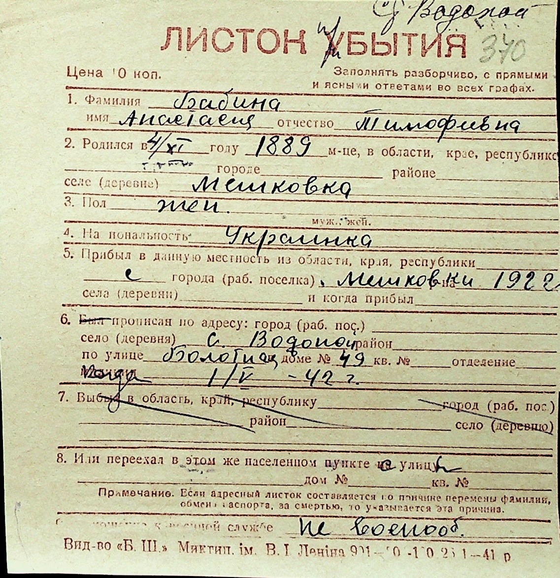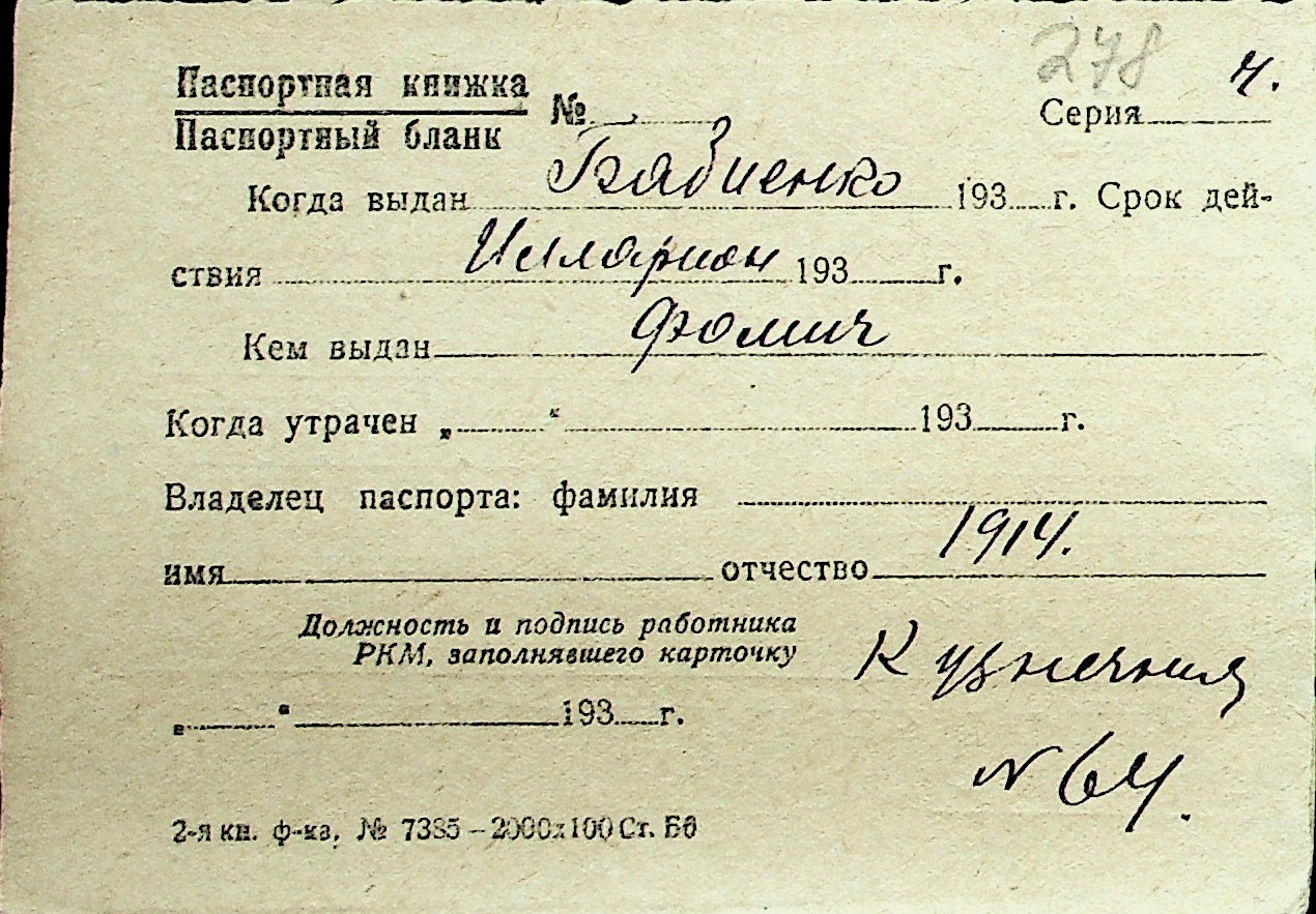 ◦ ◦ Перелік карток на осіб, які мешкали у м. Миколаїв у період окупації 1941–1944 років