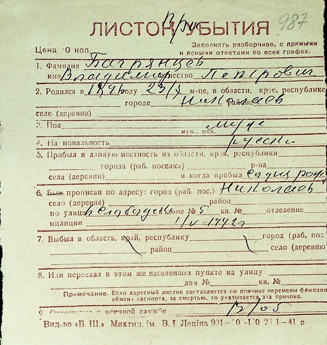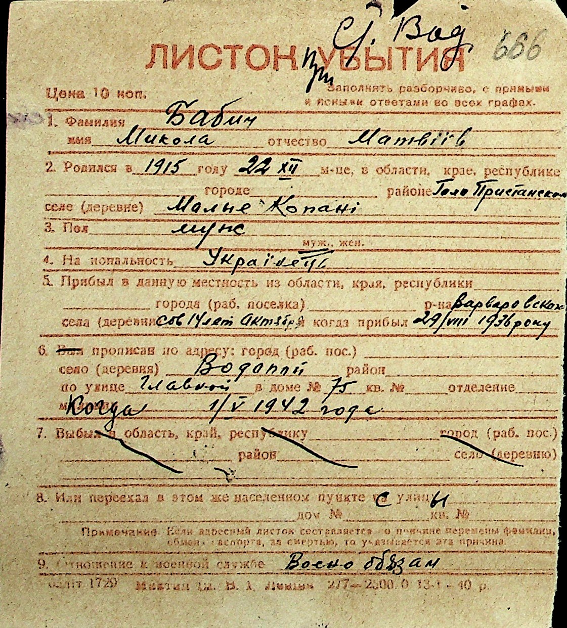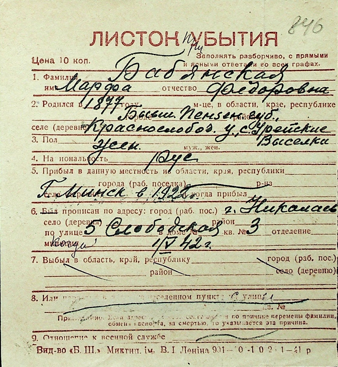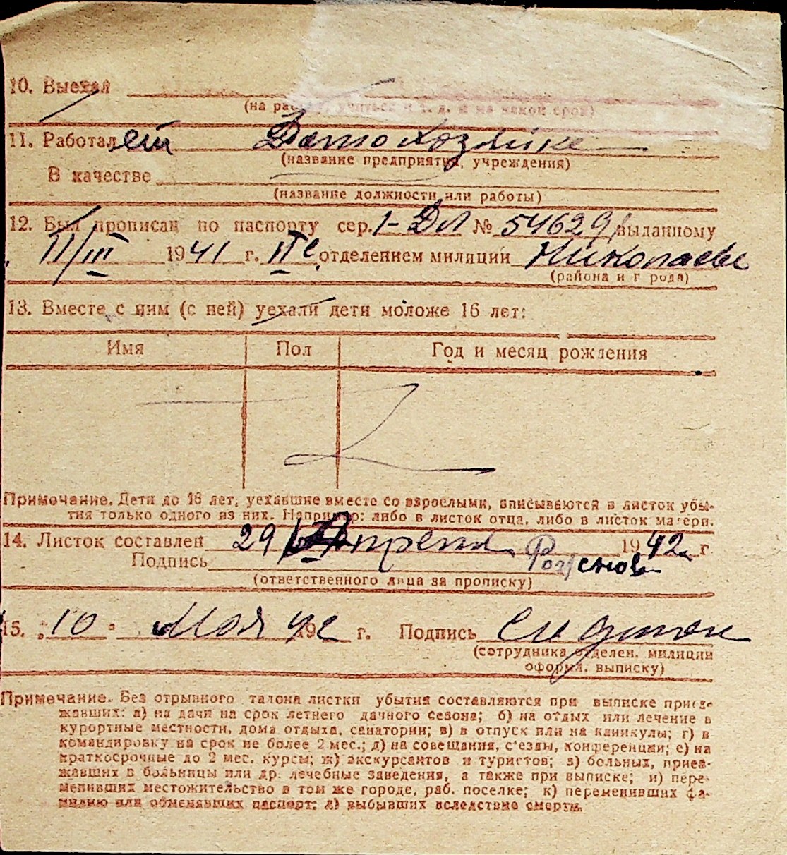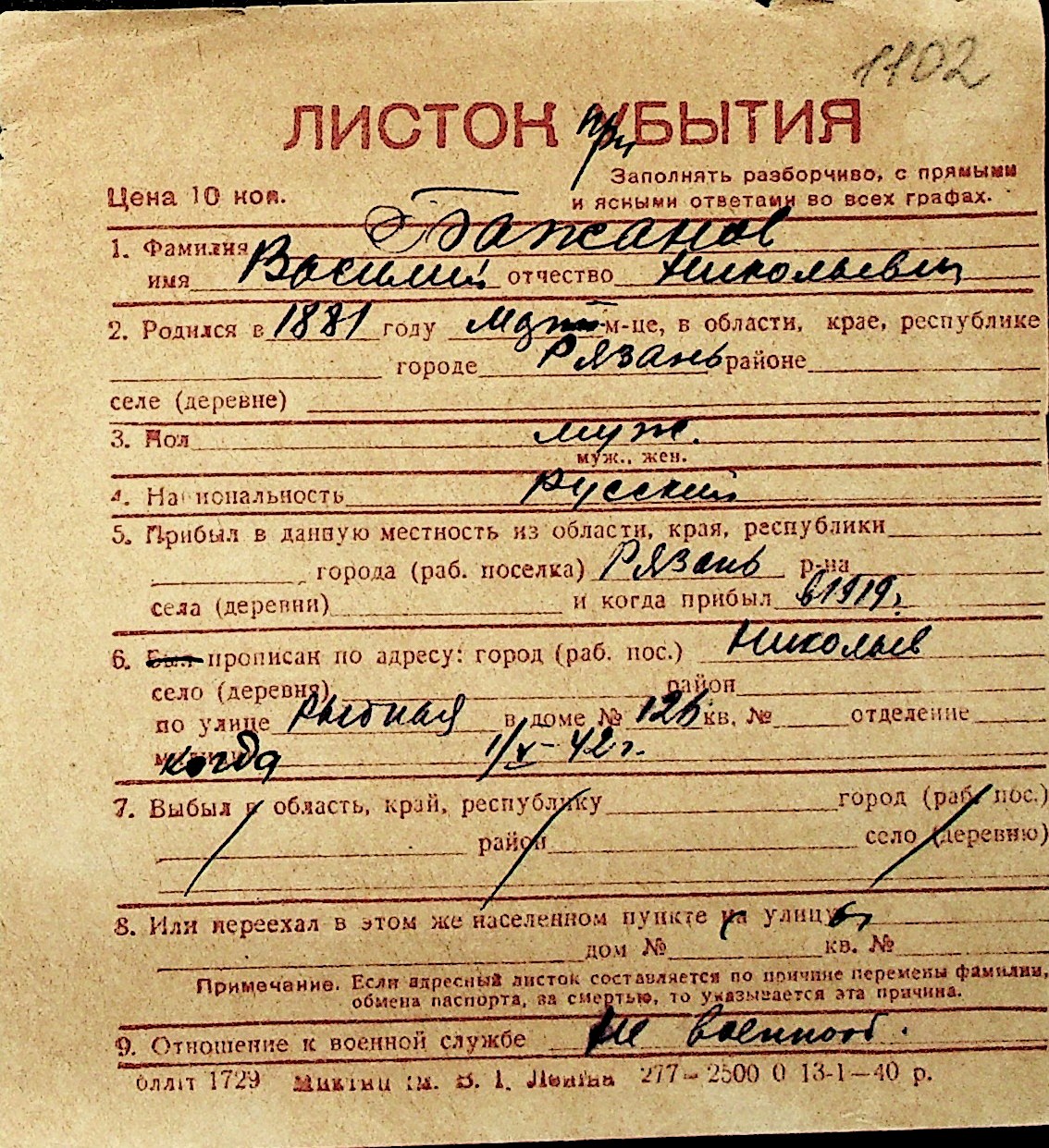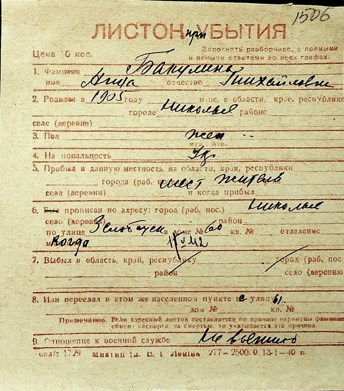 ◦ ◦ Перелік карток на осіб, які мешкали у м. Миколаїв у період окупації 1941–1944 років