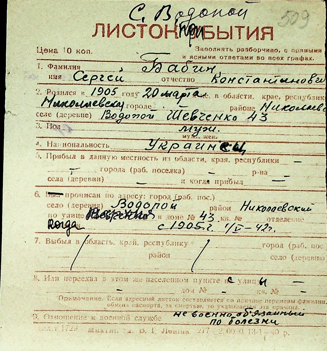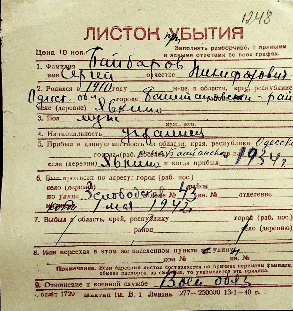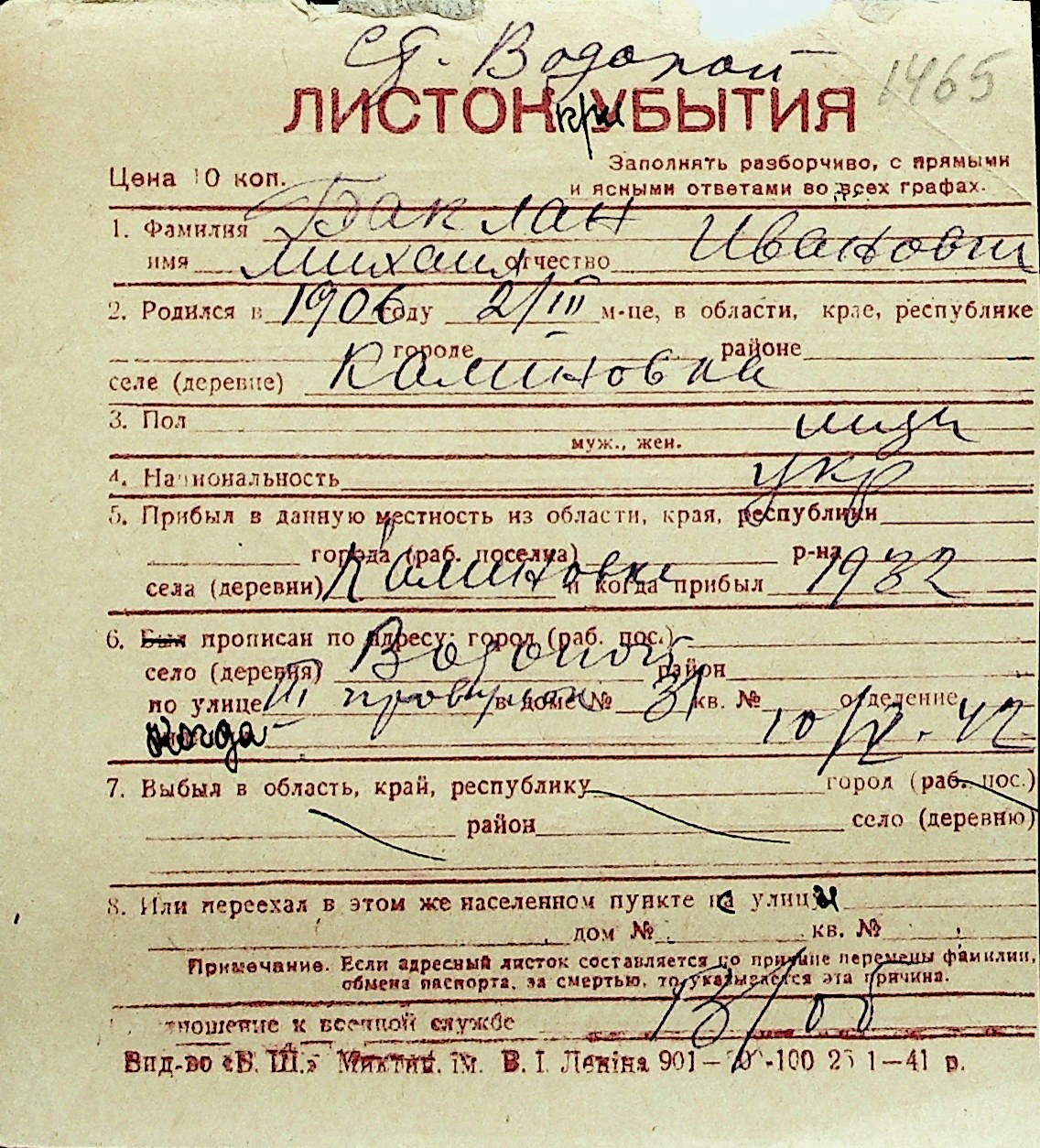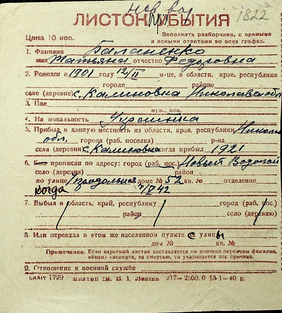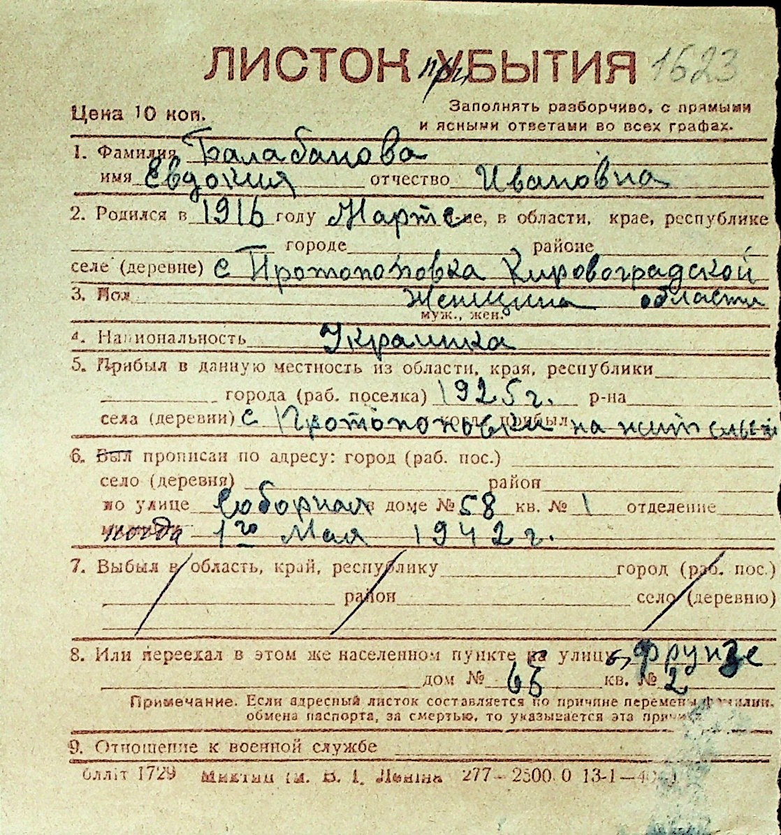 ◦ ◦ Перелік карток на осіб, які мешкали у м. Миколаїв у період окупації 1941–1944 років