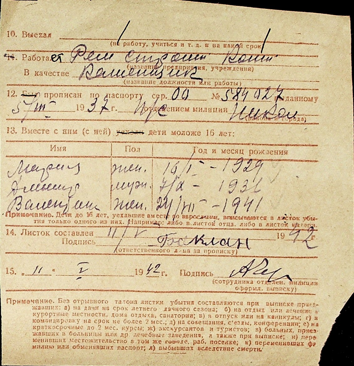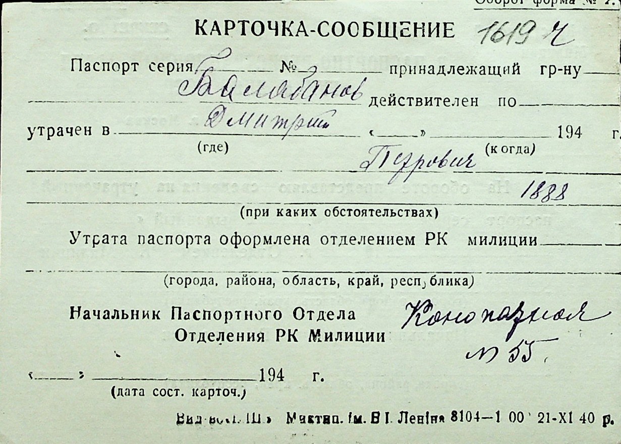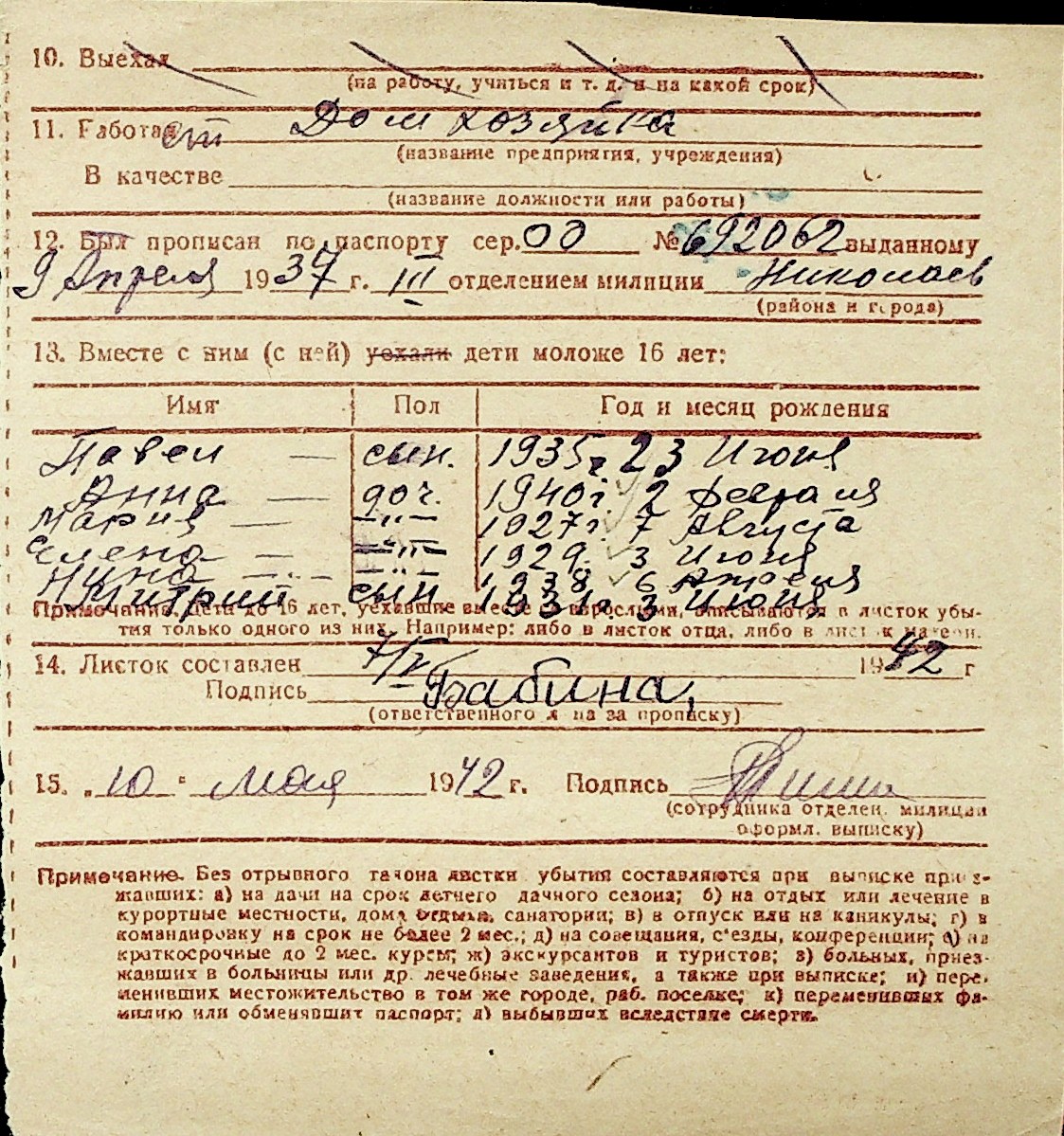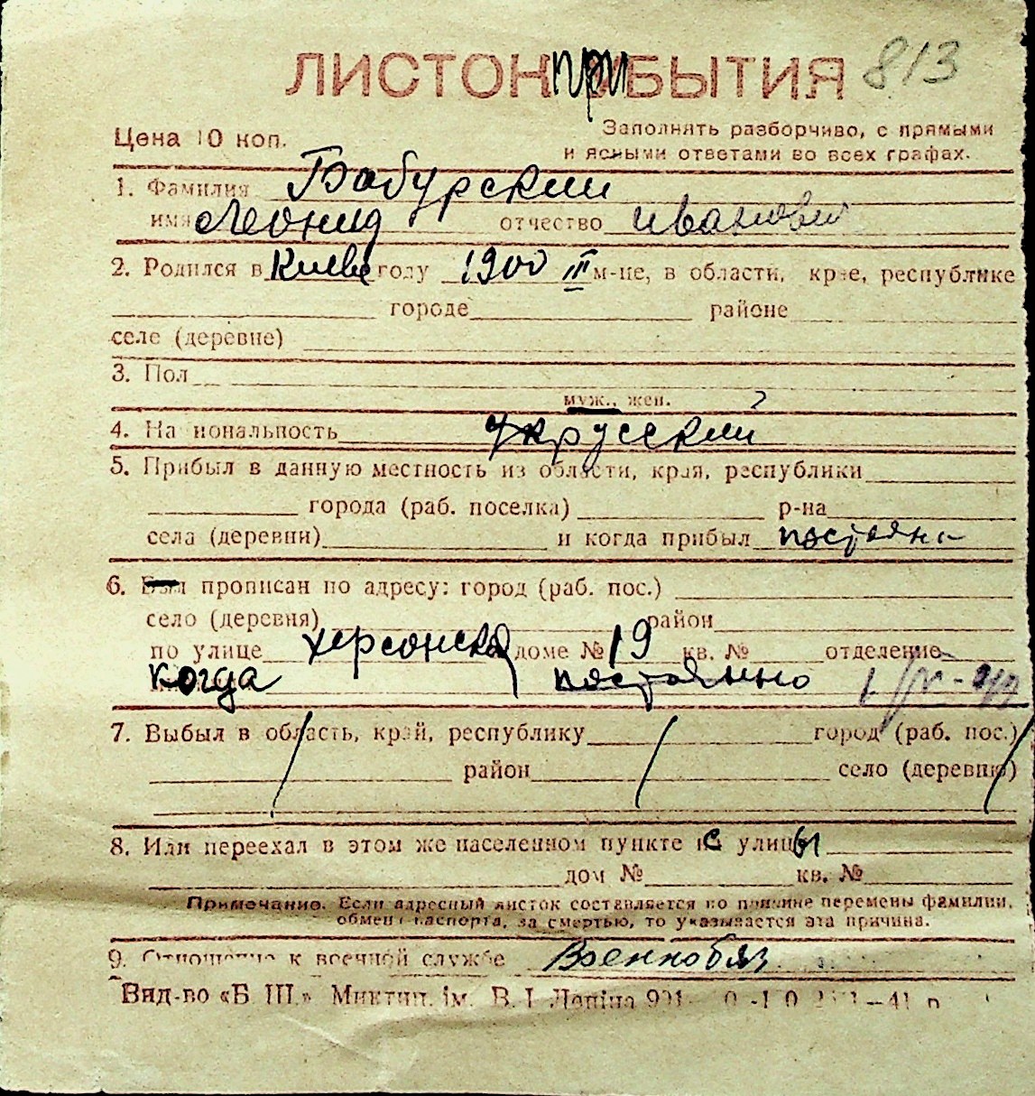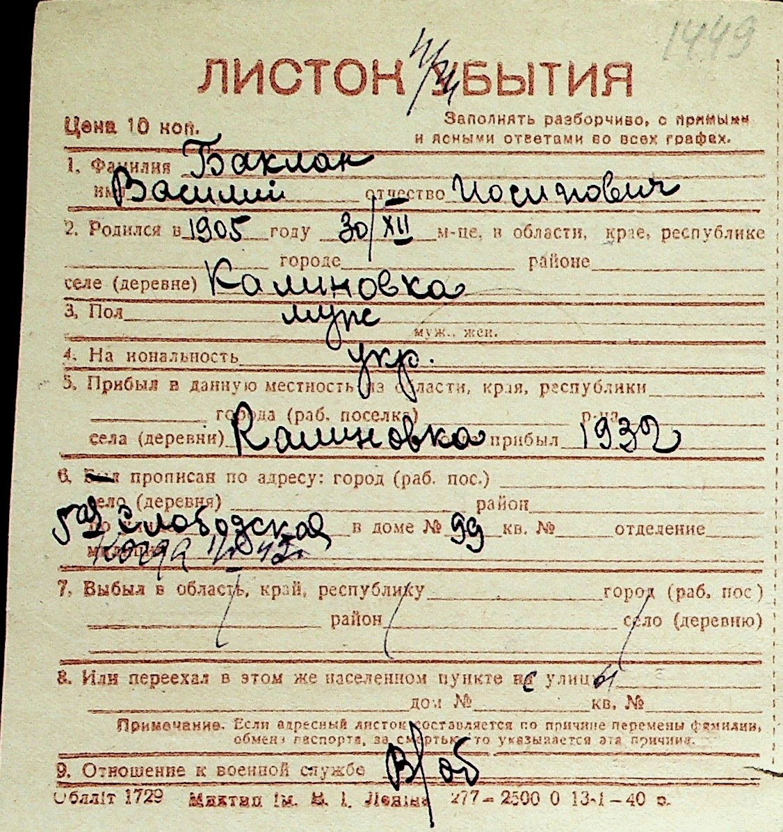 ◦ ◦ Перелік карток на осіб, які мешкали у м. Миколаїв у період окупації 1941–1944 років