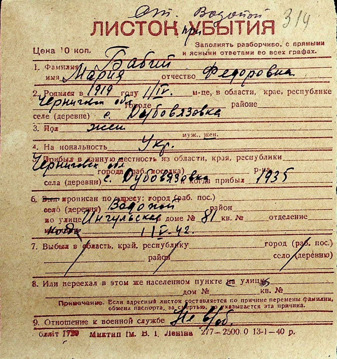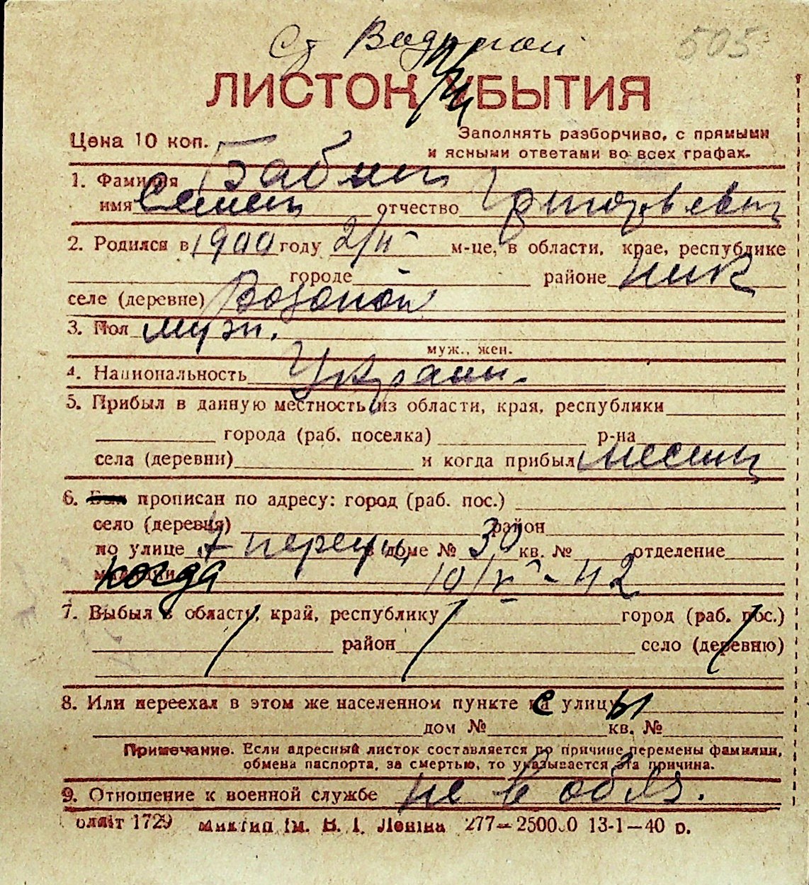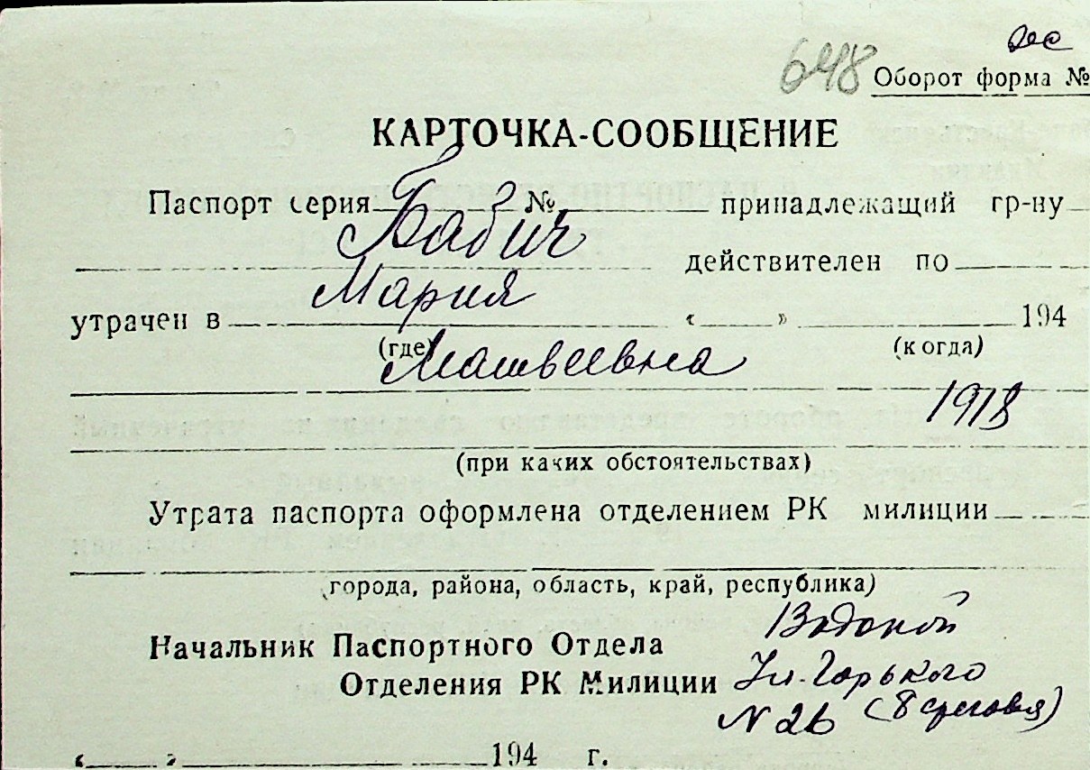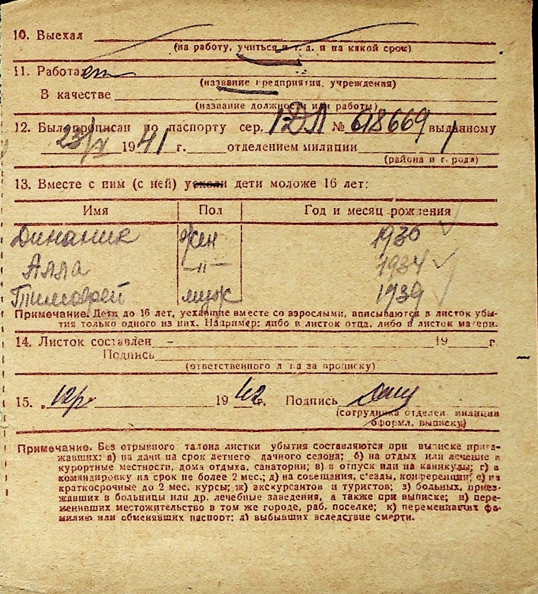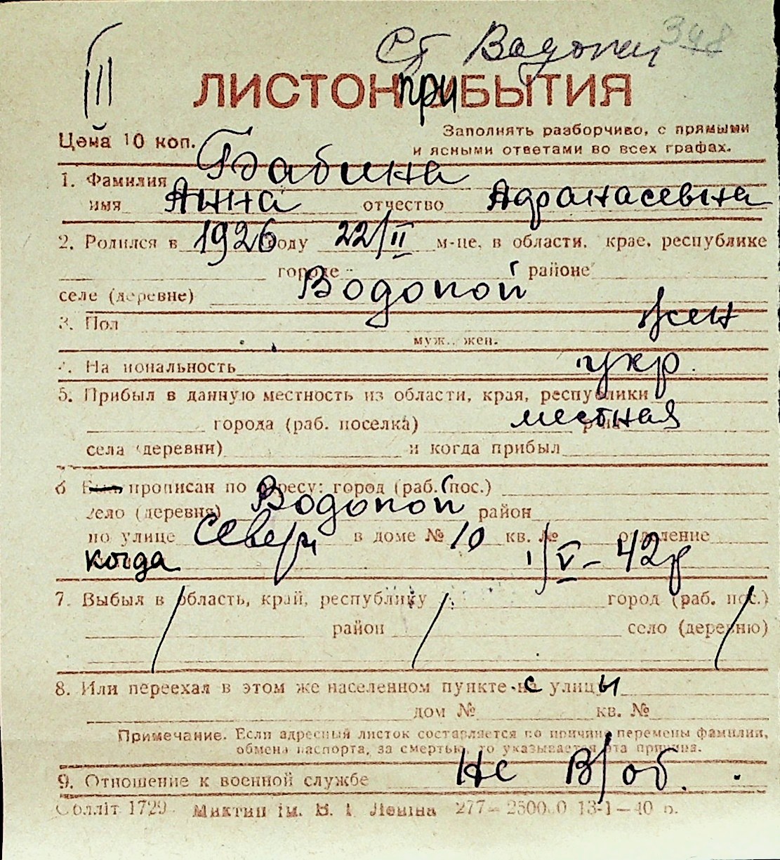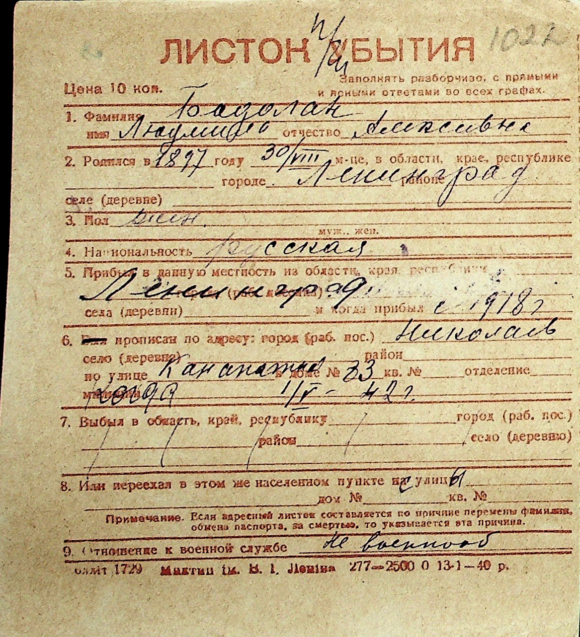 ◦ ◦ Перелік карток на осіб, які мешкали у м. Миколаїв у період окупації 1941–1944 років