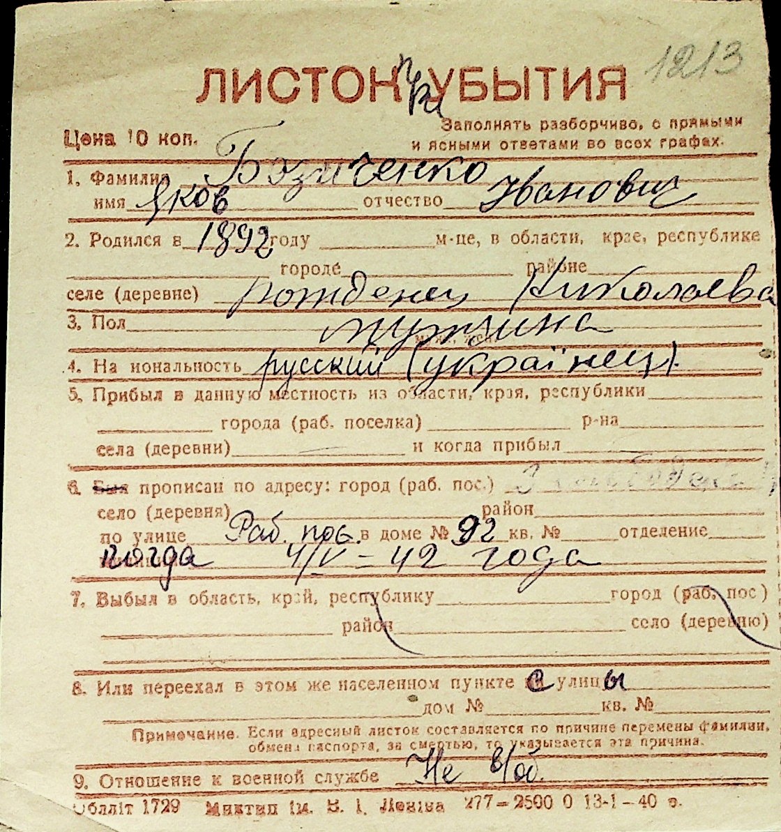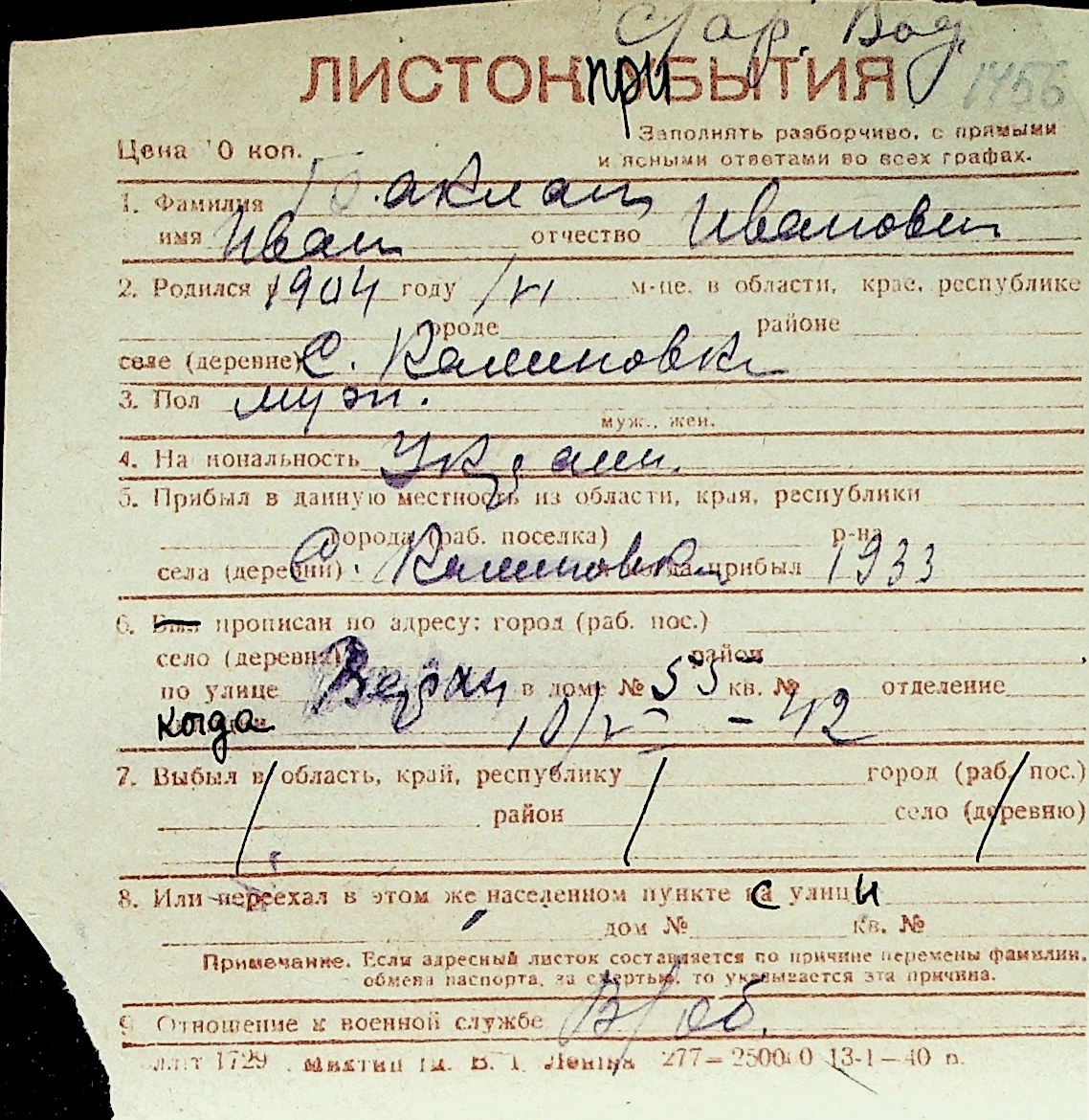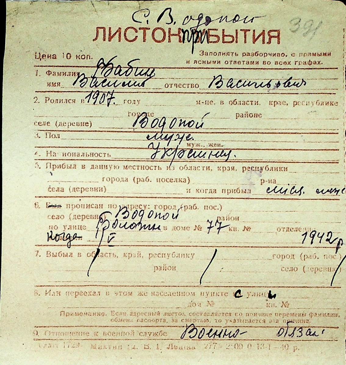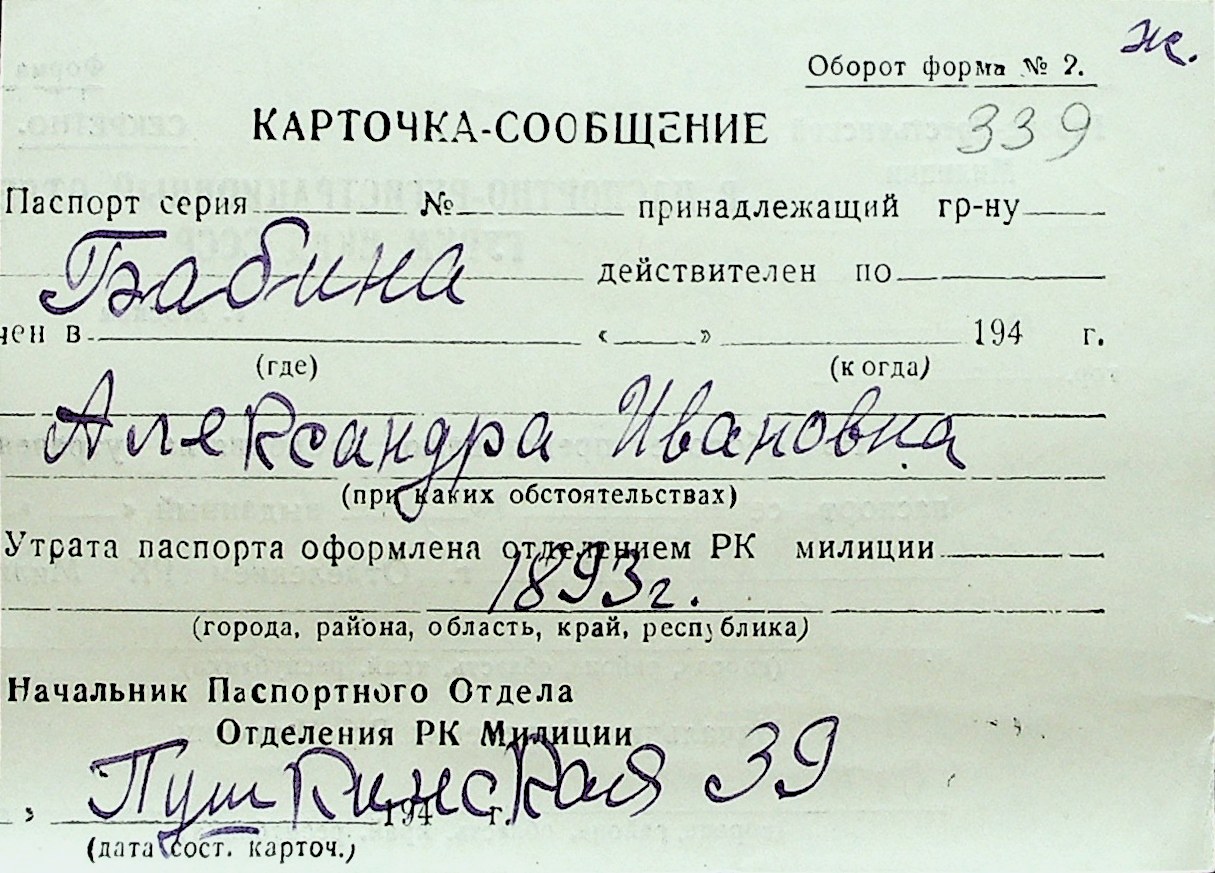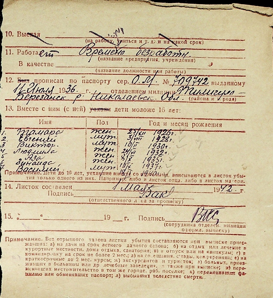 ◦ ◦ Перелік карток на осіб, які мешкали у м. Миколаїв у період окупації 1941–1944 років