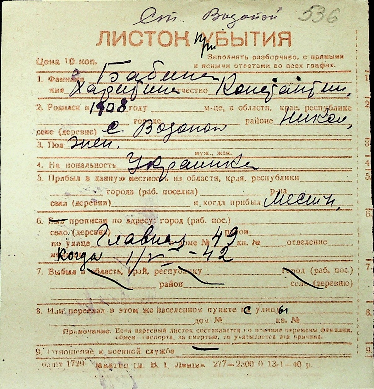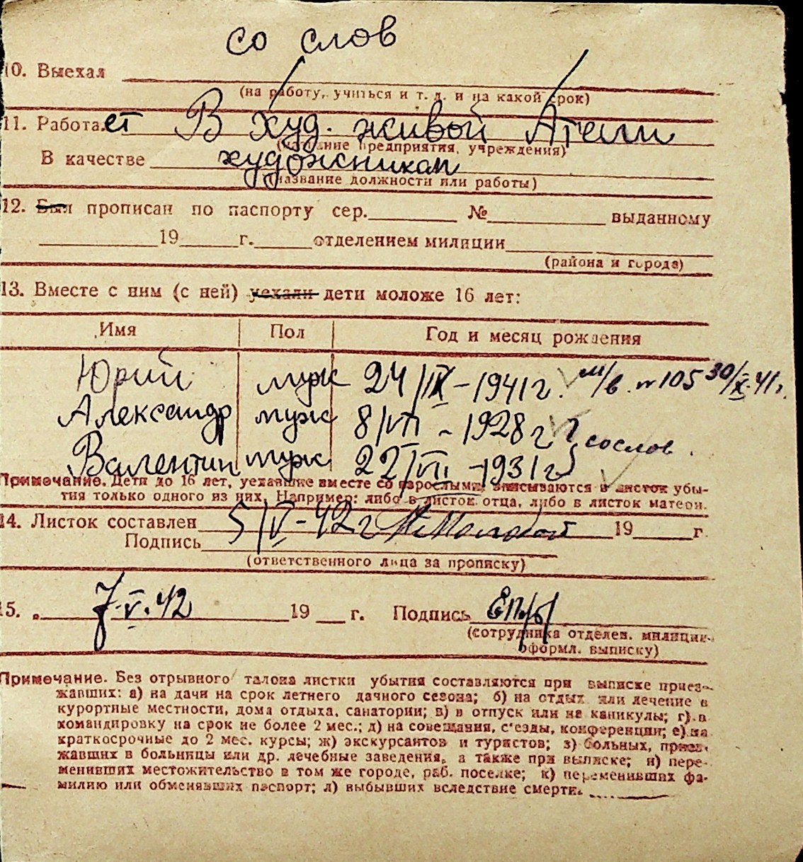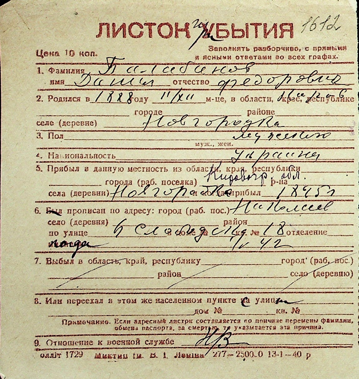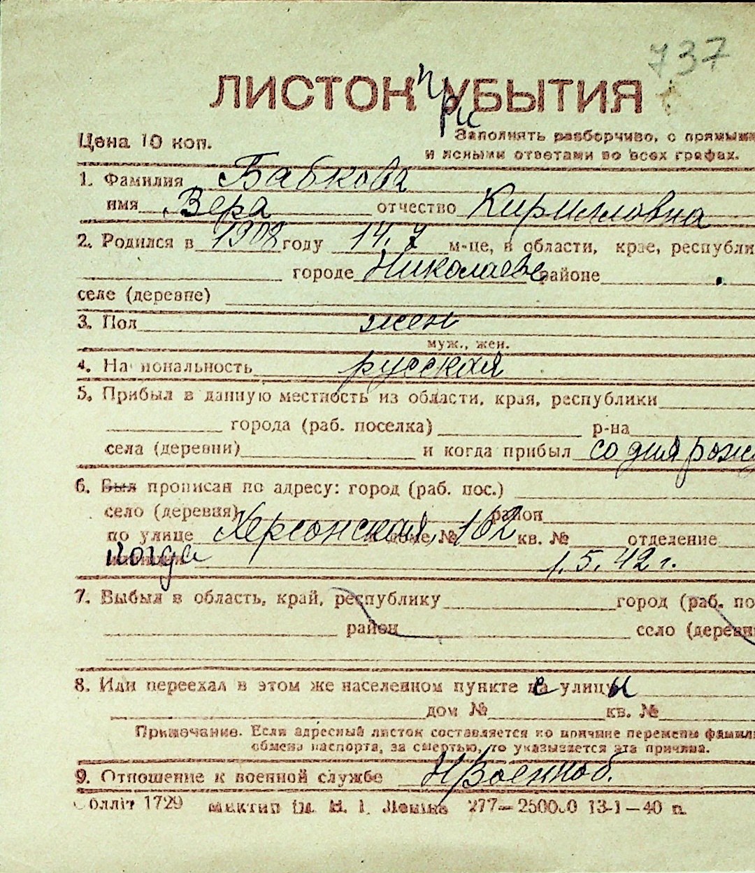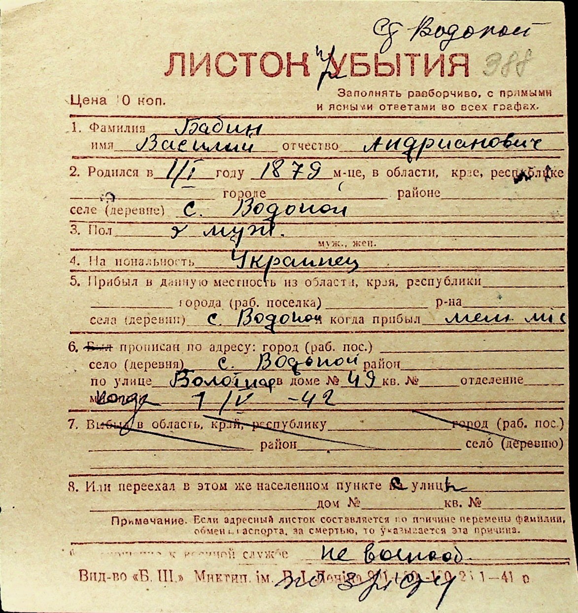 ◦ ◦ Перелік карток на осіб, які мешкали у м. Миколаїв у період окупації 1941–1944 років