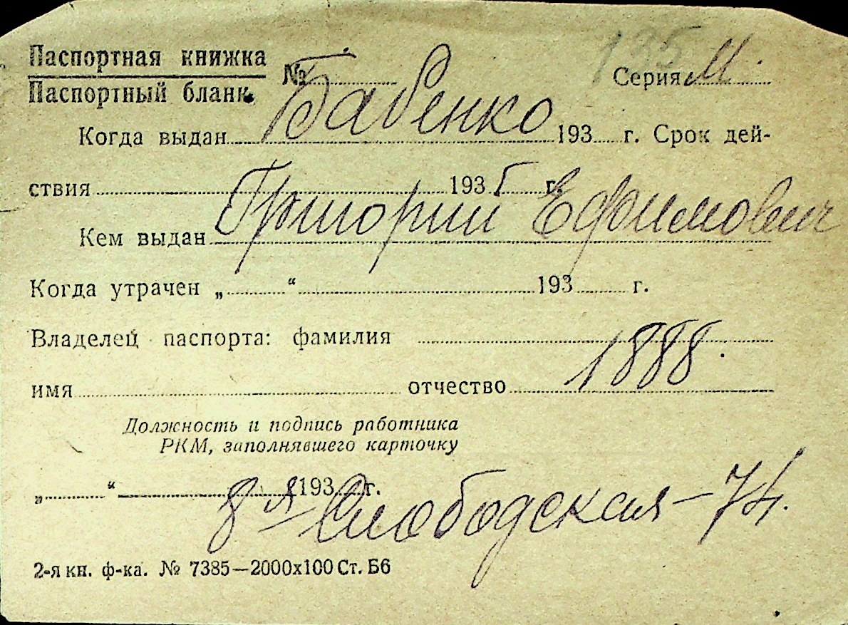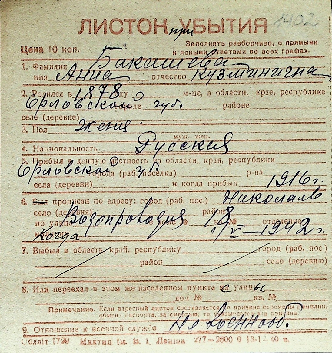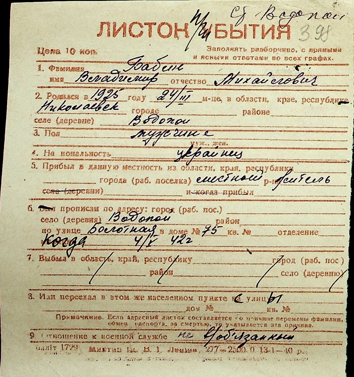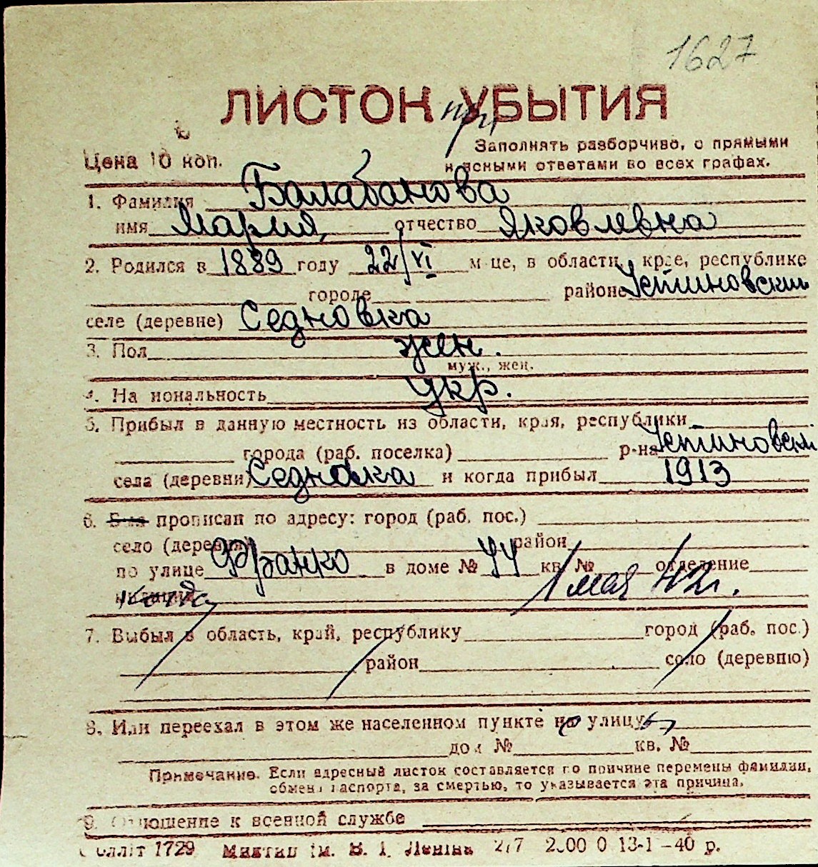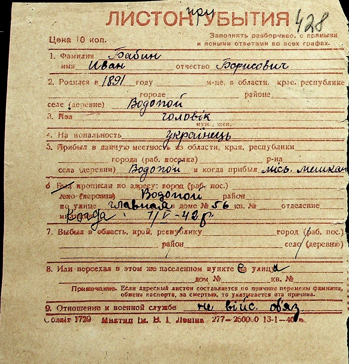 ◦ ◦ Перелік карток на осіб, які мешкали у м. Миколаїв у період окупації 1941–1944 років