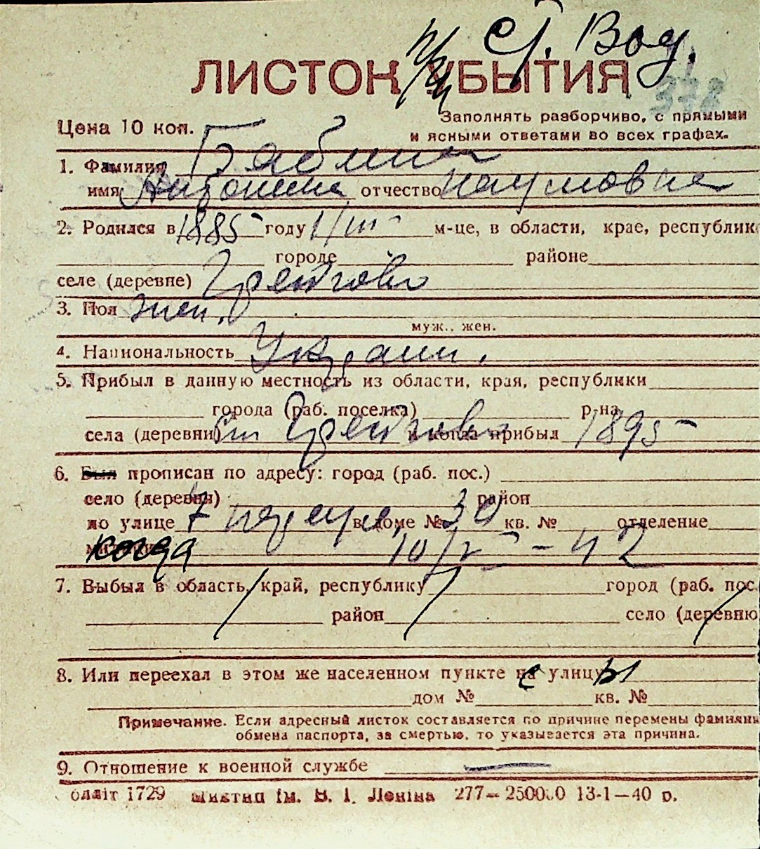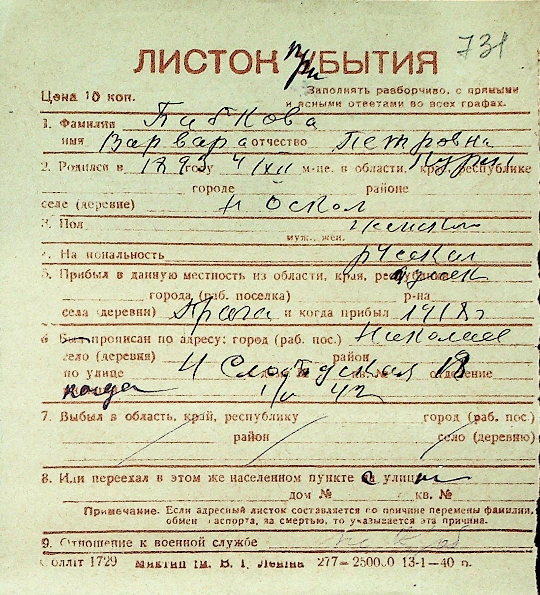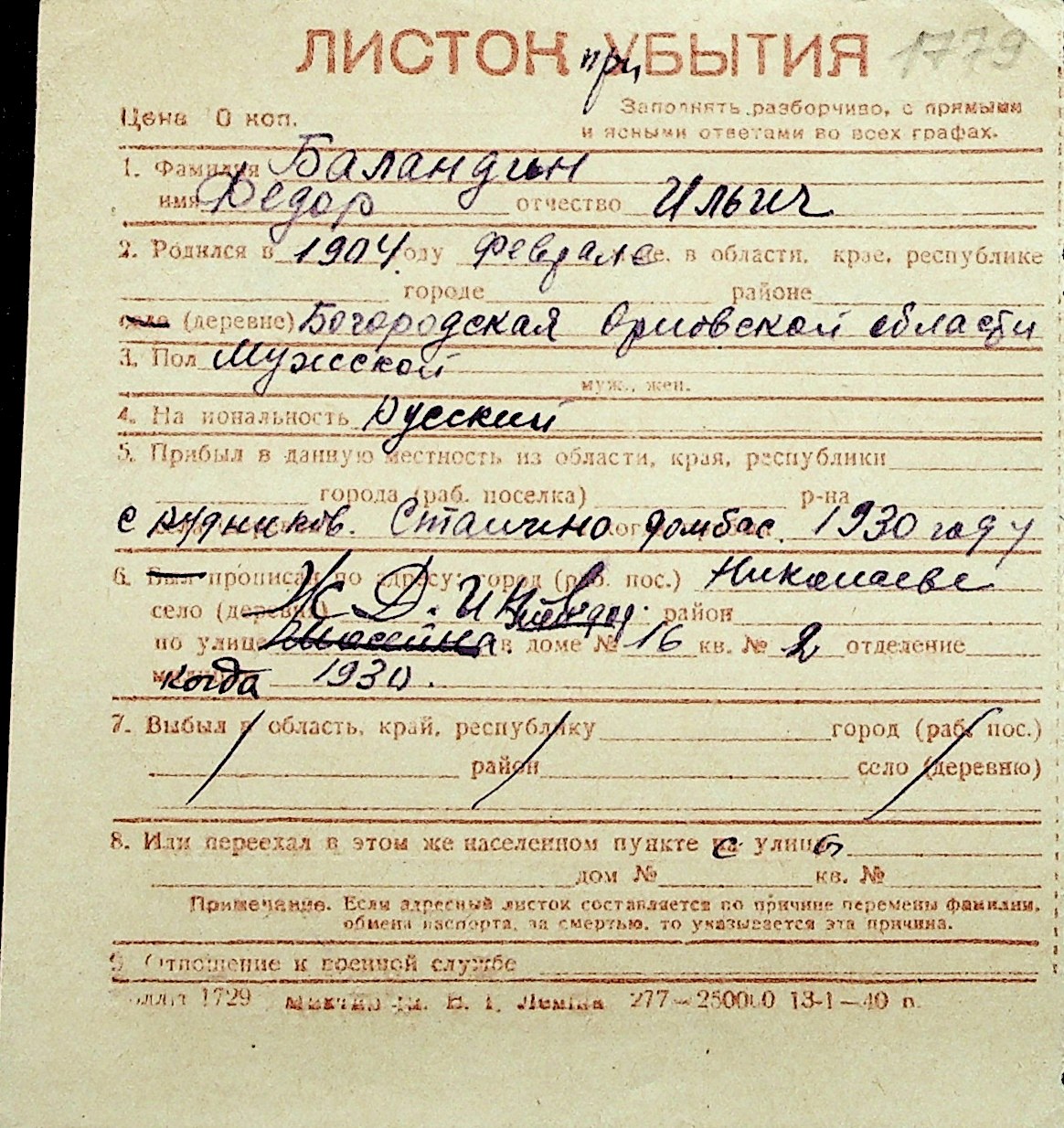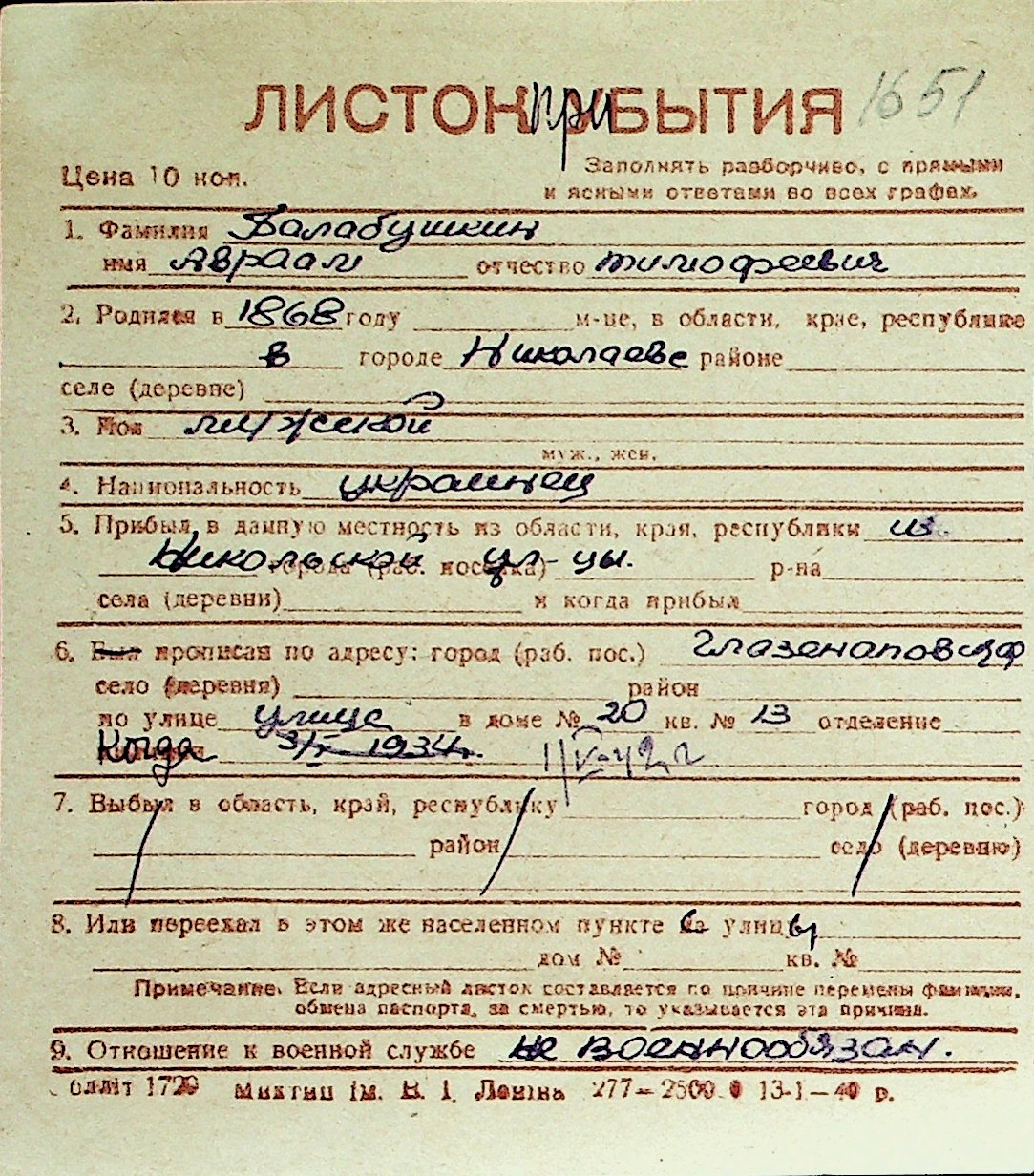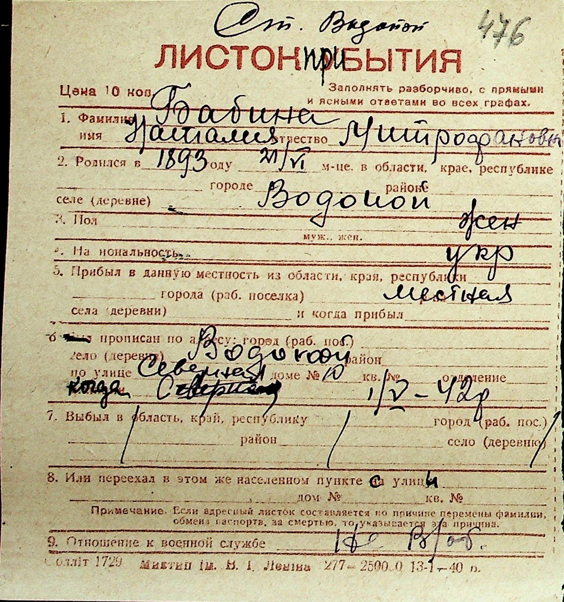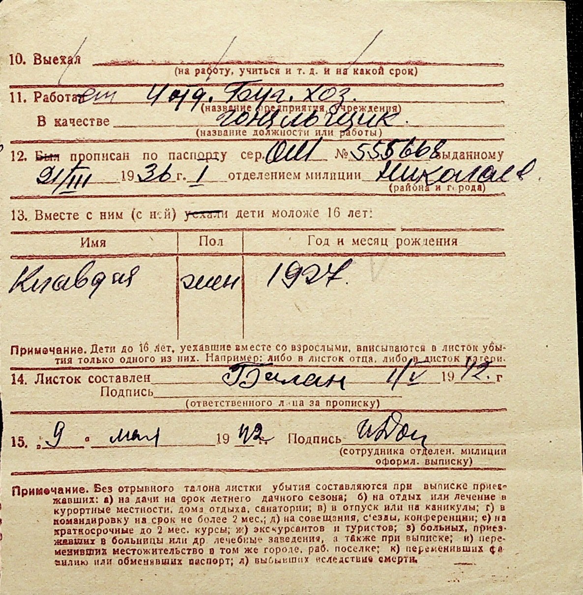 ◦ ◦ Перелік карток на осіб, які мешкали у м. Миколаїв у період окупації 1941–1944 років