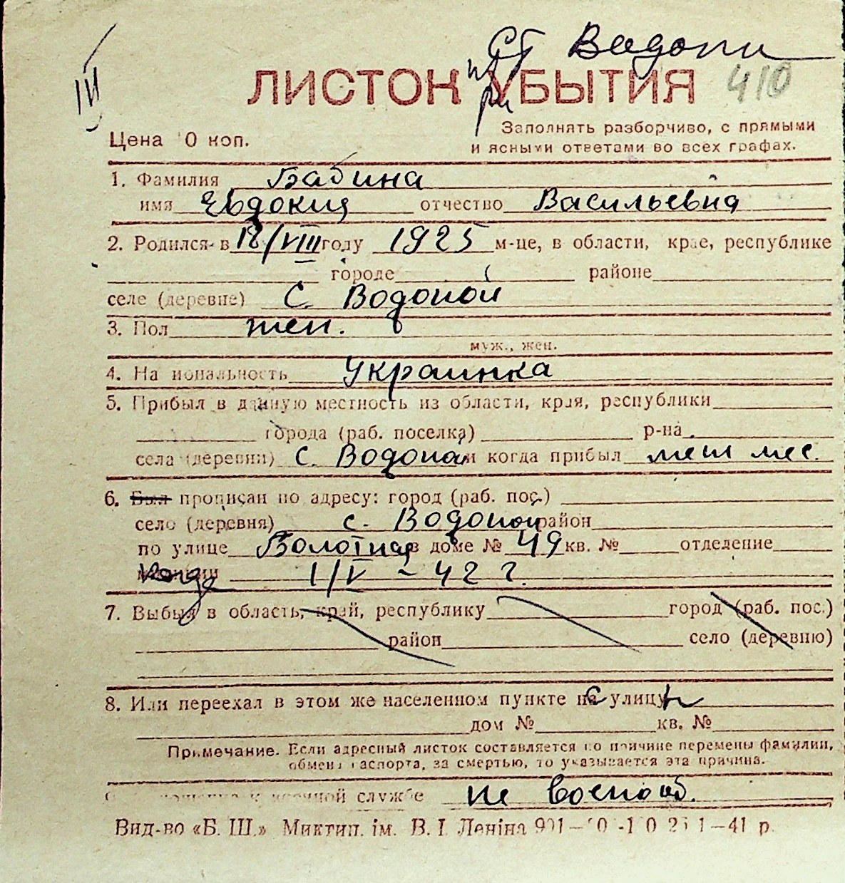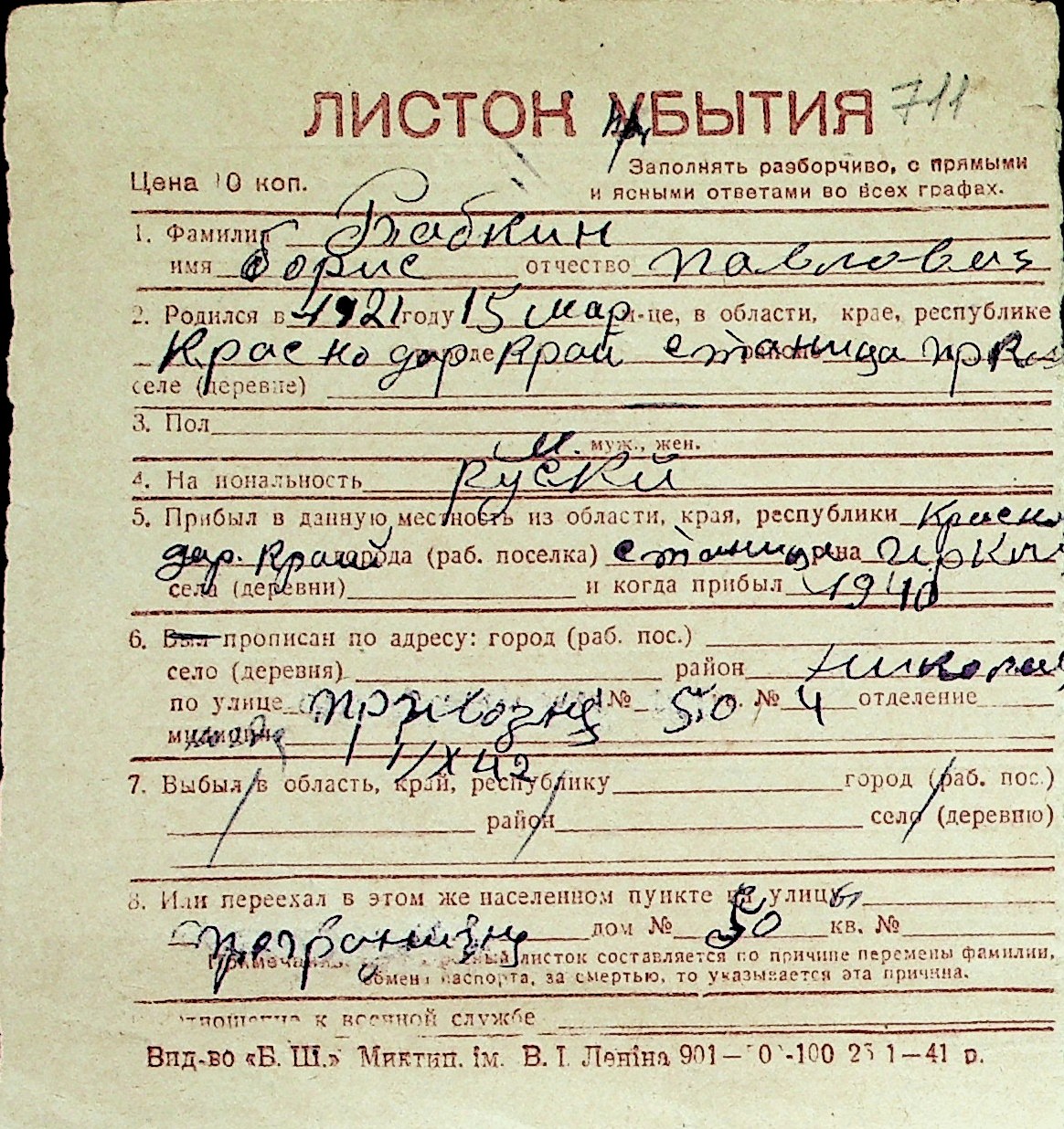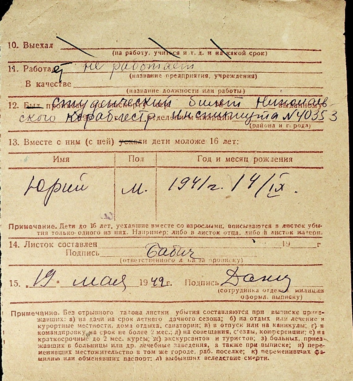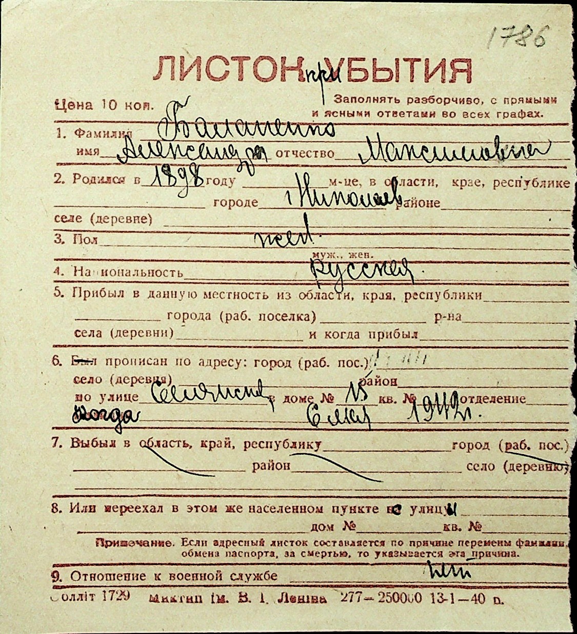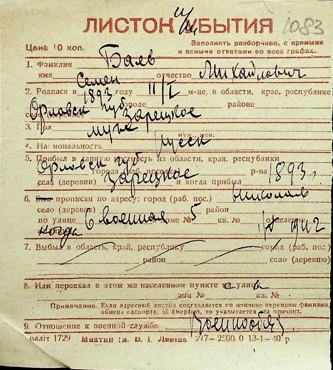 ◦ ◦ Перелік карток на осіб, які мешкали у м. Миколаїв у період окупації 1941–1944 років