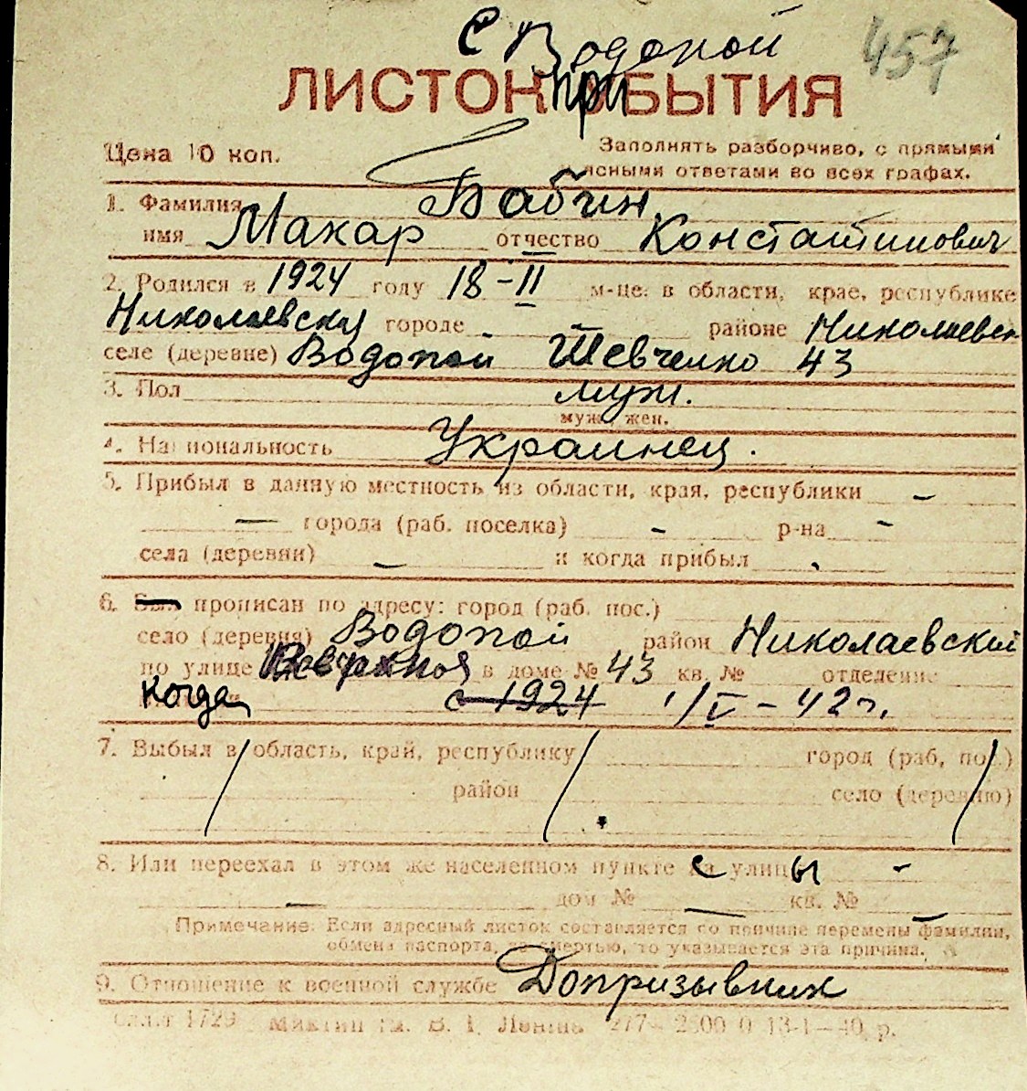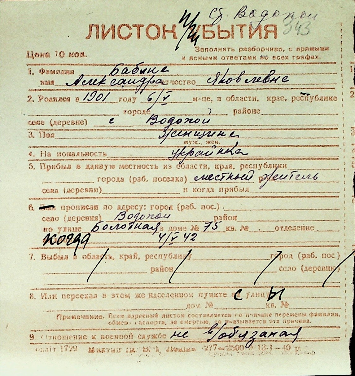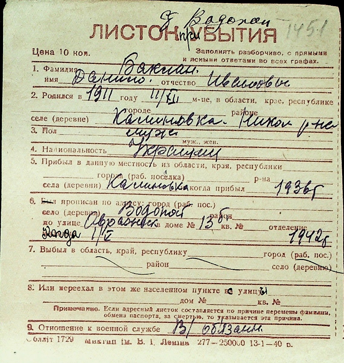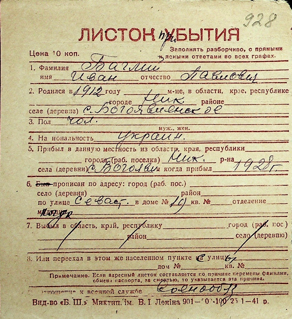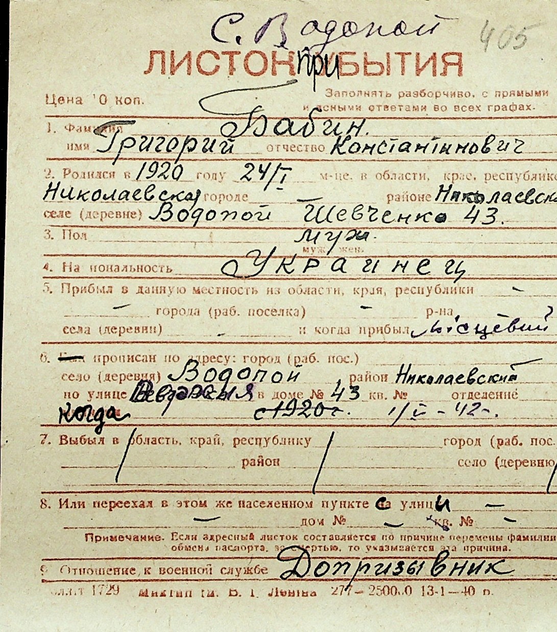 ◦ ◦ Перелік карток на осіб, які мешкали у м. Миколаїв у період окупації 1941–1944 років
