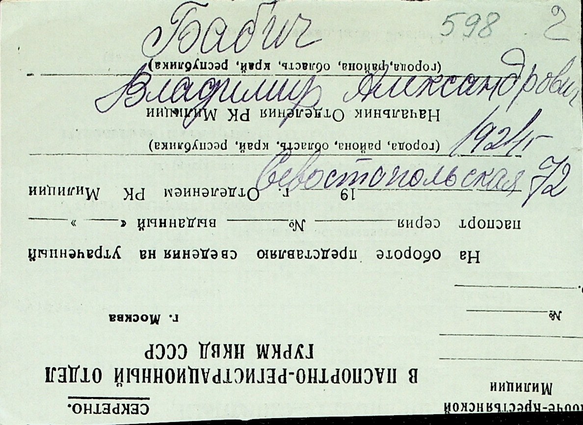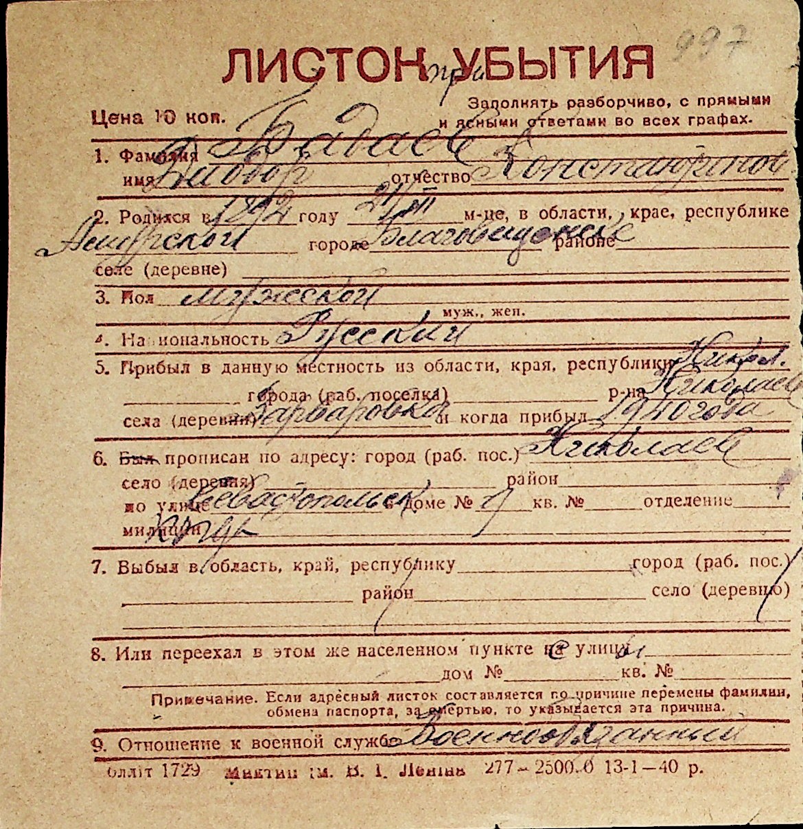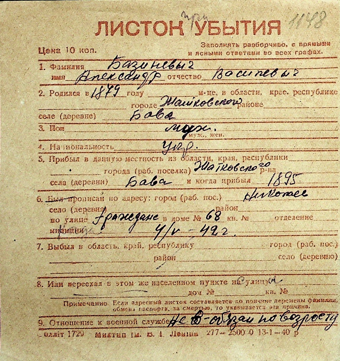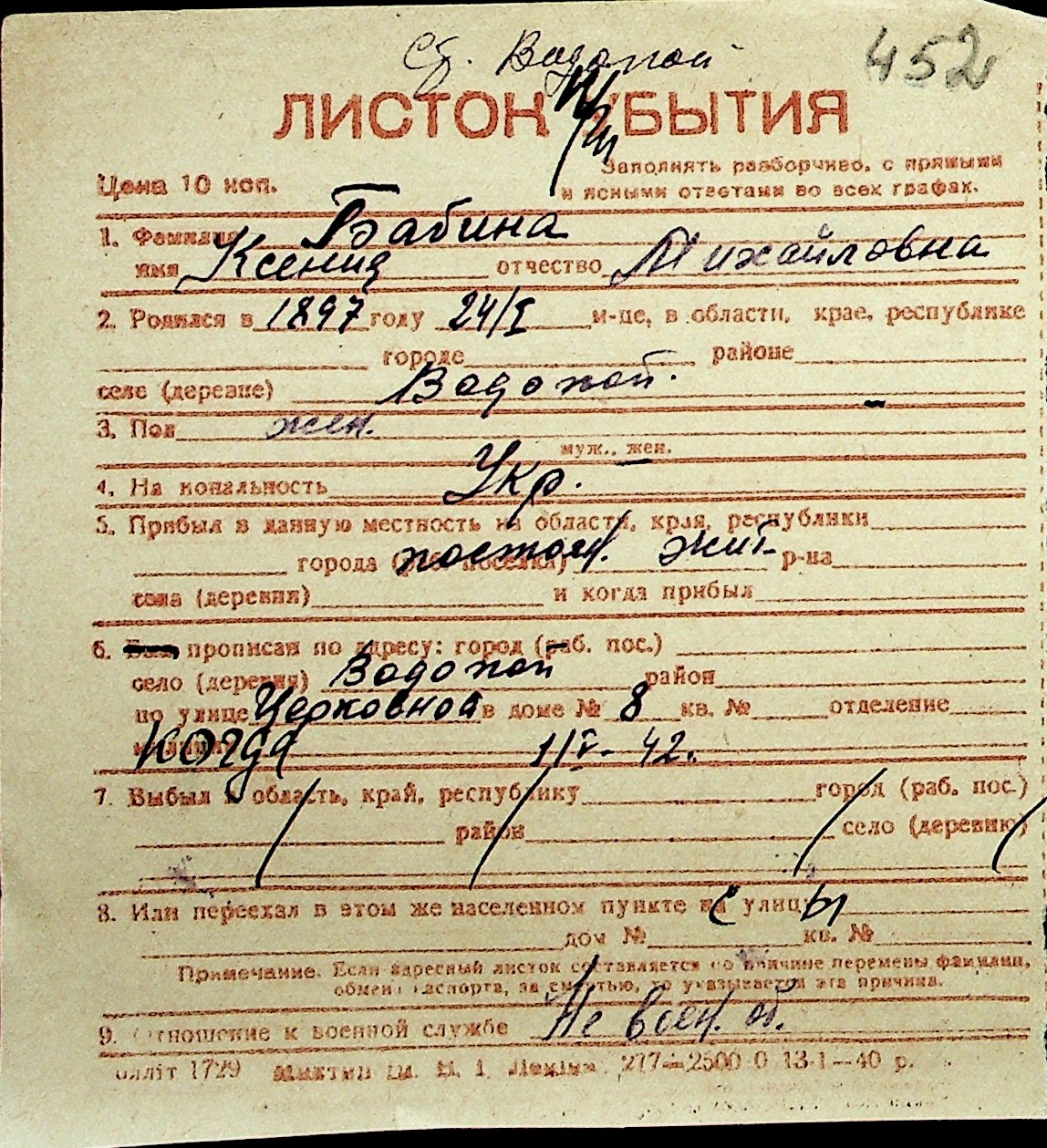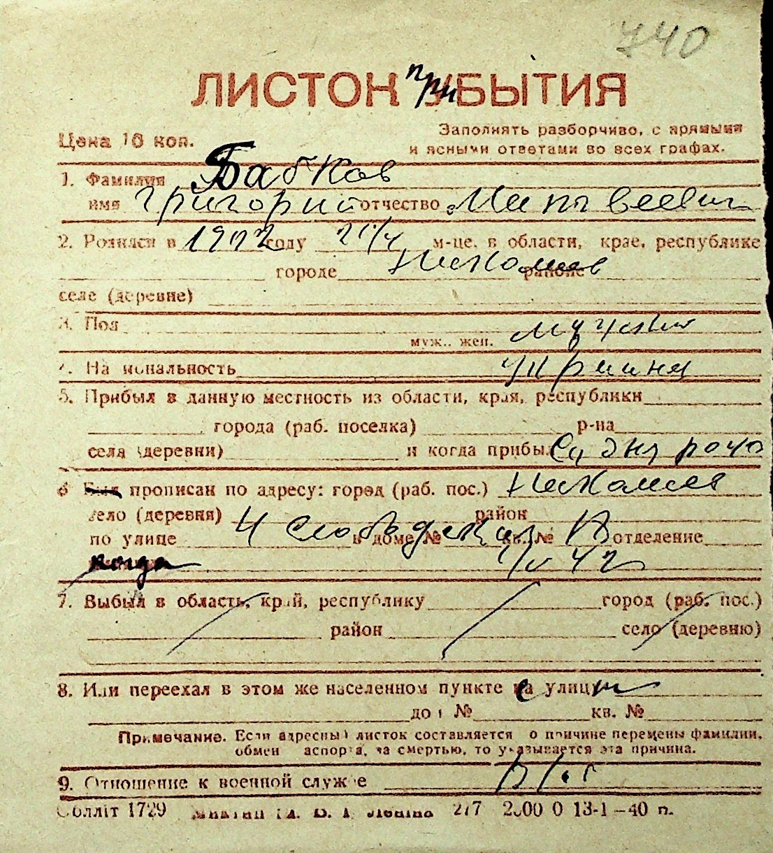 ◦ ◦ Перелік карток на осіб, які мешкали у м. Миколаїв у період окупації 1941–1944 років