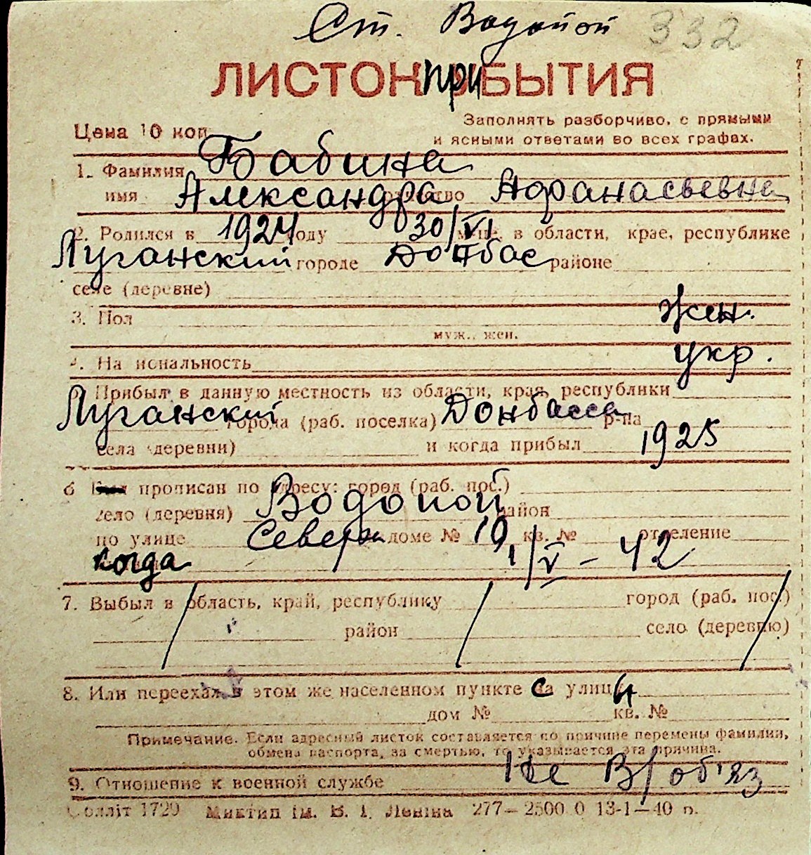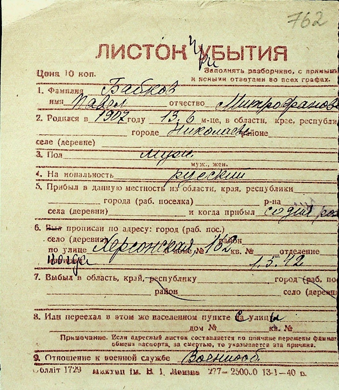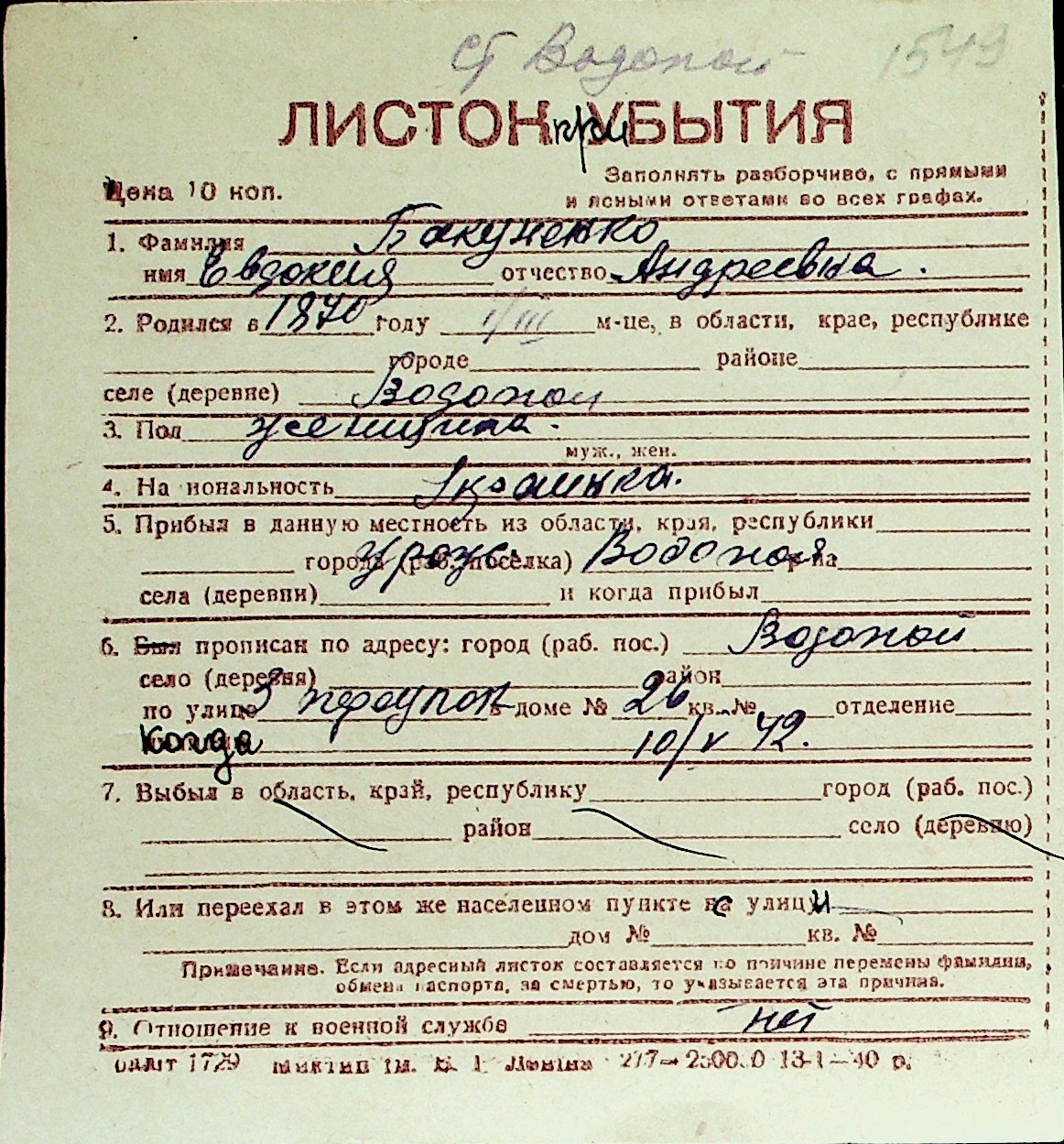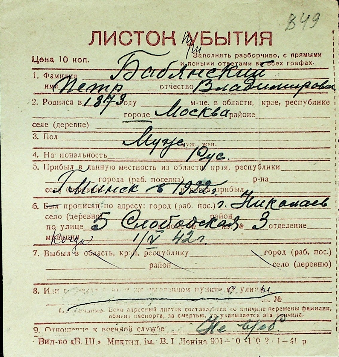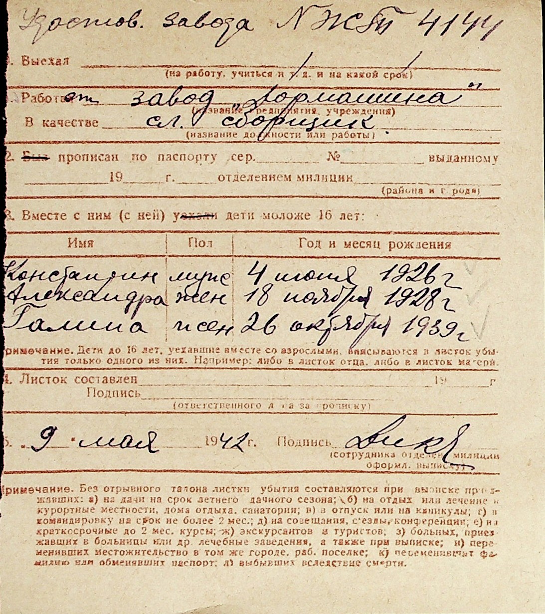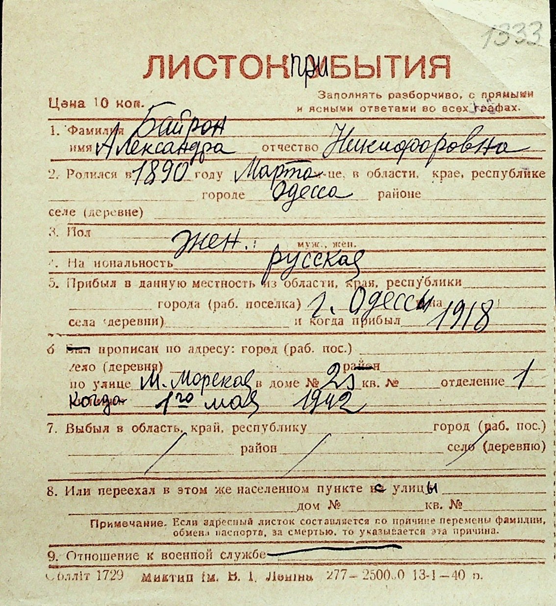 ◦ ◦ Перелік карток на осіб, які мешкали у м. Миколаїв у період окупації 1941–1944 років