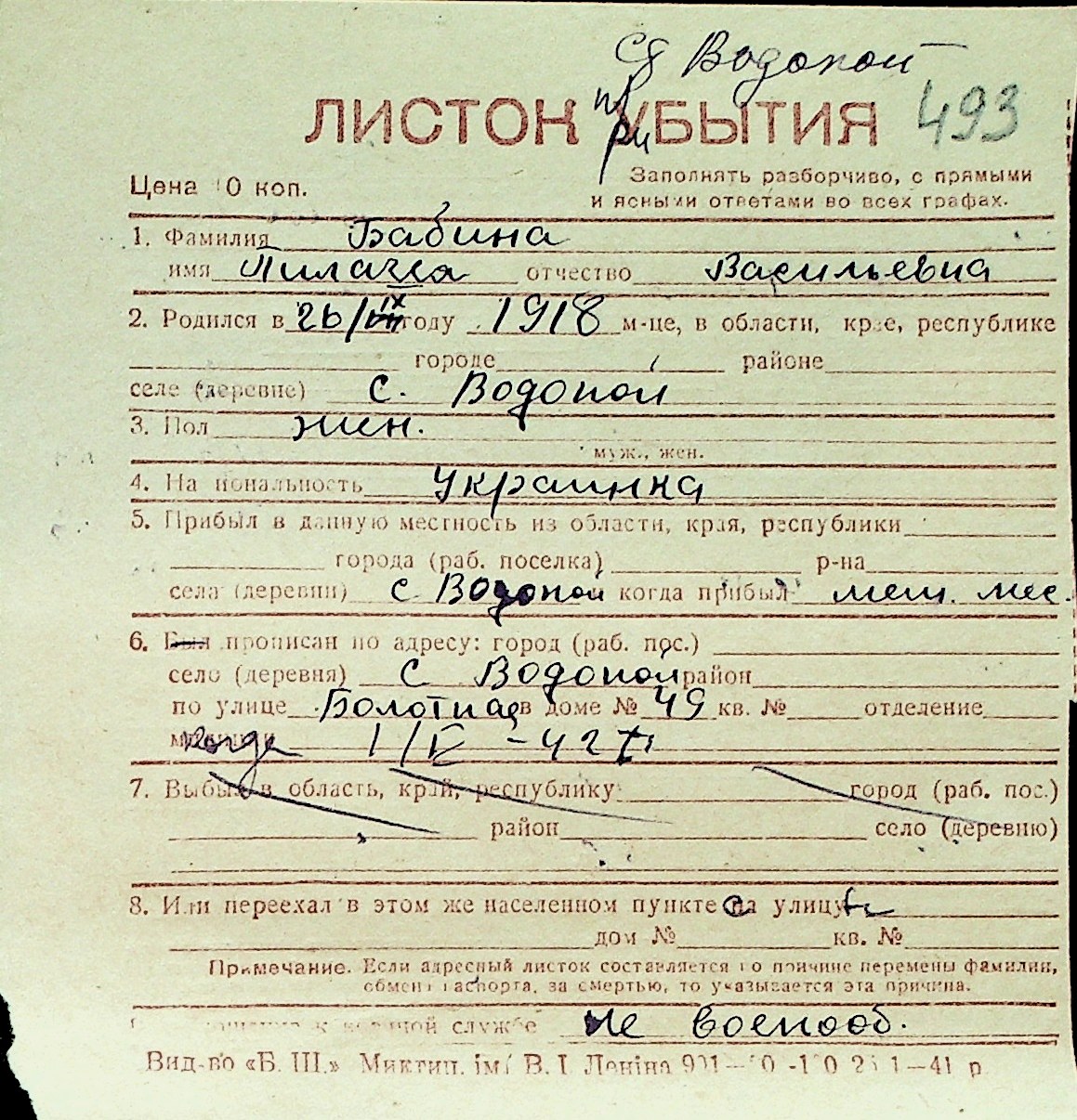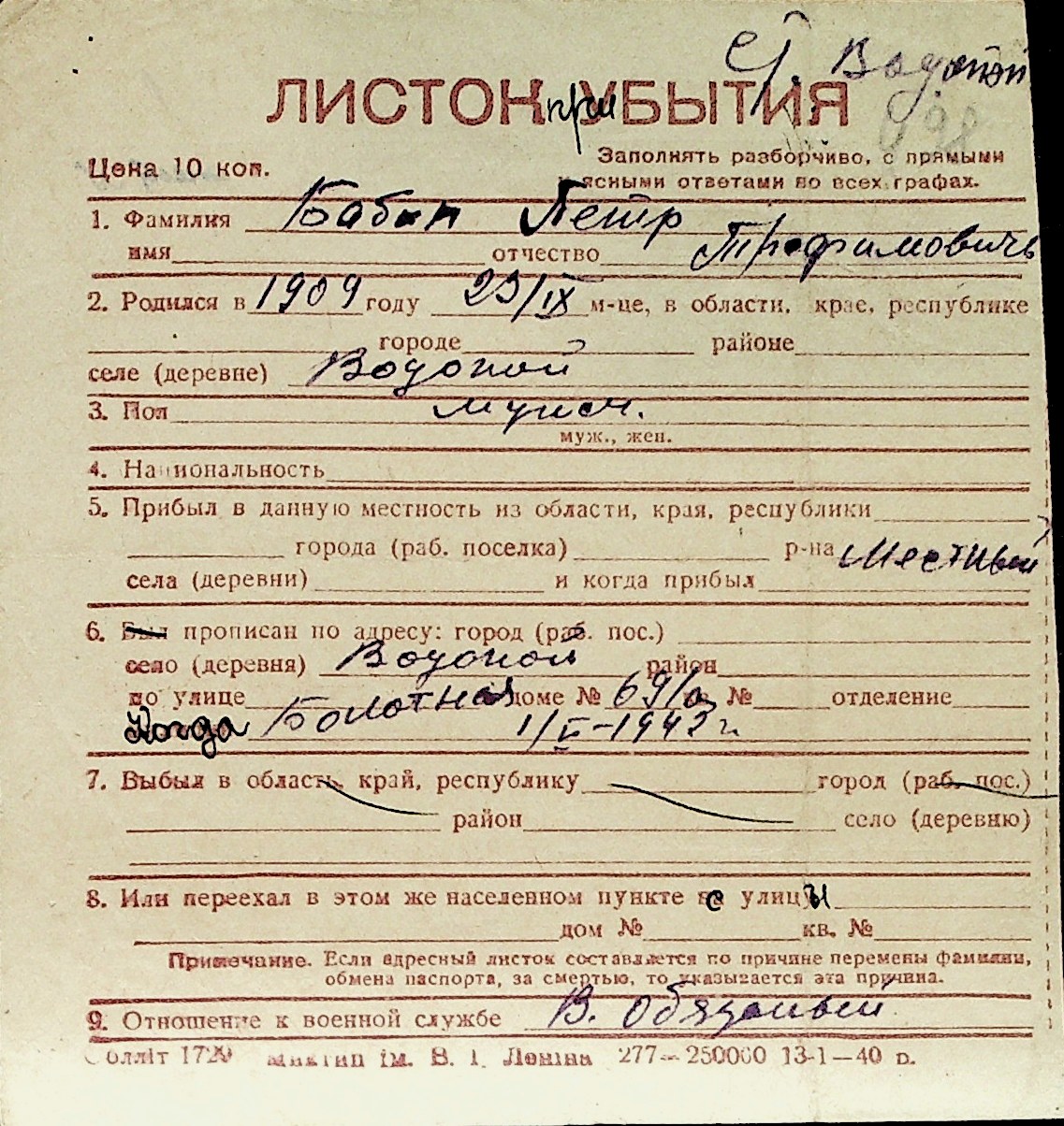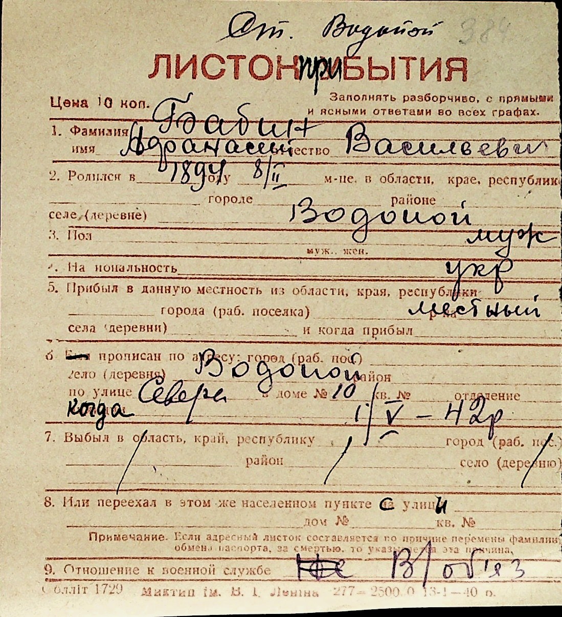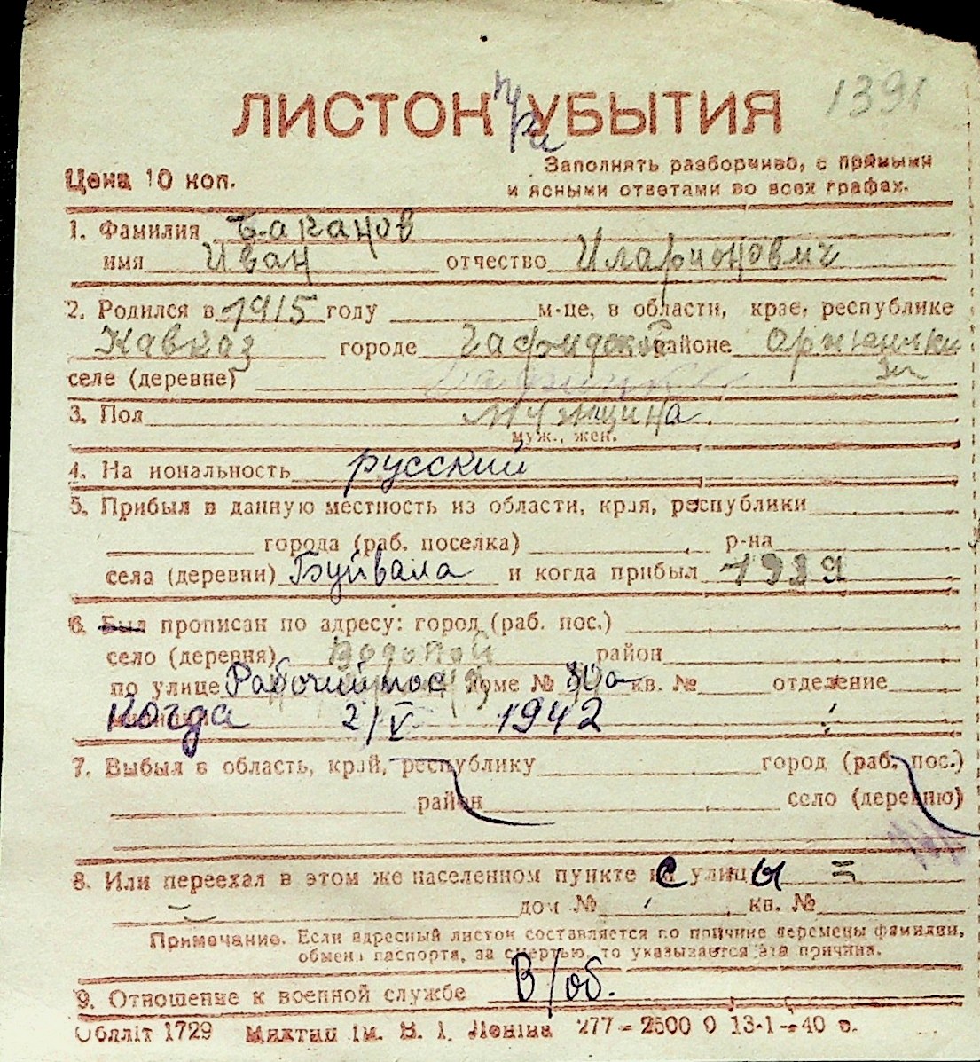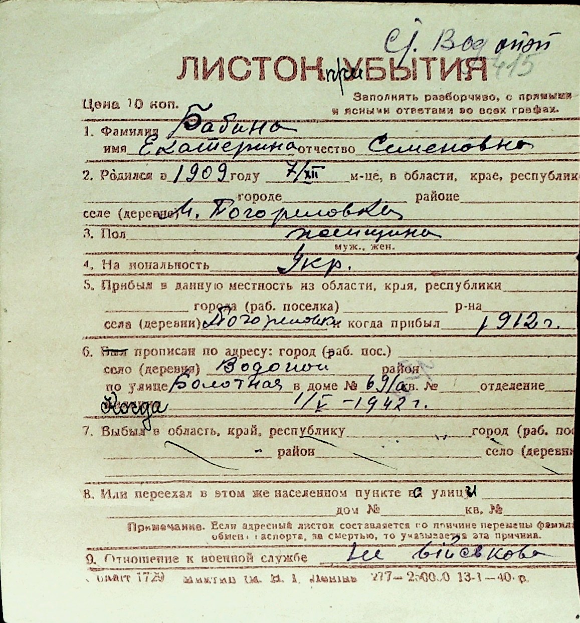 ◦ ◦ Перелік карток на осіб, які мешкали у м. Миколаїв у період окупації 1941–1944 років